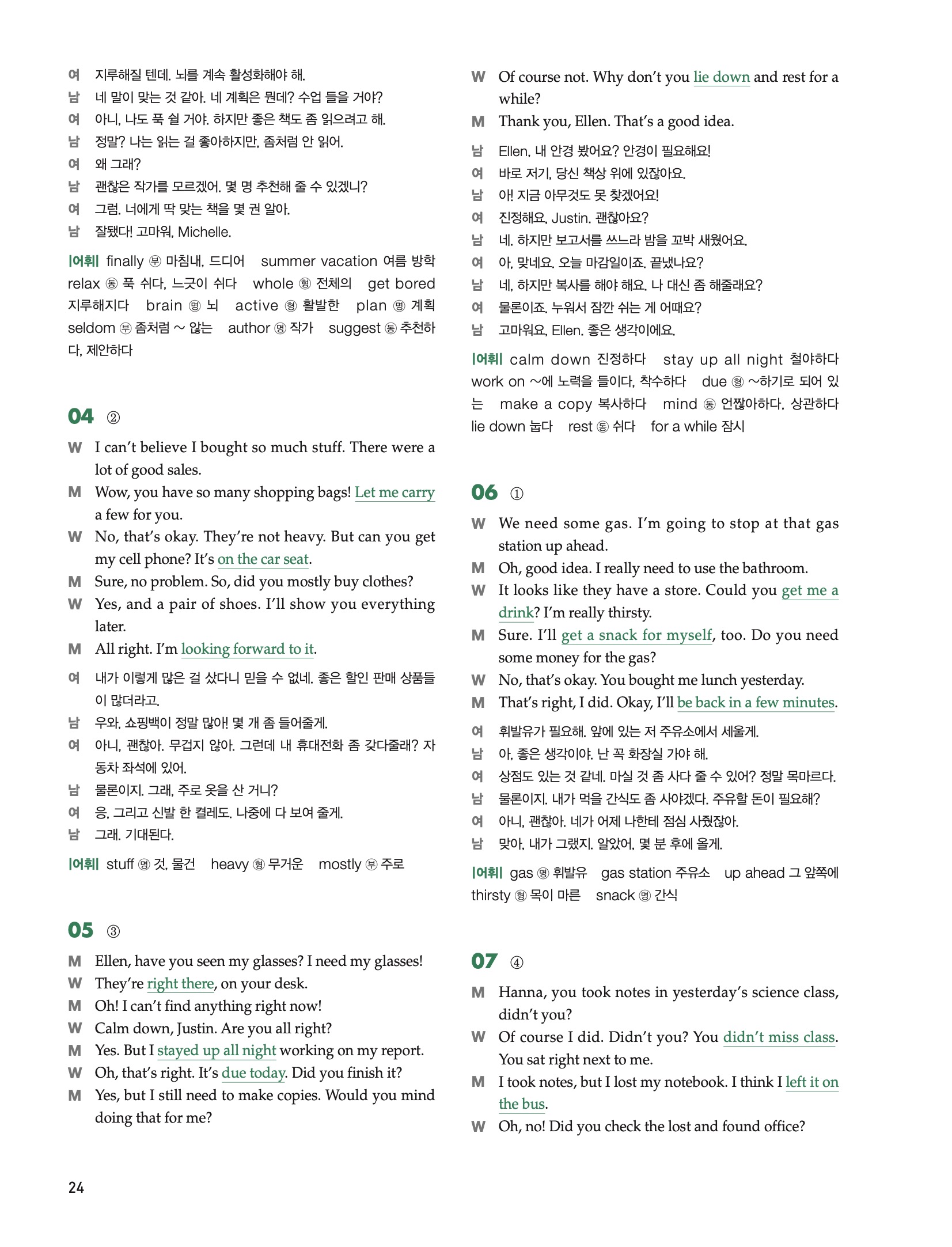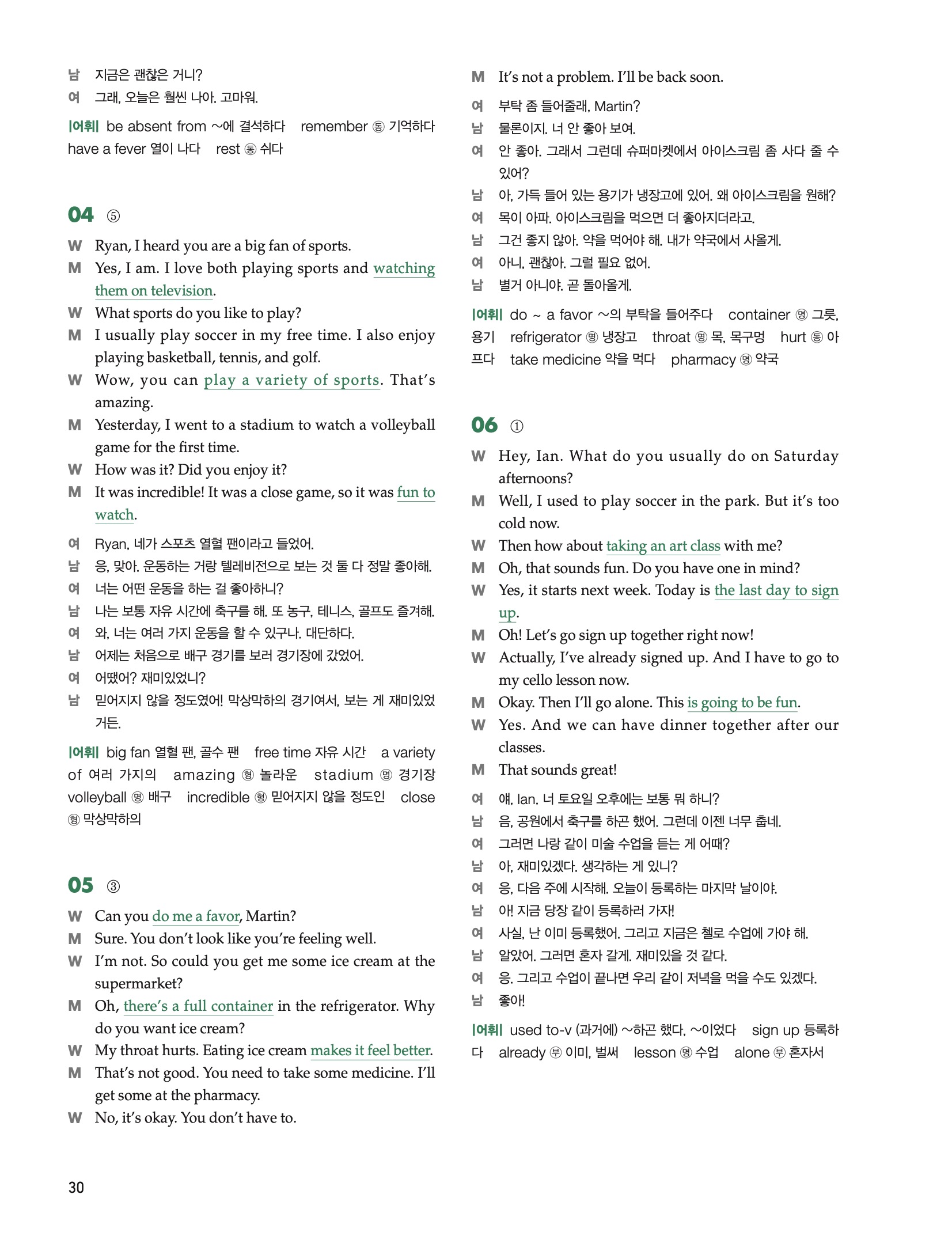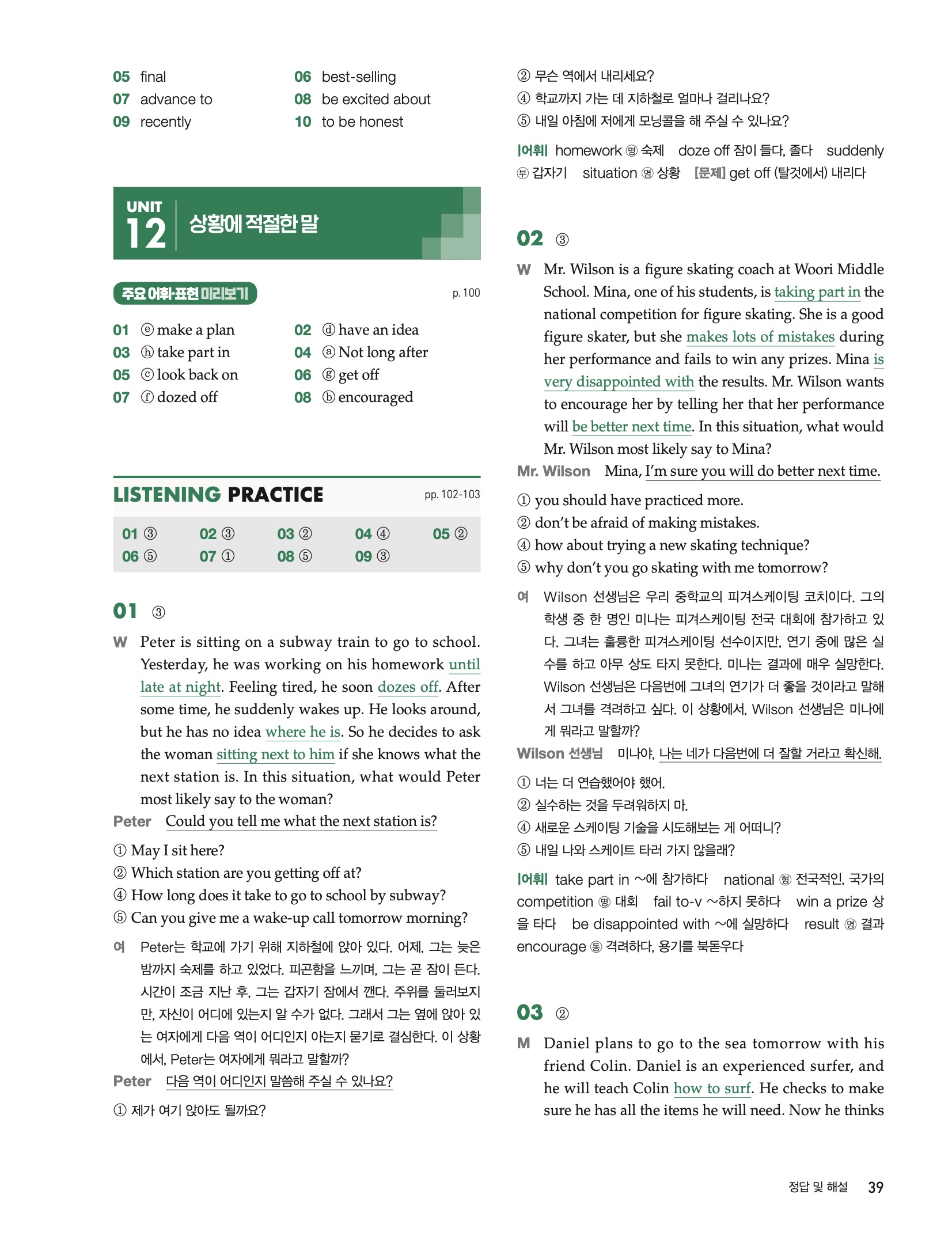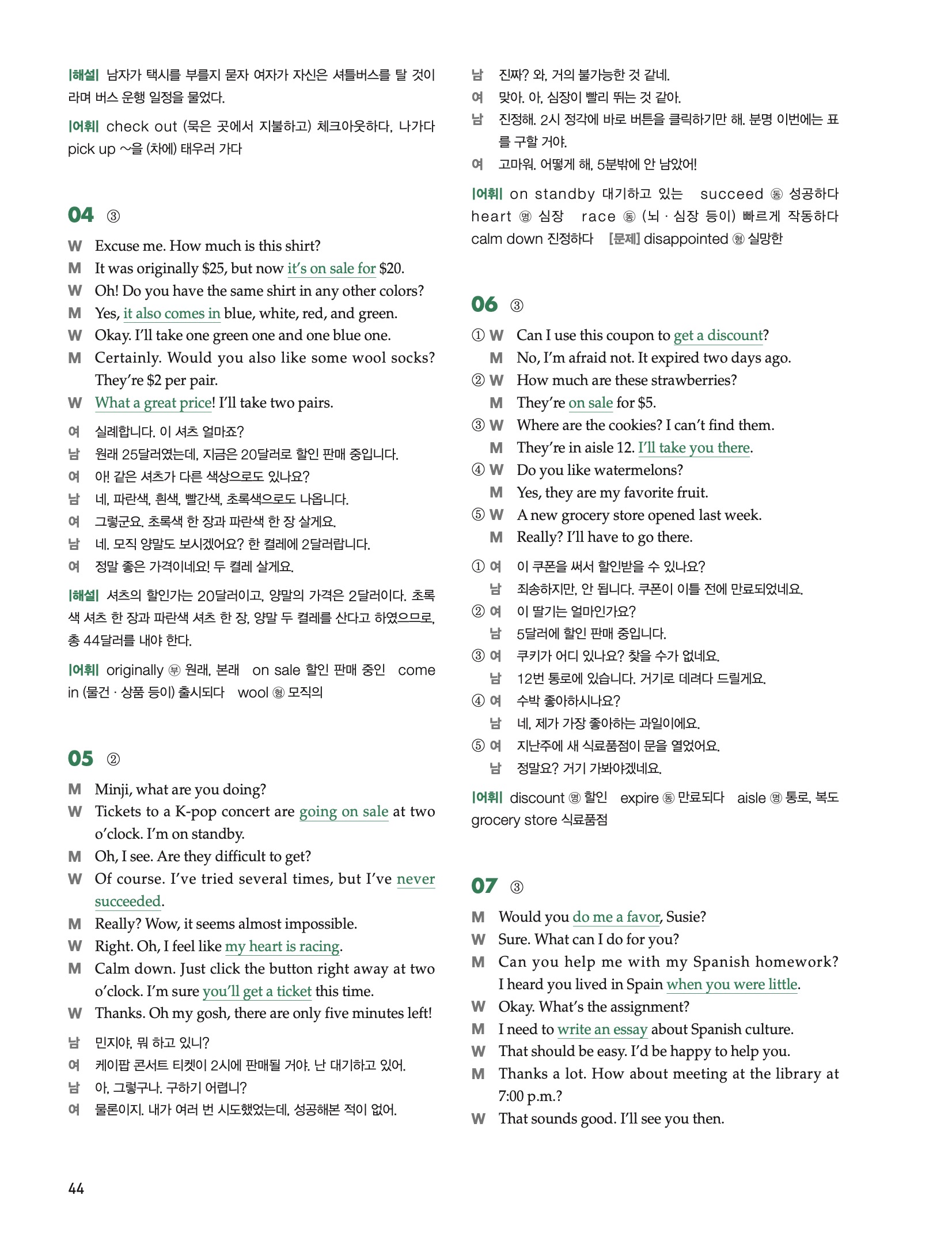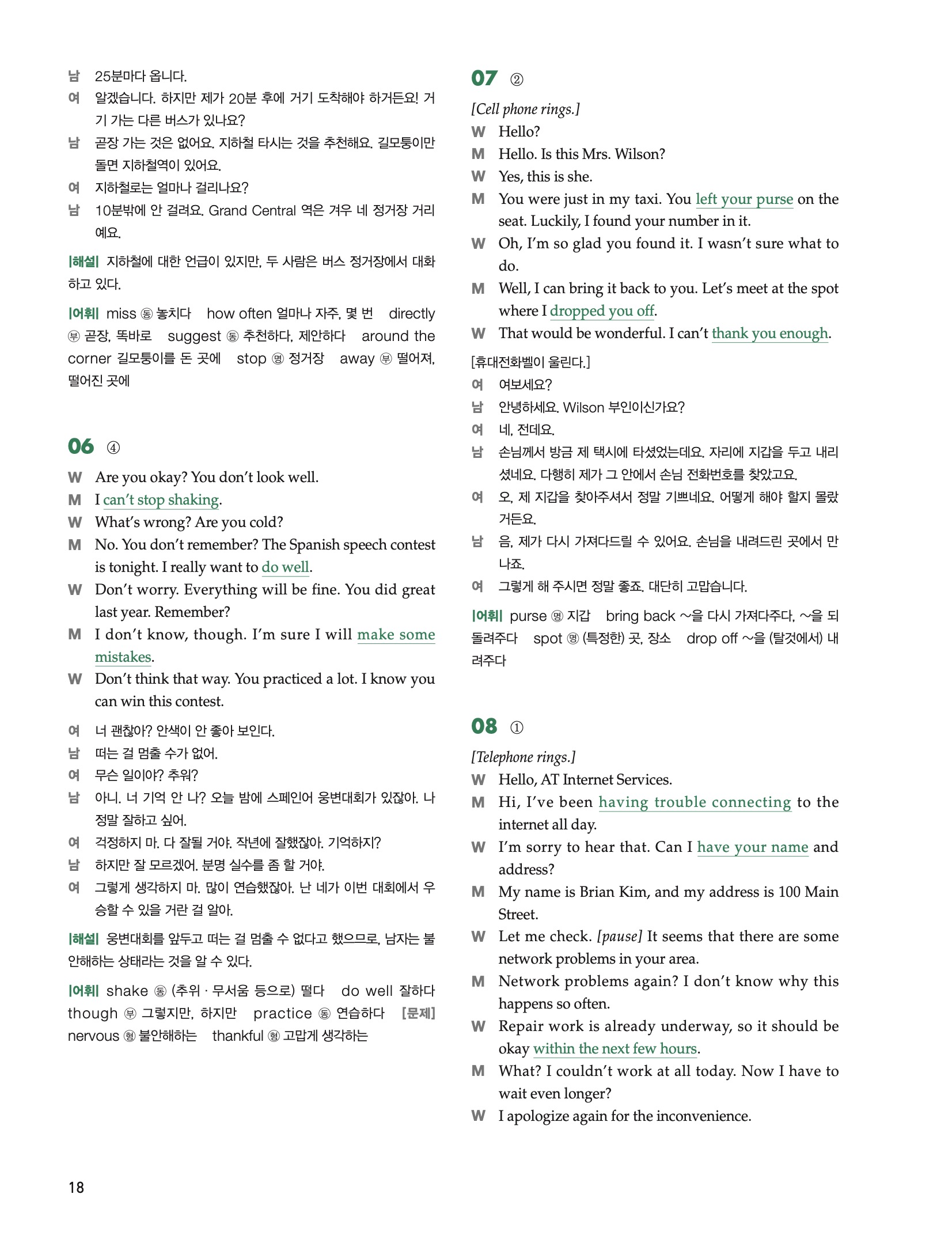 아래는 듣기 실력 향상과 영어 학습에 도움이 되는 다른 교재의 답지와 해설을 제공하는 포스팅입니다.