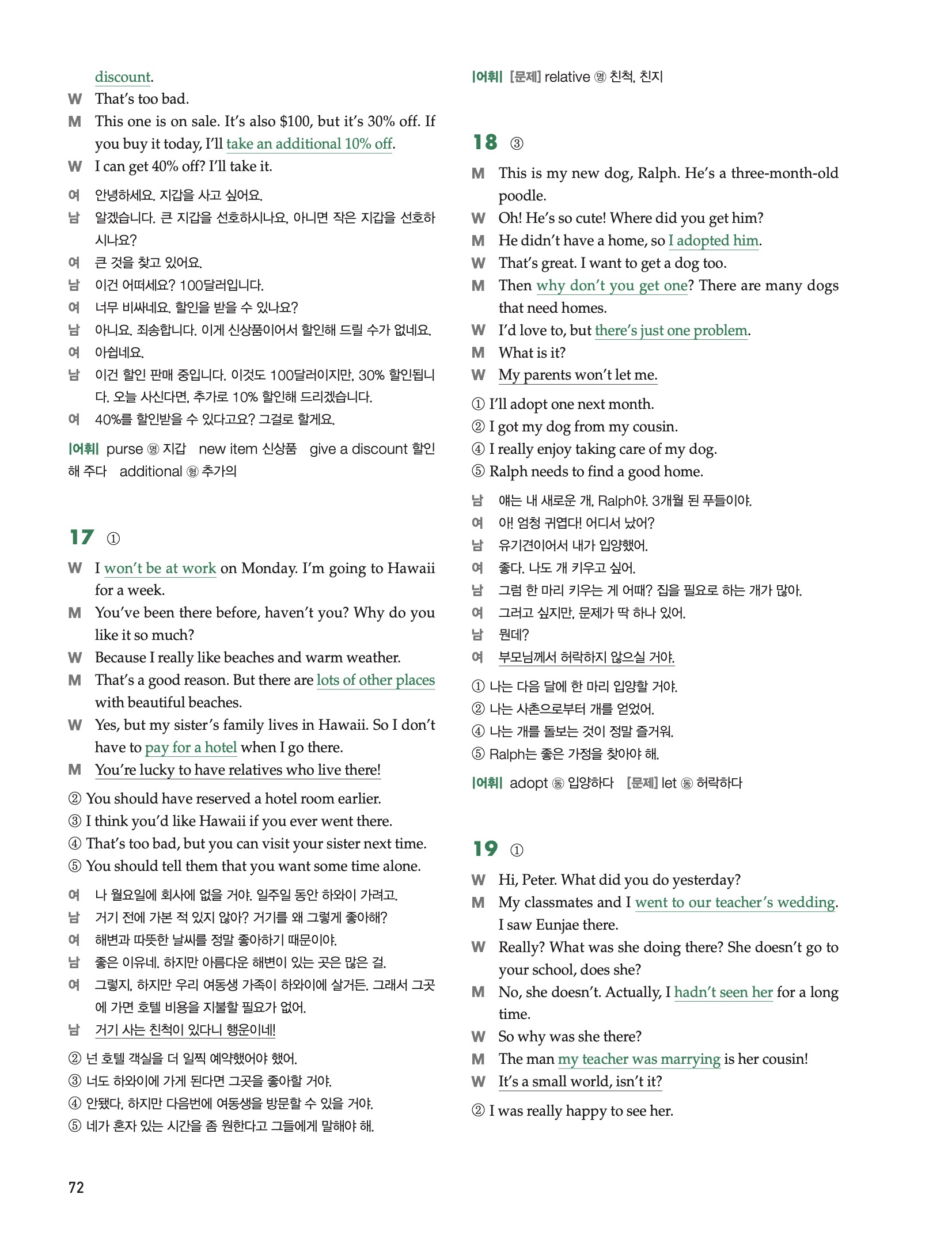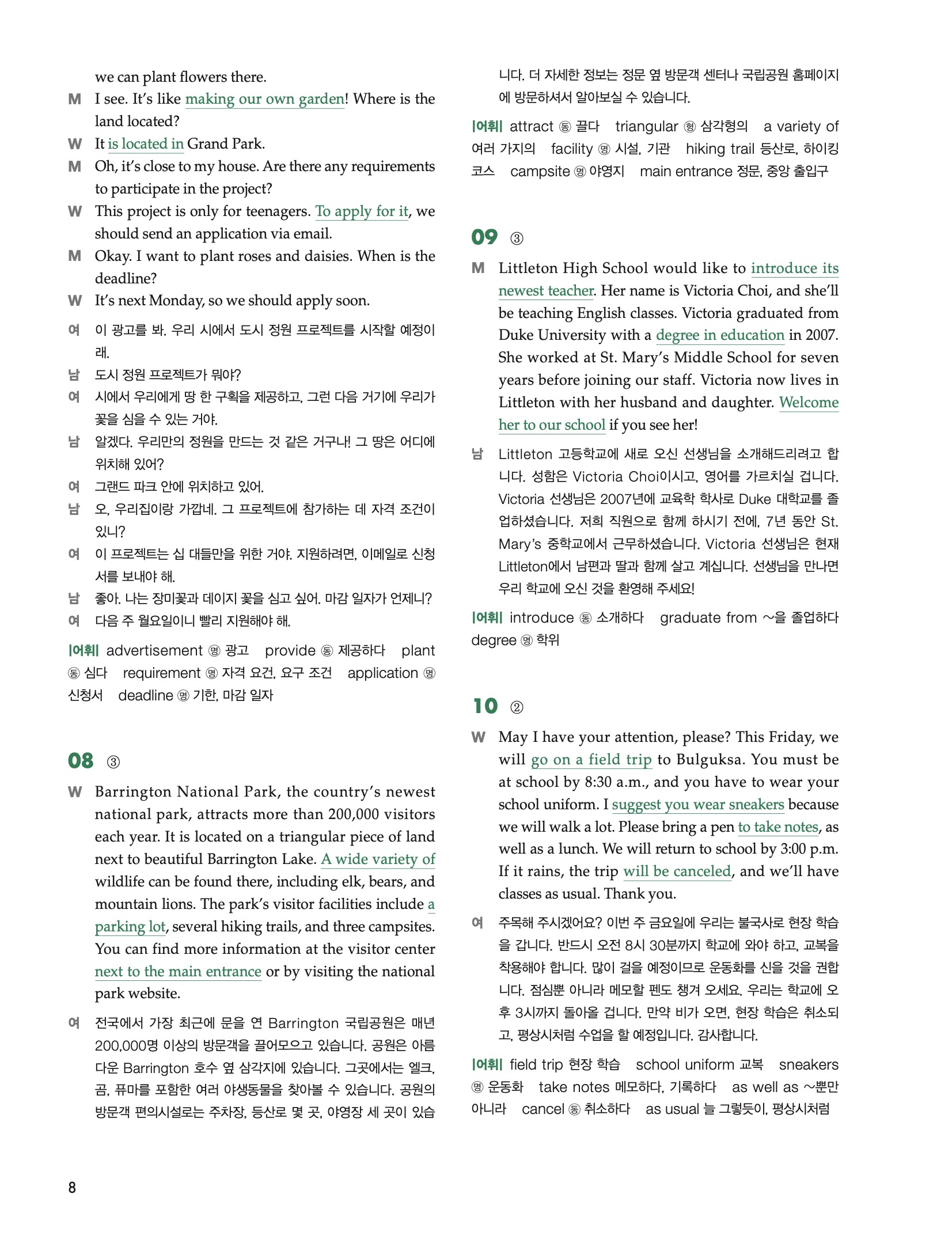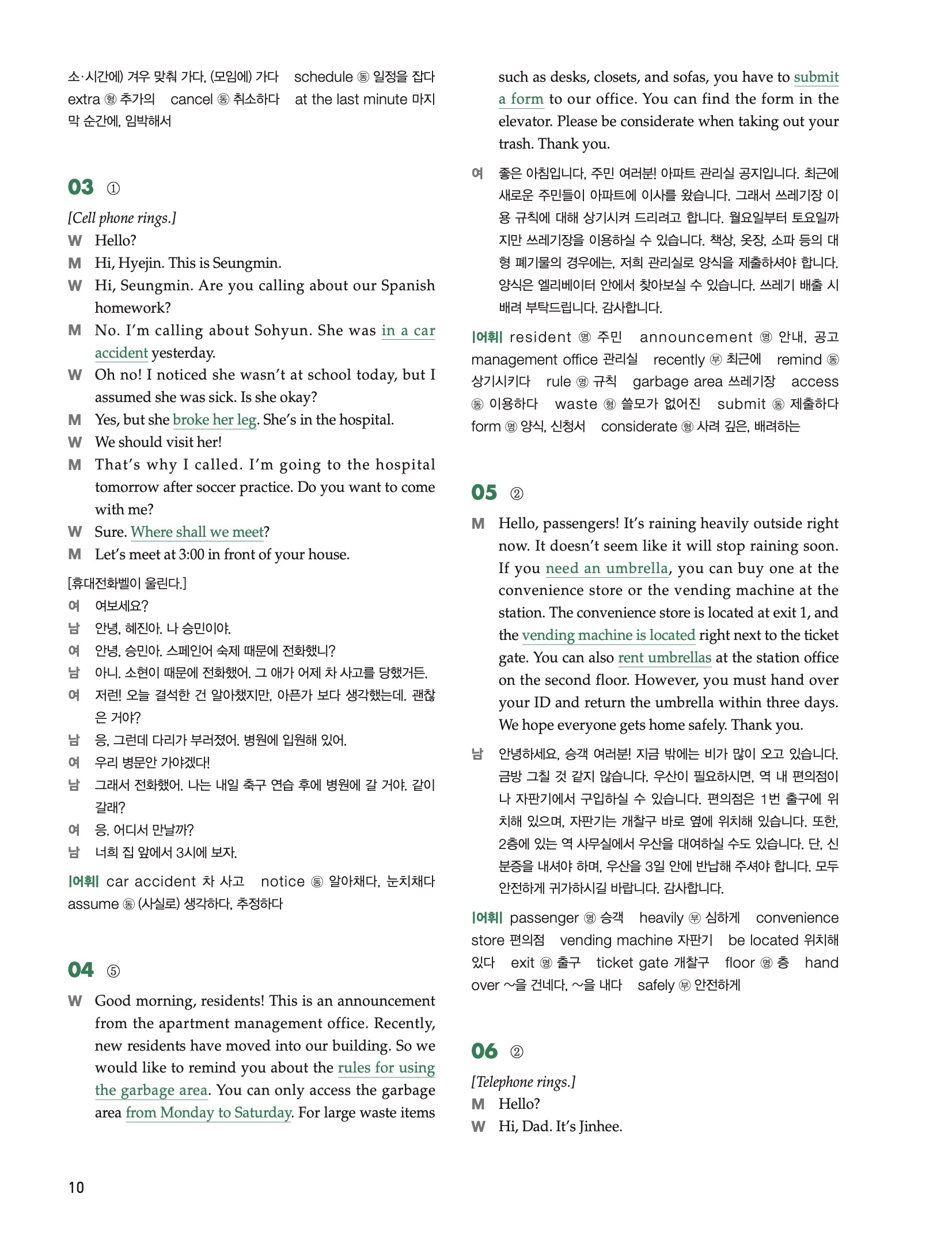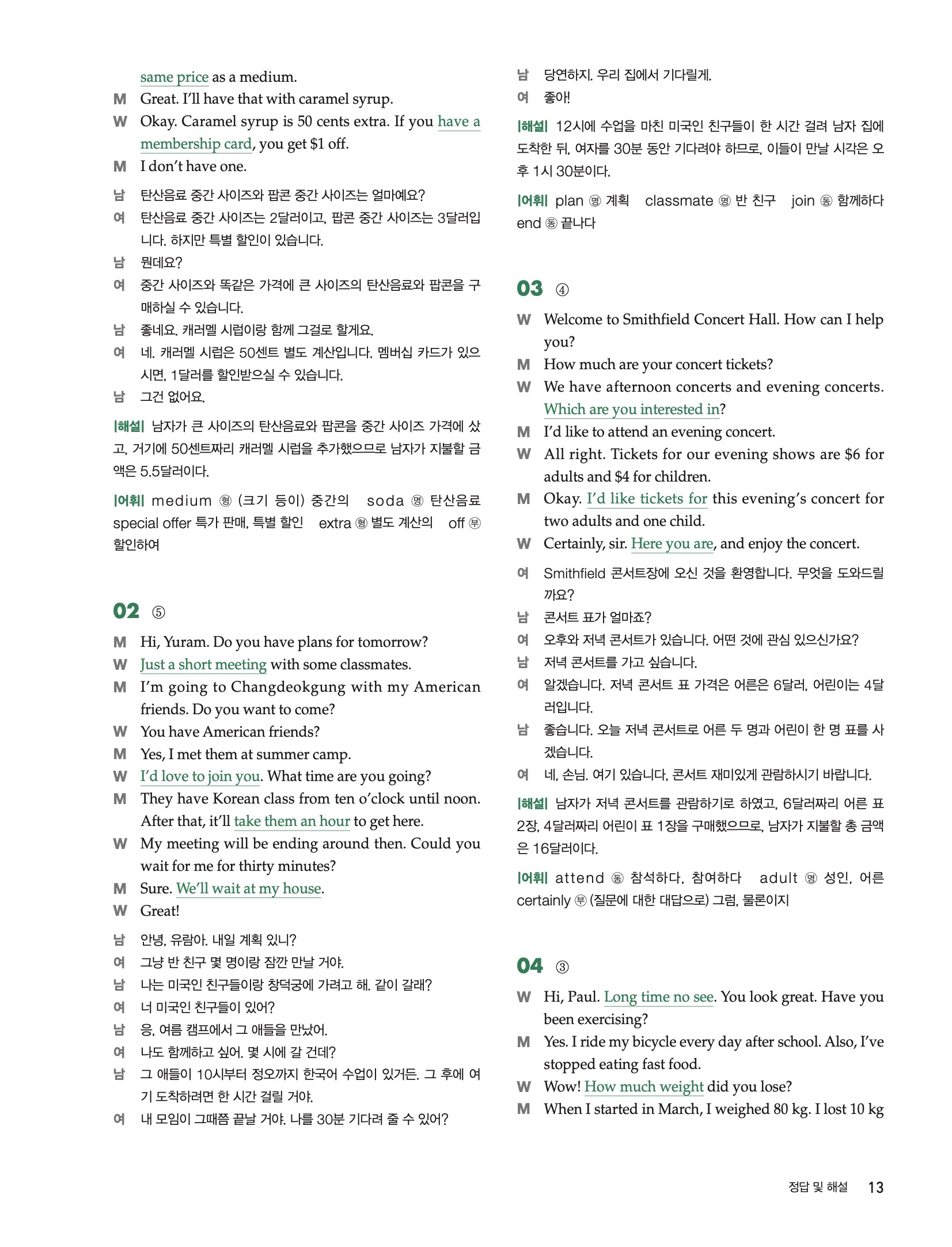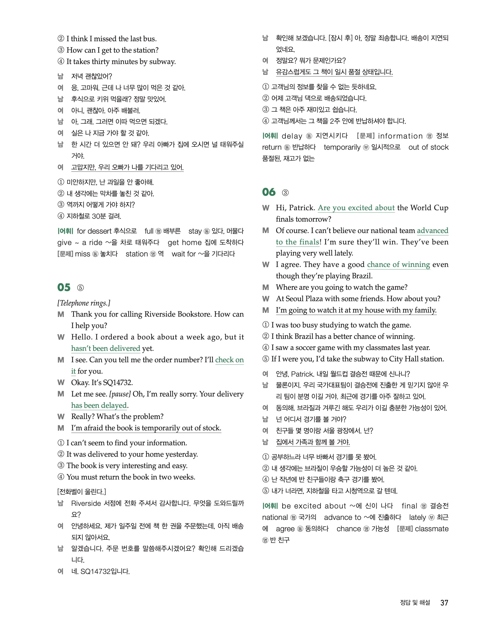 아래는 듣기 실력 향상과 영어 학습에 도움이 되는 다른 교재의 답지와 해설을 제공하는 포스팅입니다.