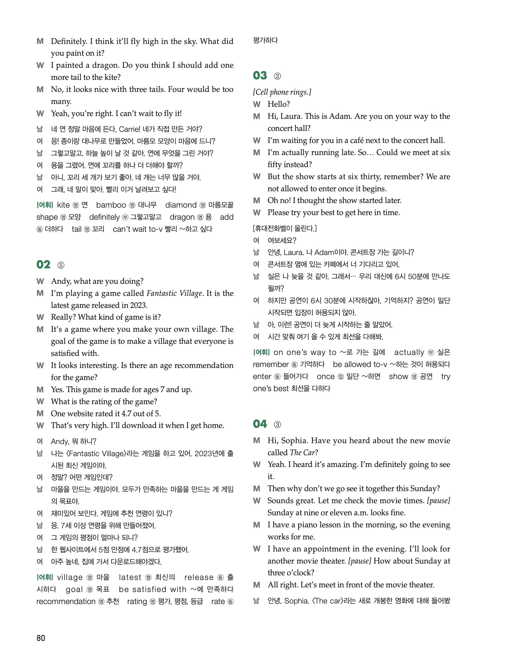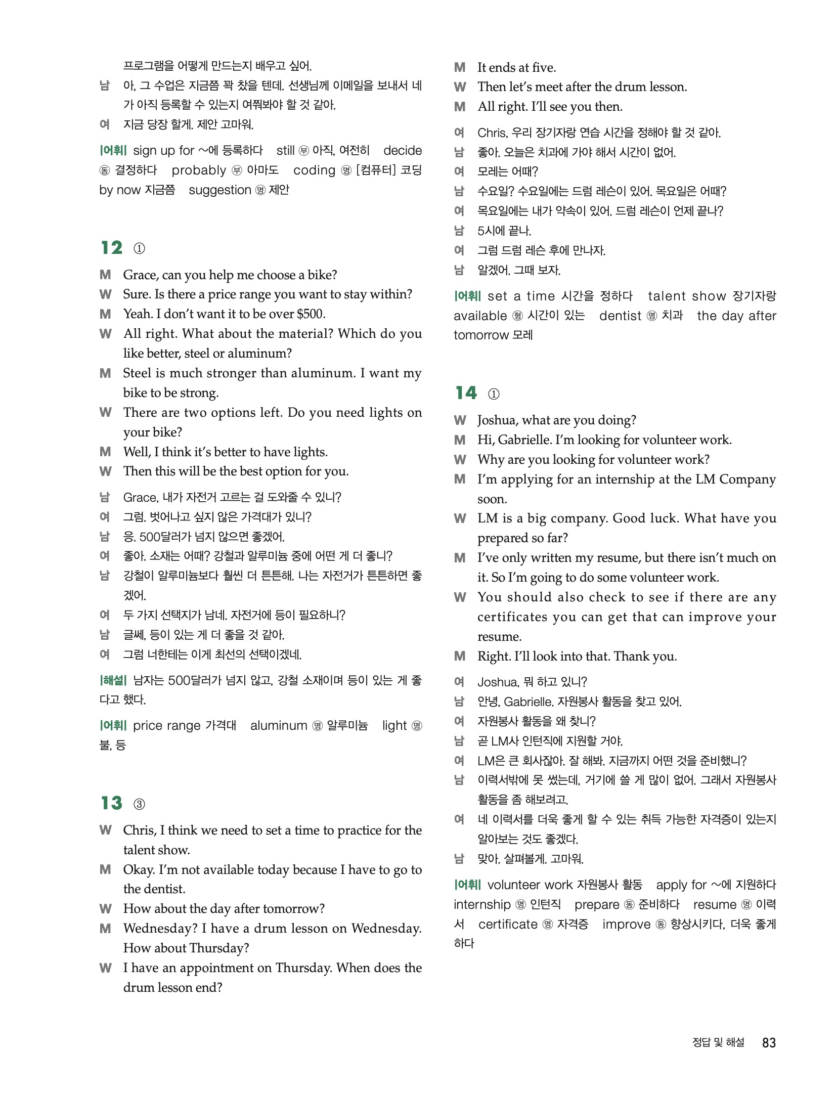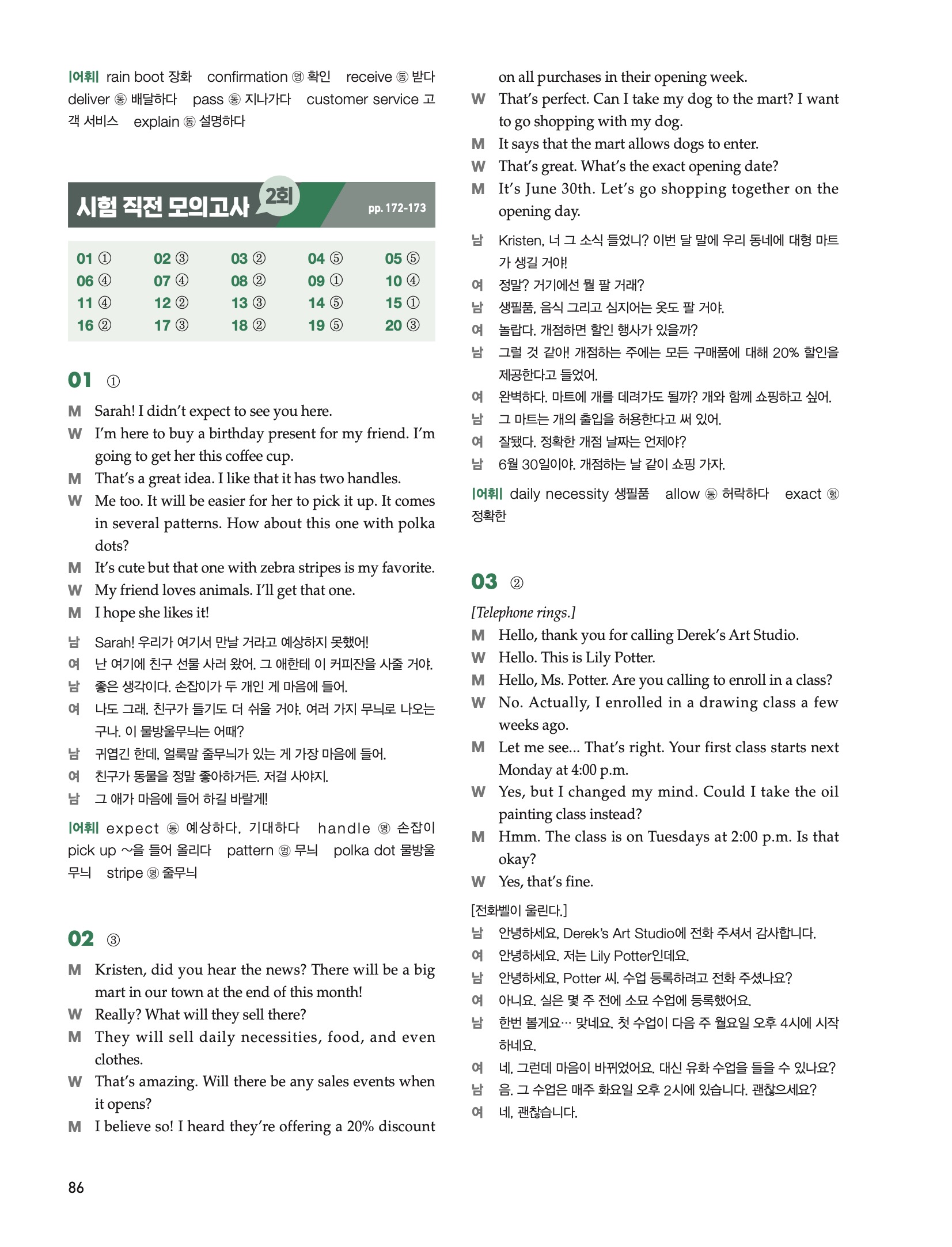 ✅ 핵심 개념 및 실전 연습 – 듣기 문제 풀이와 함께 주요 표현과 패턴을 익힐 수 있습니다.