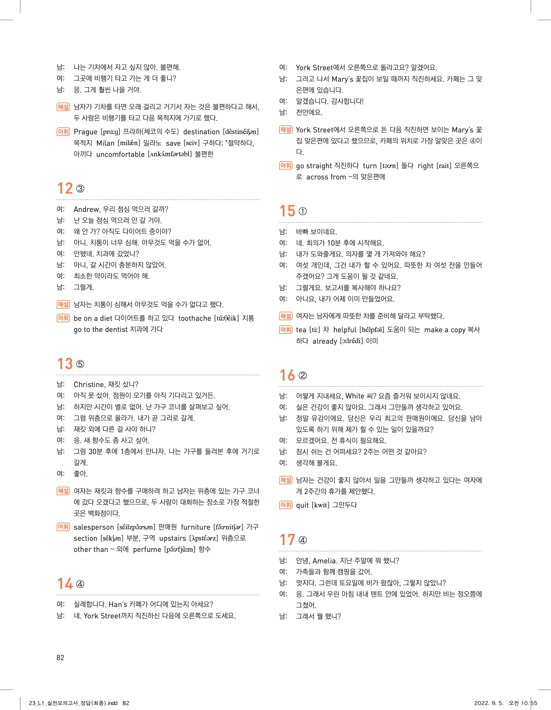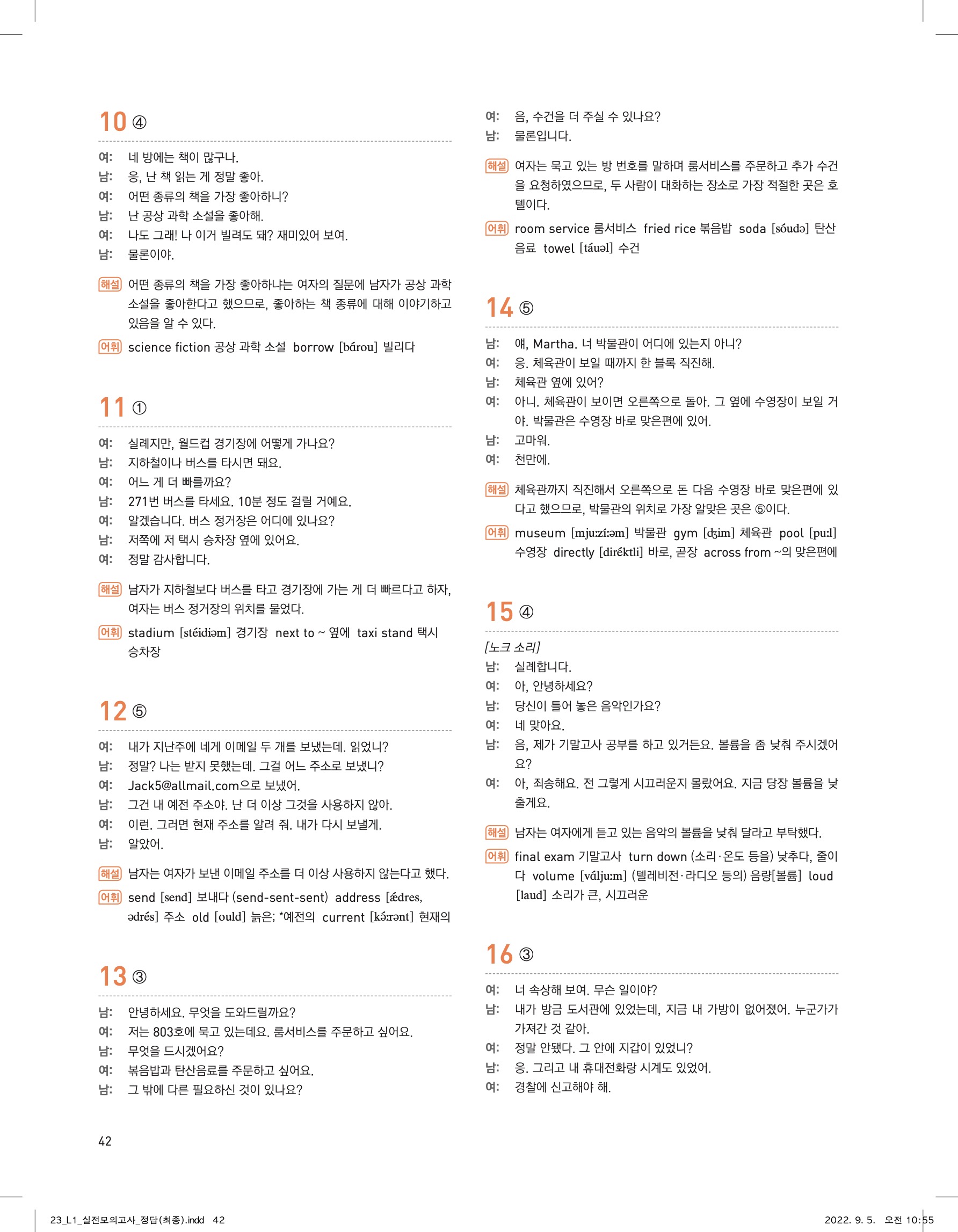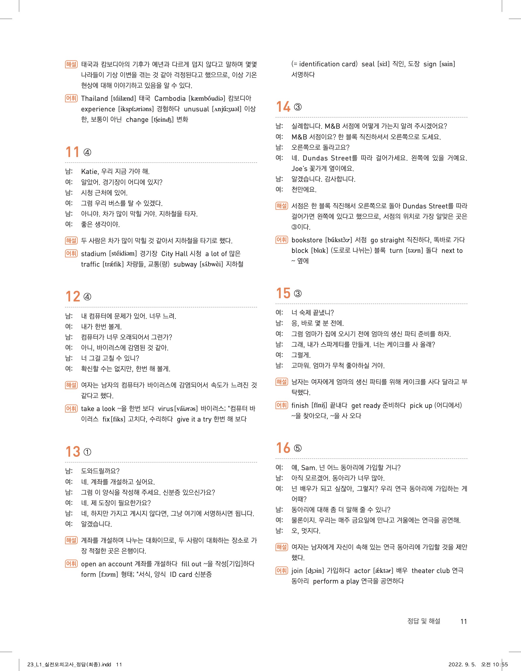 아래는 듣기 실력 향상과 영어 학습에 도움이 되는 다른 교재의 답지와 해설을 제공하는 포스팅입니다.