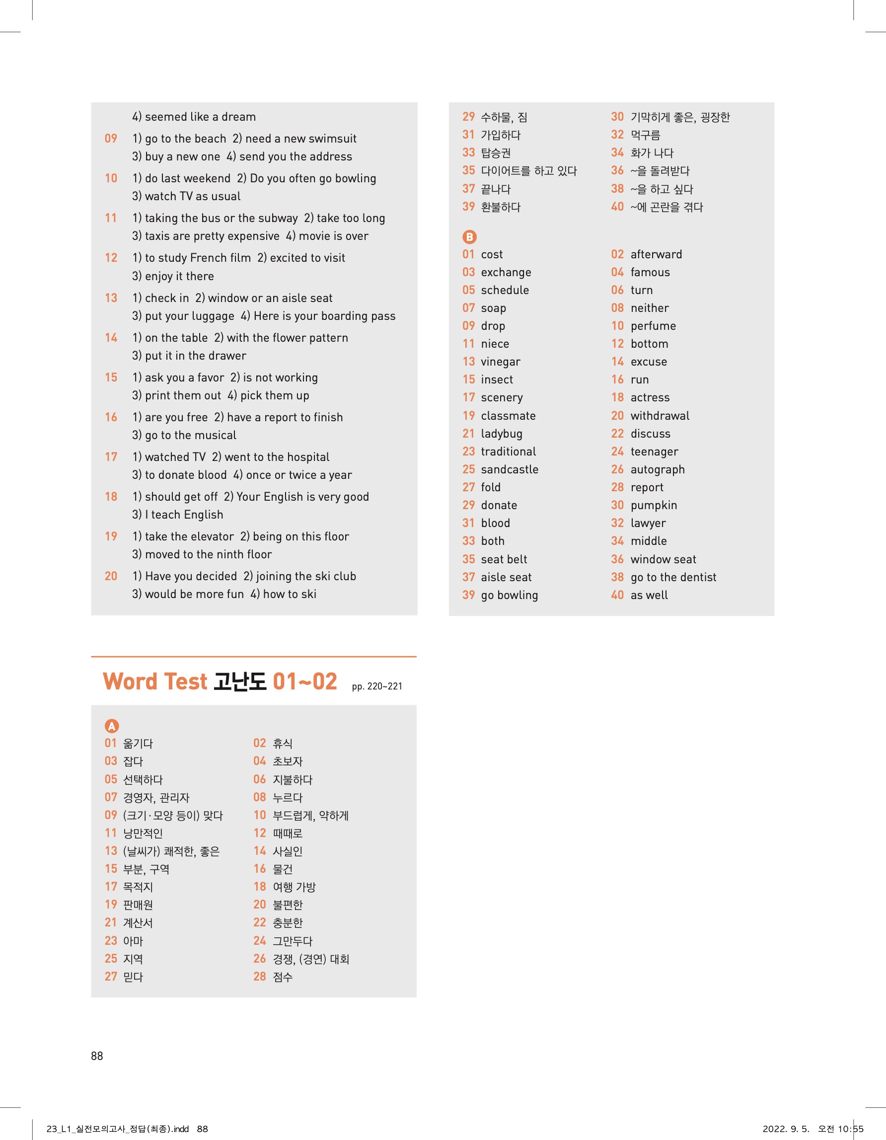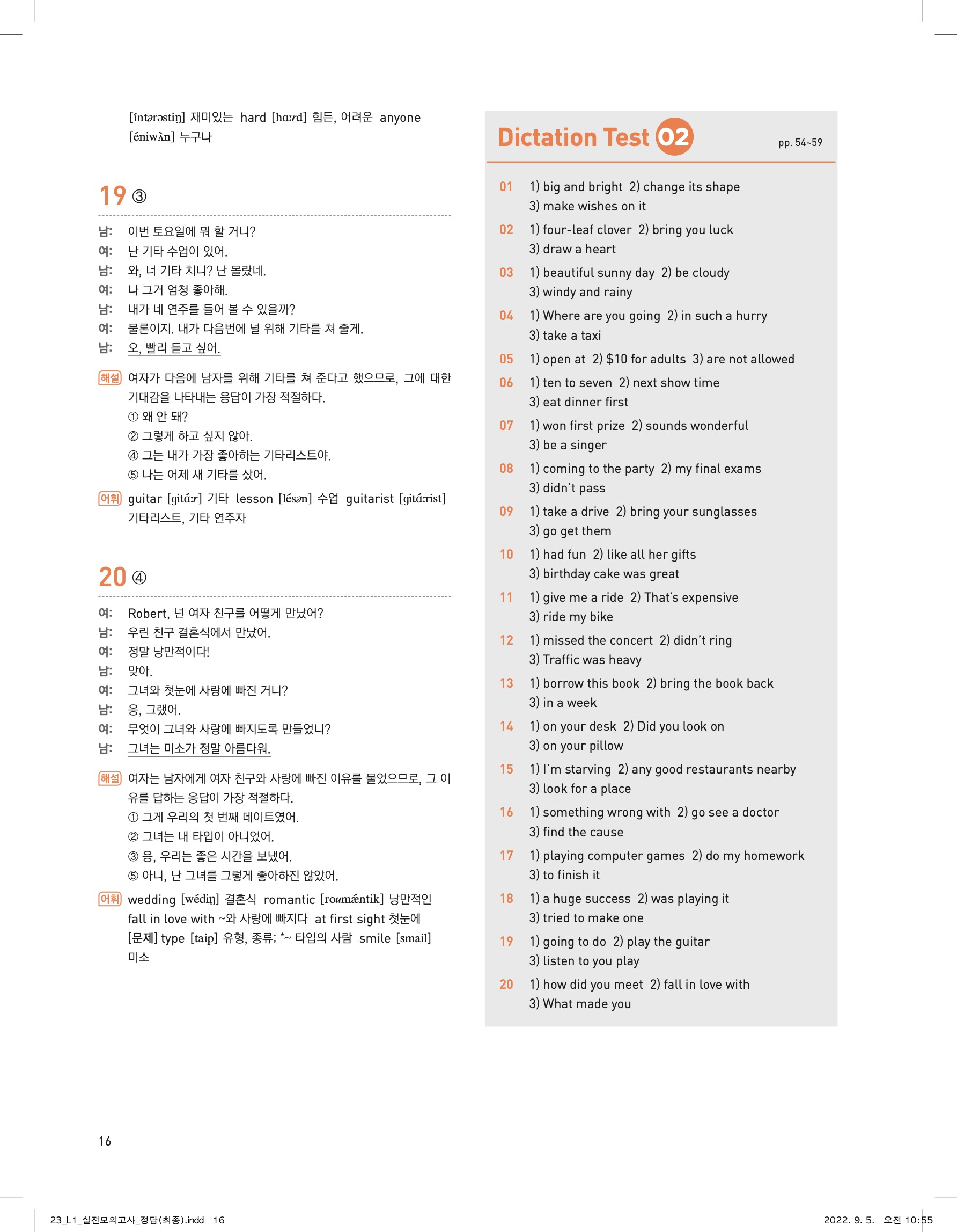 📘 능률 중학영어듣기모의고사22회 레벨2 L2 답지 및 해설