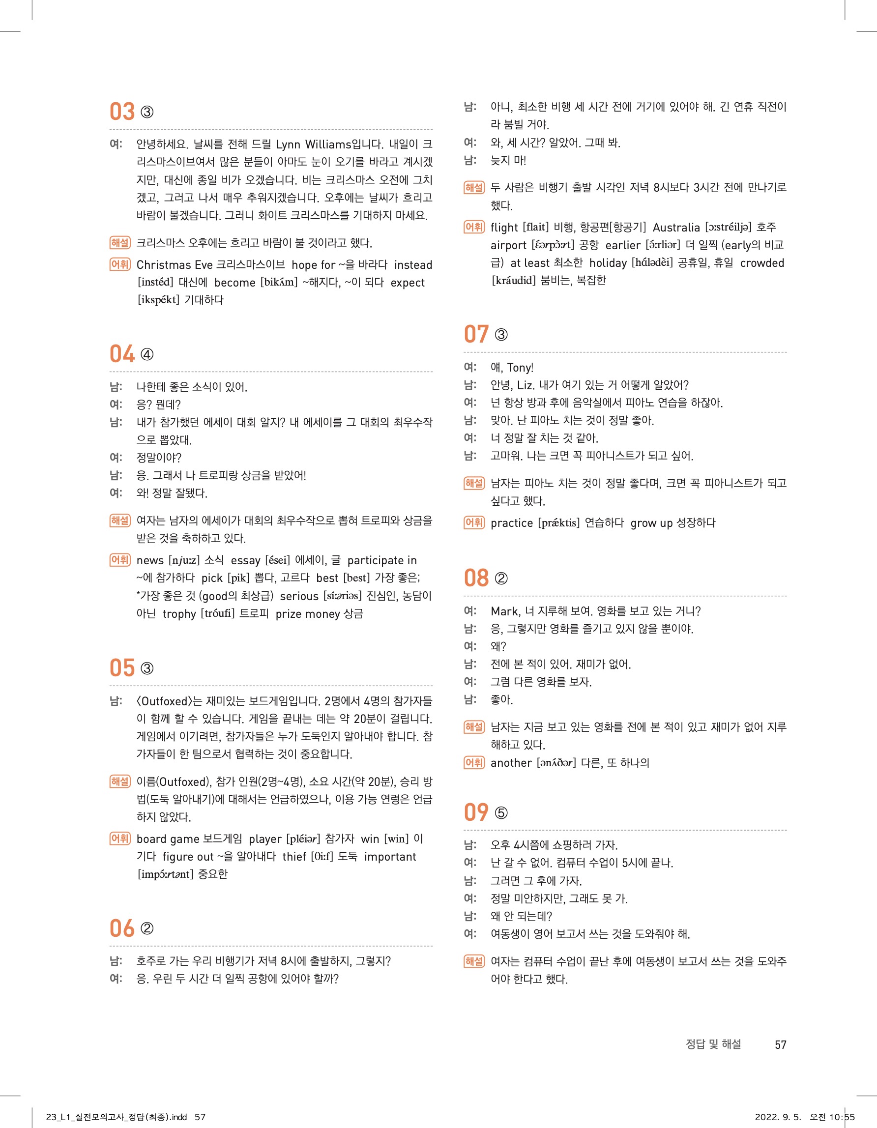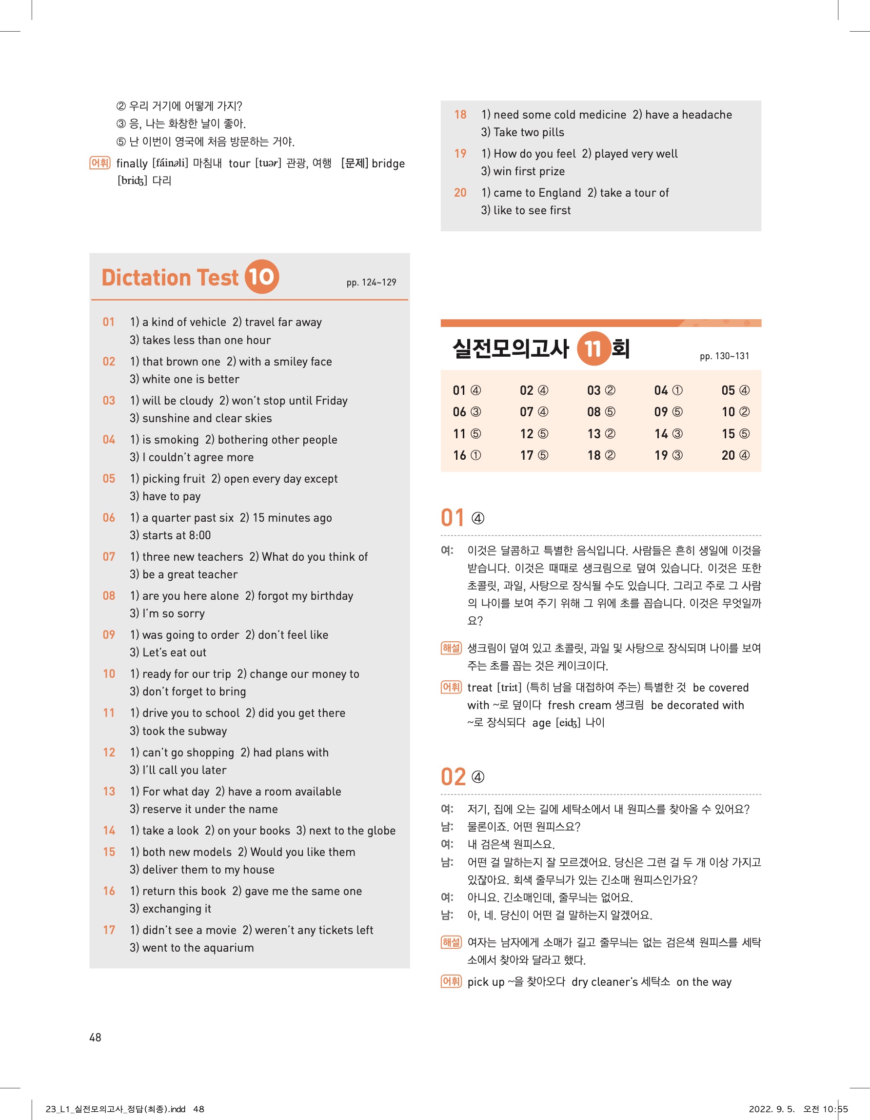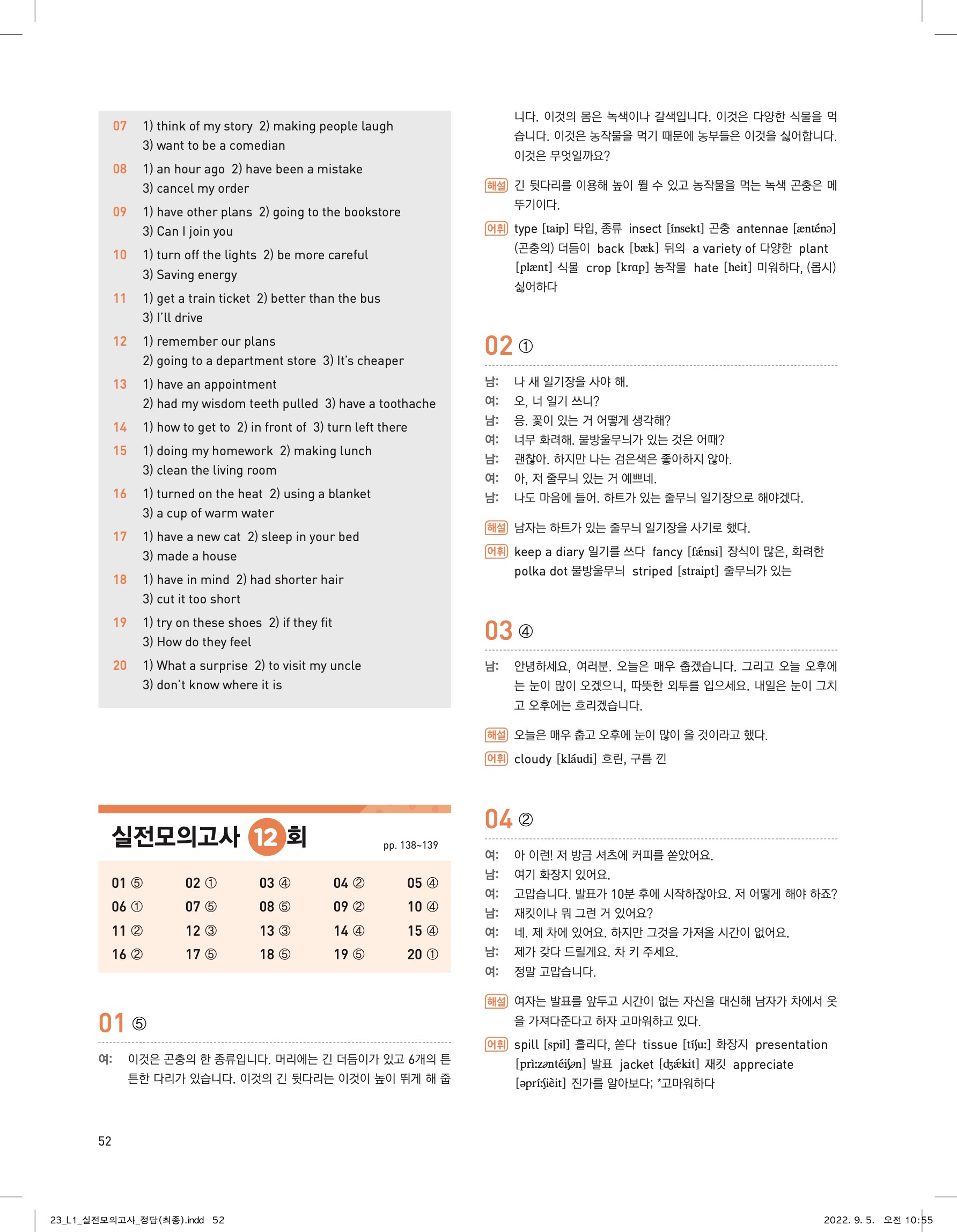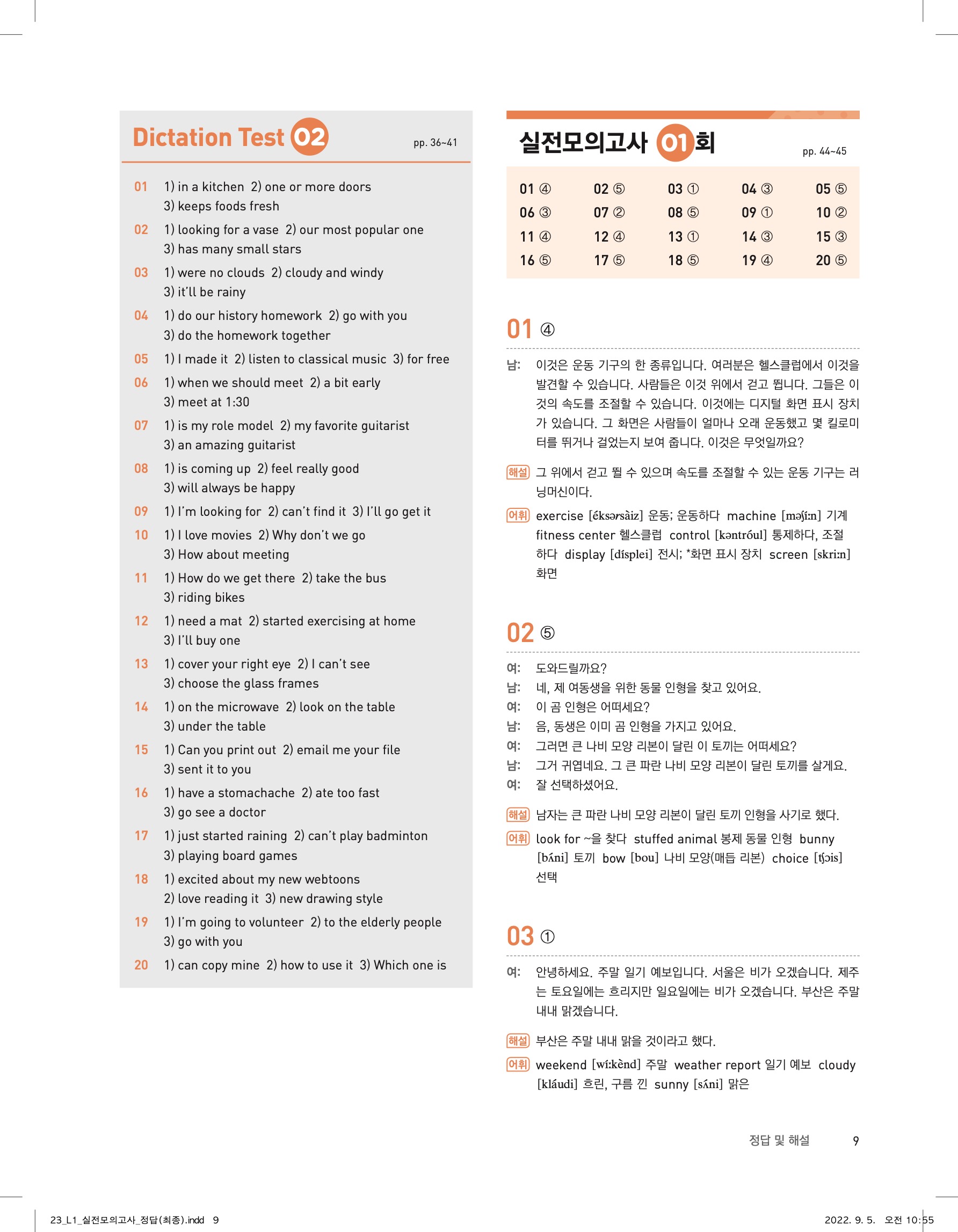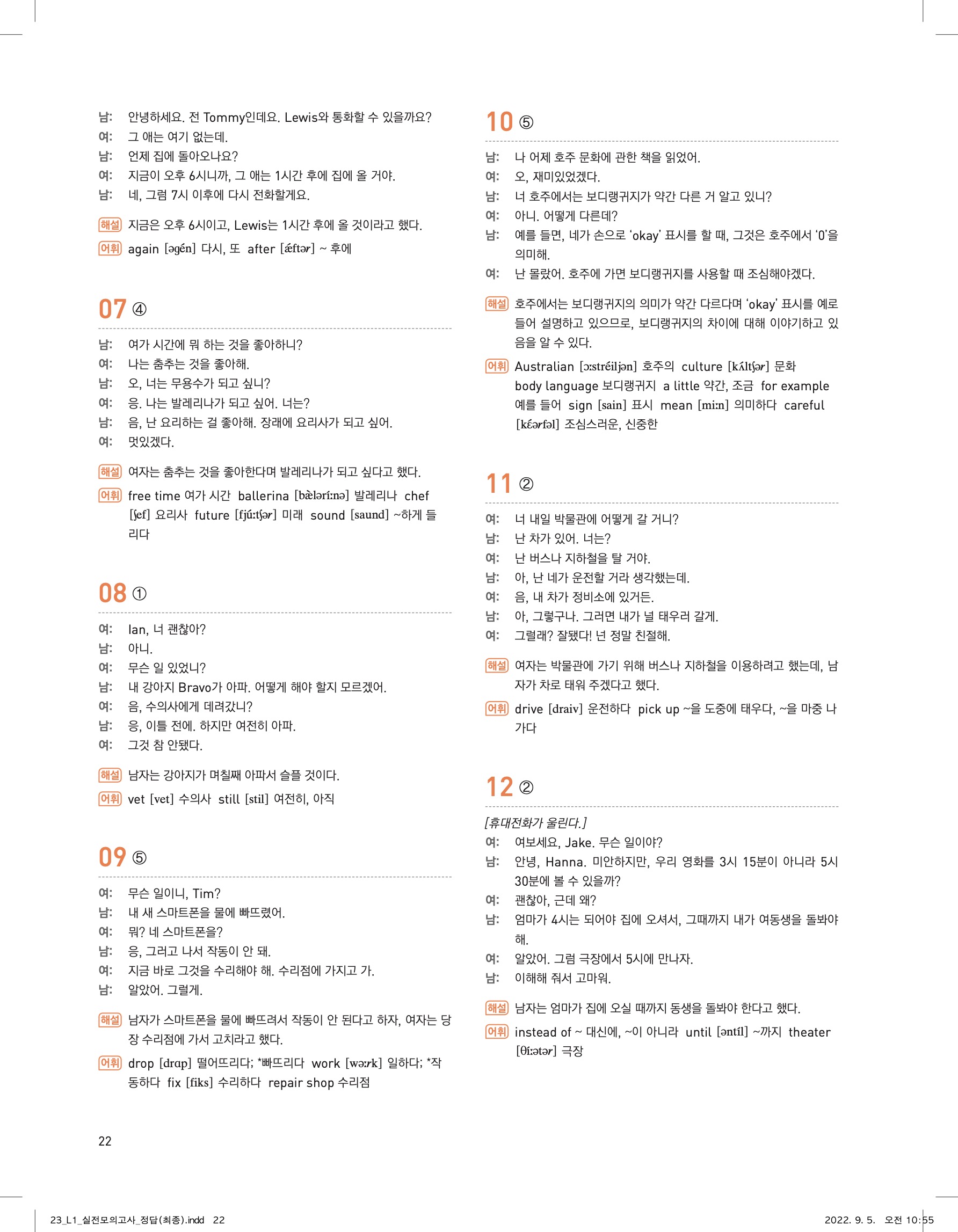 📘 능률 중학영어듣기모의고사22회 레벨3 L3 답지 및 해설
