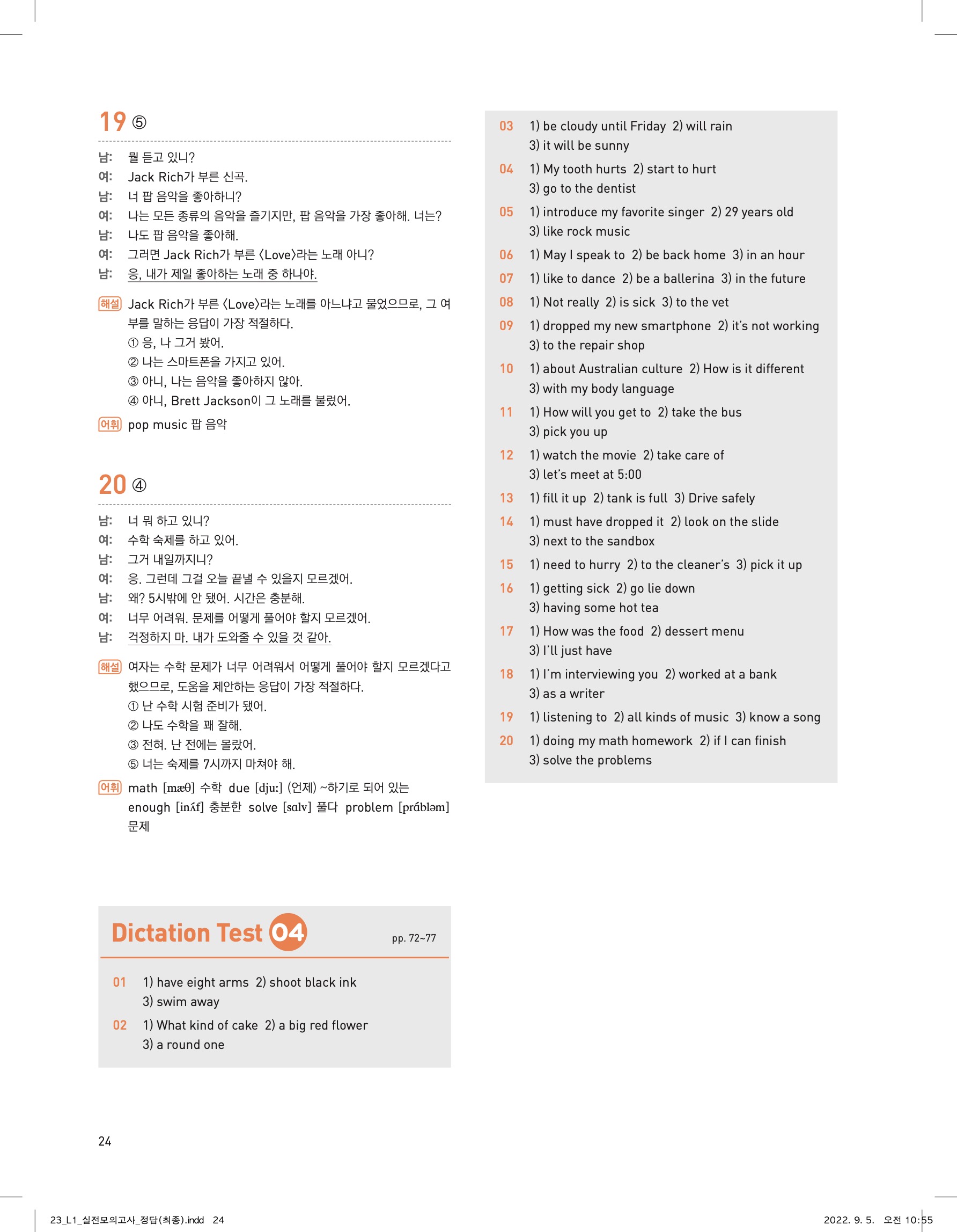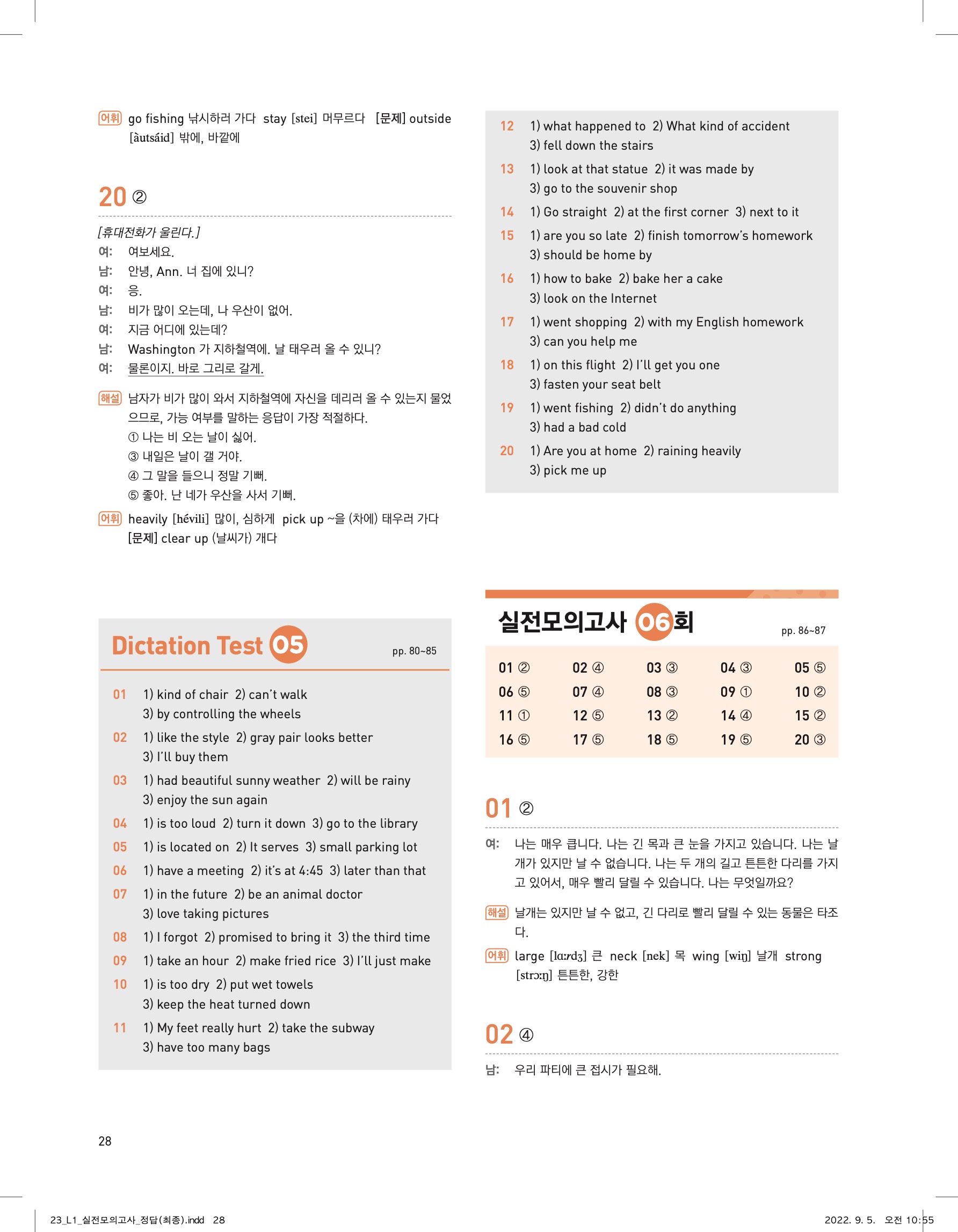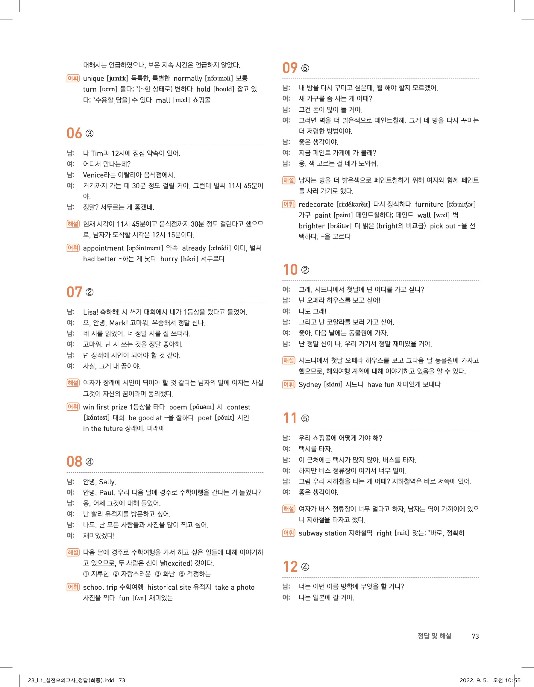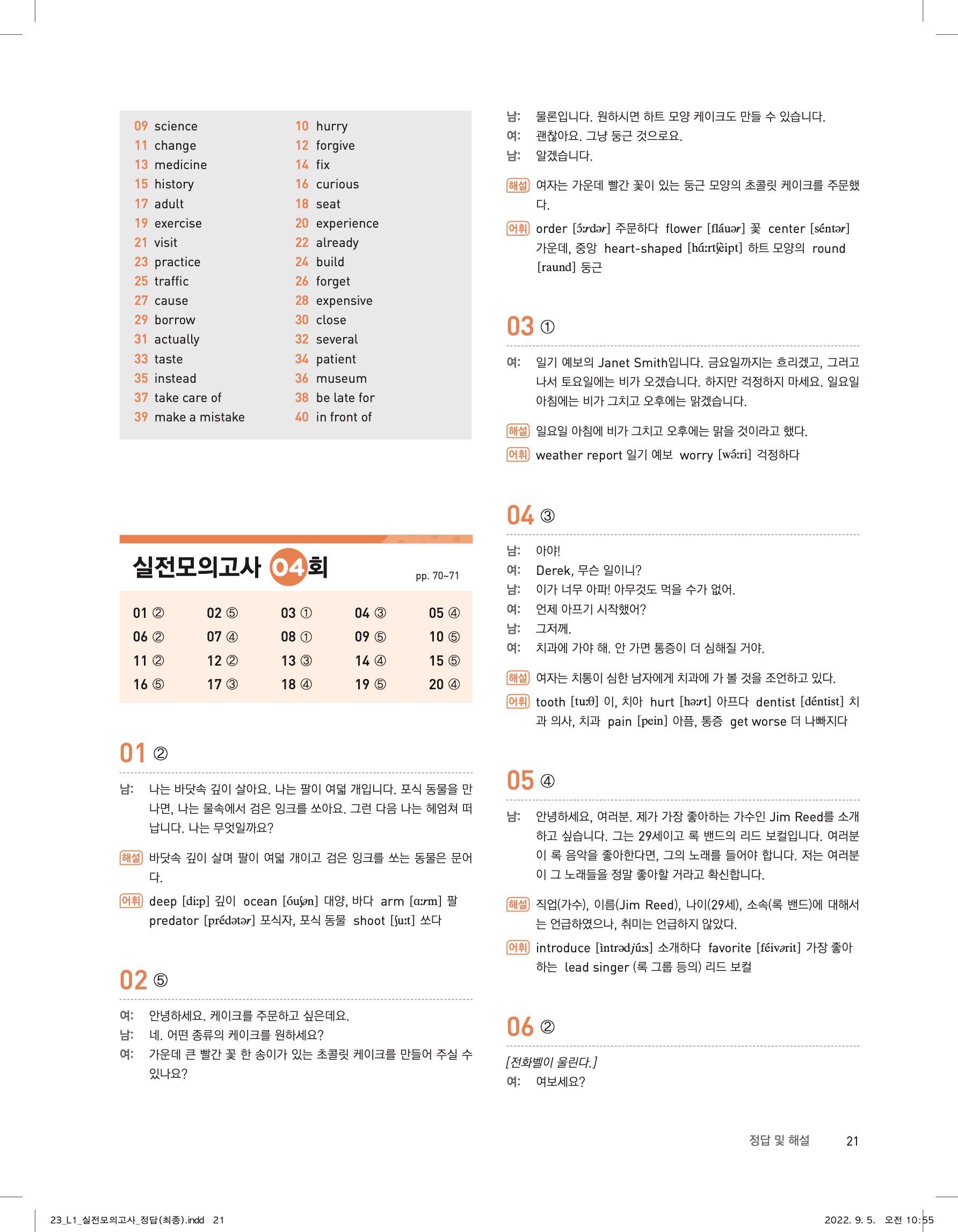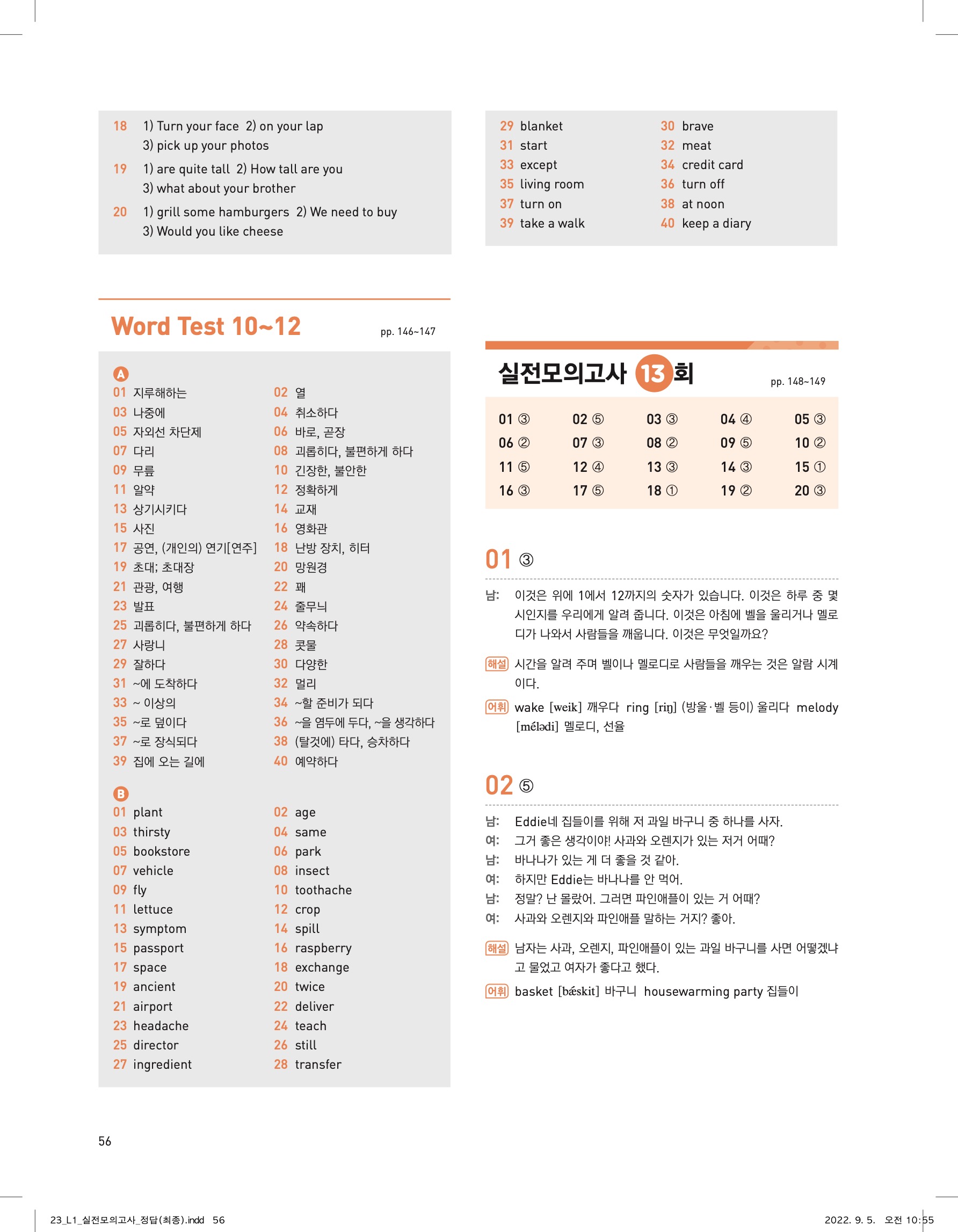 📘 능률 중학영어듣기모의고사22회 레벨3 L3 답지 및 해설