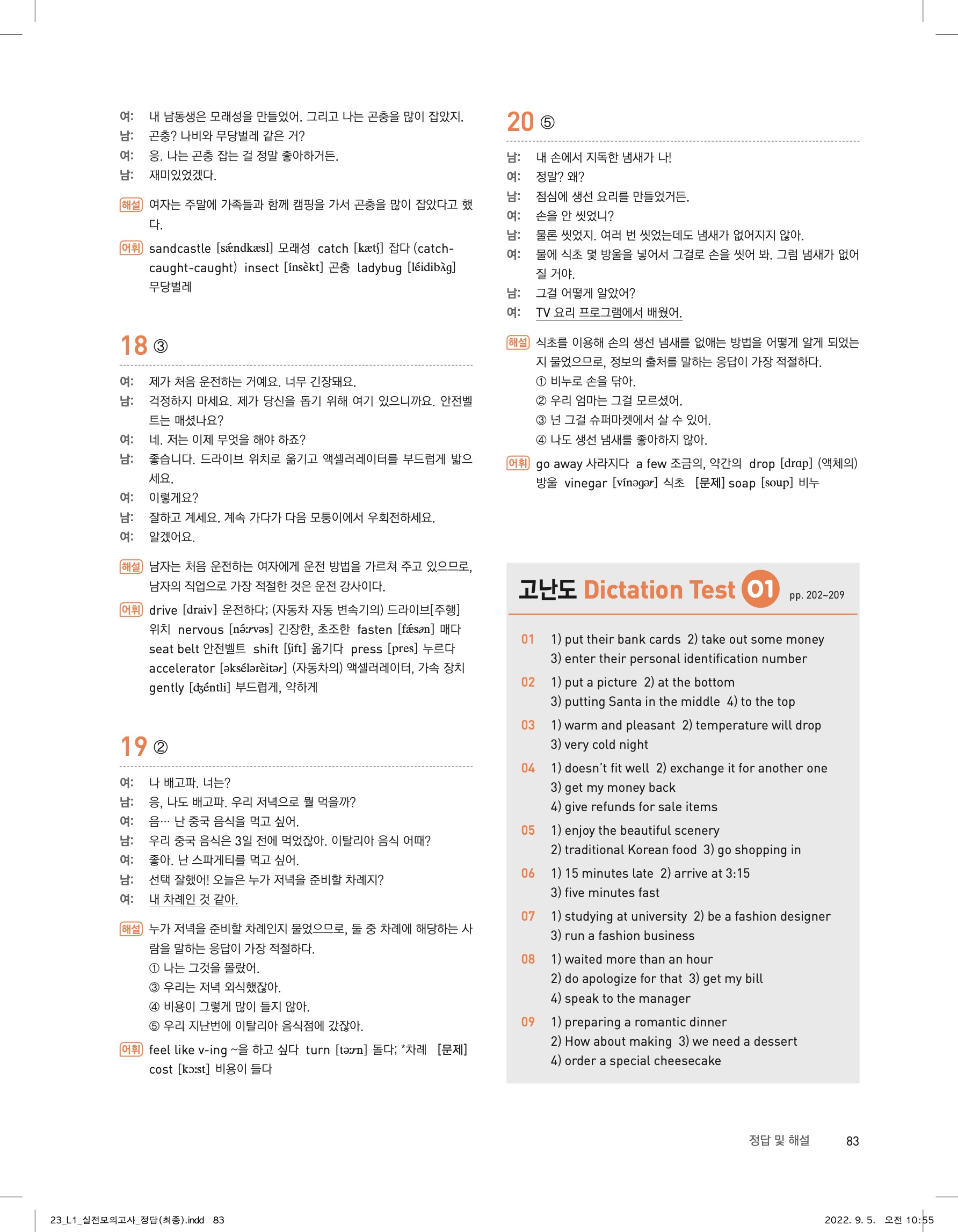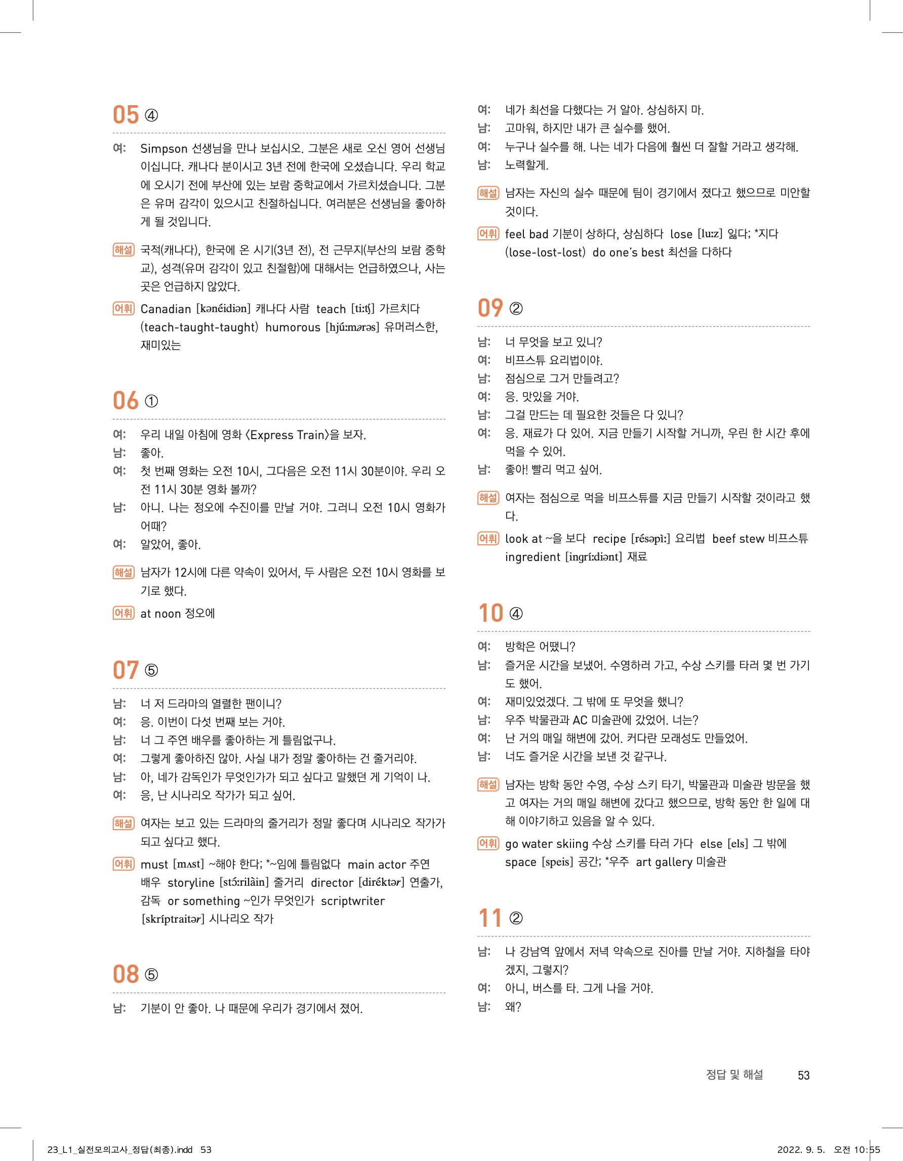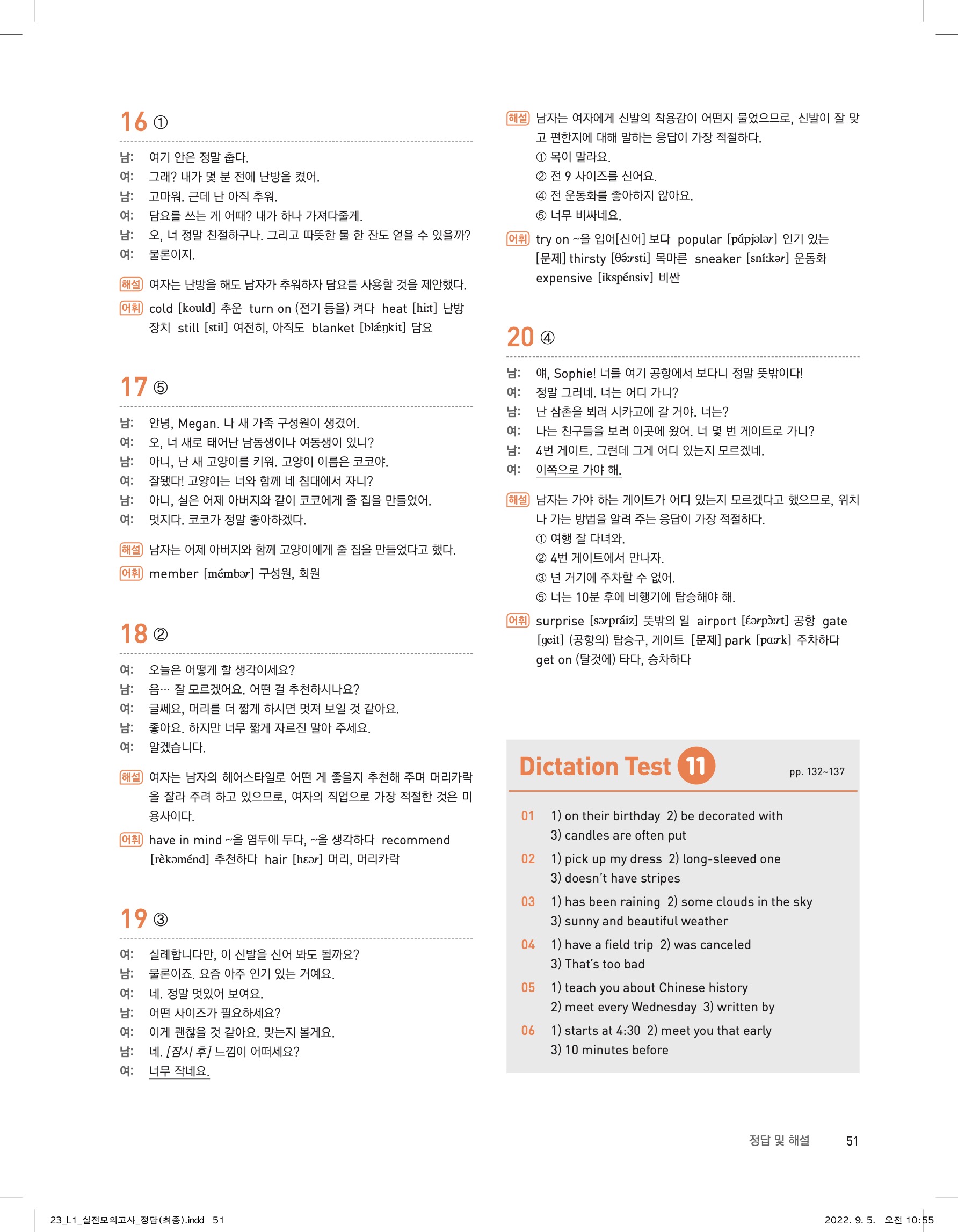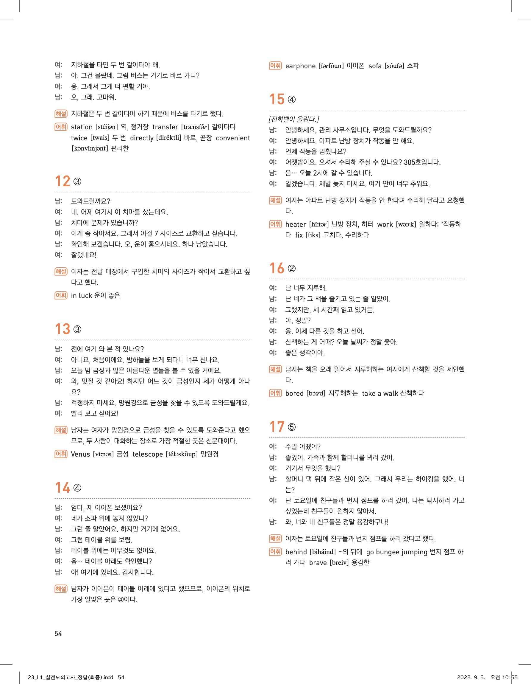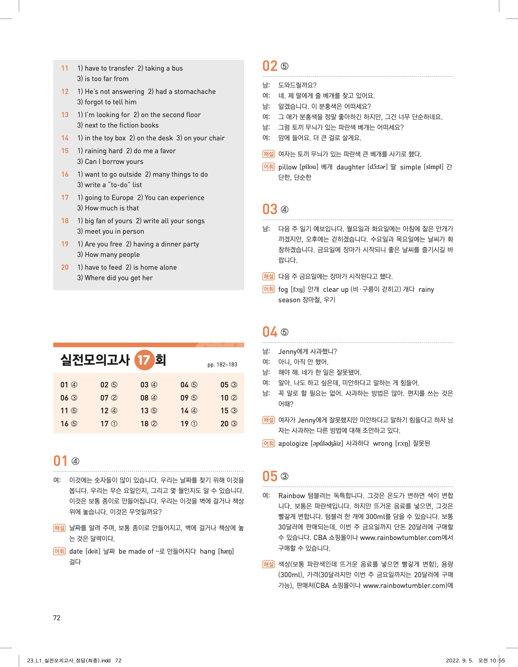 📘 능률 중학영어듣기모의고사22회 레벨3 L3 답지 및 해설