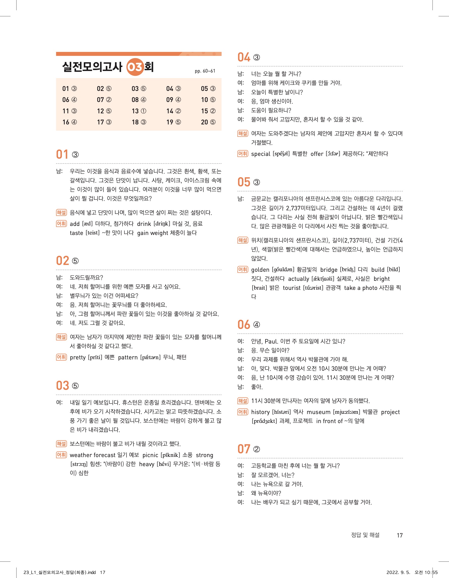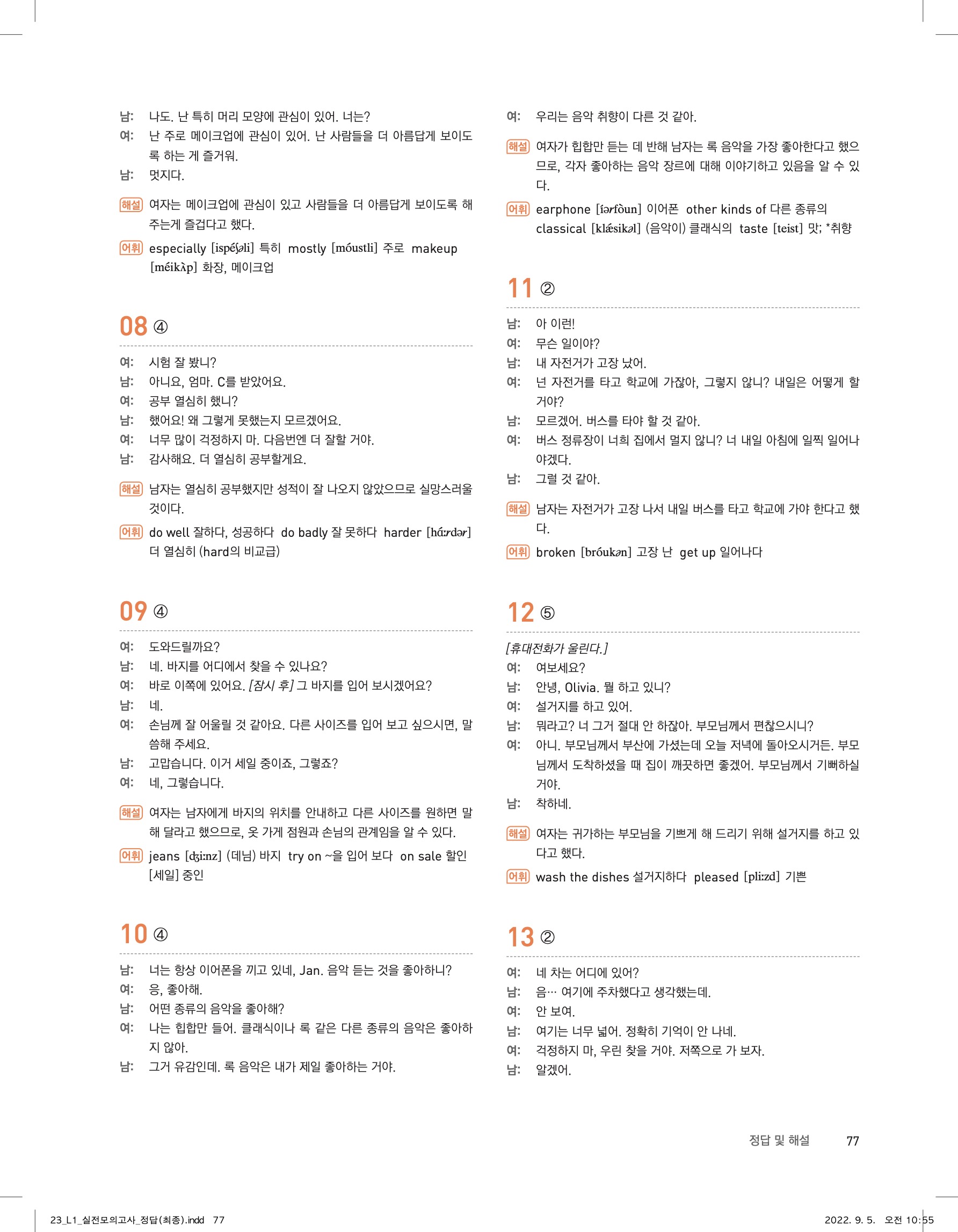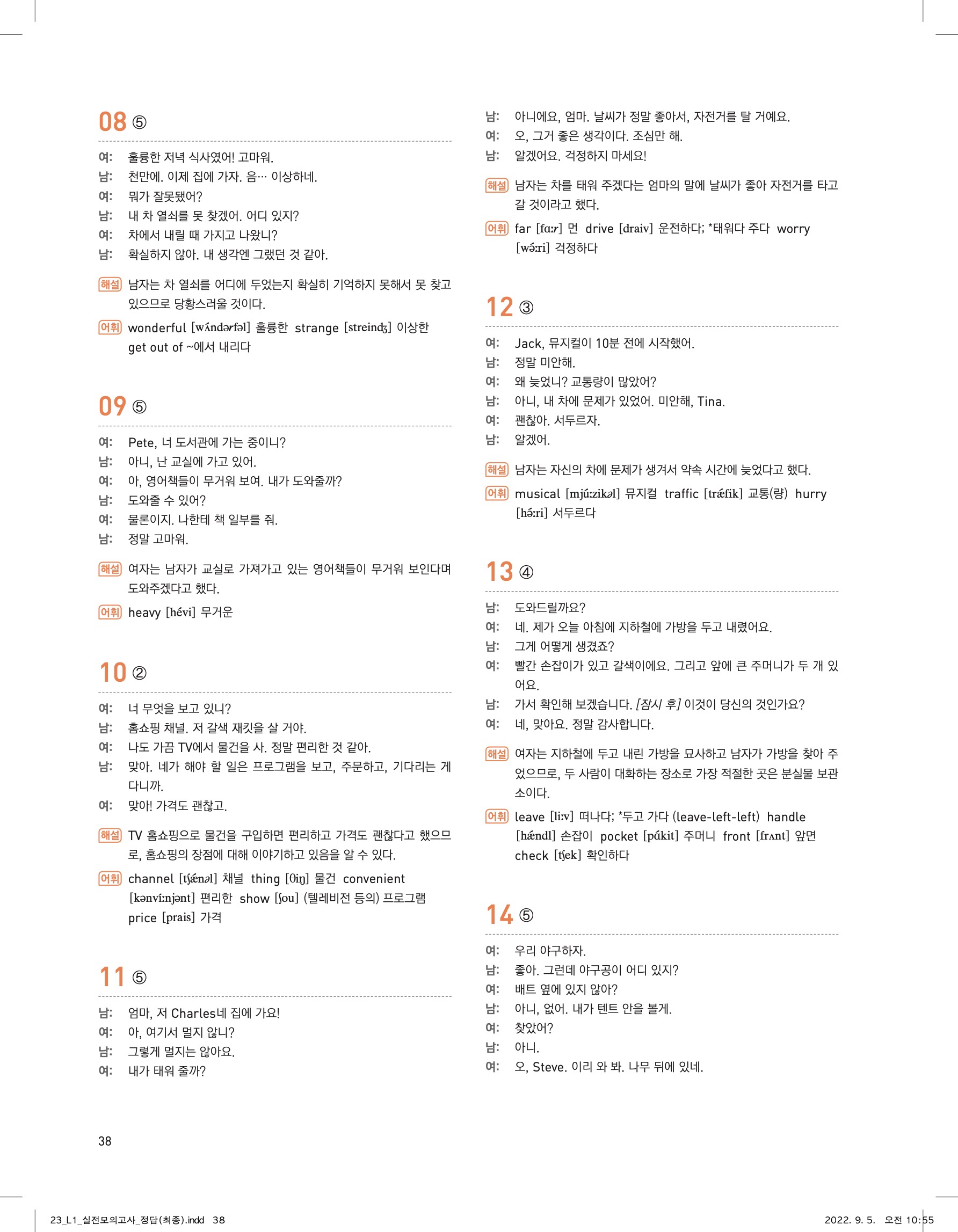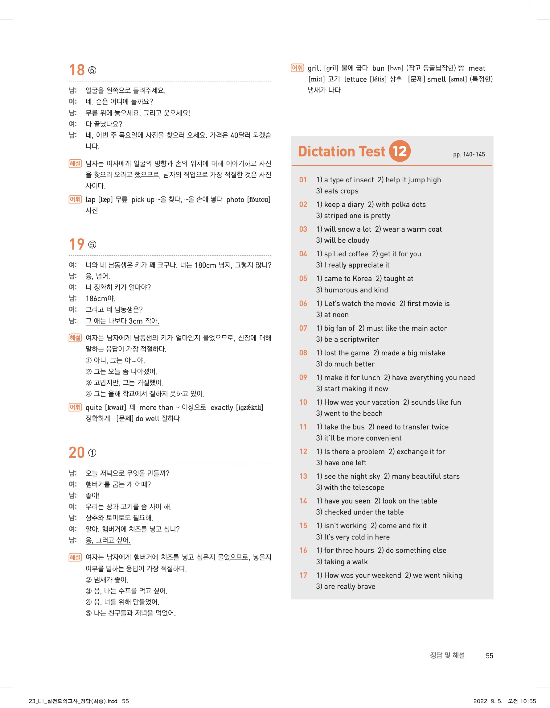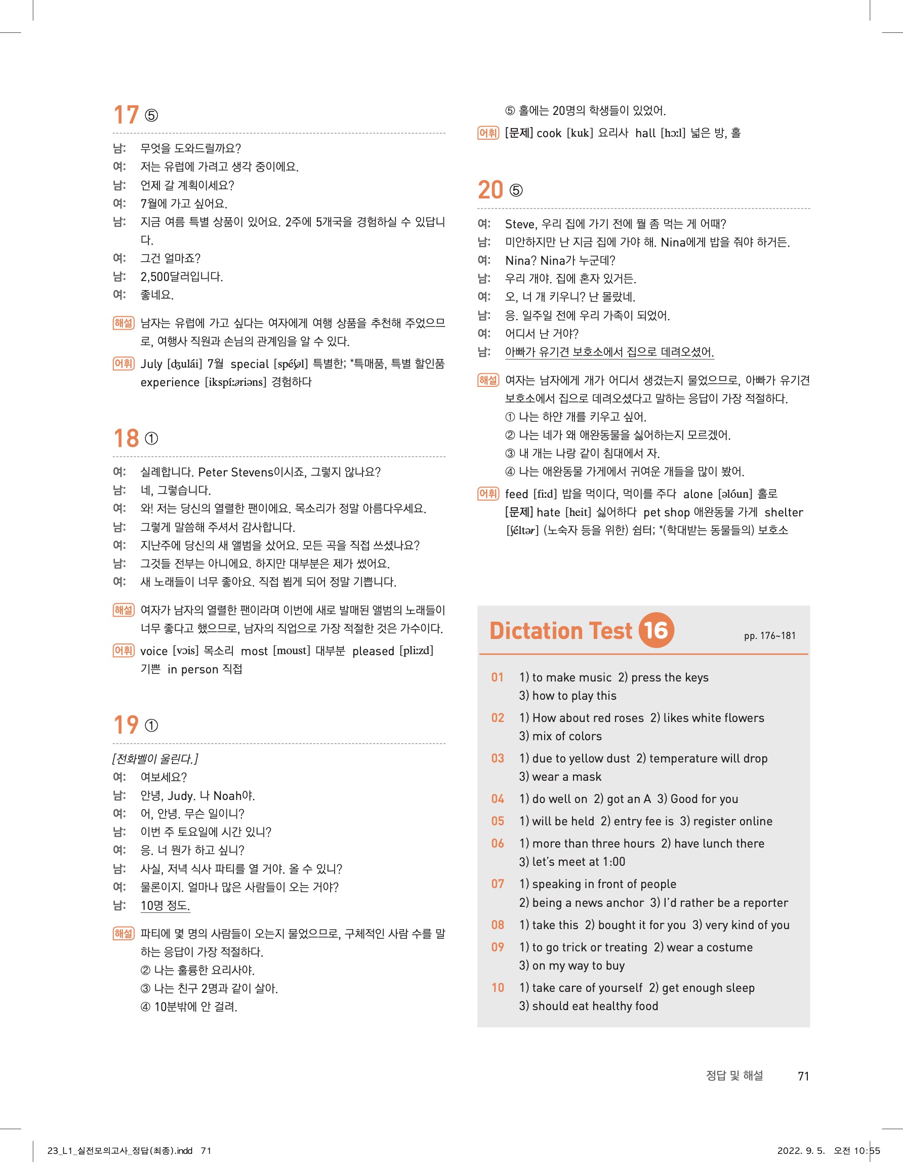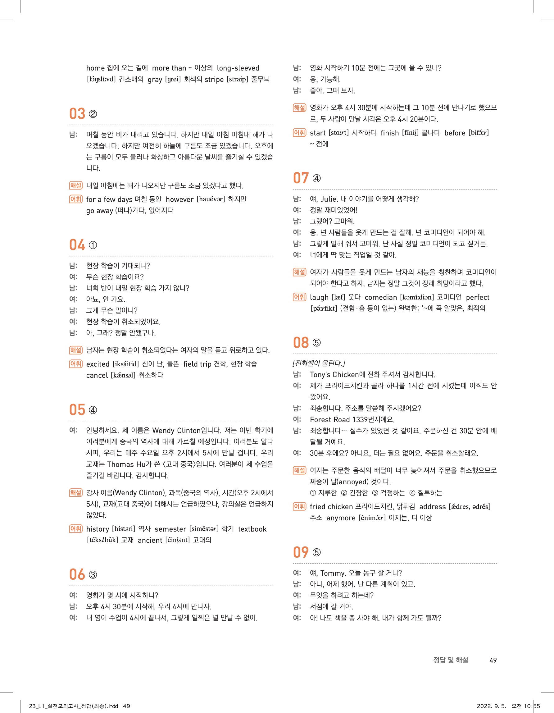 📘 능률 중학영어듣기모의고사22회 레벨3 L3 답지 및 해설
