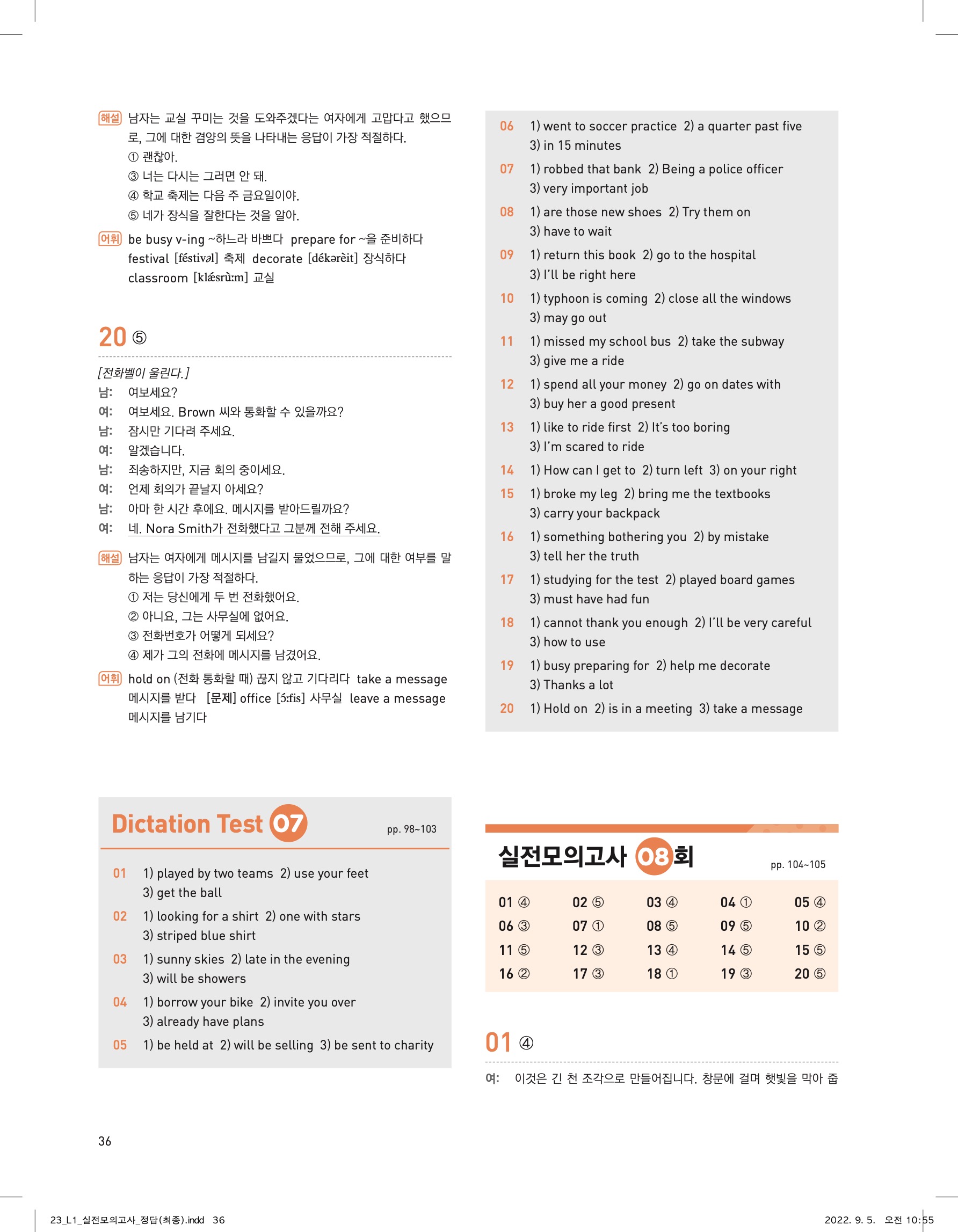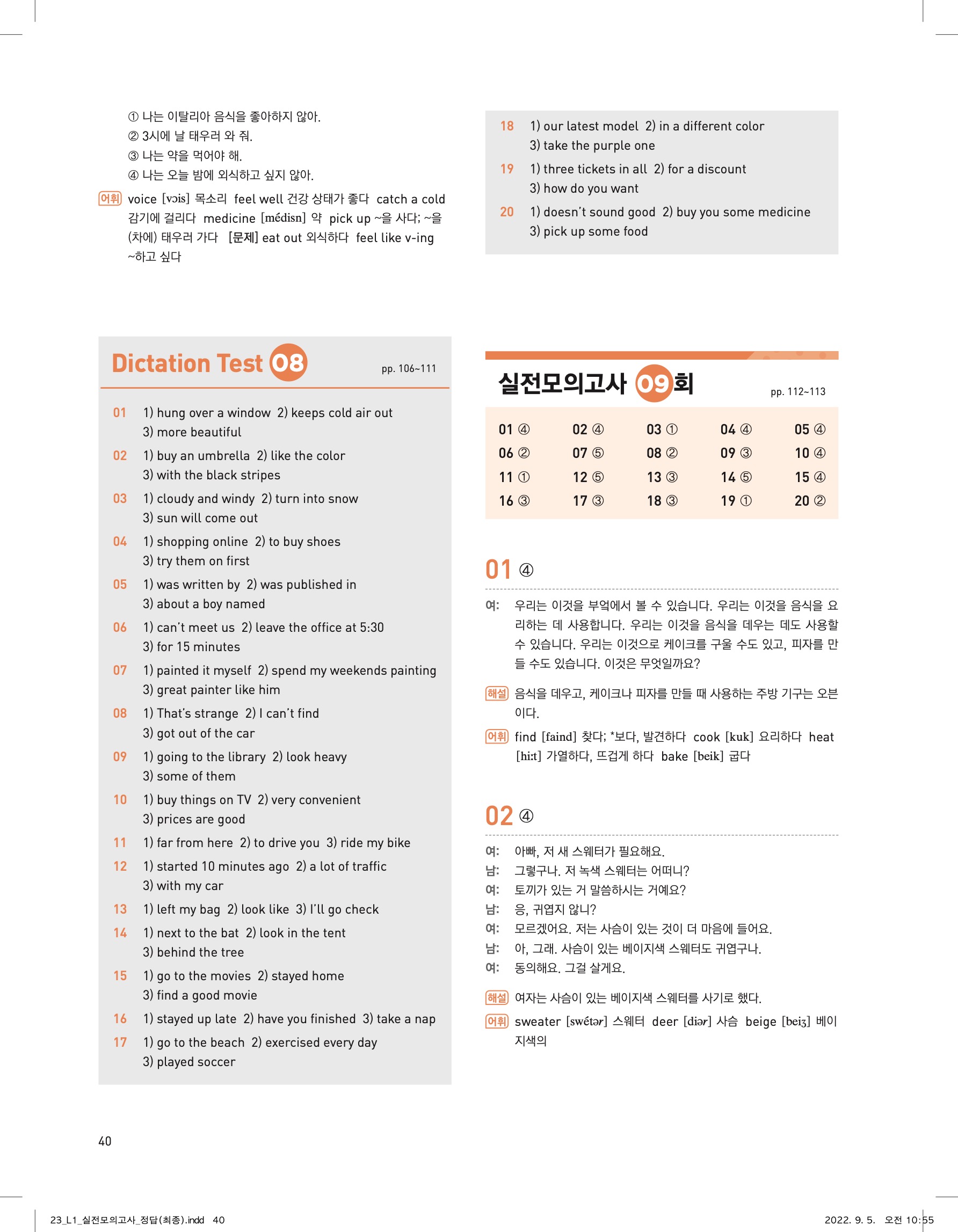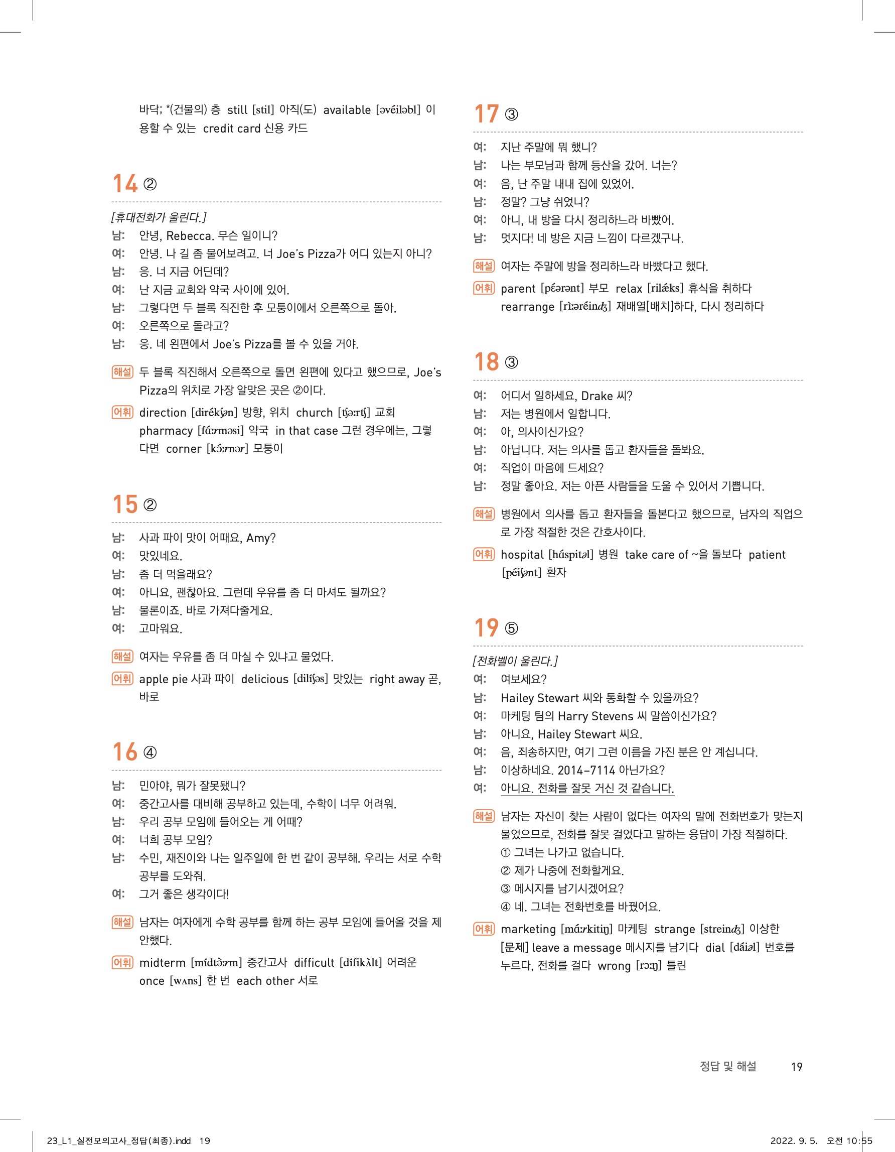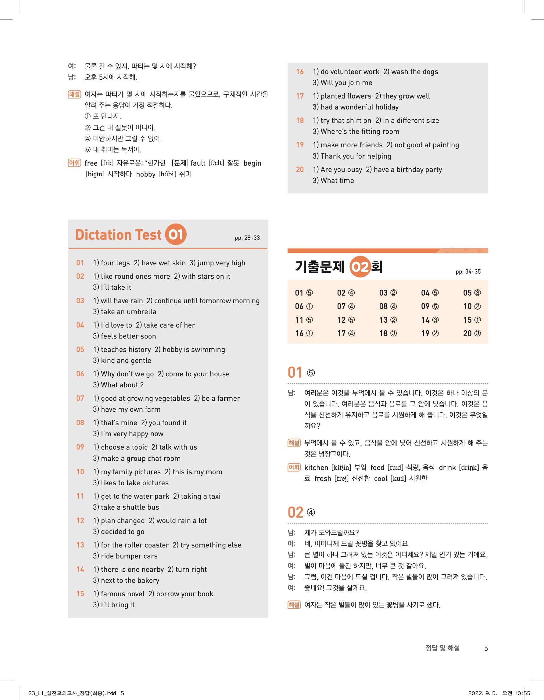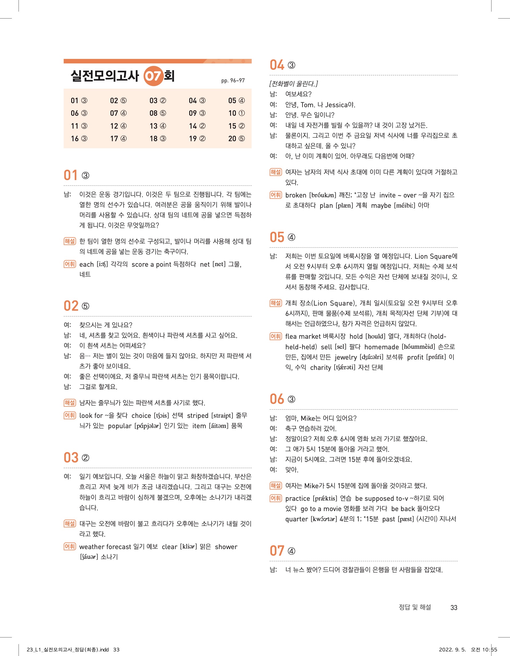 📘 능률 중학영어듣기모의고사22회 레벨3 L3 답지 및 해설