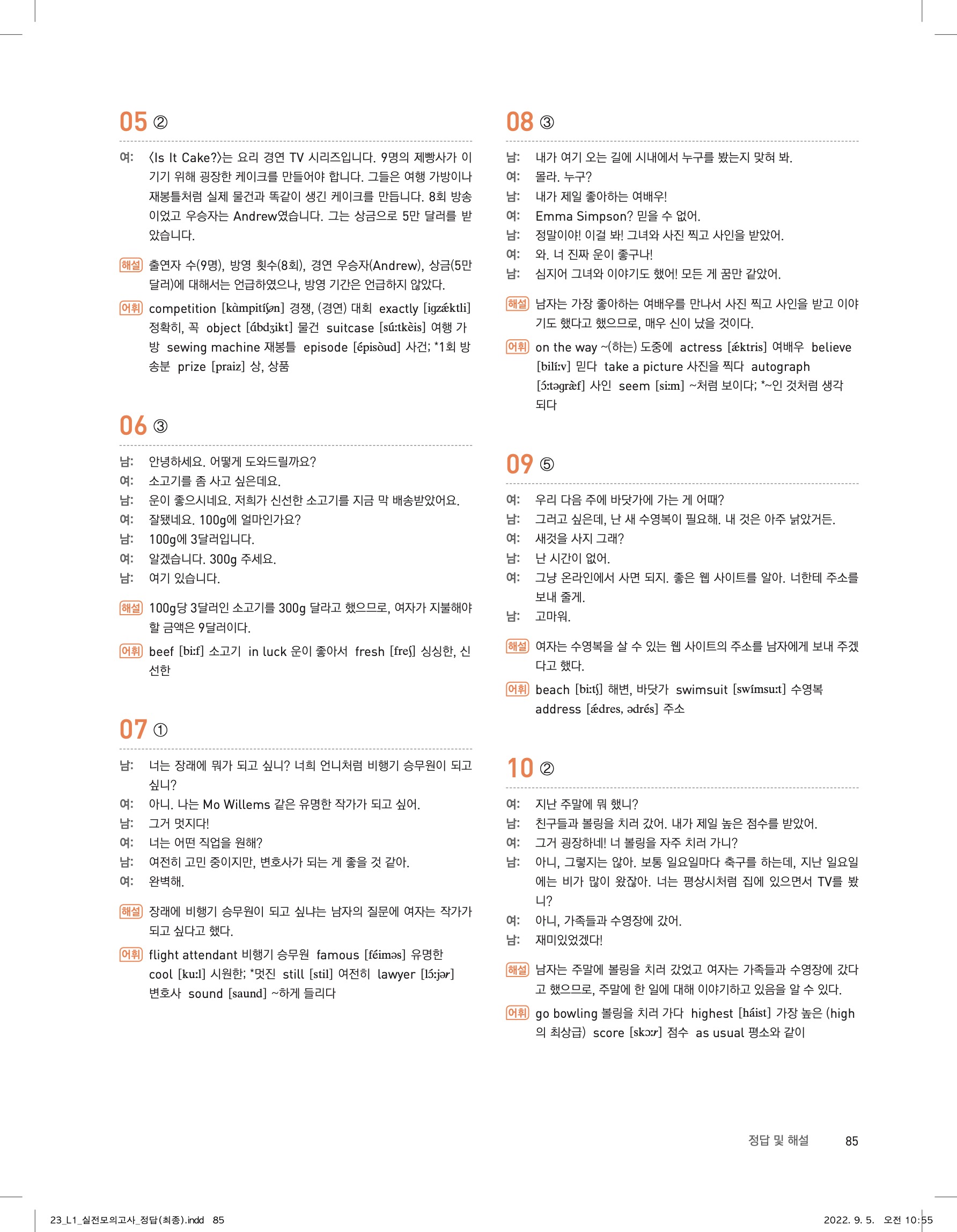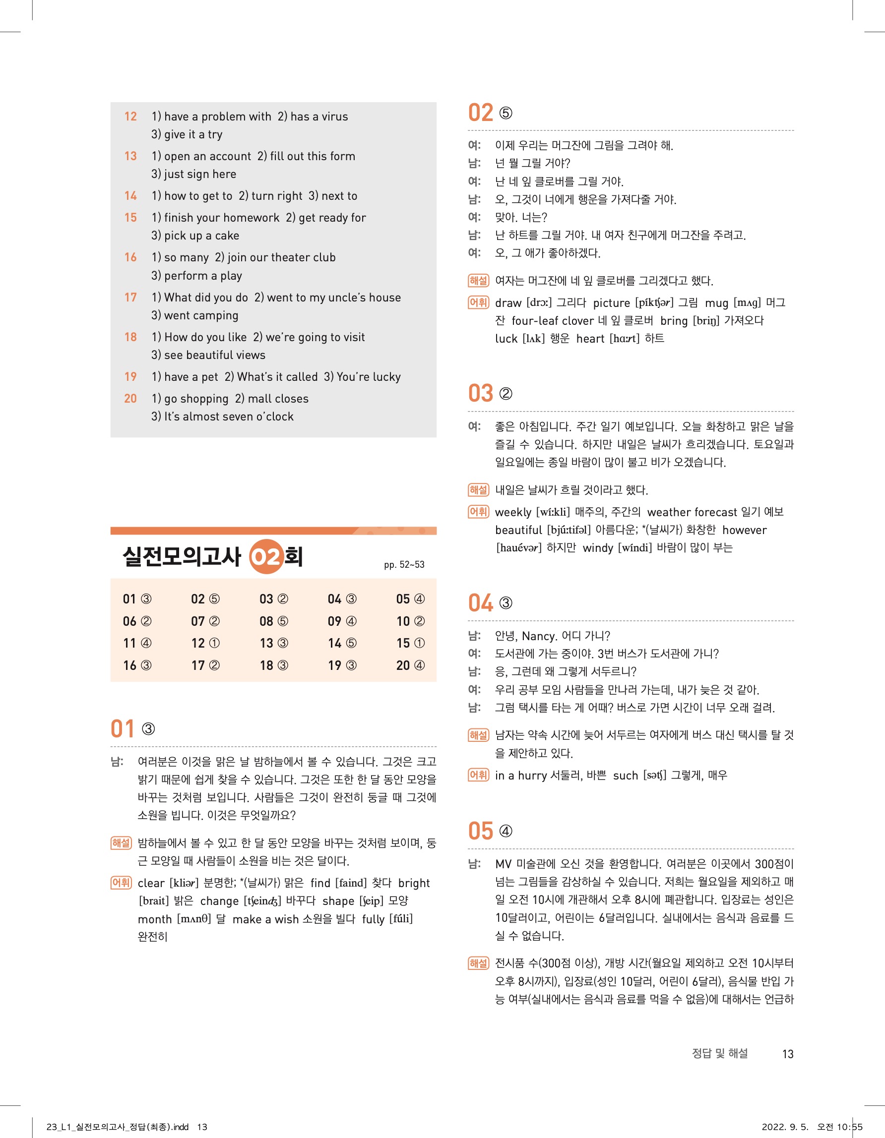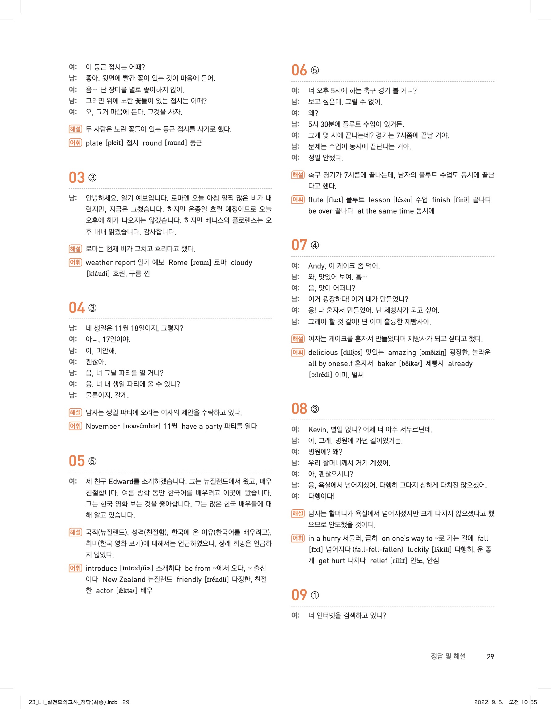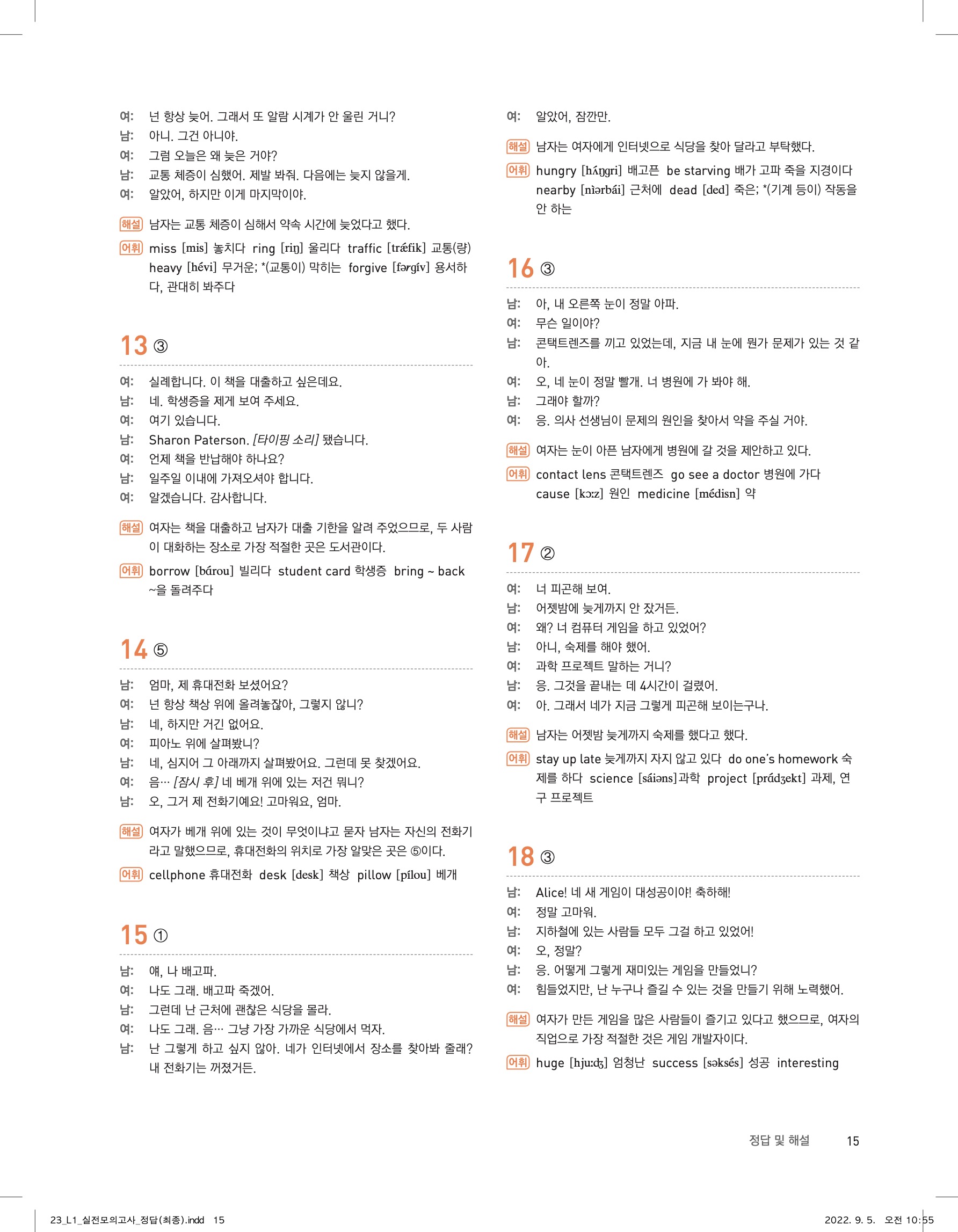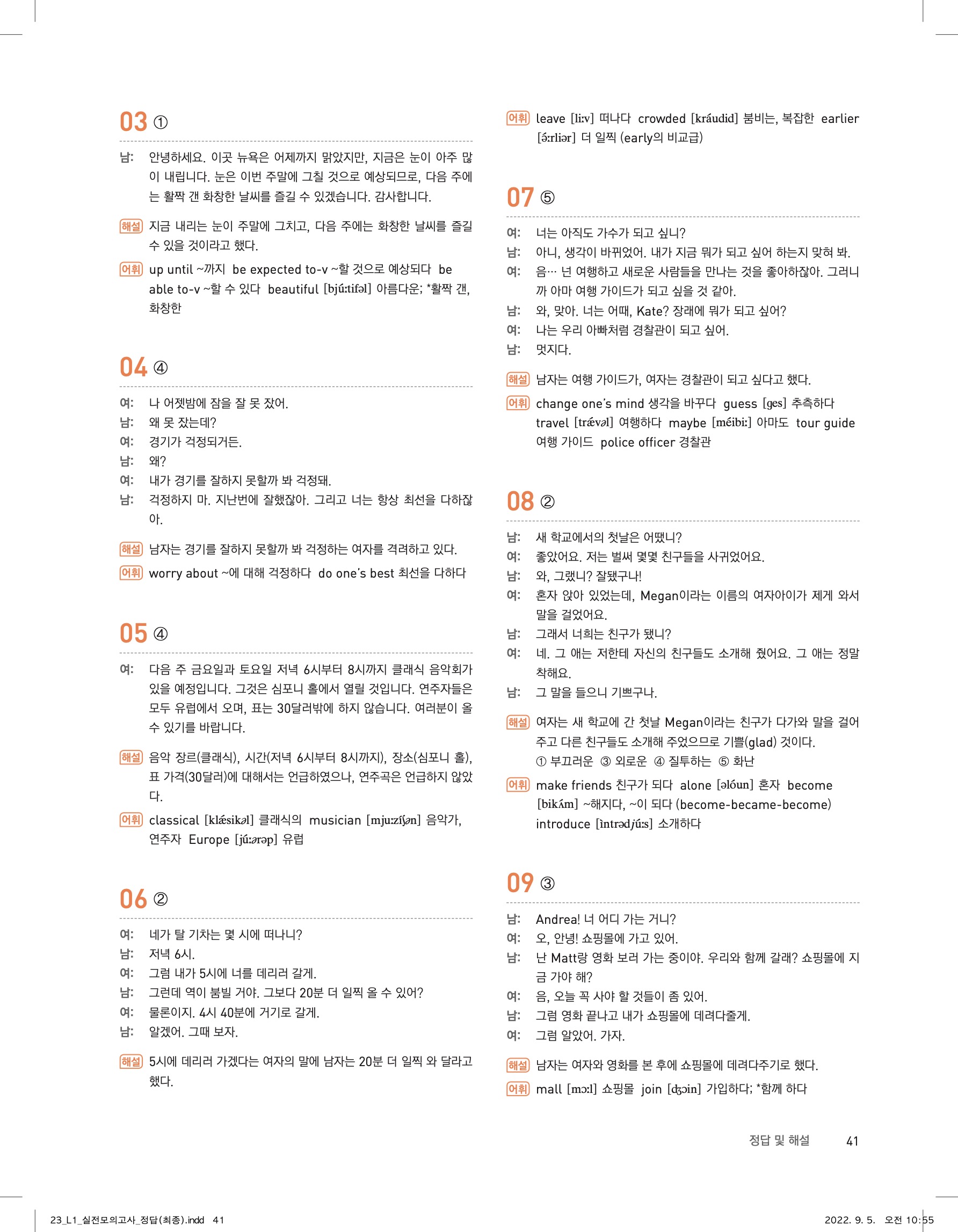 📘 능률 중학영어듣기모의고사22회 레벨3 L3 답지 및 해설