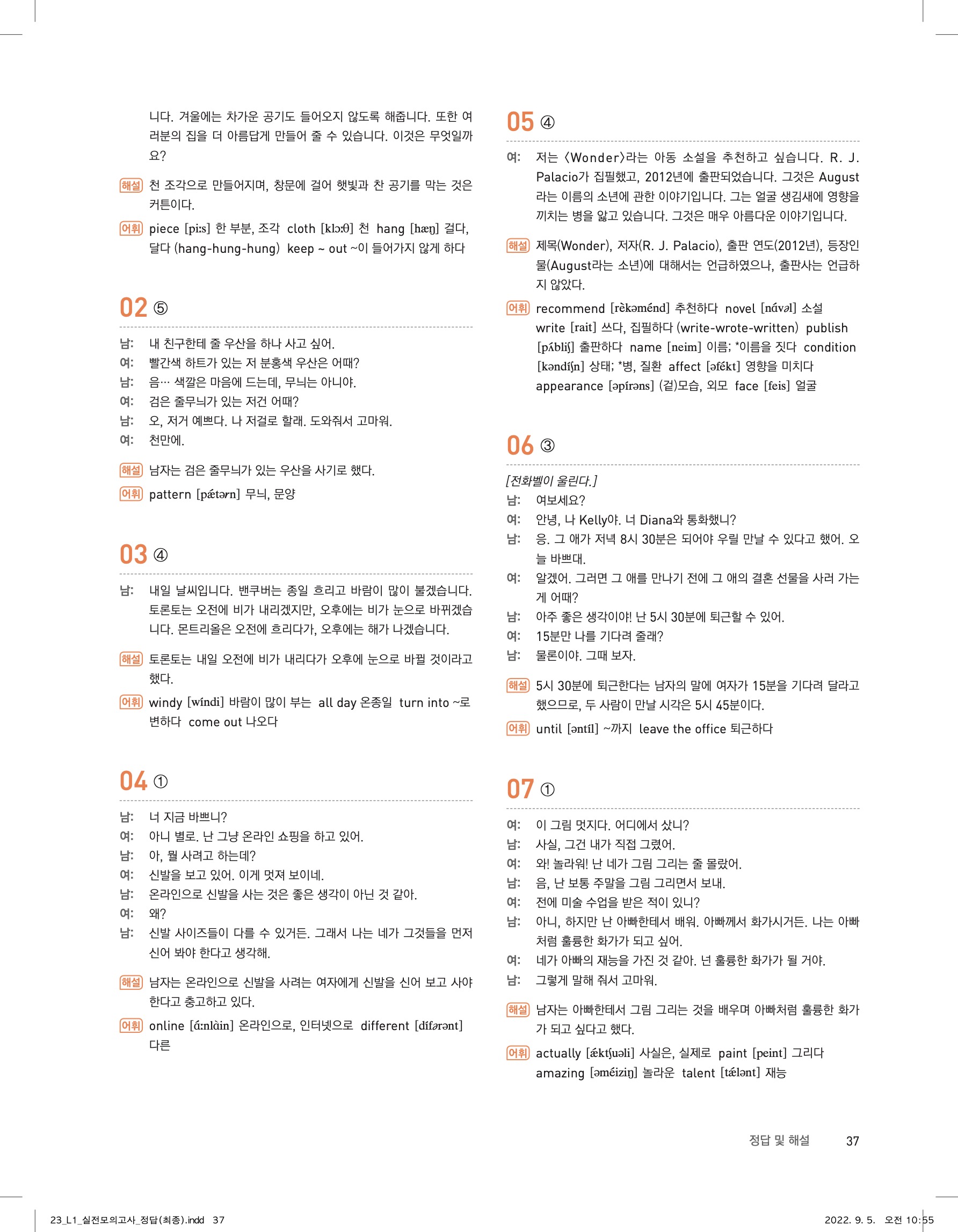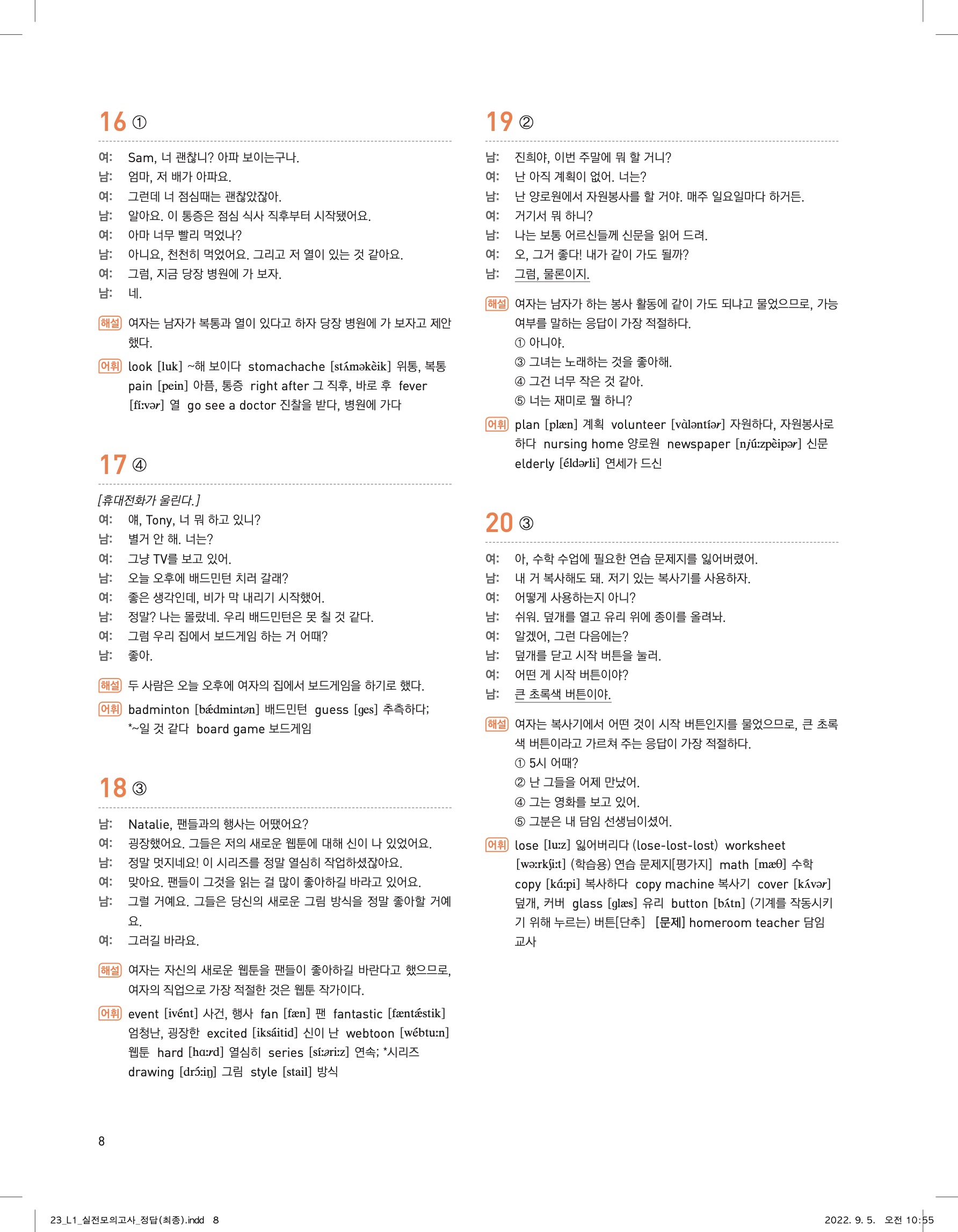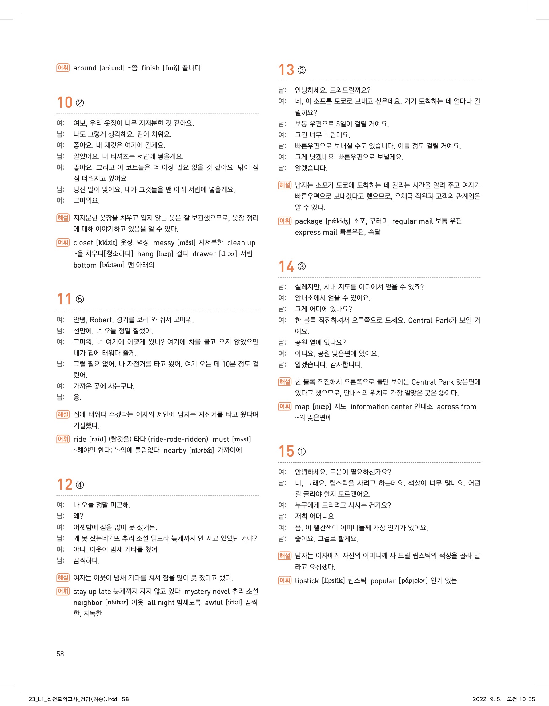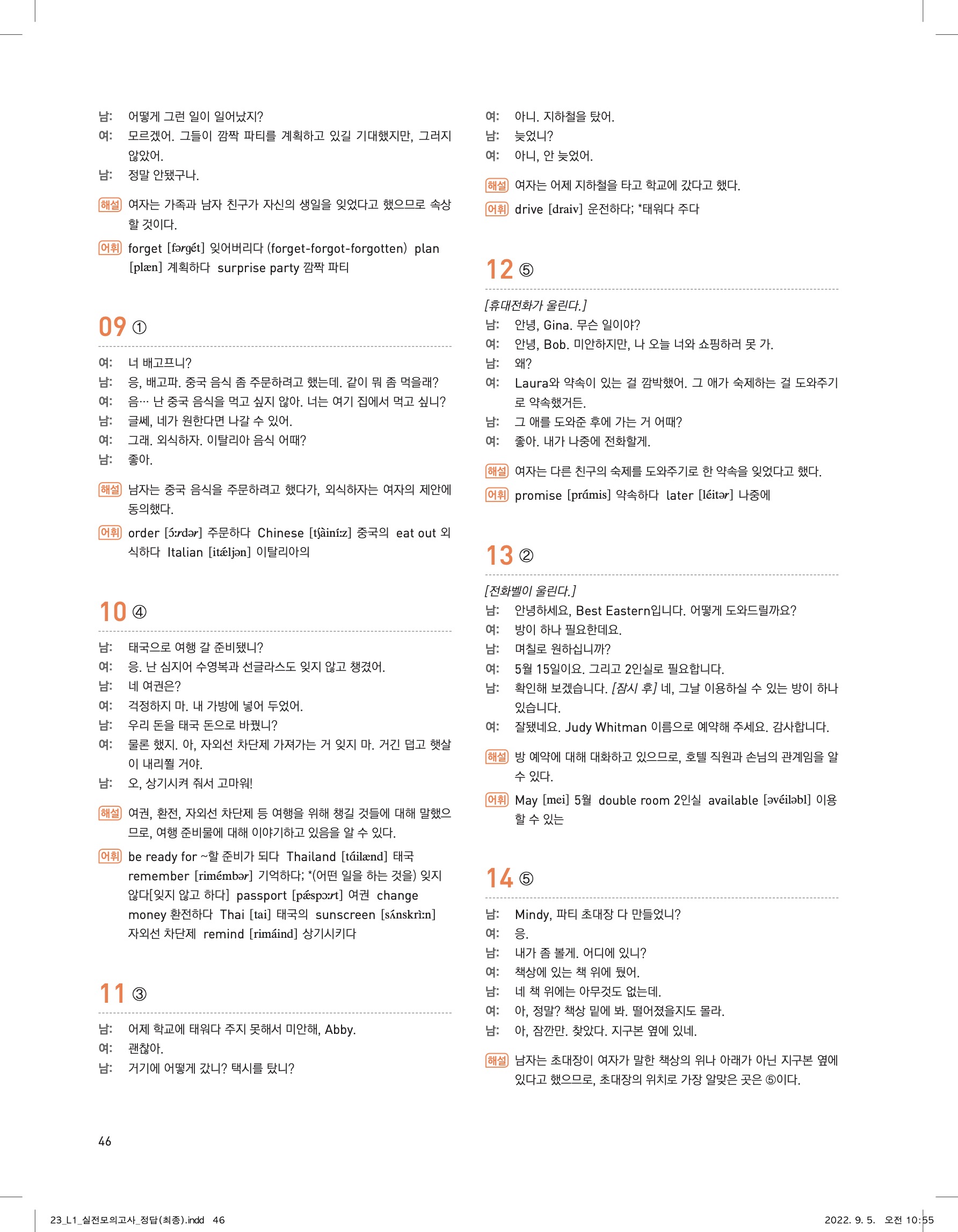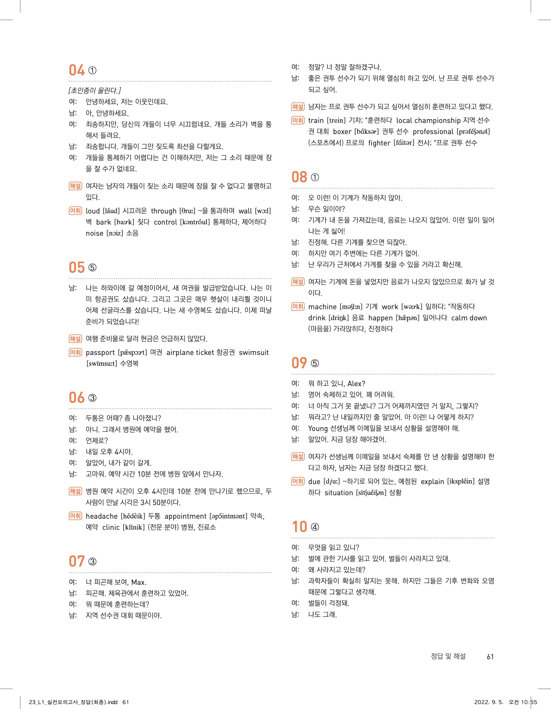 📘 능률 중학영어듣기모의고사22회 레벨3 L3 답지 및 해설