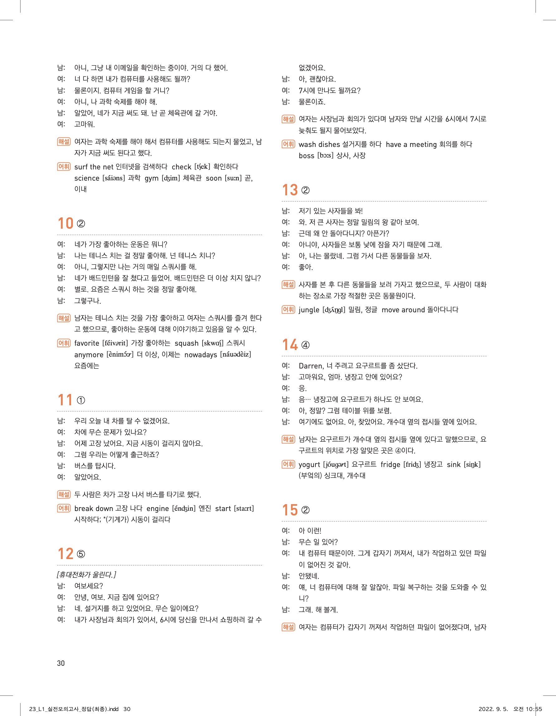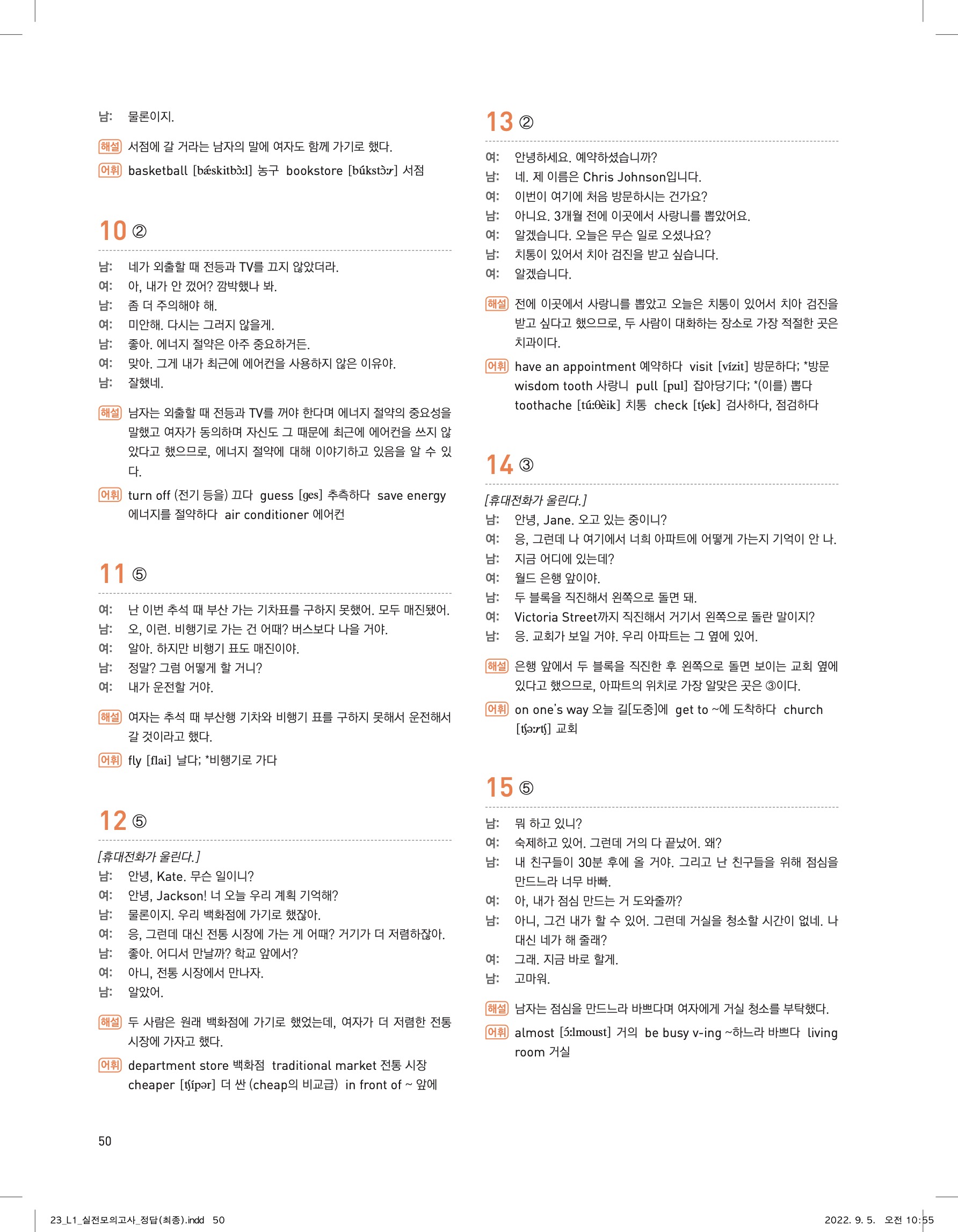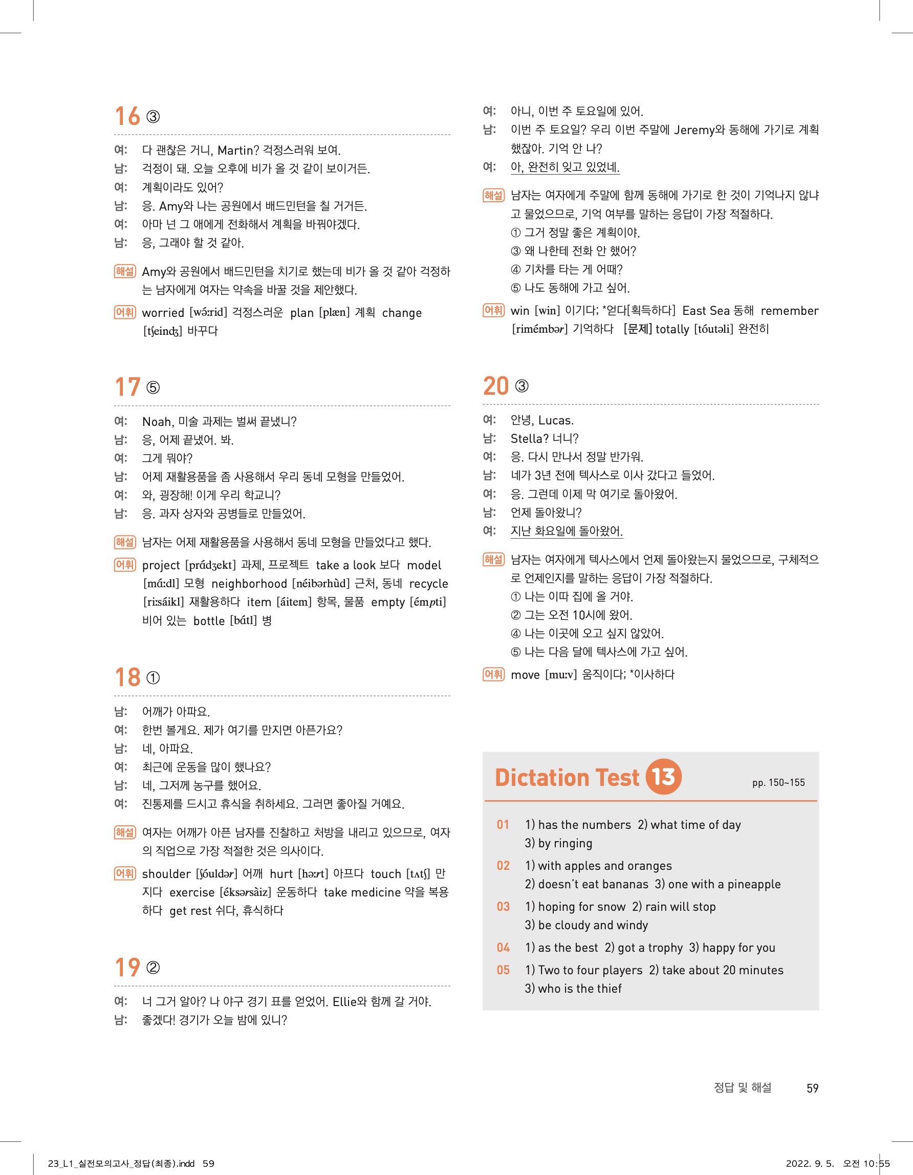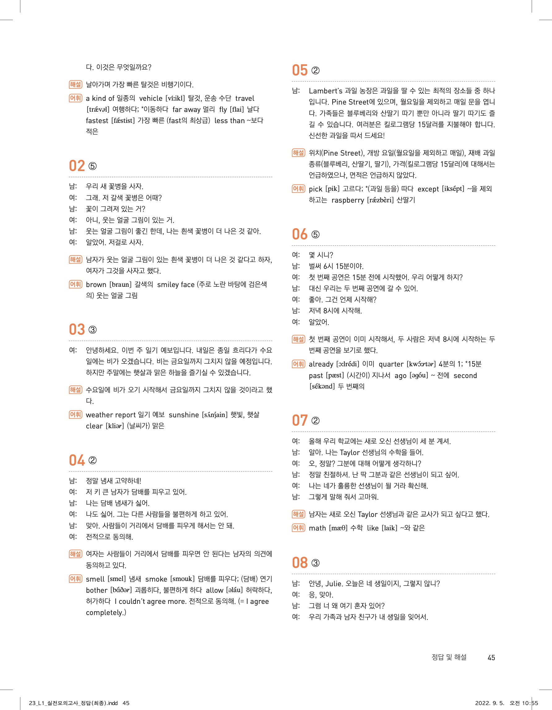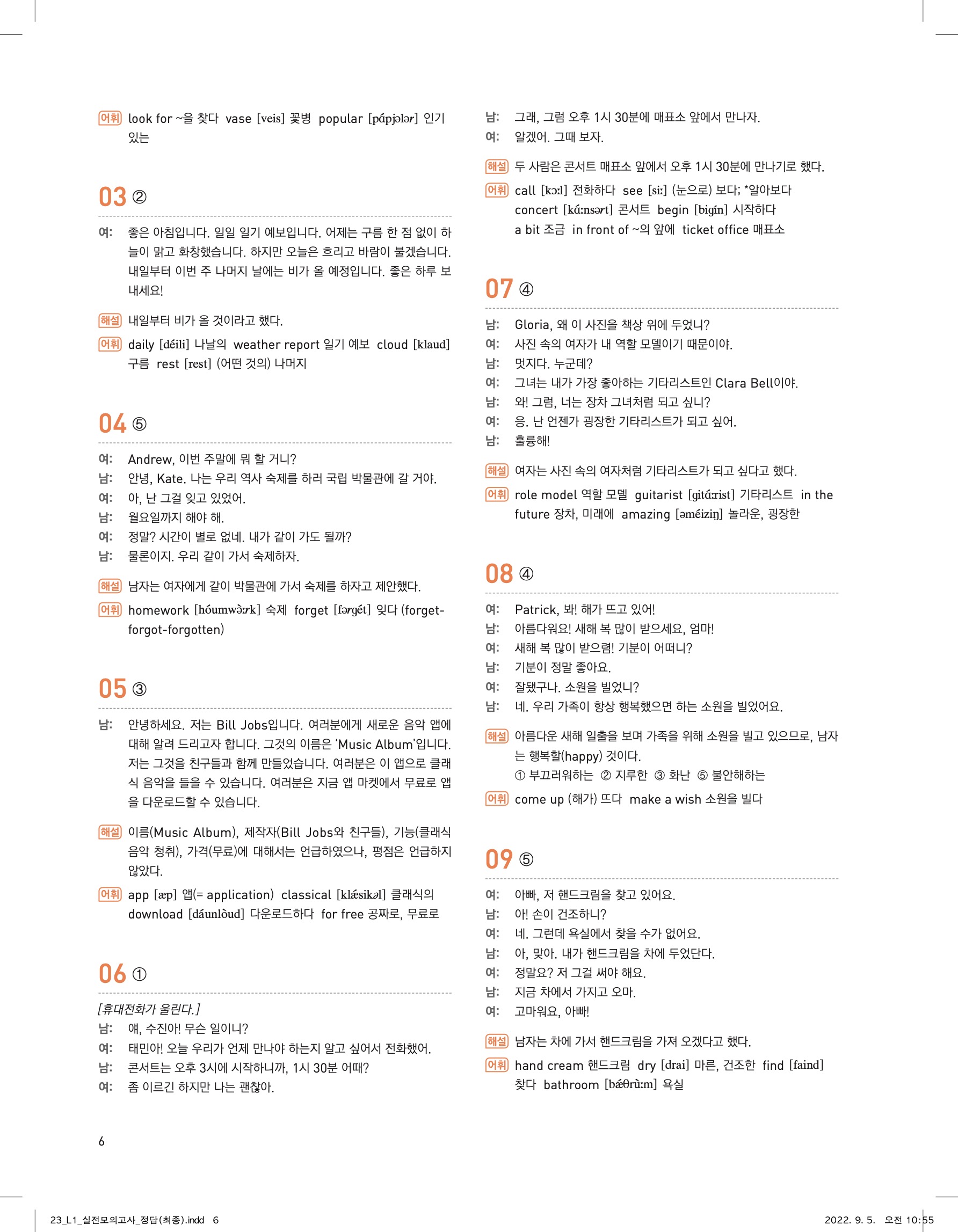 📘 능률 중학영어듣기모의고사22회 레벨3 L3 답지 및 해설