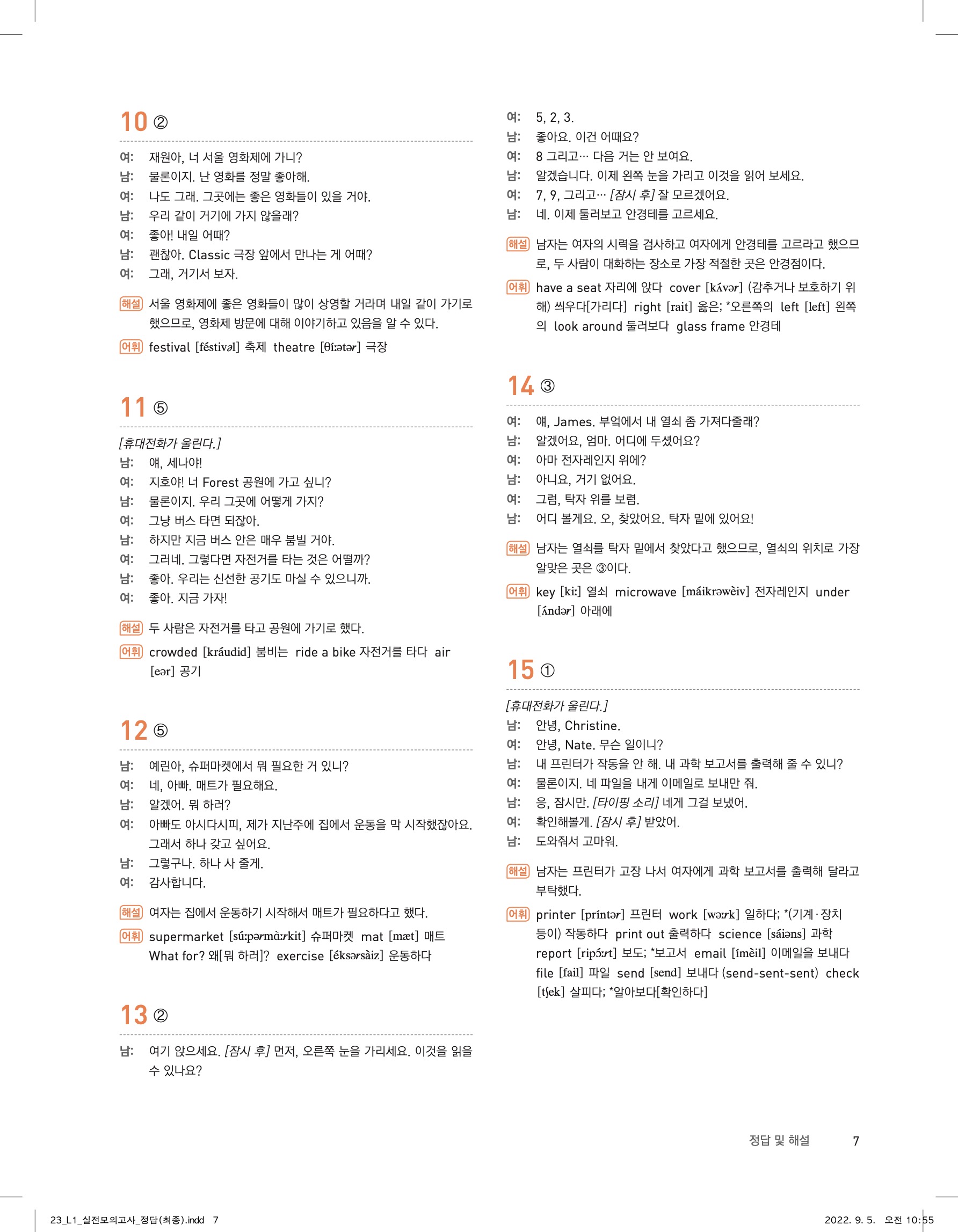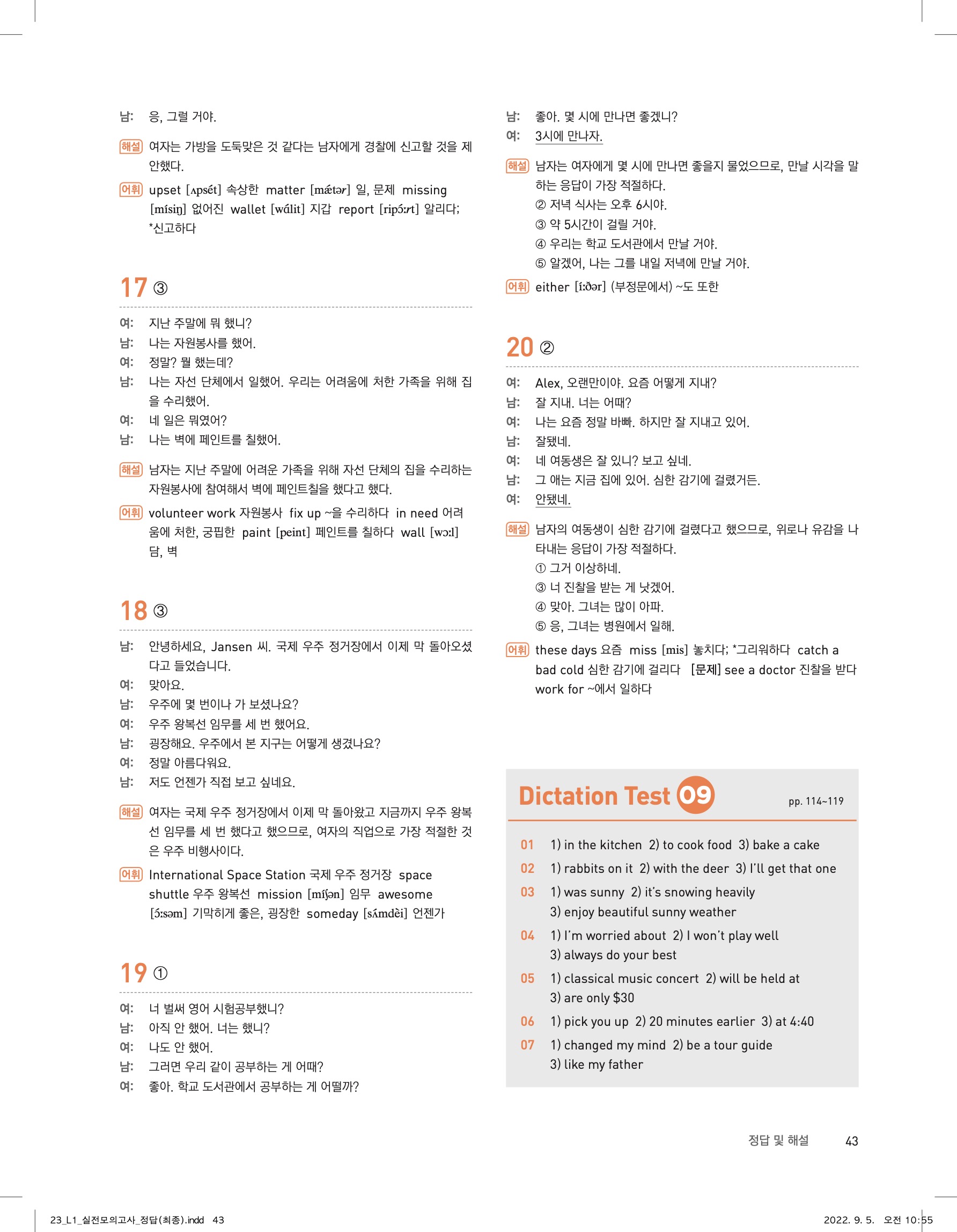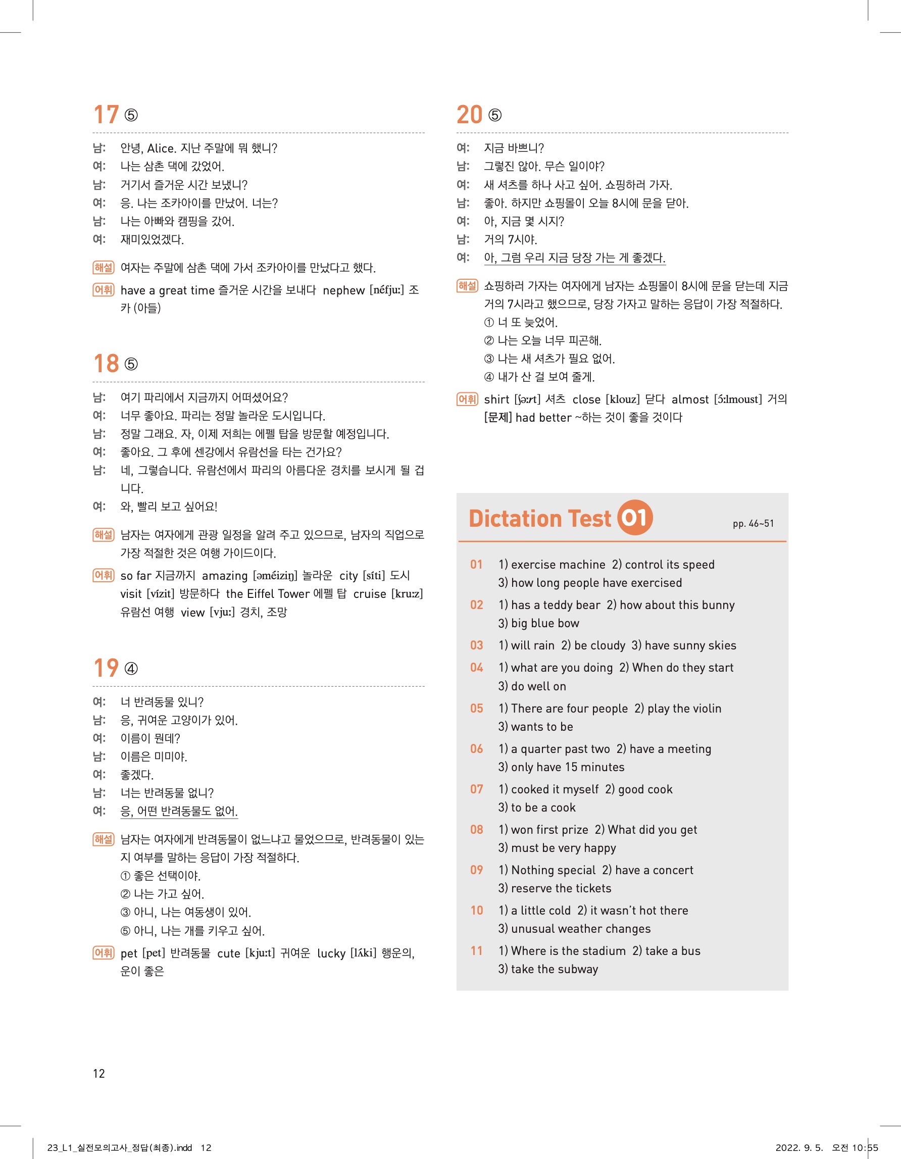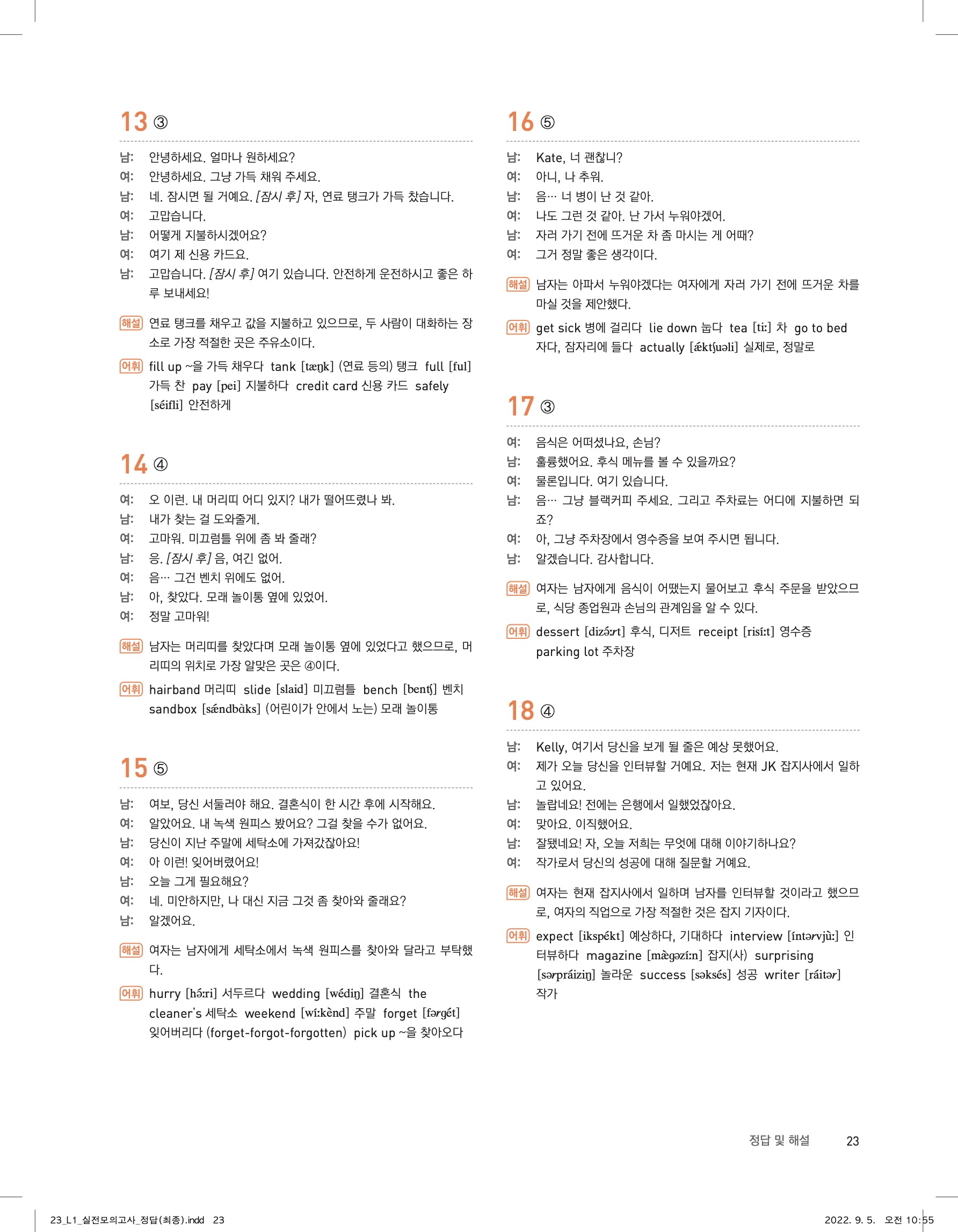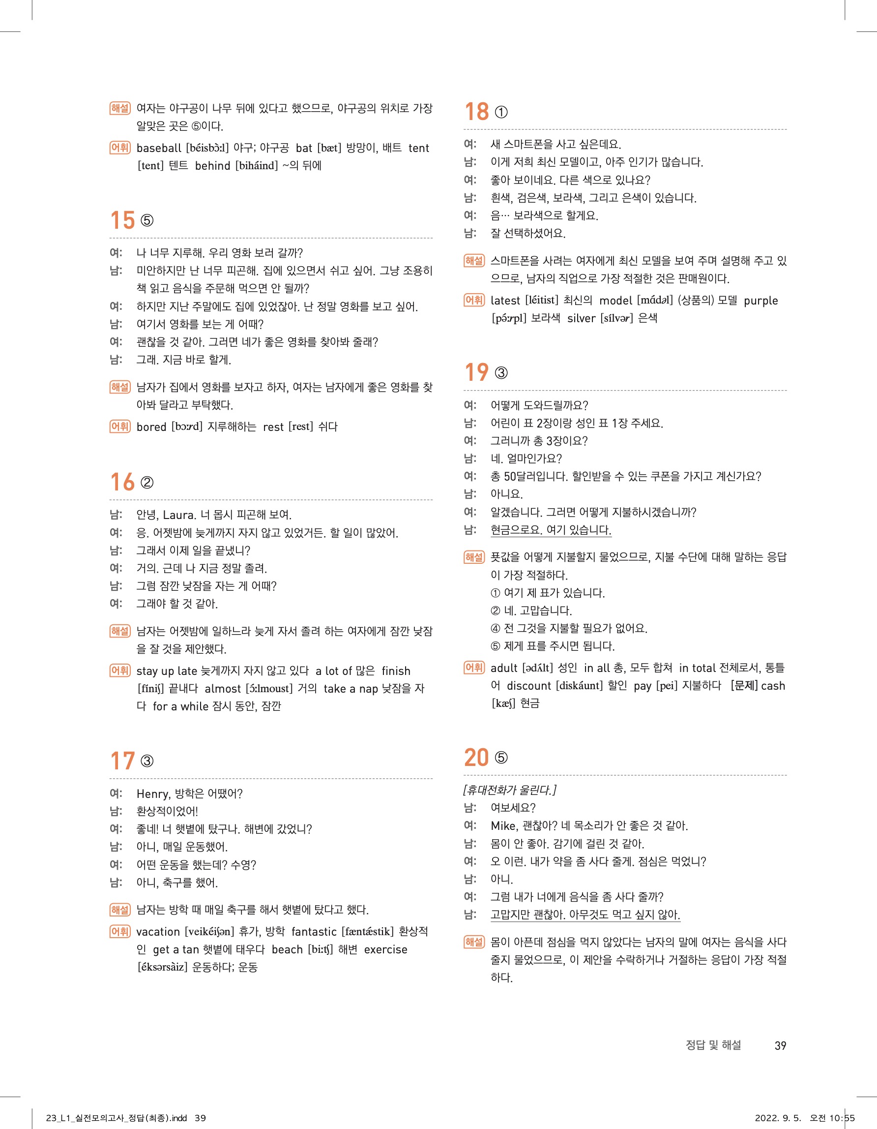 📘 능률 중학영어듣기모의고사22회 레벨3 L3 답지 및 해설