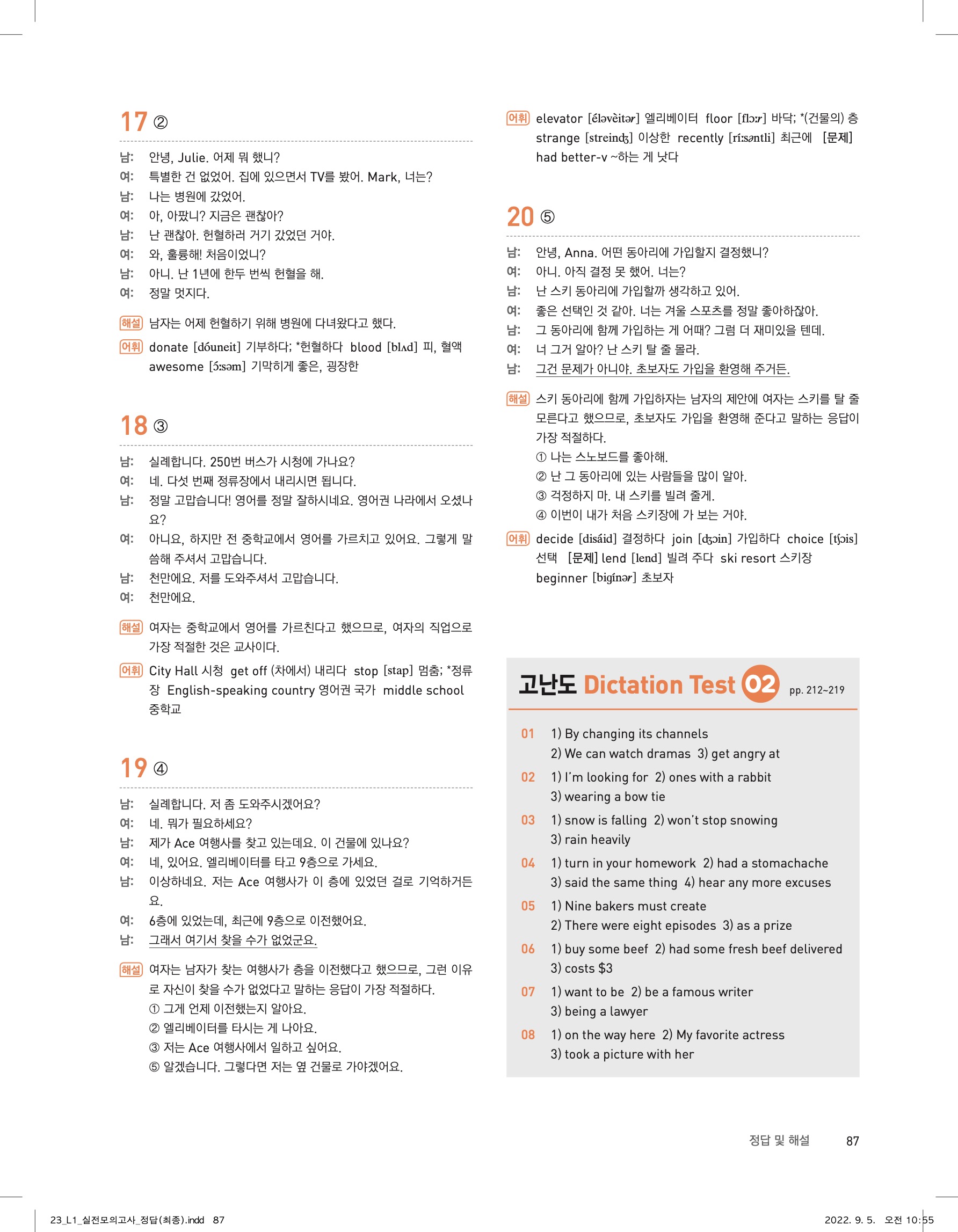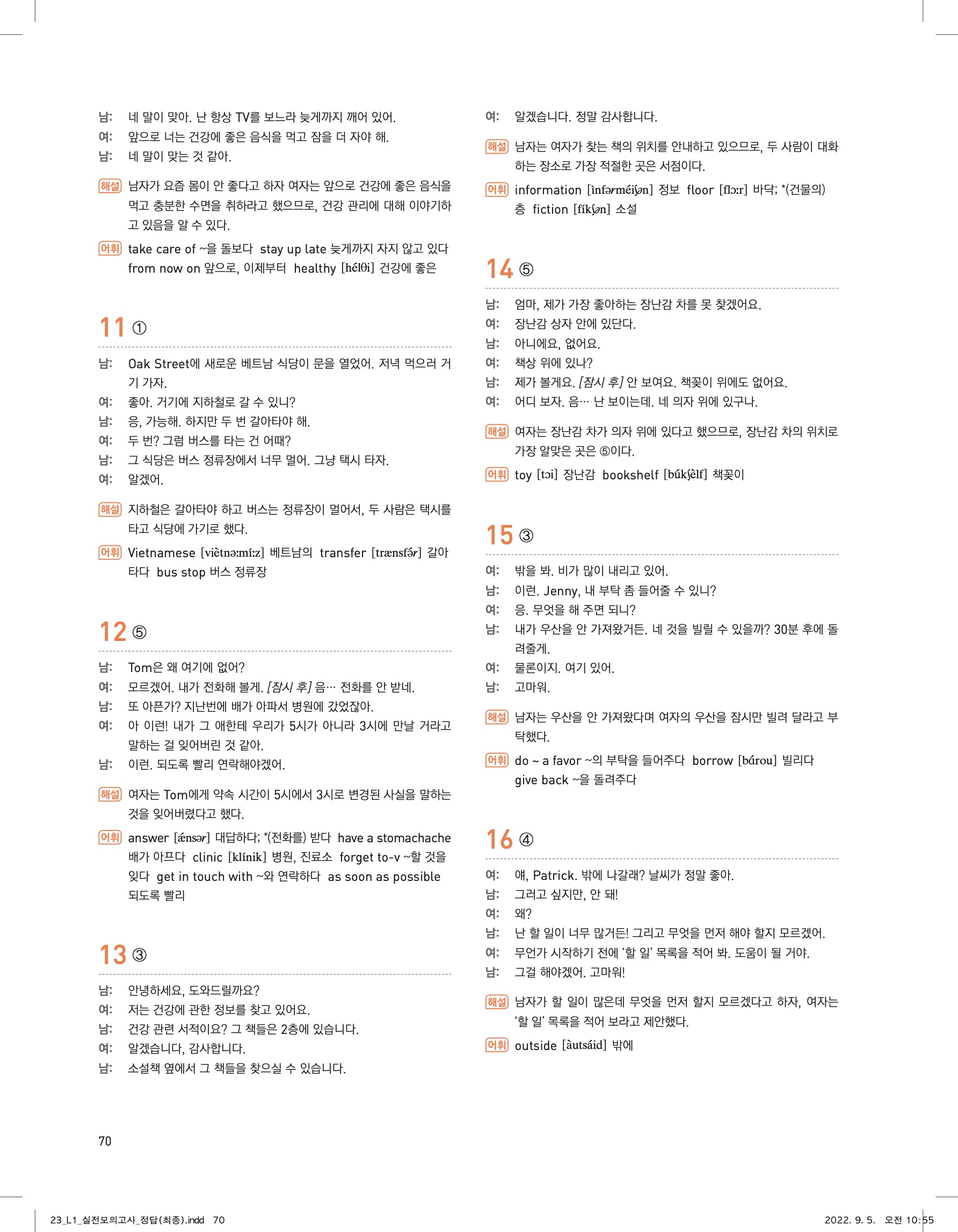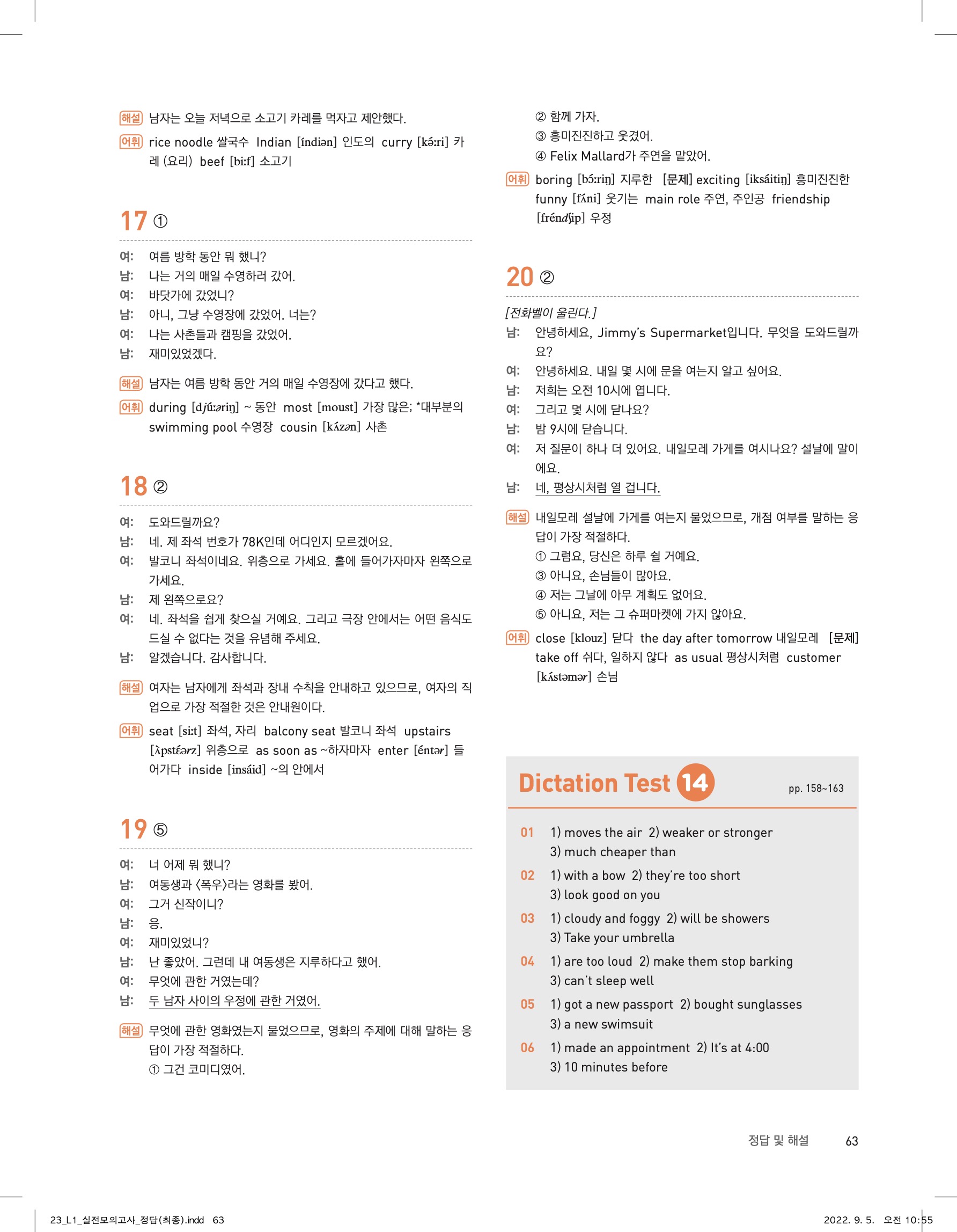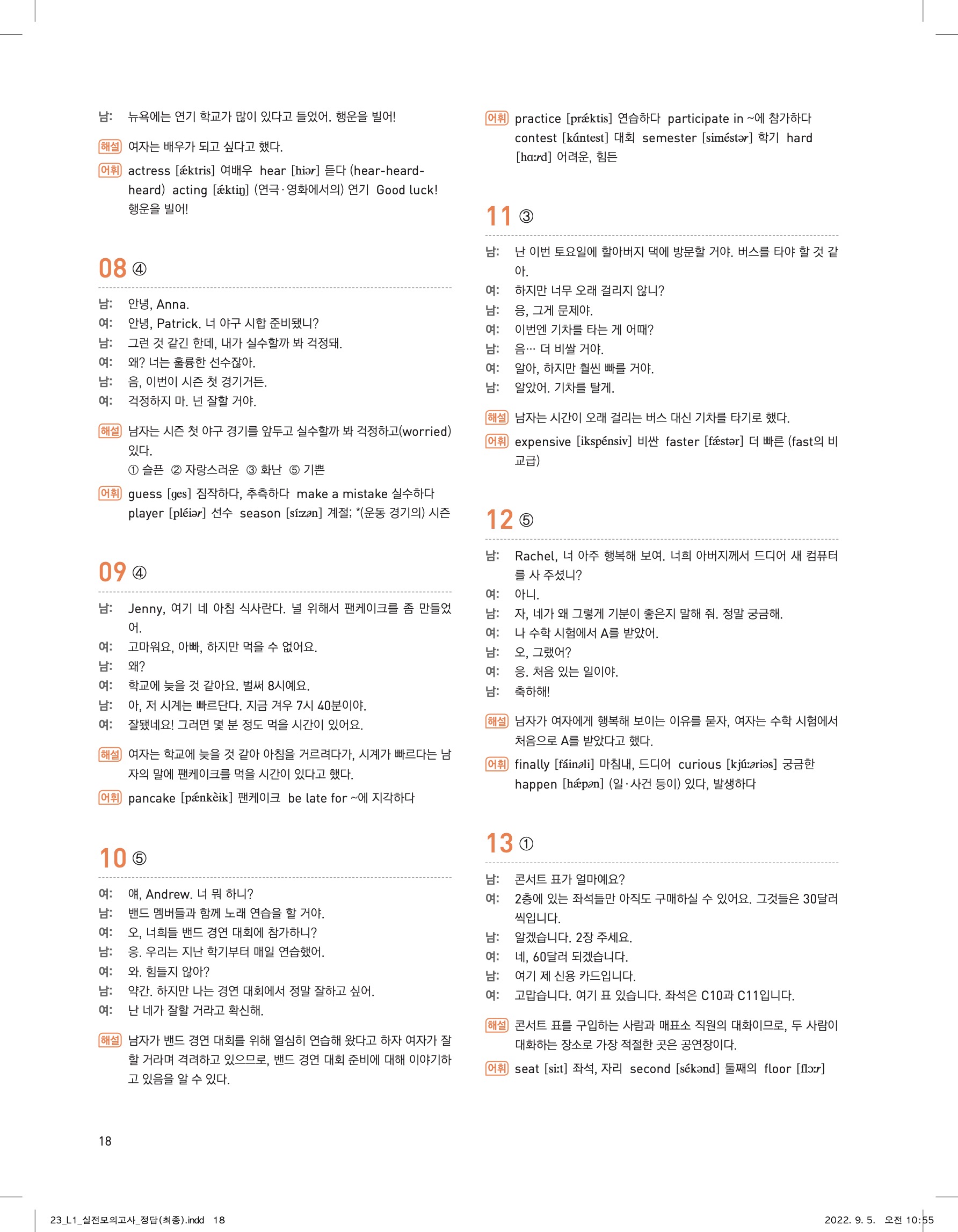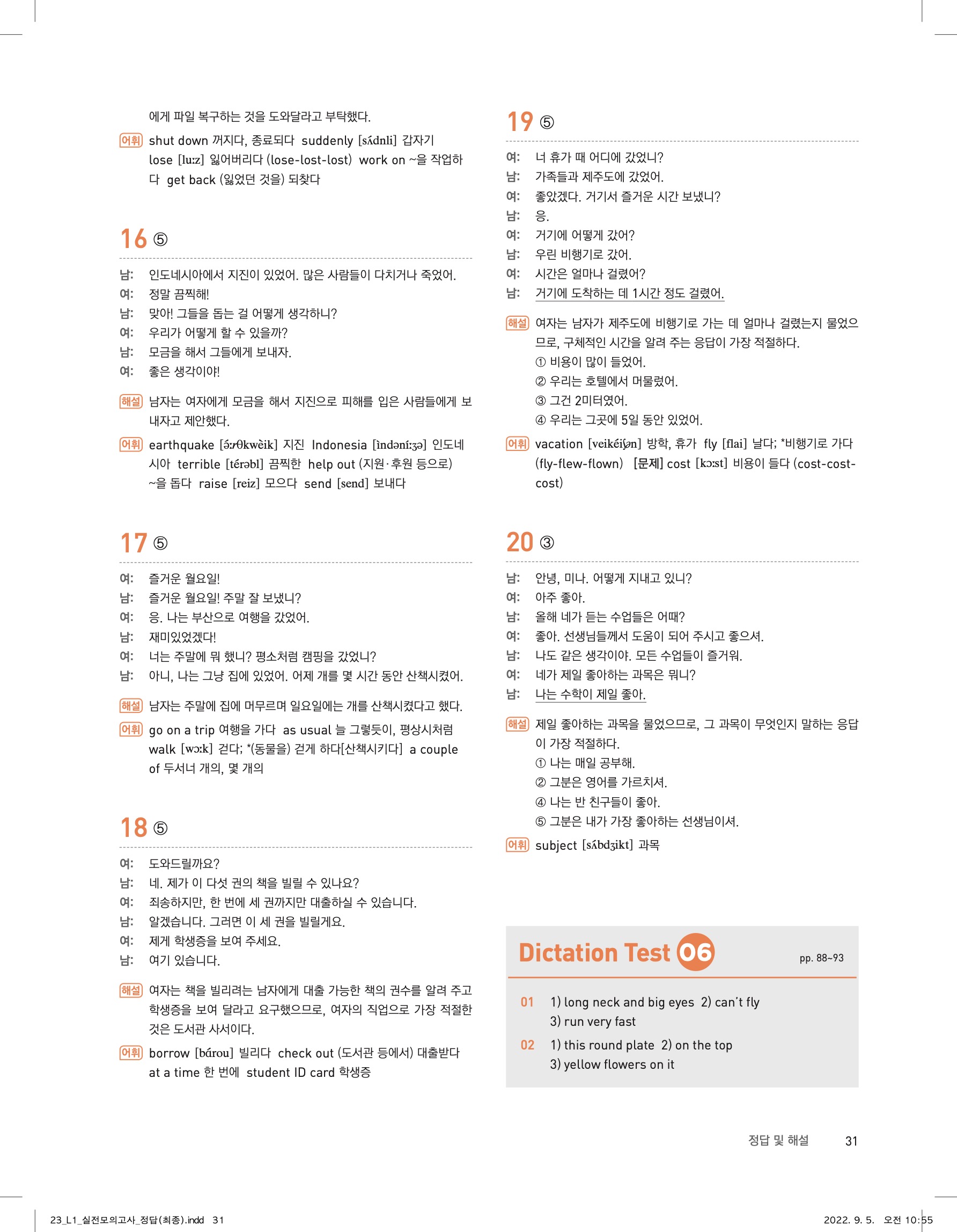 📘 능률 중학영어듣기모의고사22회 레벨3 L3 답지 및 해설