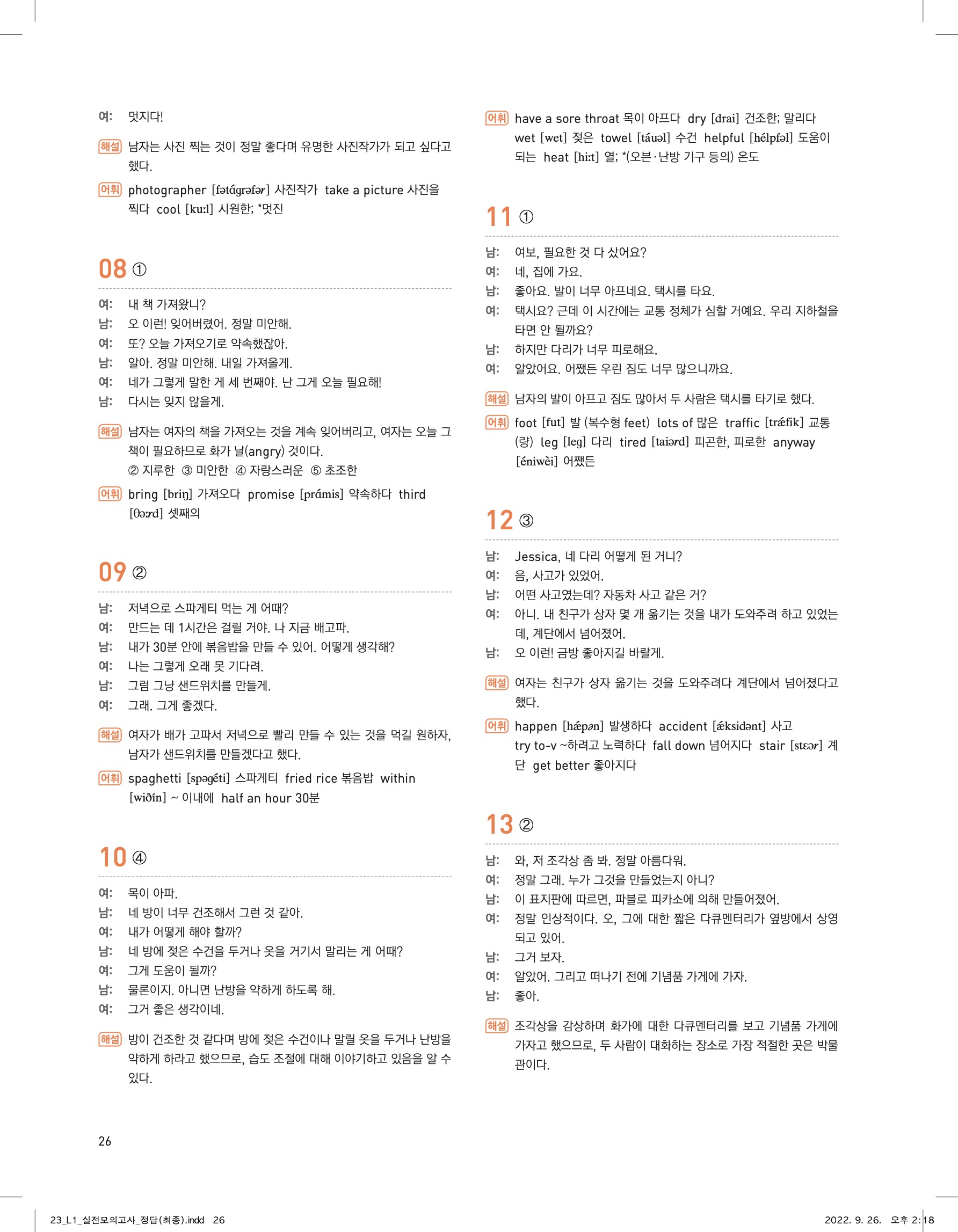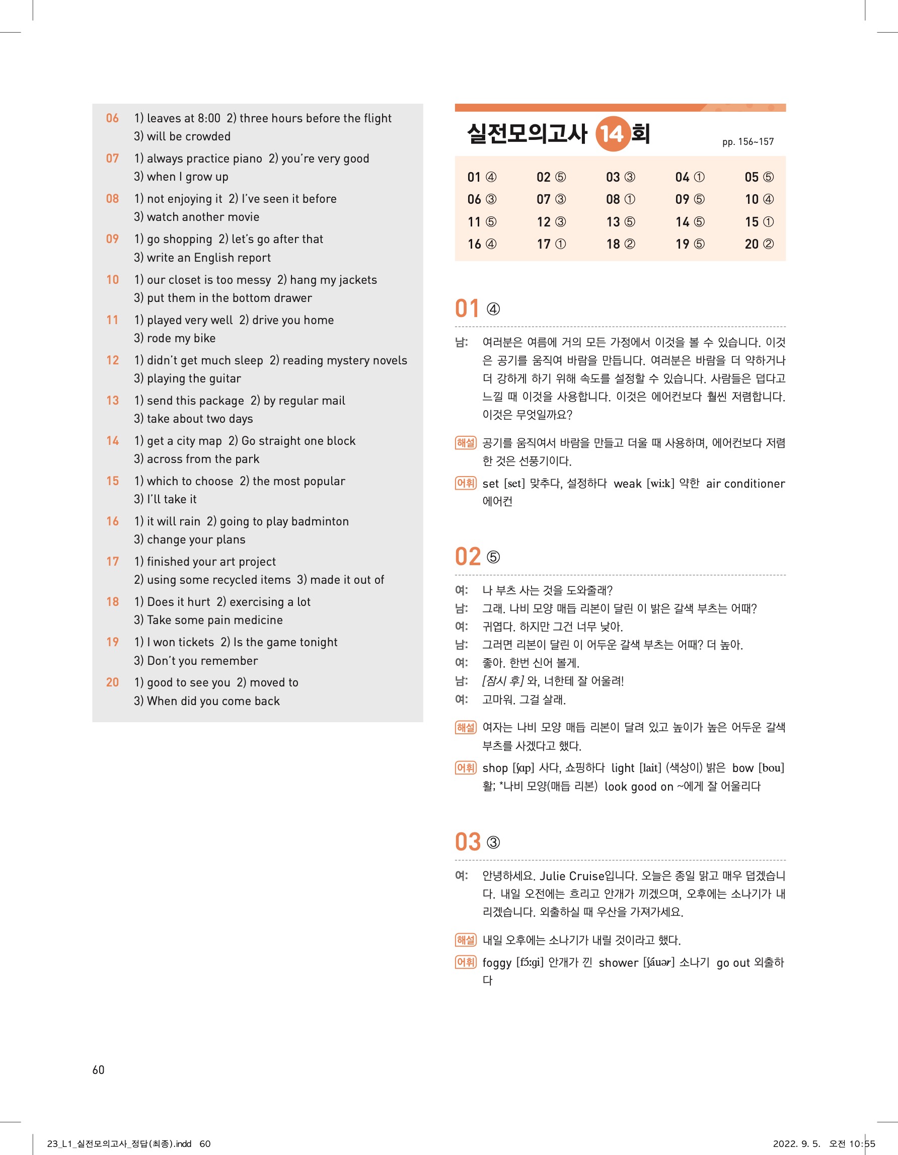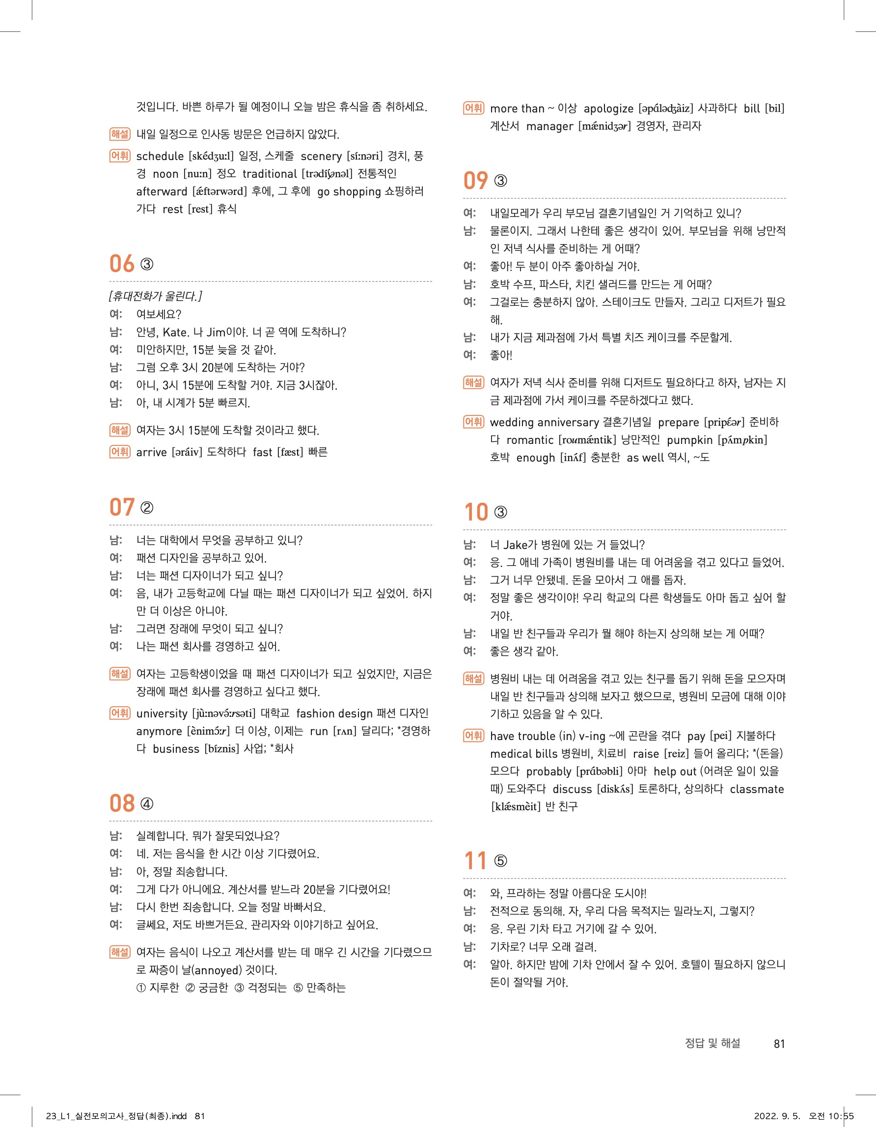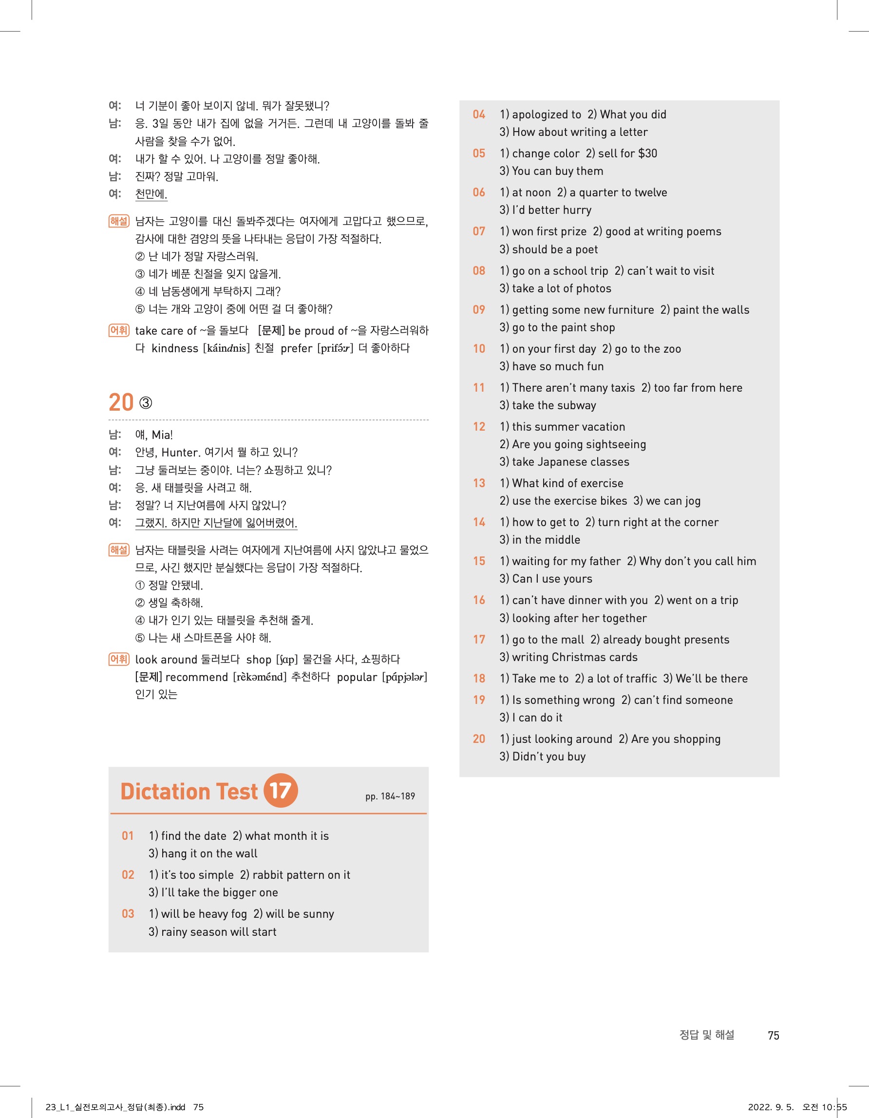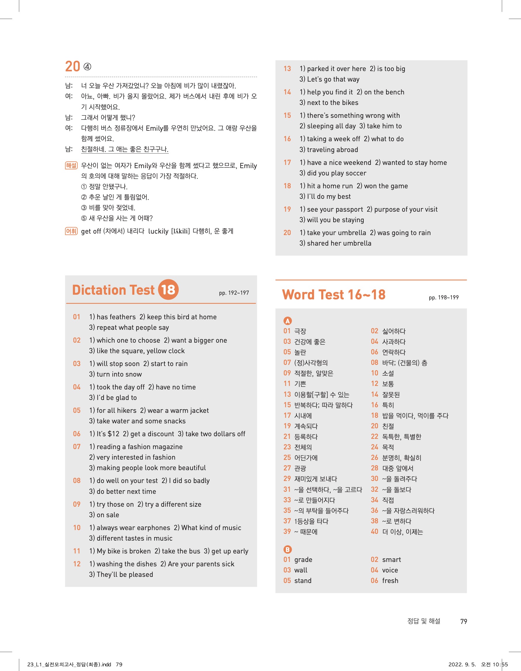 📘 능률 중학영어듣기모의고사22회 레벨3 L3 답지 및 해설
