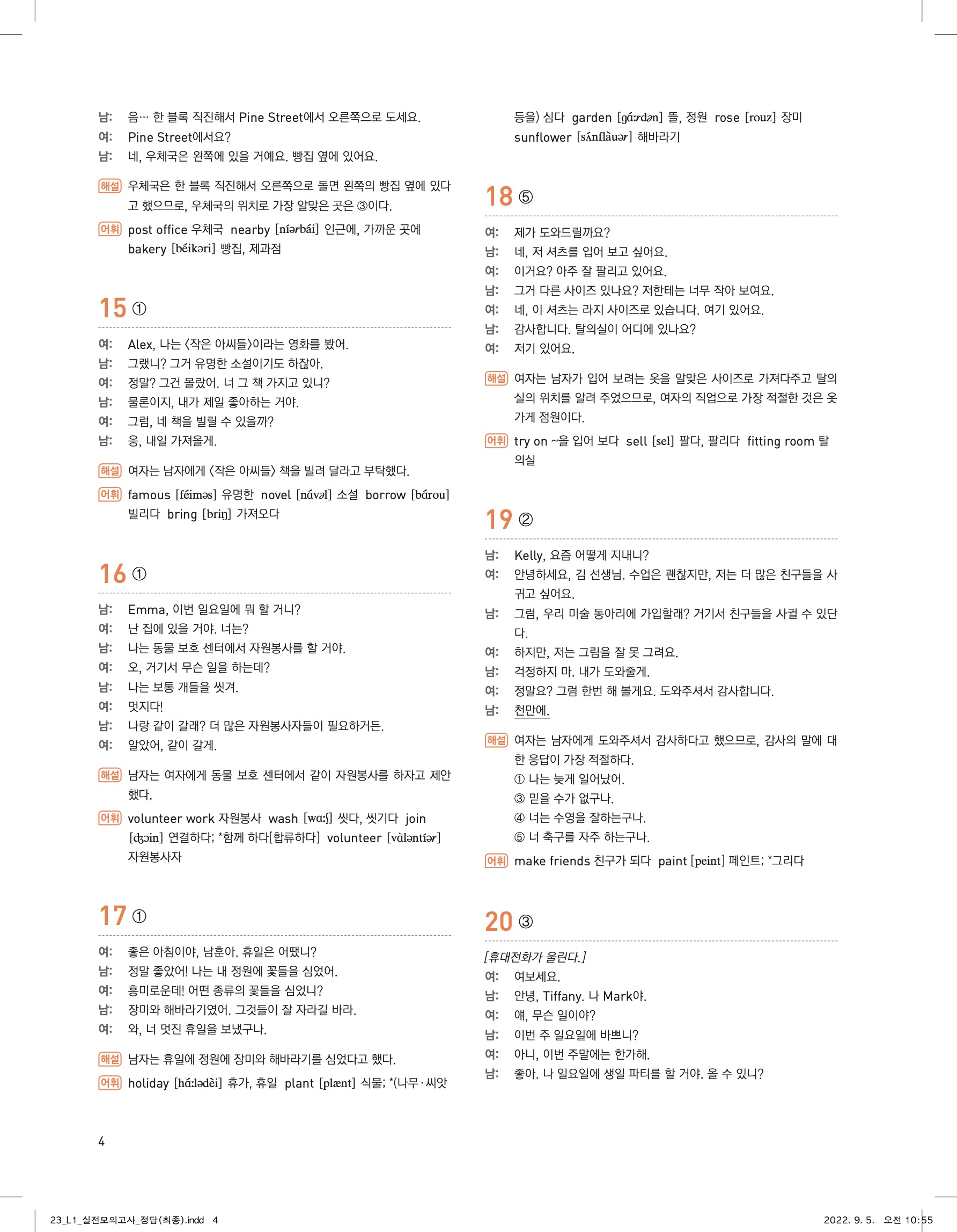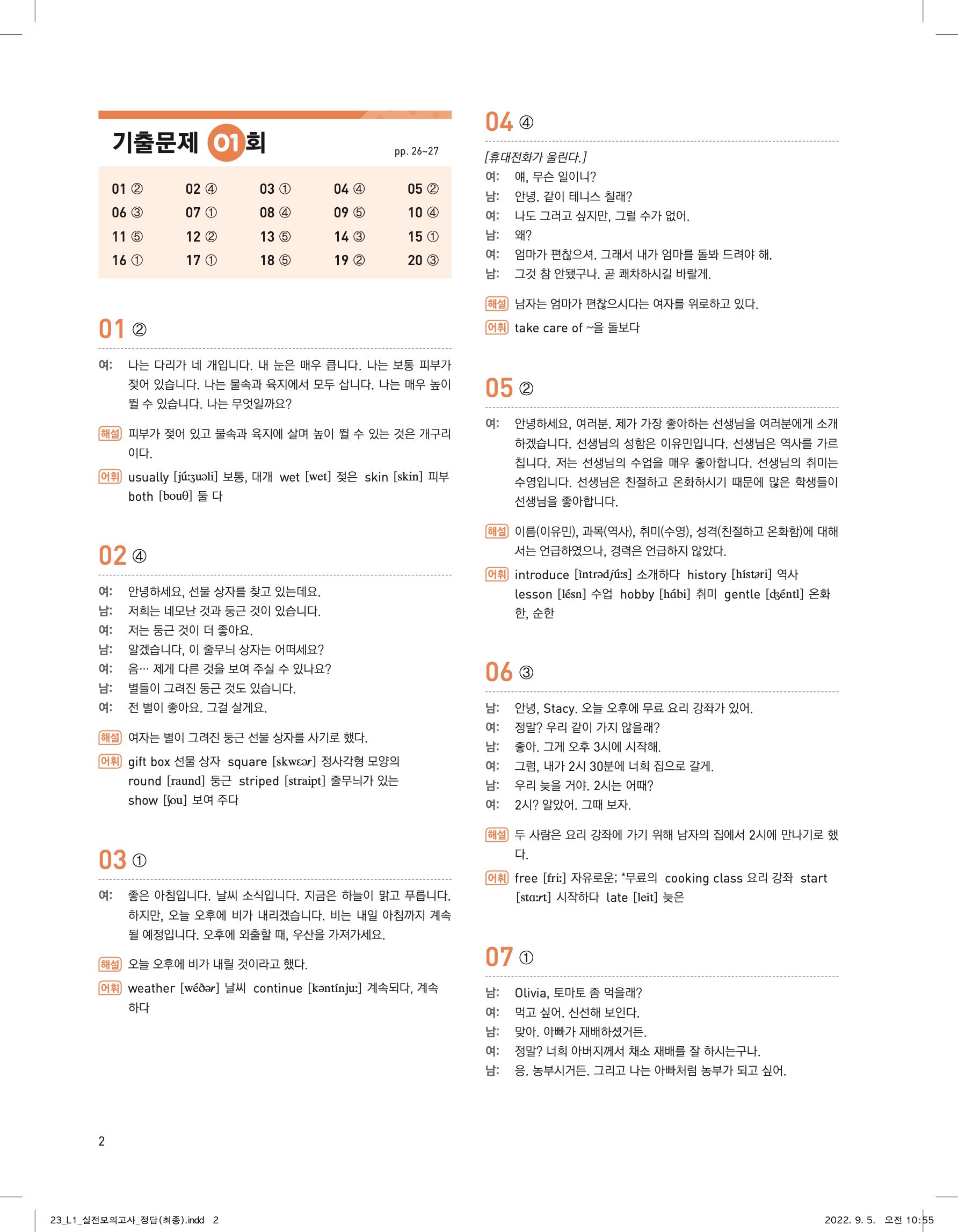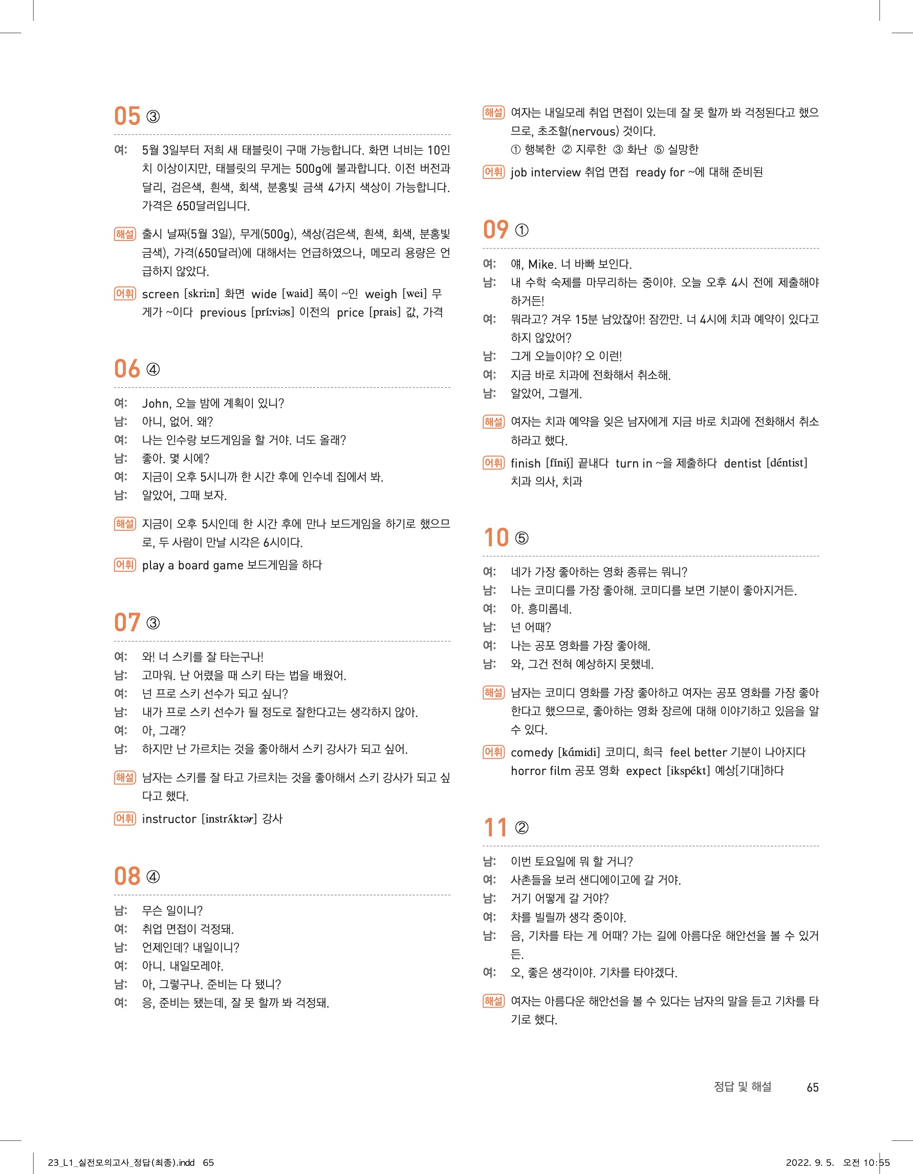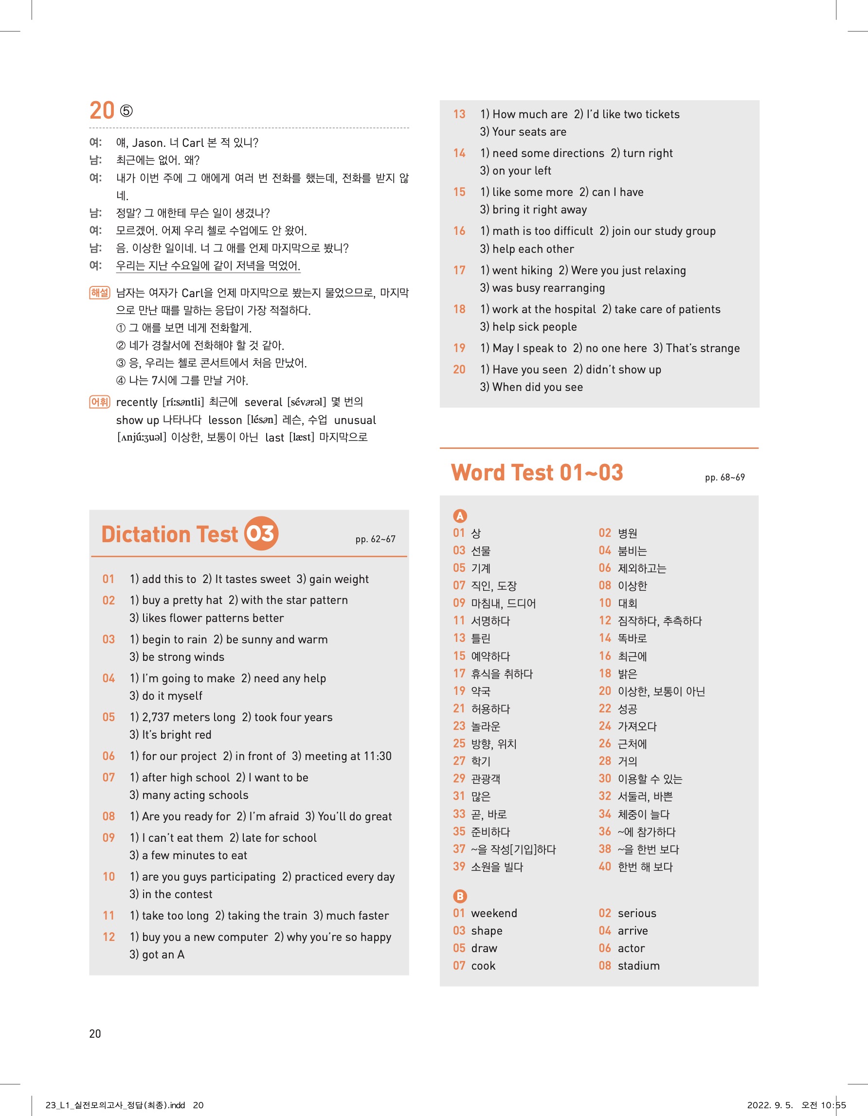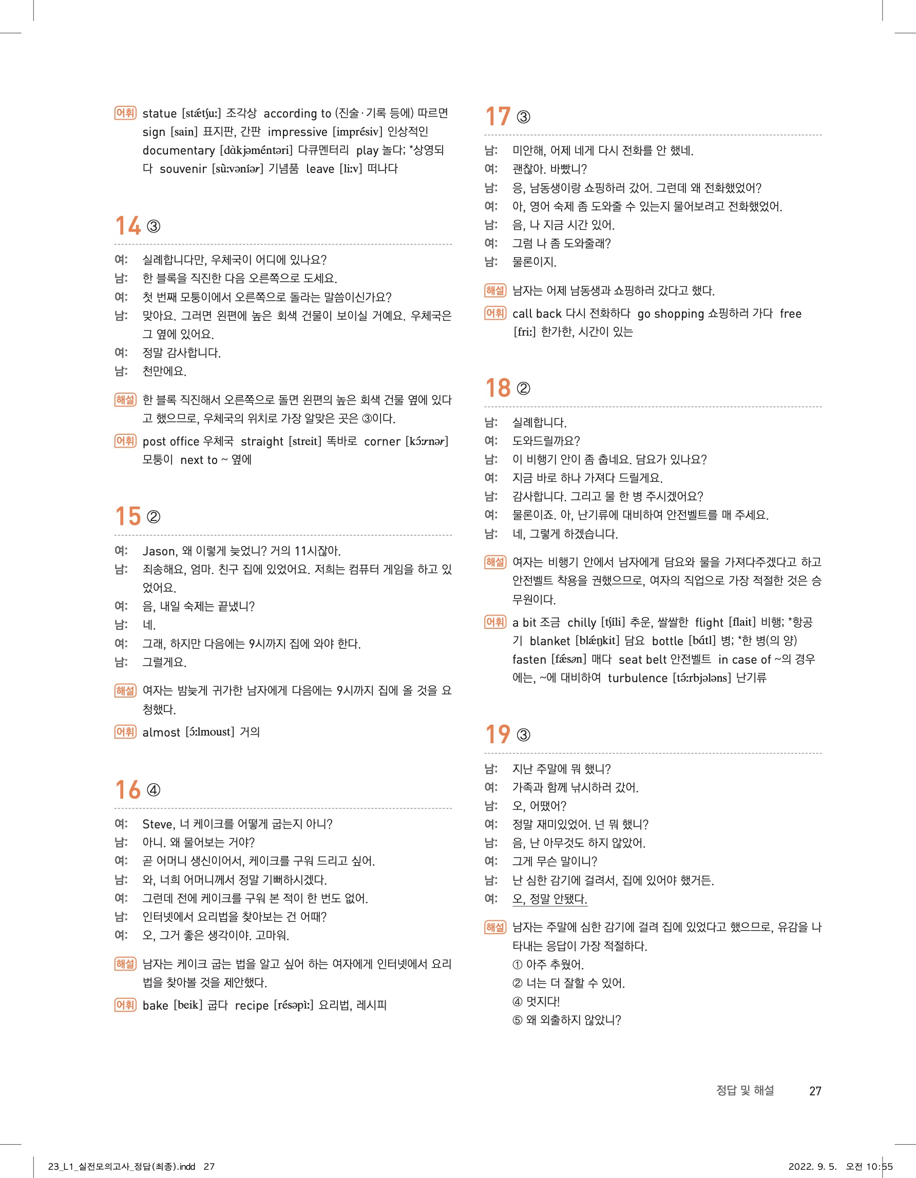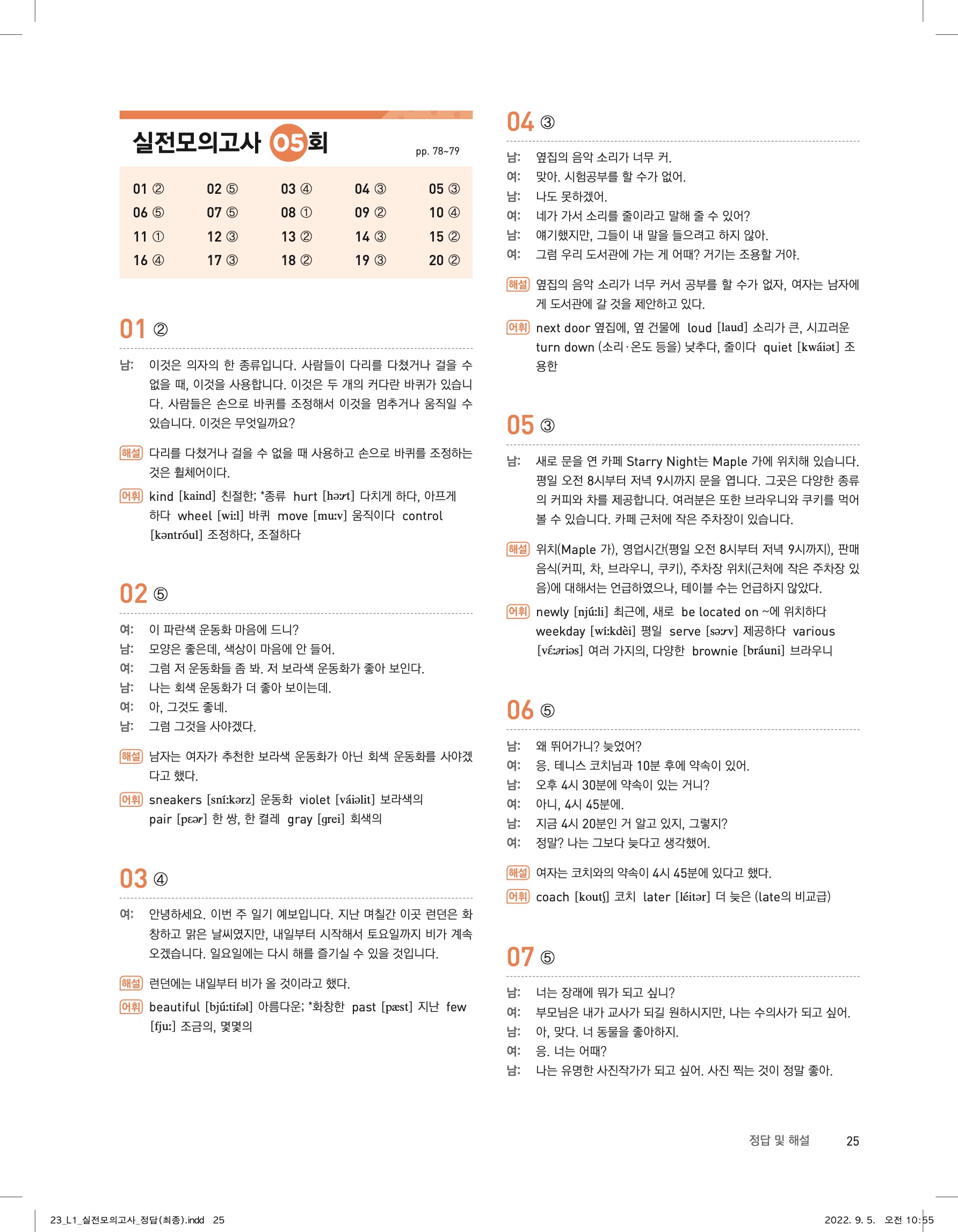 📘 능률 중학영어듣기모의고사22회 레벨3 L3 답지 및 해설