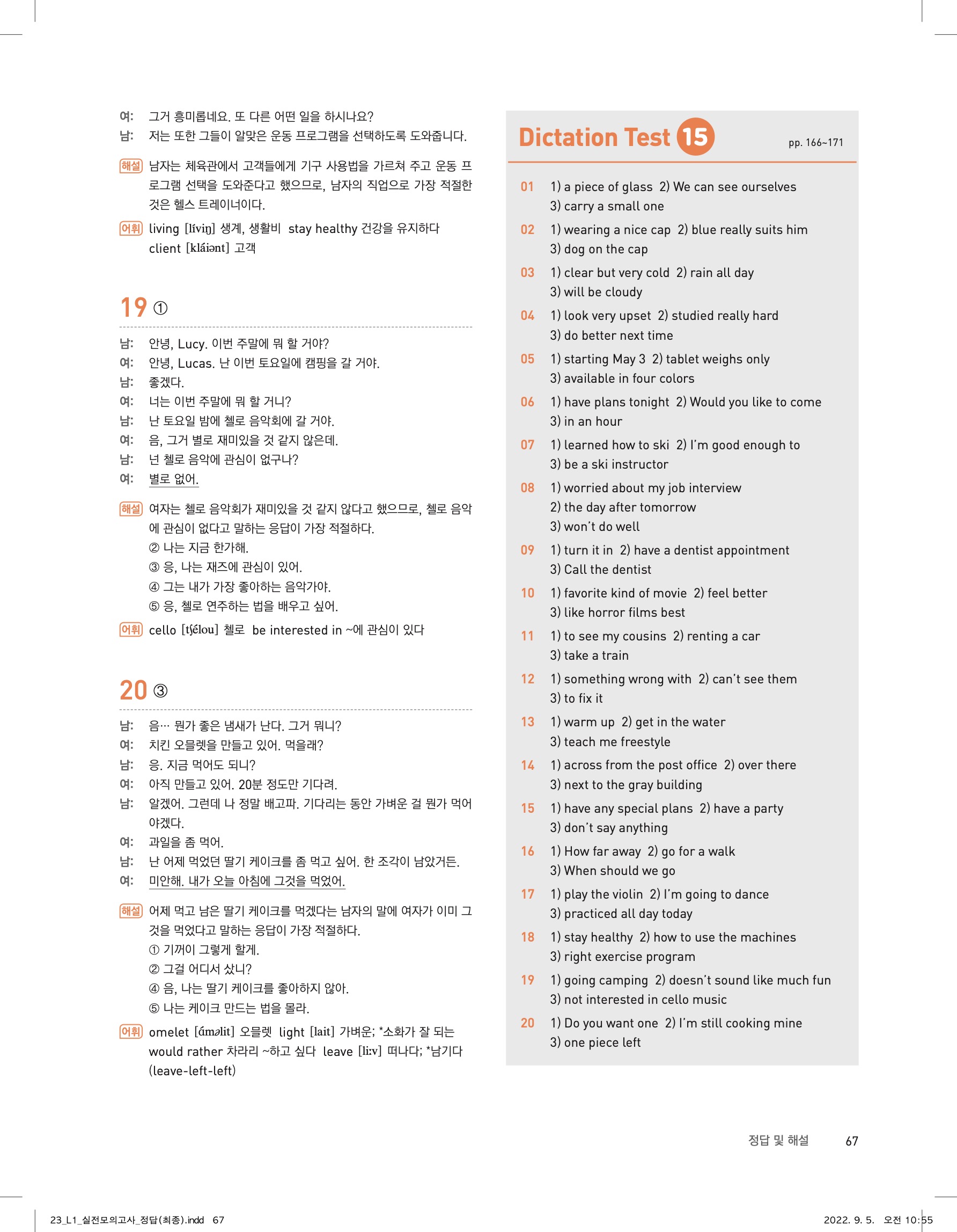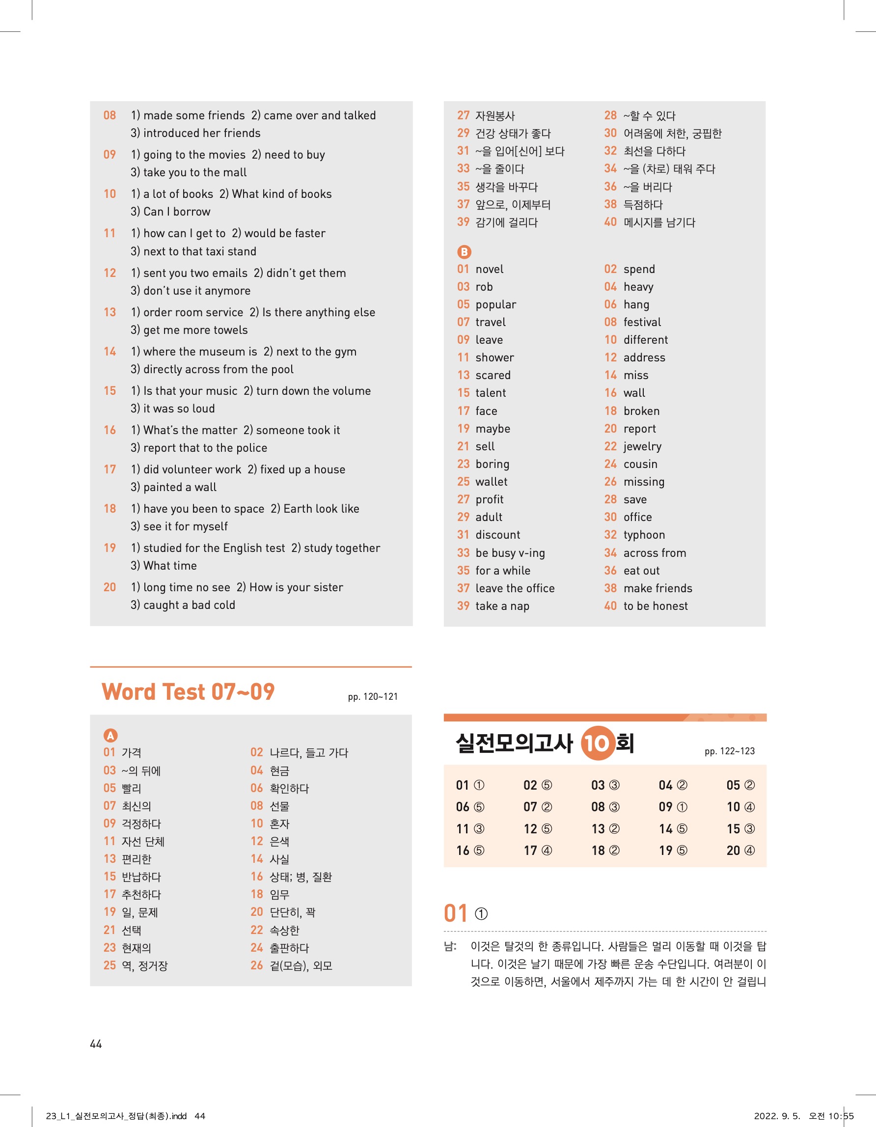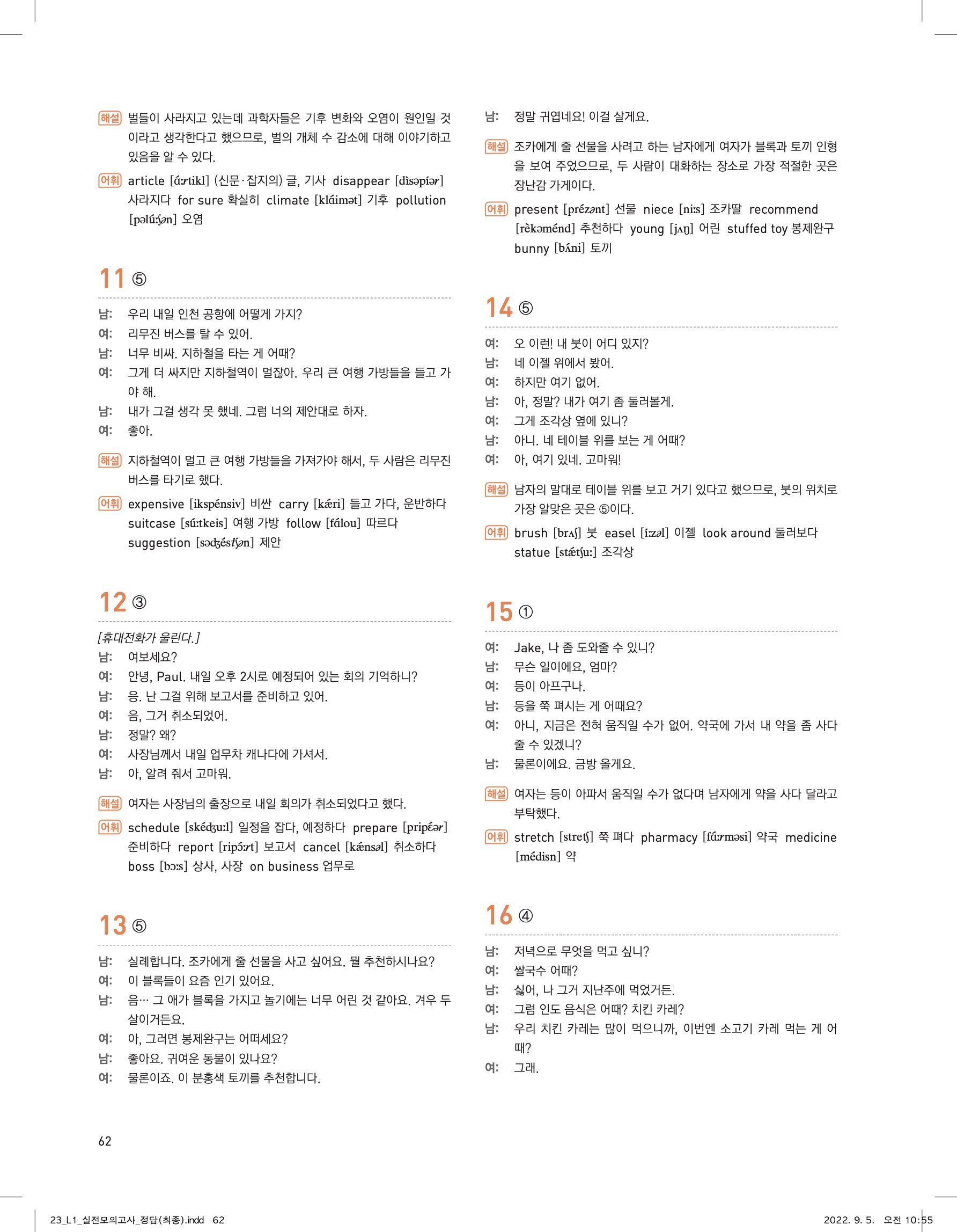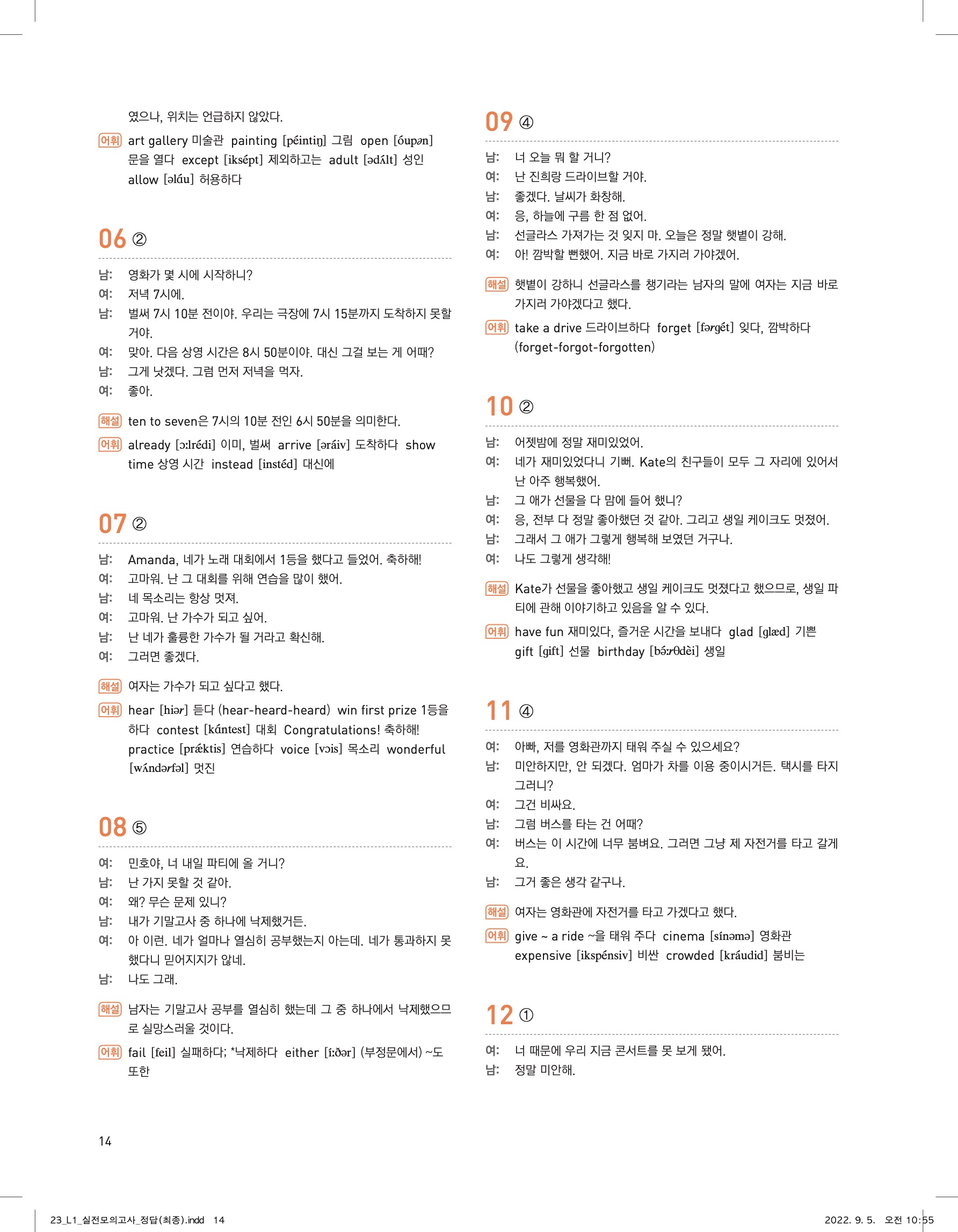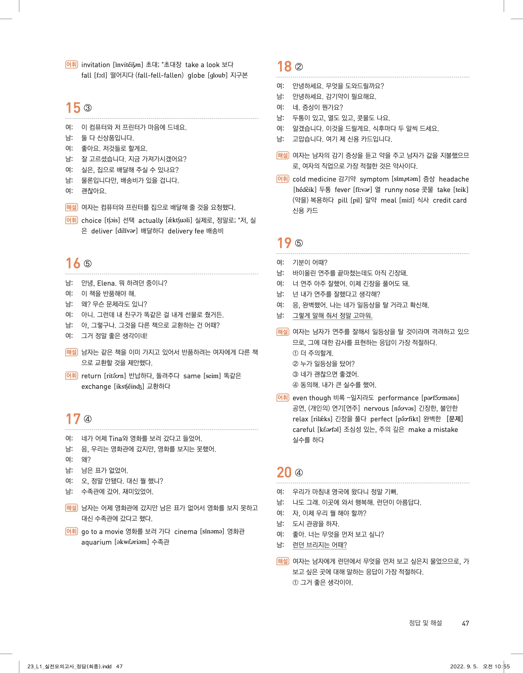 📘 능률 중학영어듣기모의고사22회 레벨3 L3 답지 및 해설