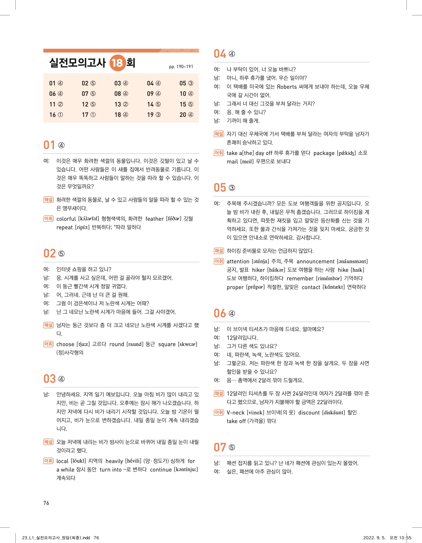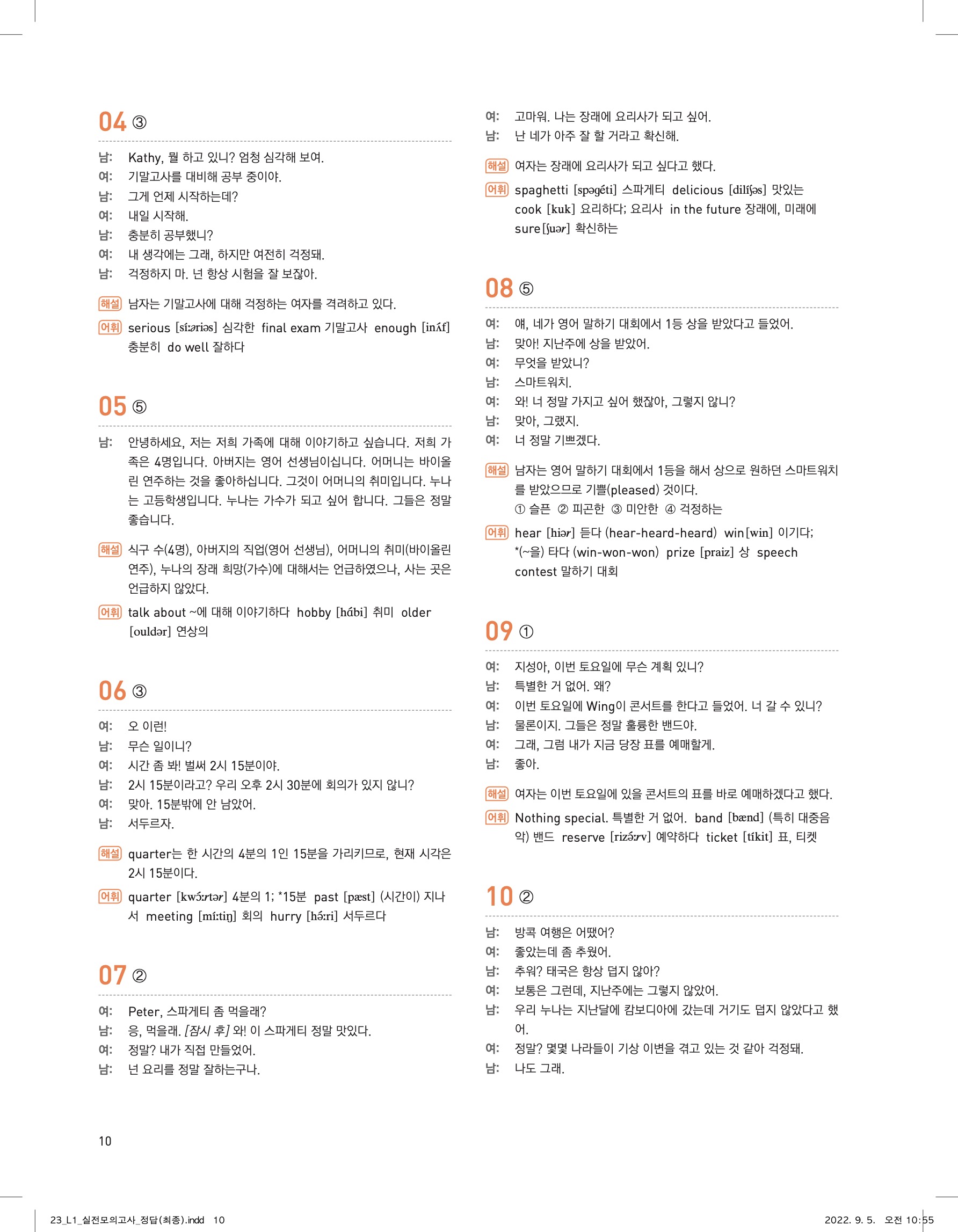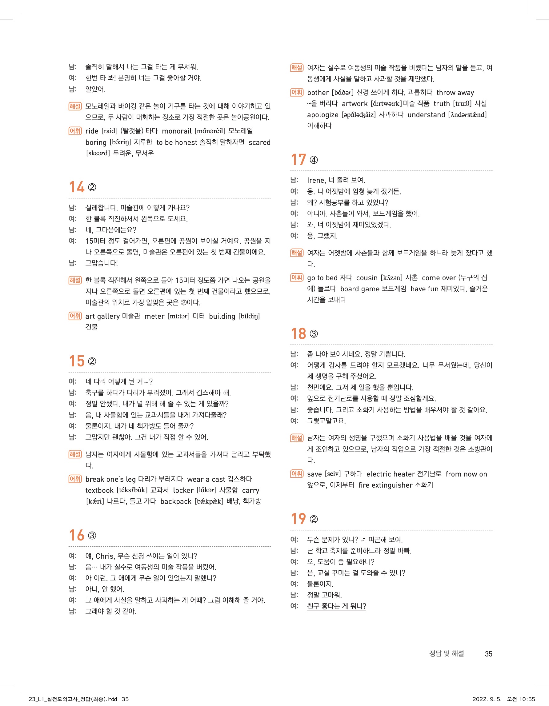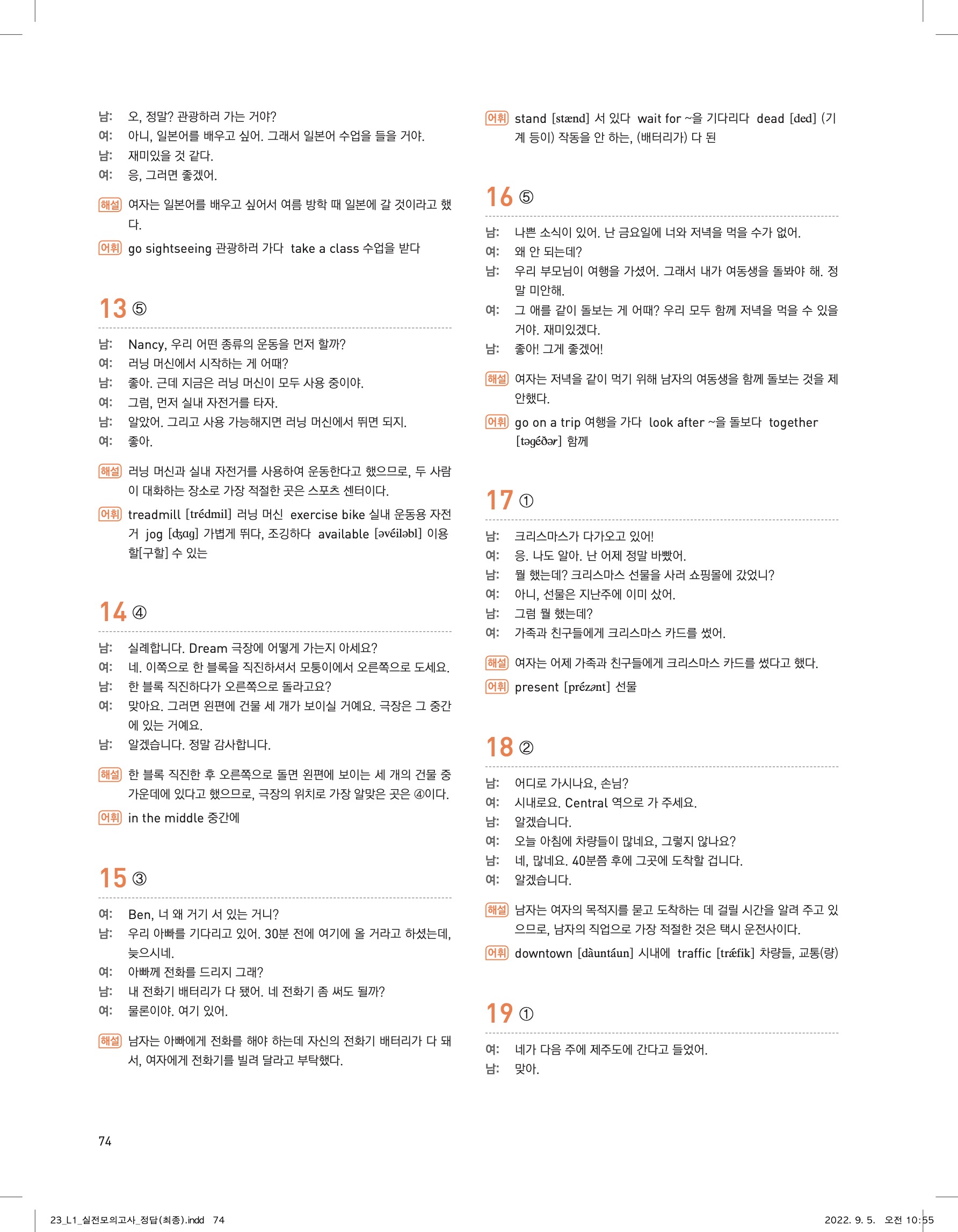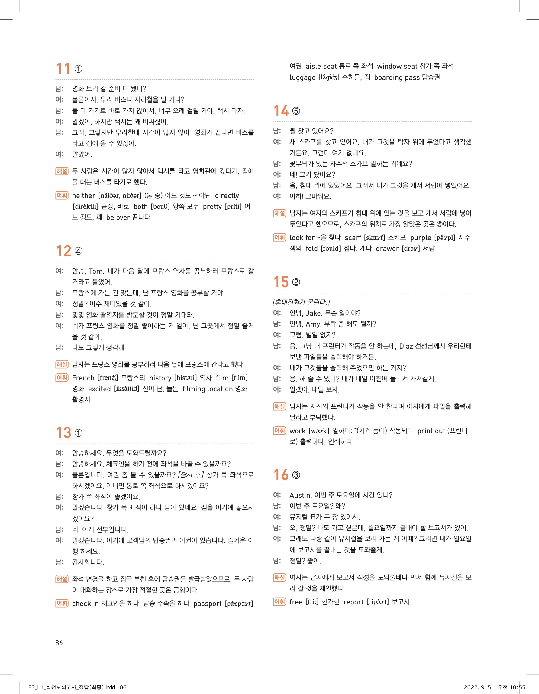 📘 능률 중학영어듣기모의고사22회 레벨3 L3 답지 및 해설