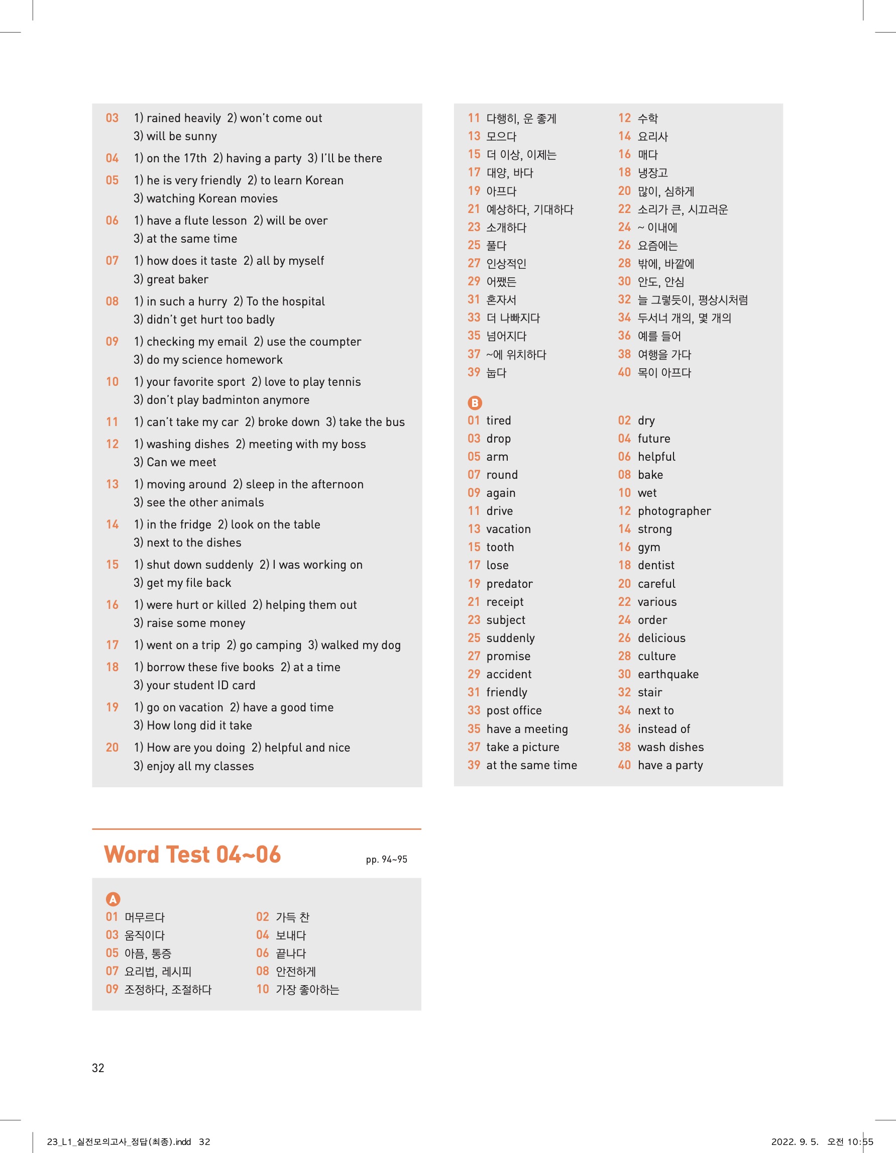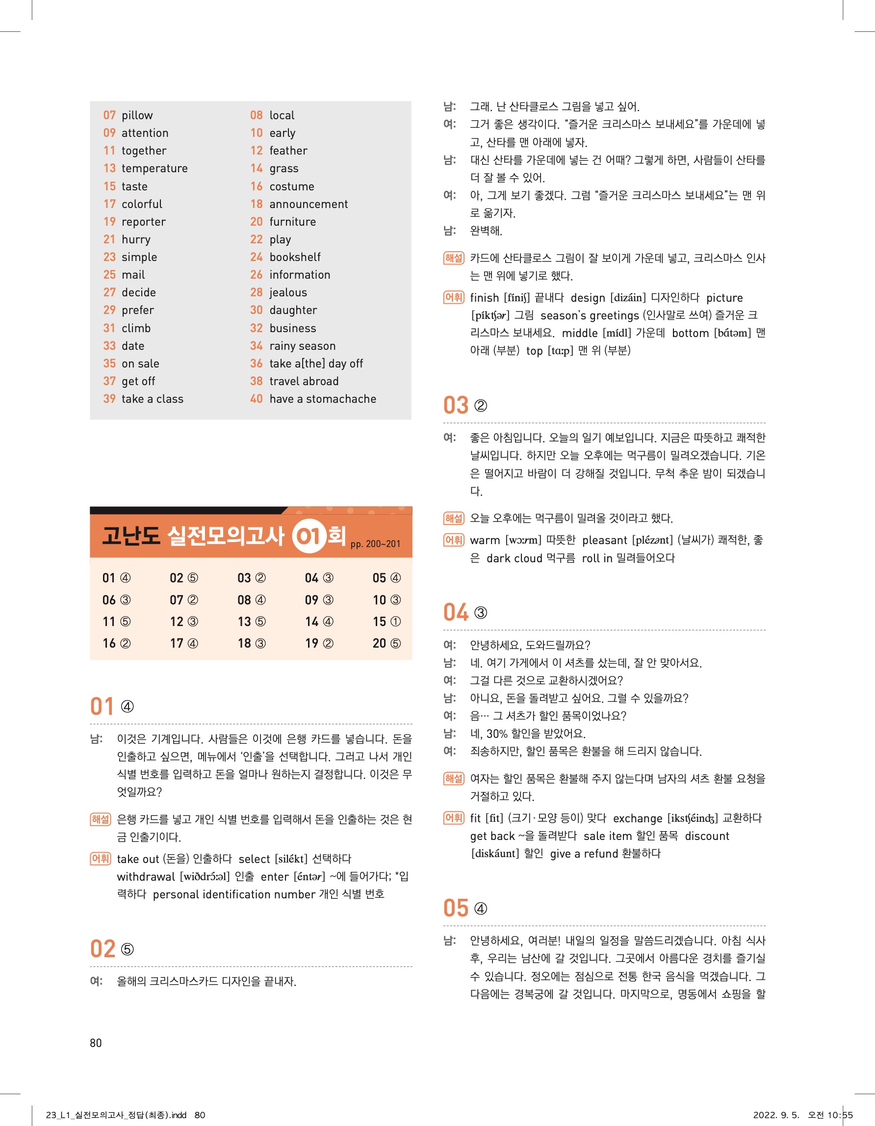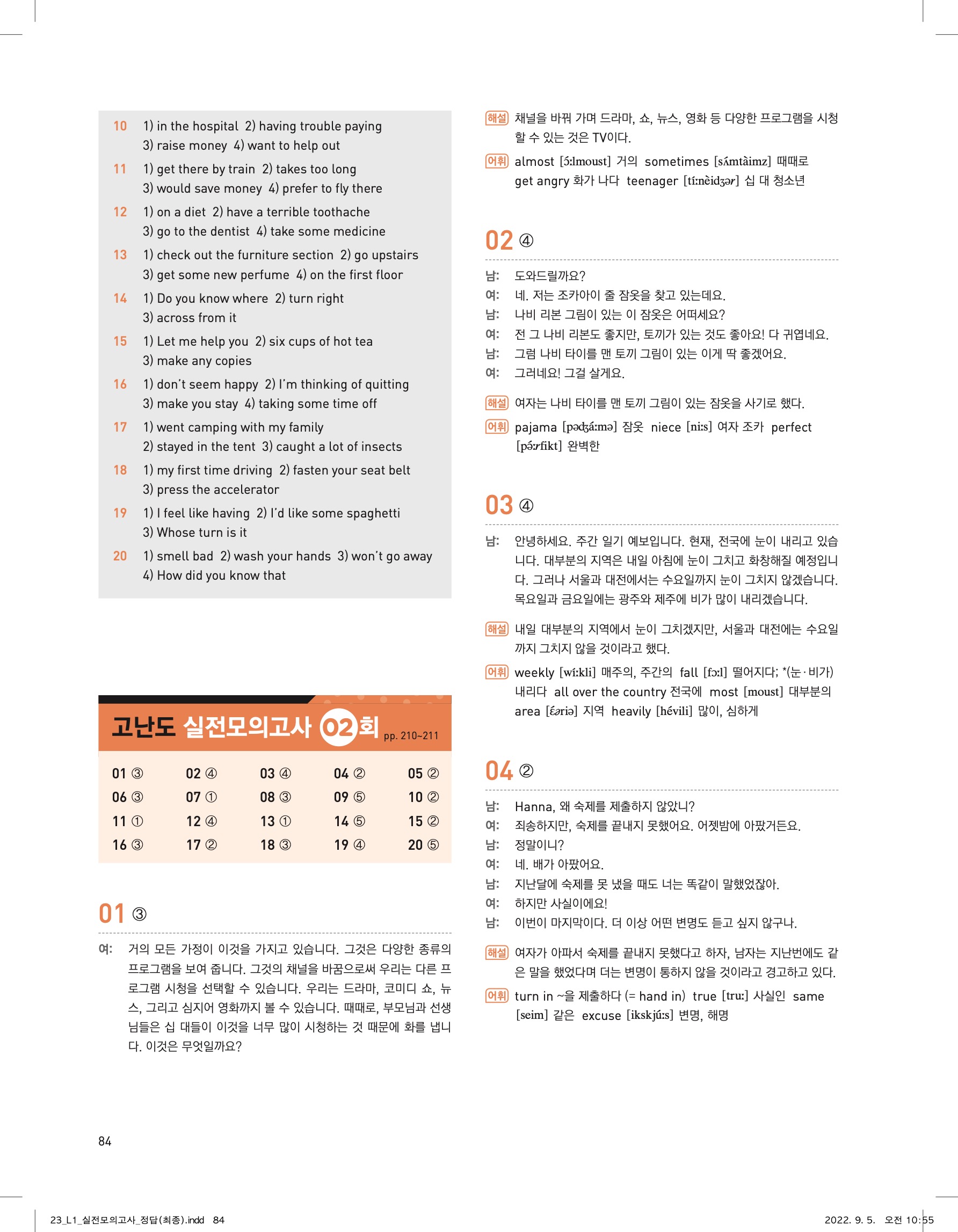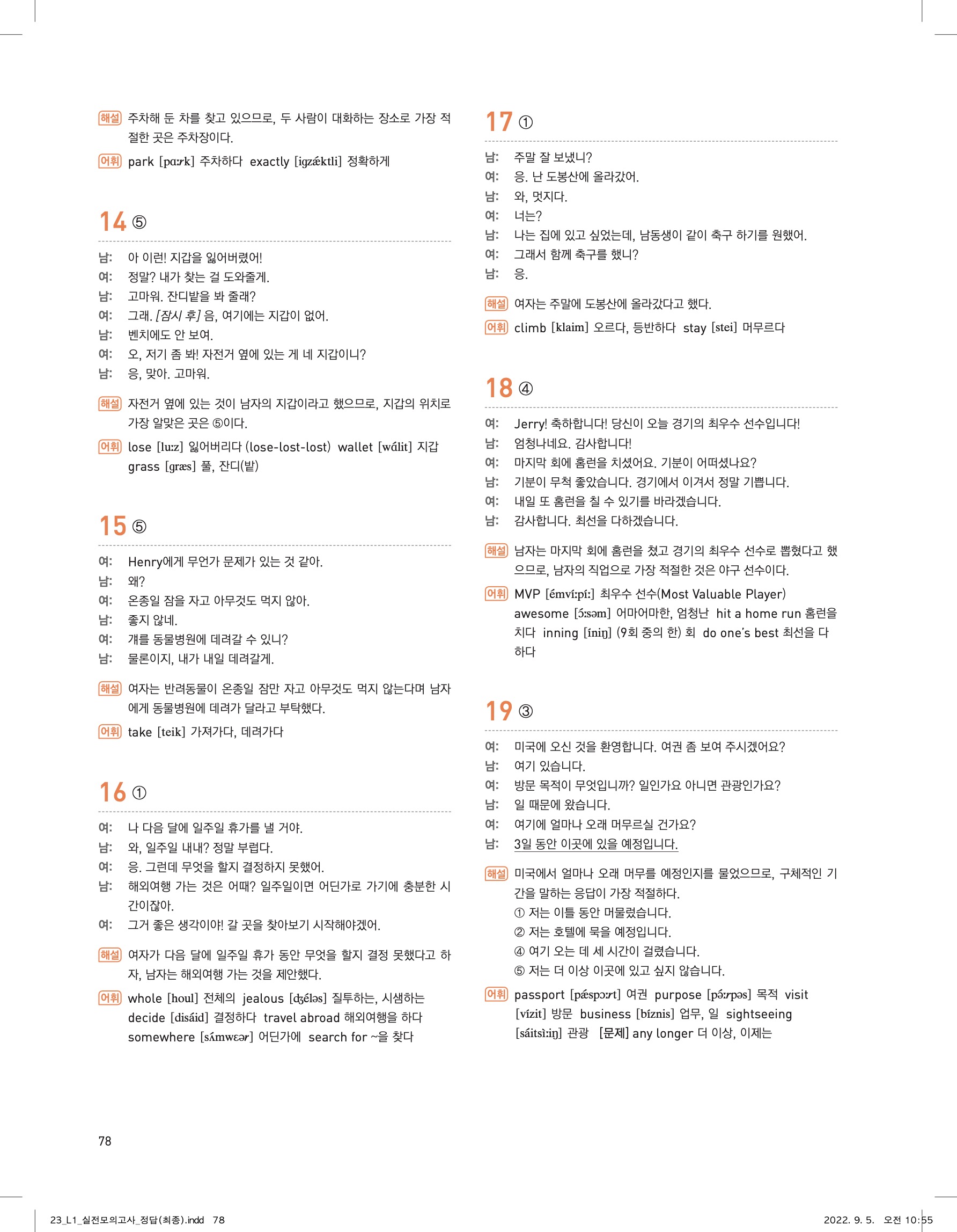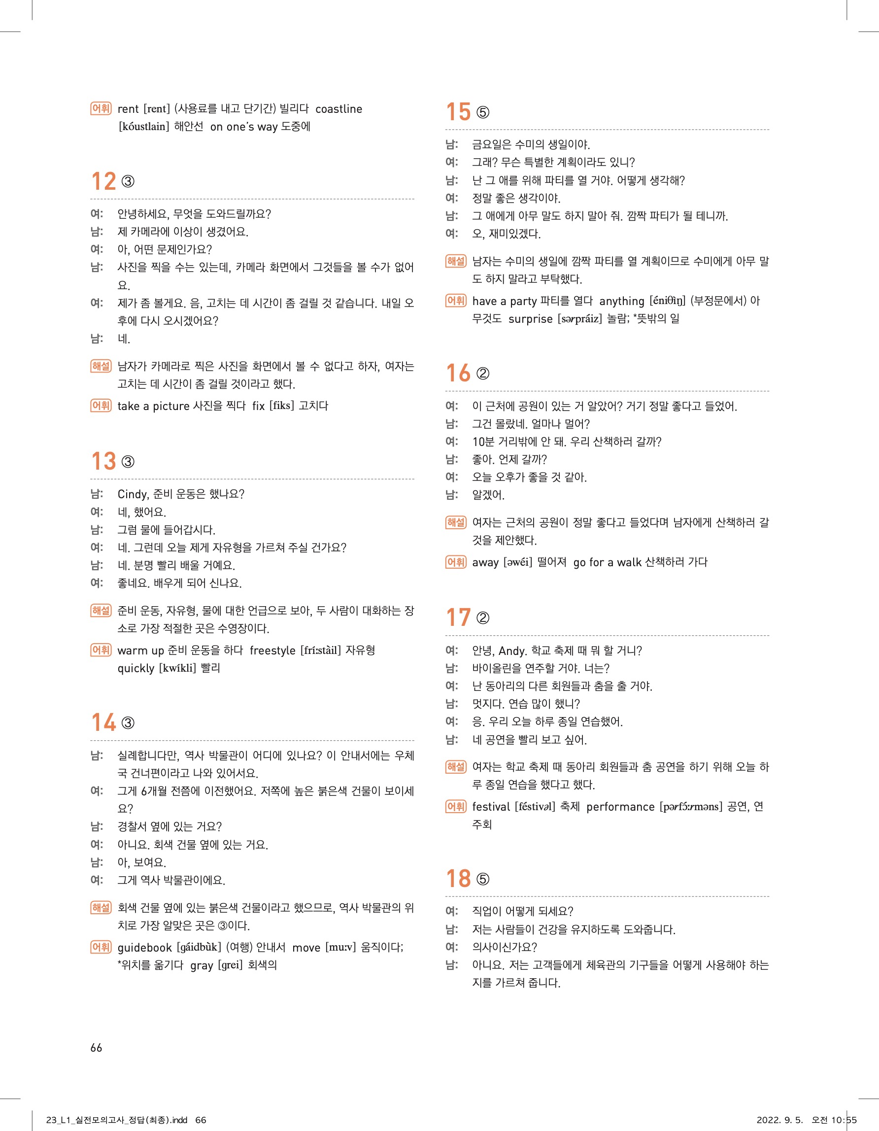 📘 능률 중학영어듣기모의고사22회 레벨3 L3 답지 및 해설
