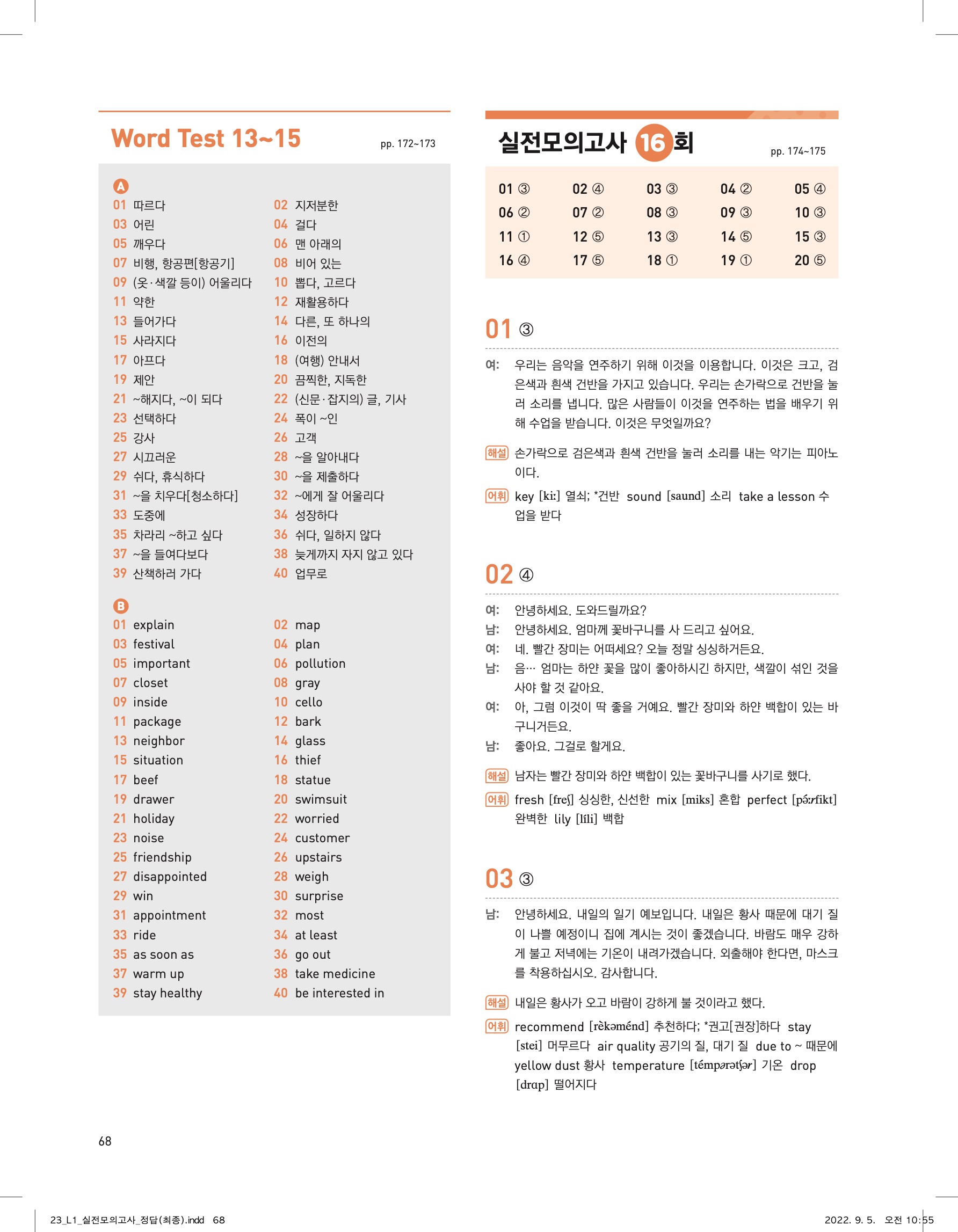 능률 중학영어듣기모의고사22회 레벨1 L1의 답지와 해설을 통해 효과적으로 학습하고, 듣기 실력을 향상시켜 좋은 성과를 거두시기 바랍니다.