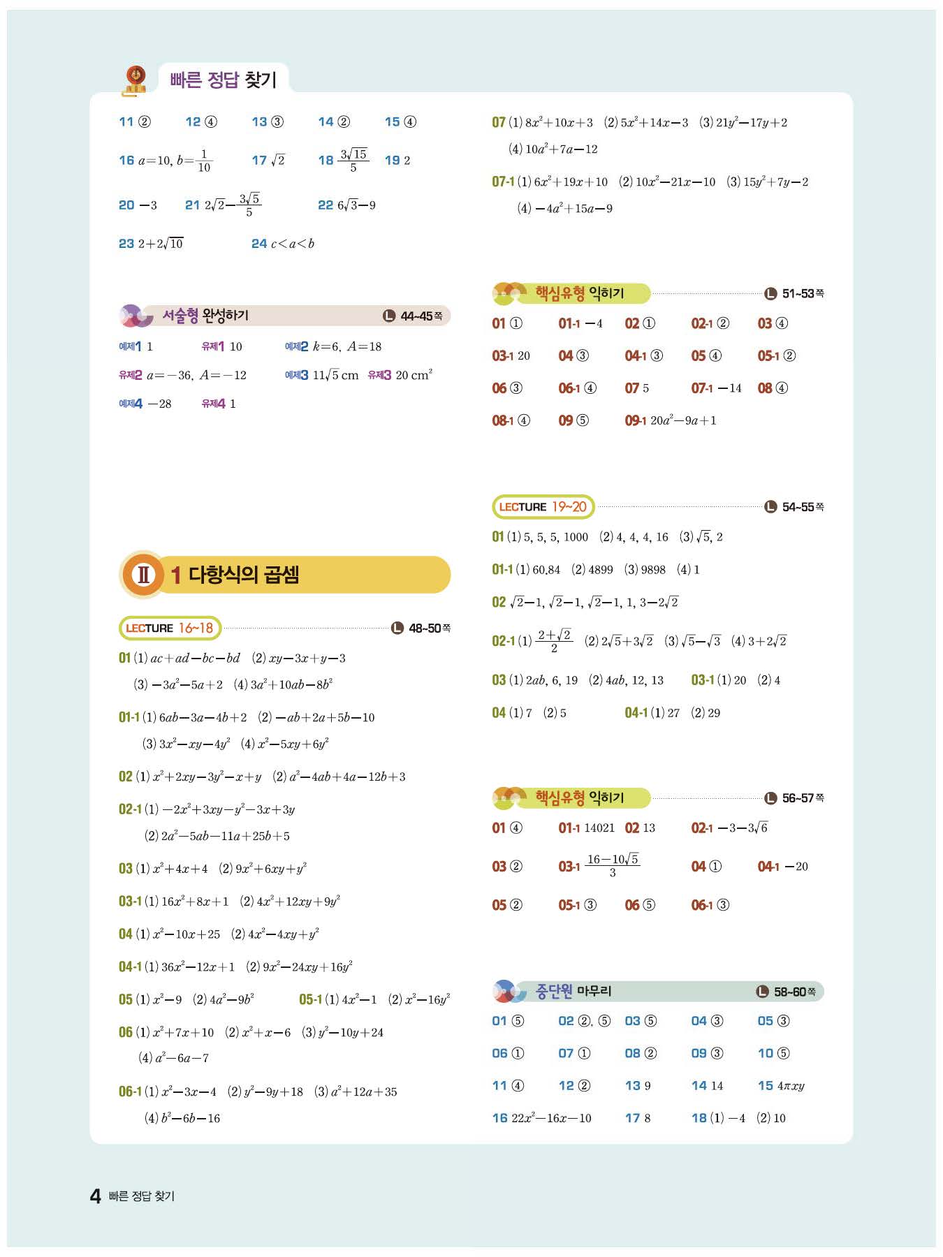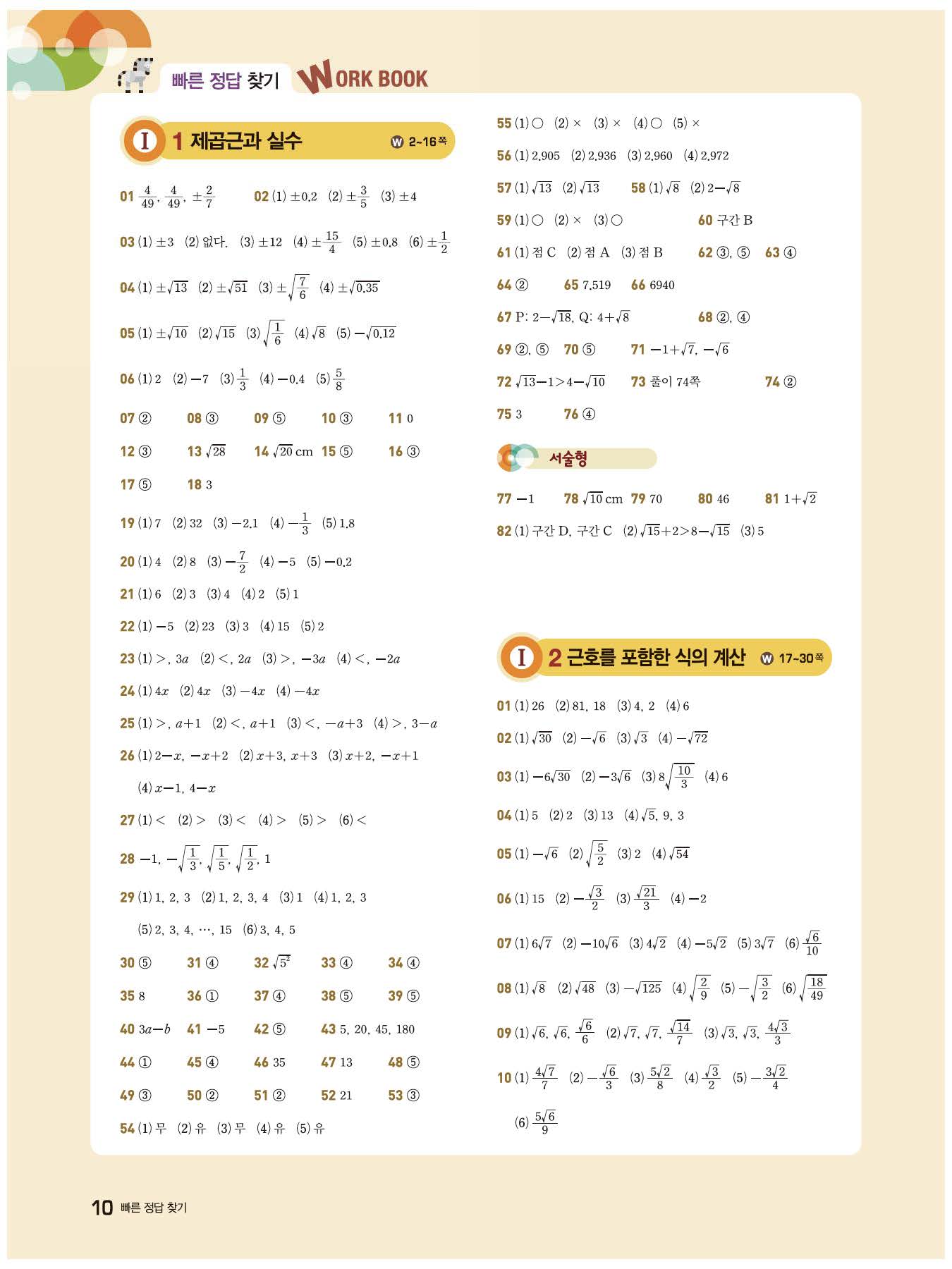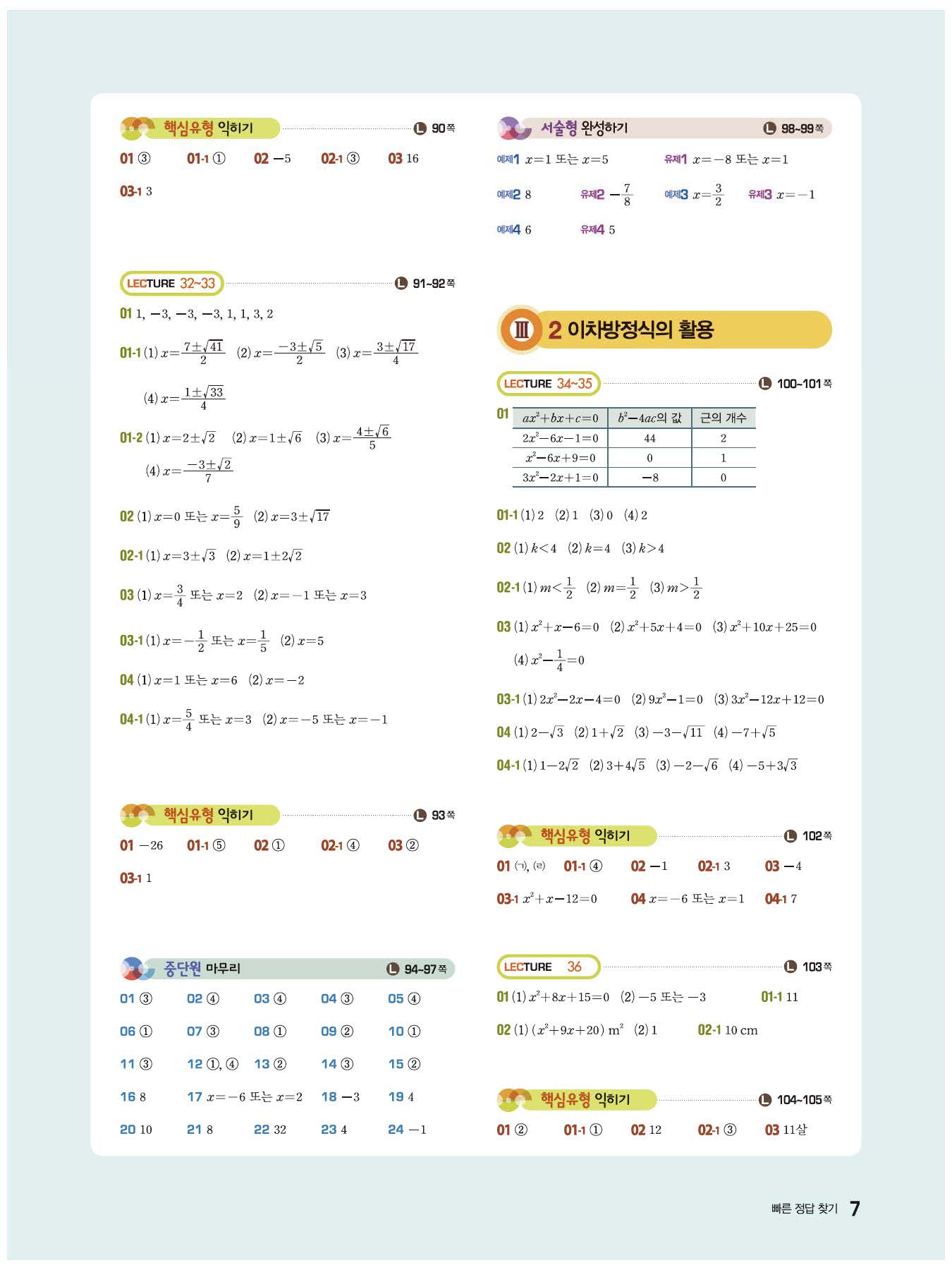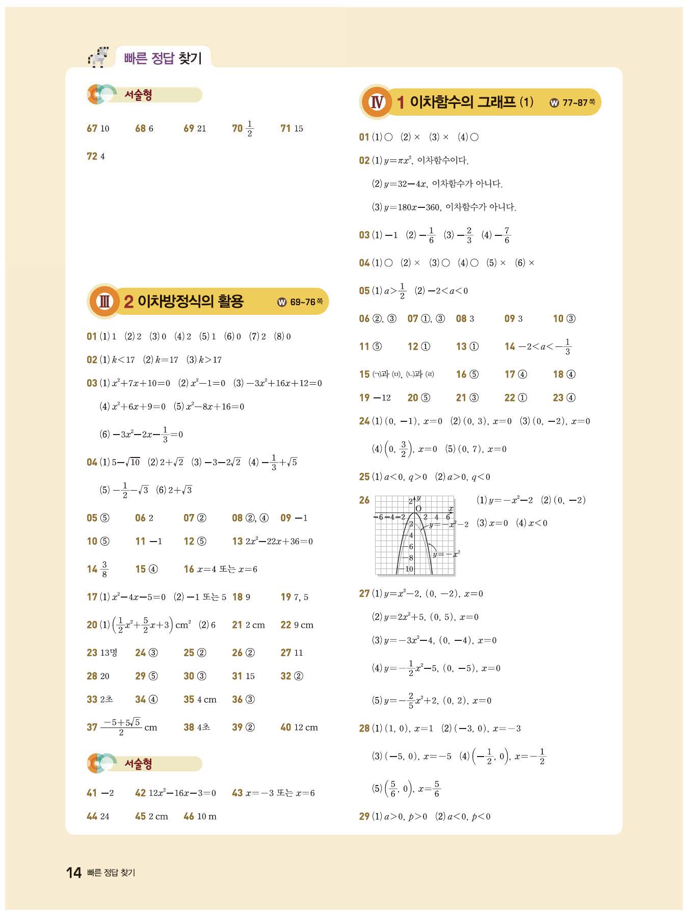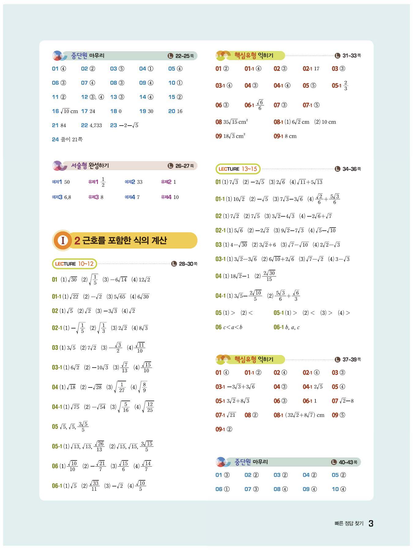 | 천재교육 이준열 중3 수학교과서 답지 | |