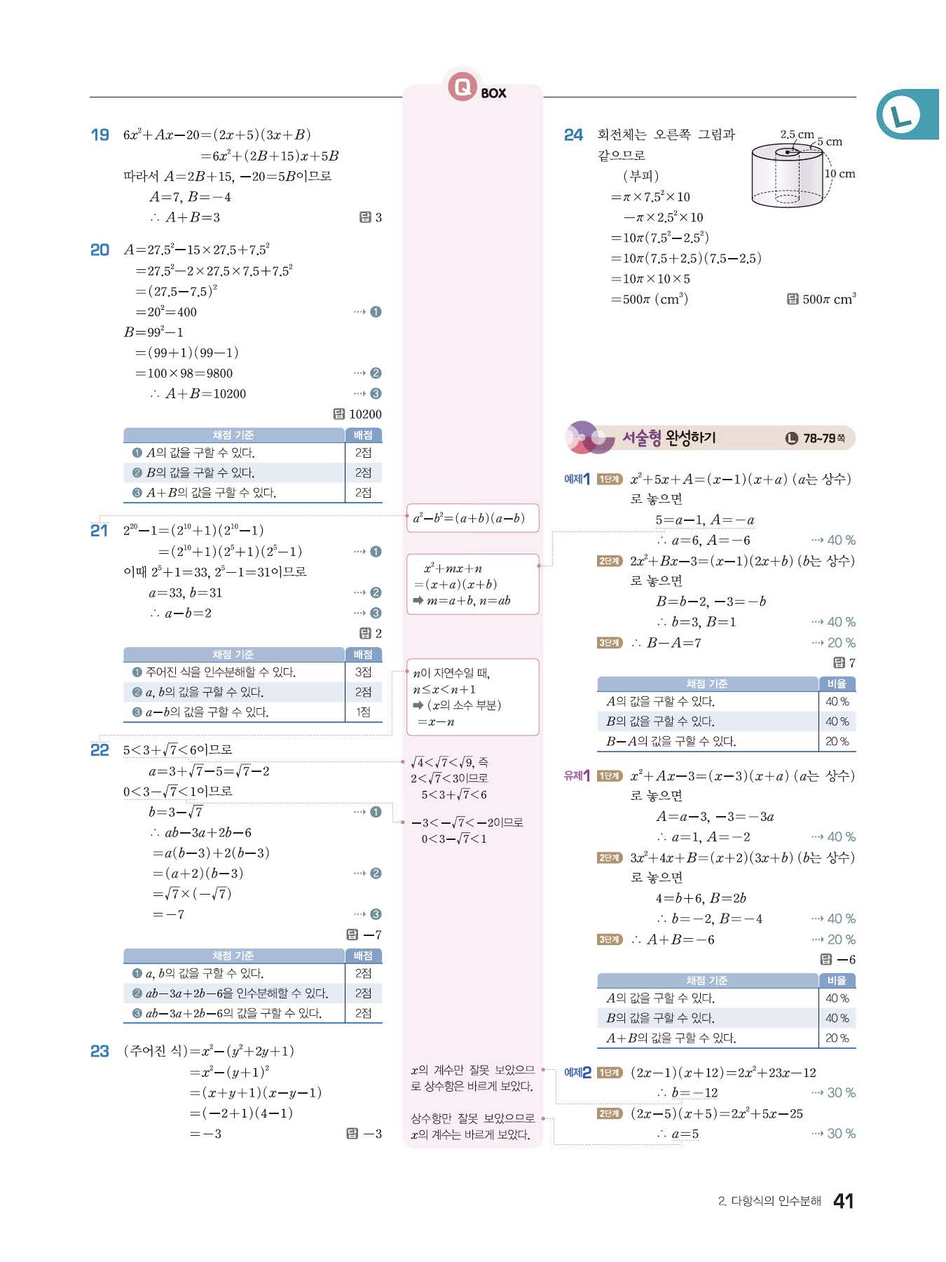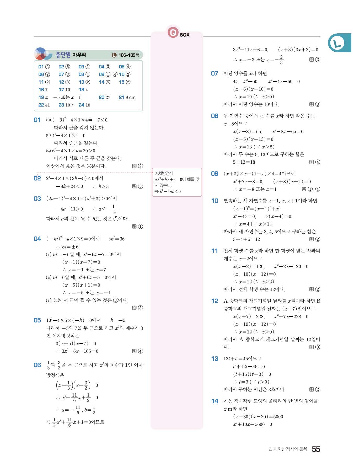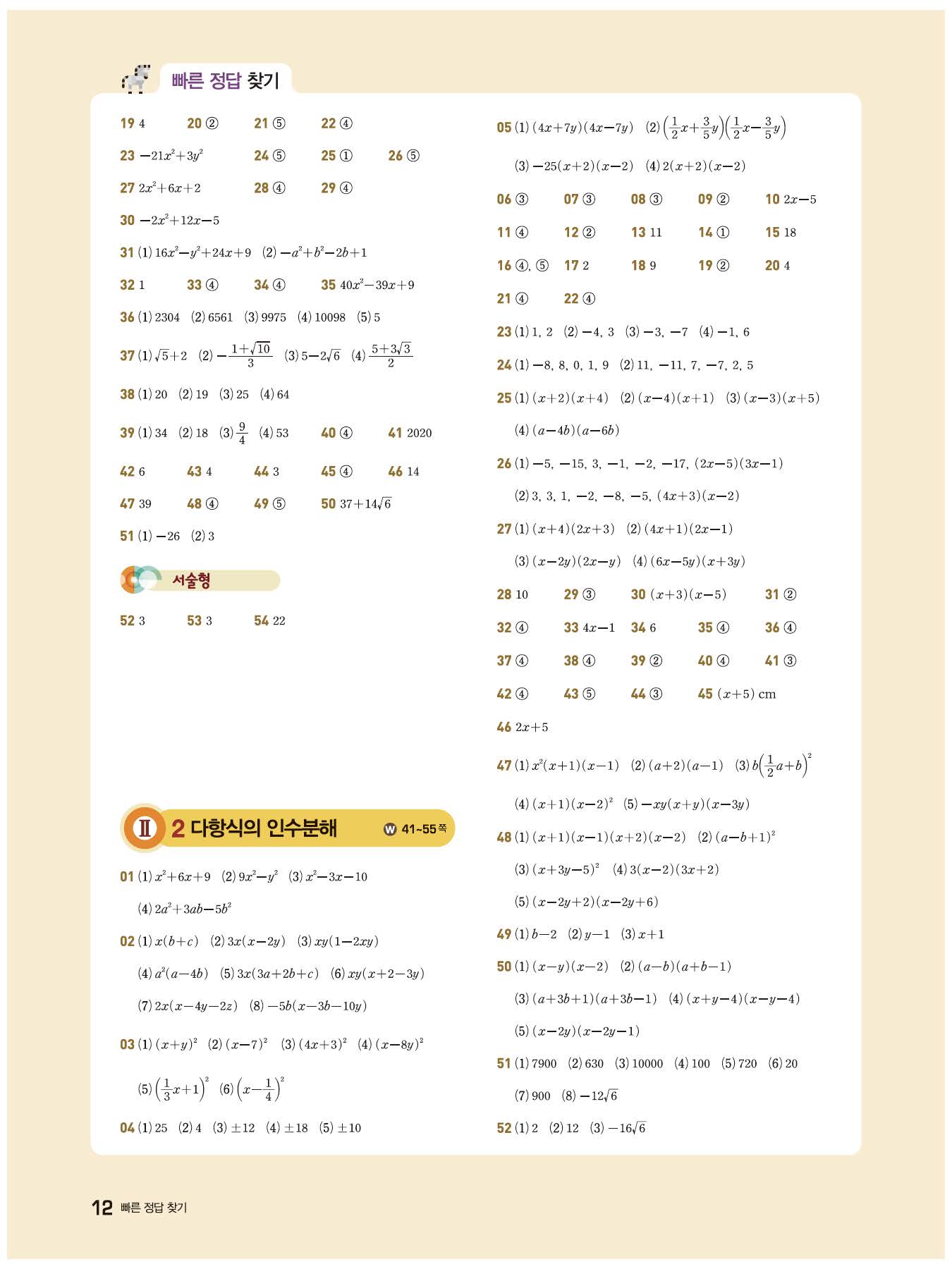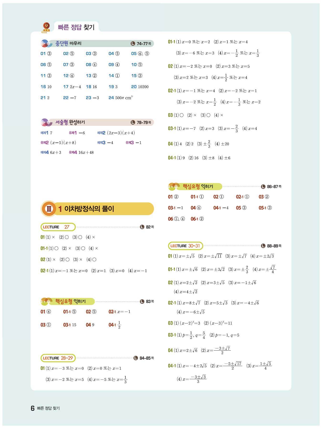 | 천재교육 이준열 중3 수학교과서 답지 | |