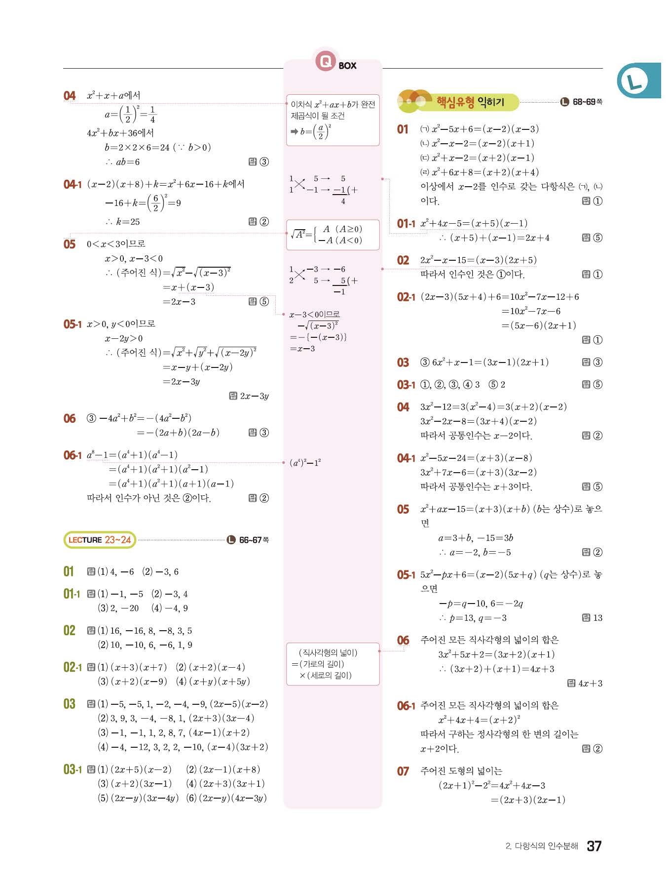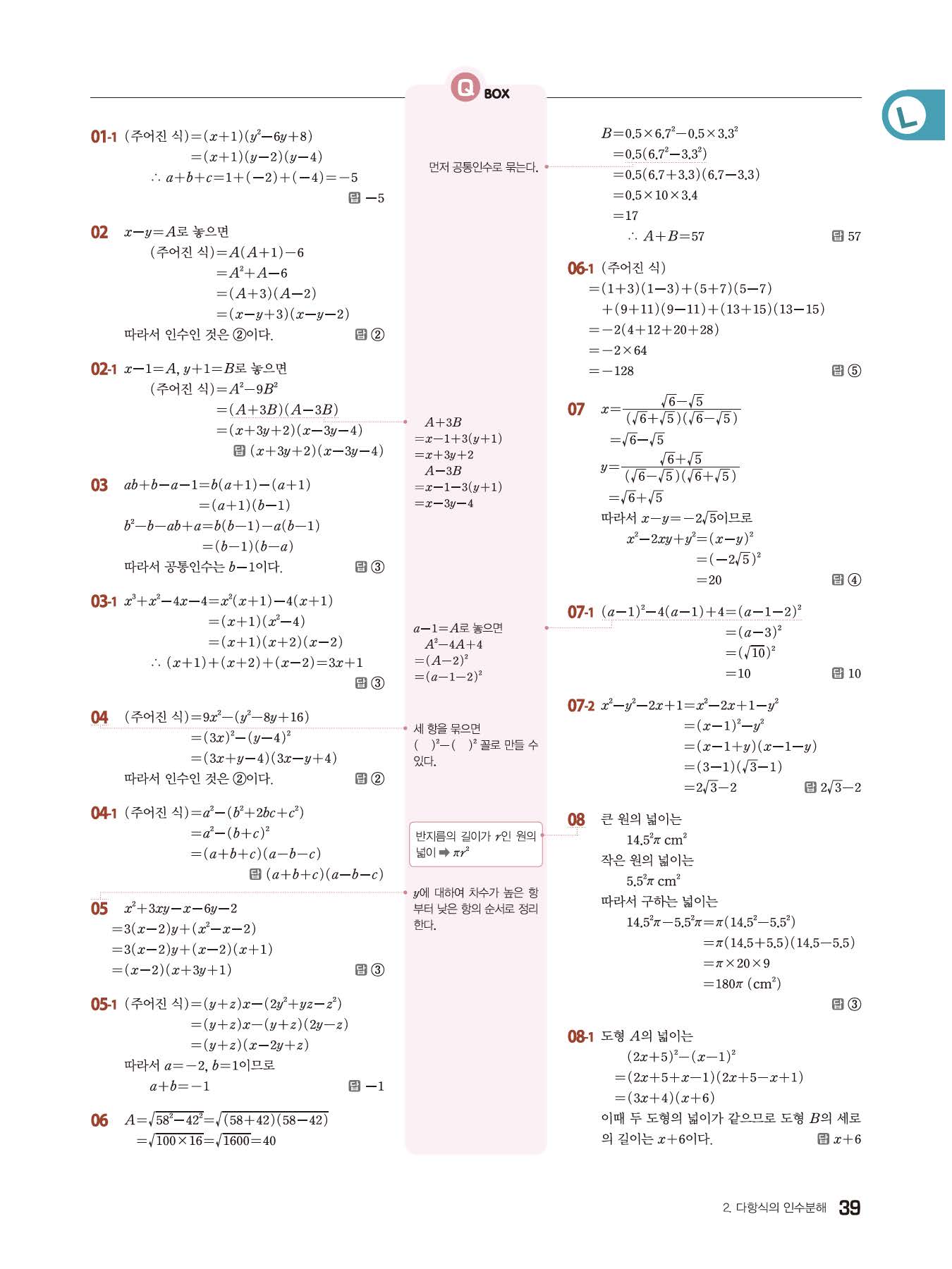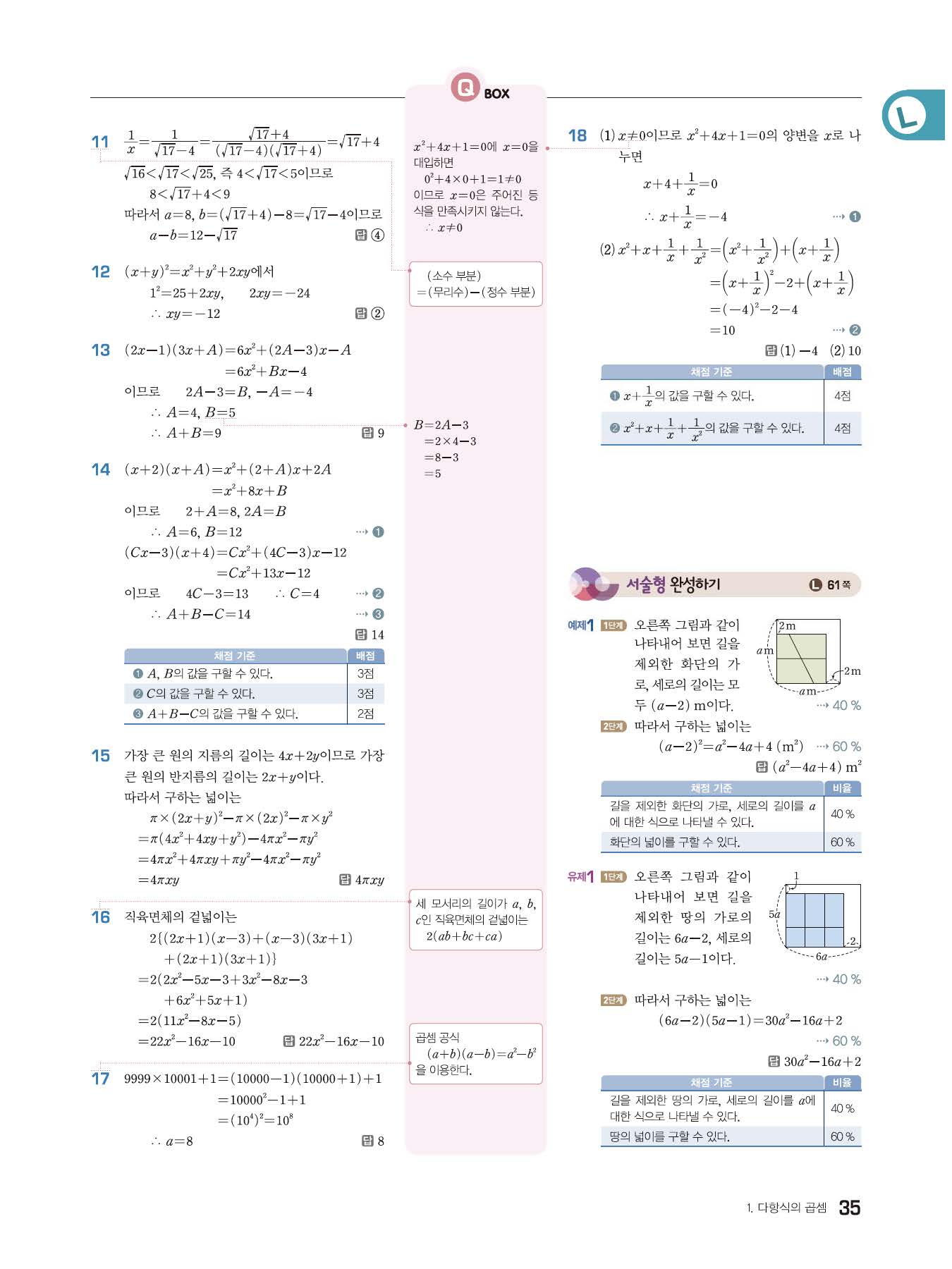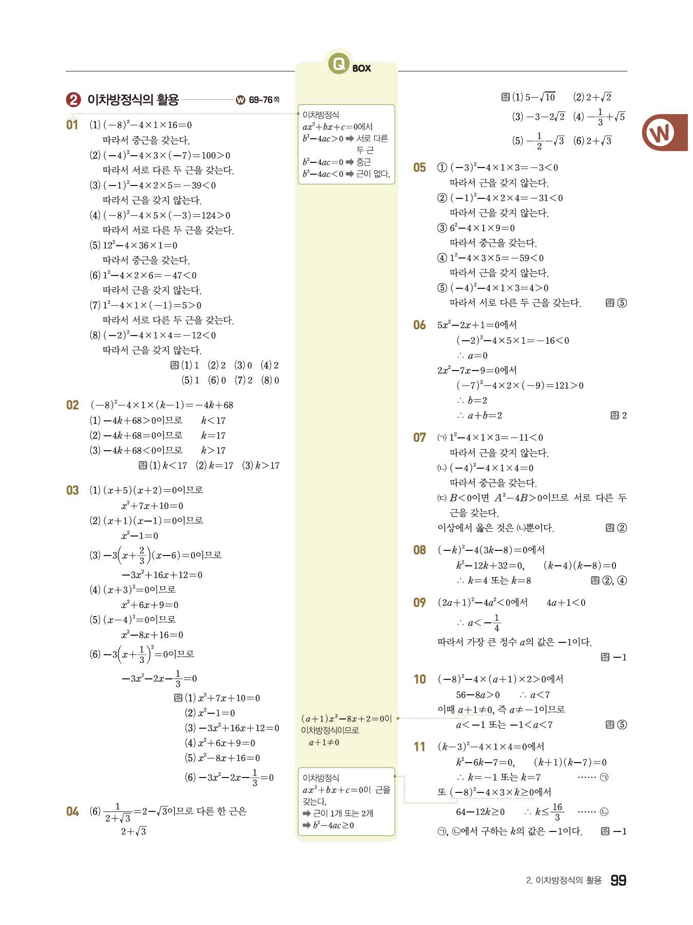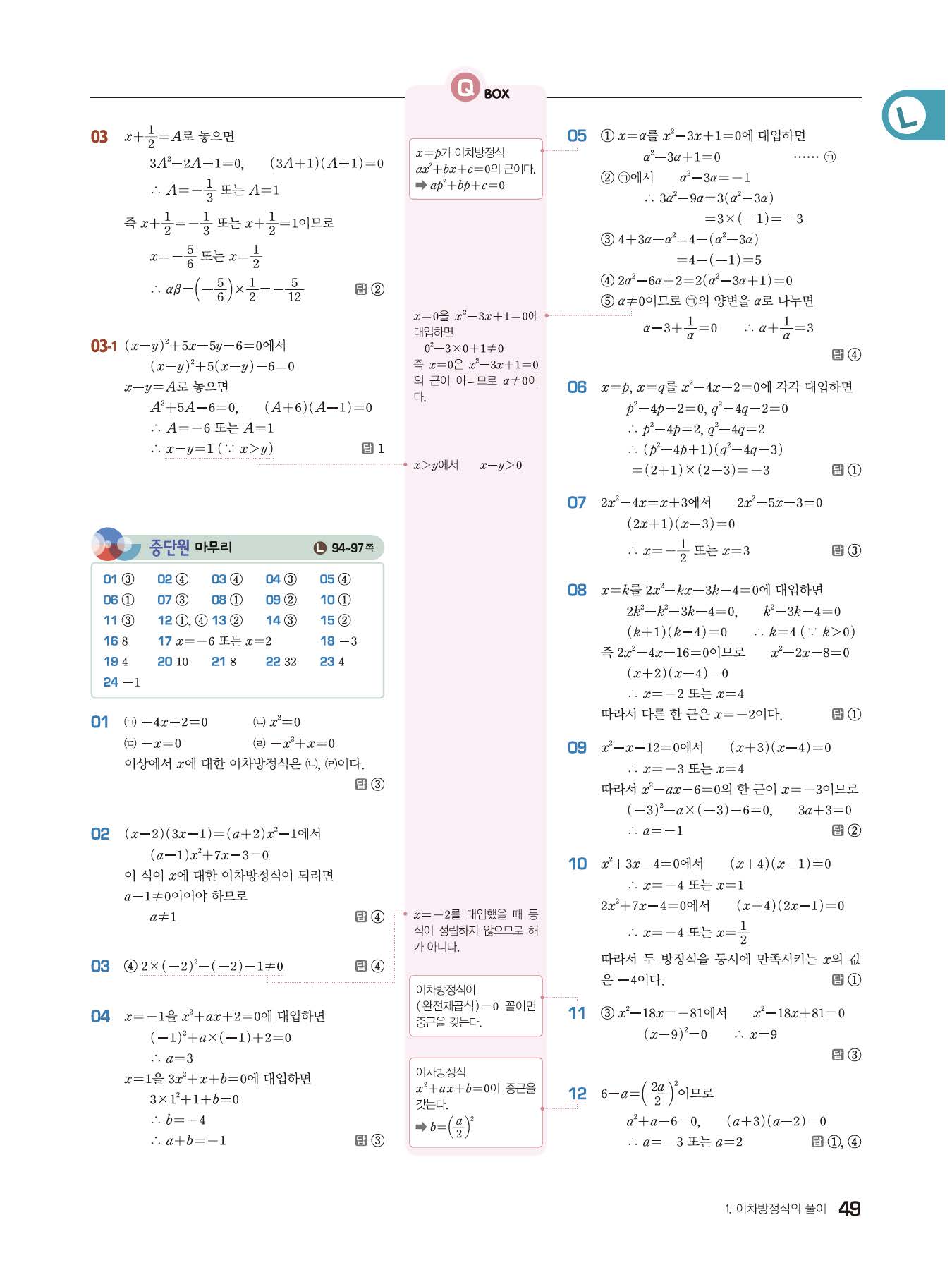 | 천재교육 이준열 중3 수학교과서 답지 | |