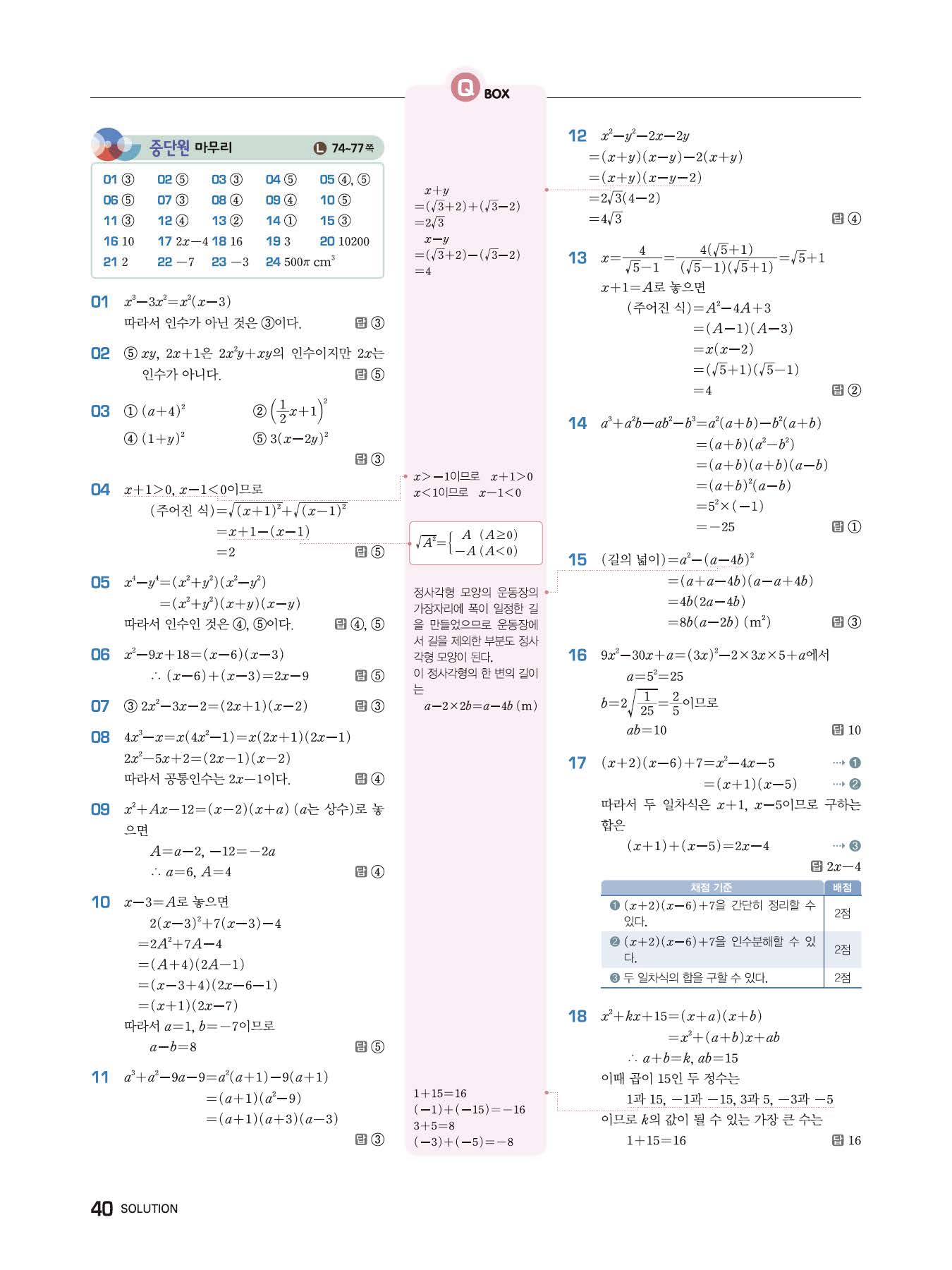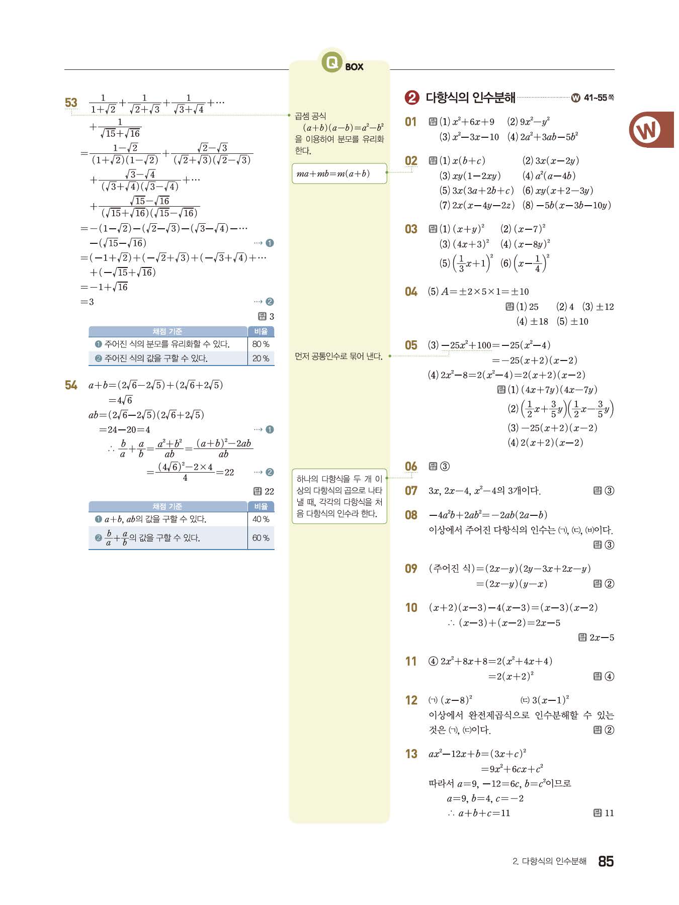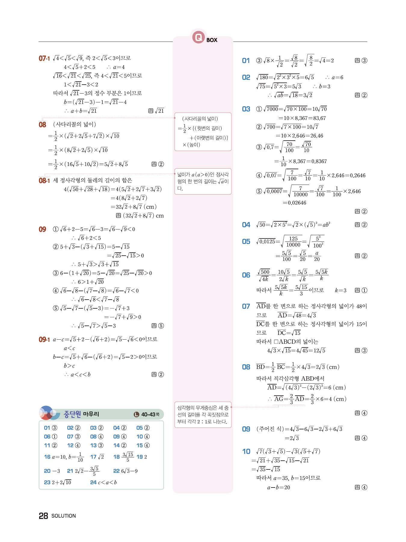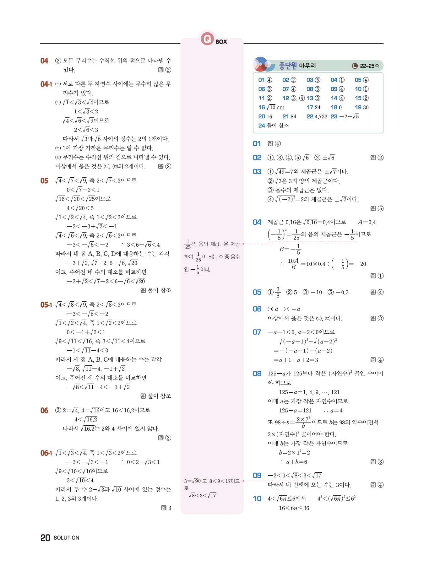 우공비큐 표준편 중3상 3-1 답지 해설지 사진답지 빠른답지 모바일최적화