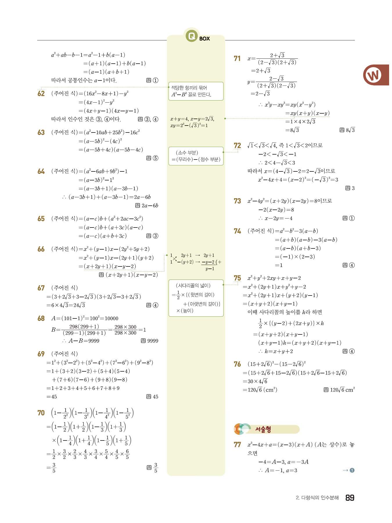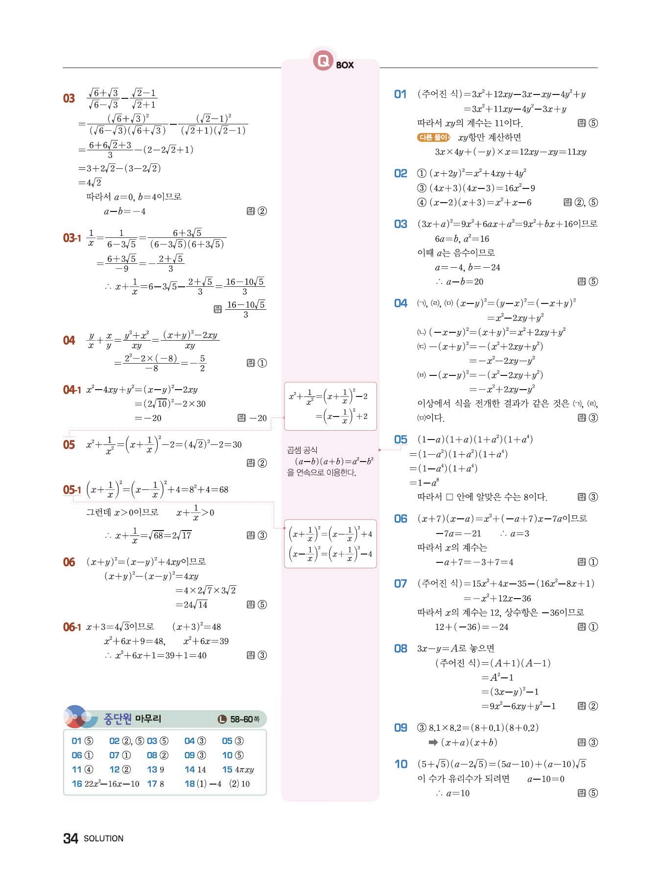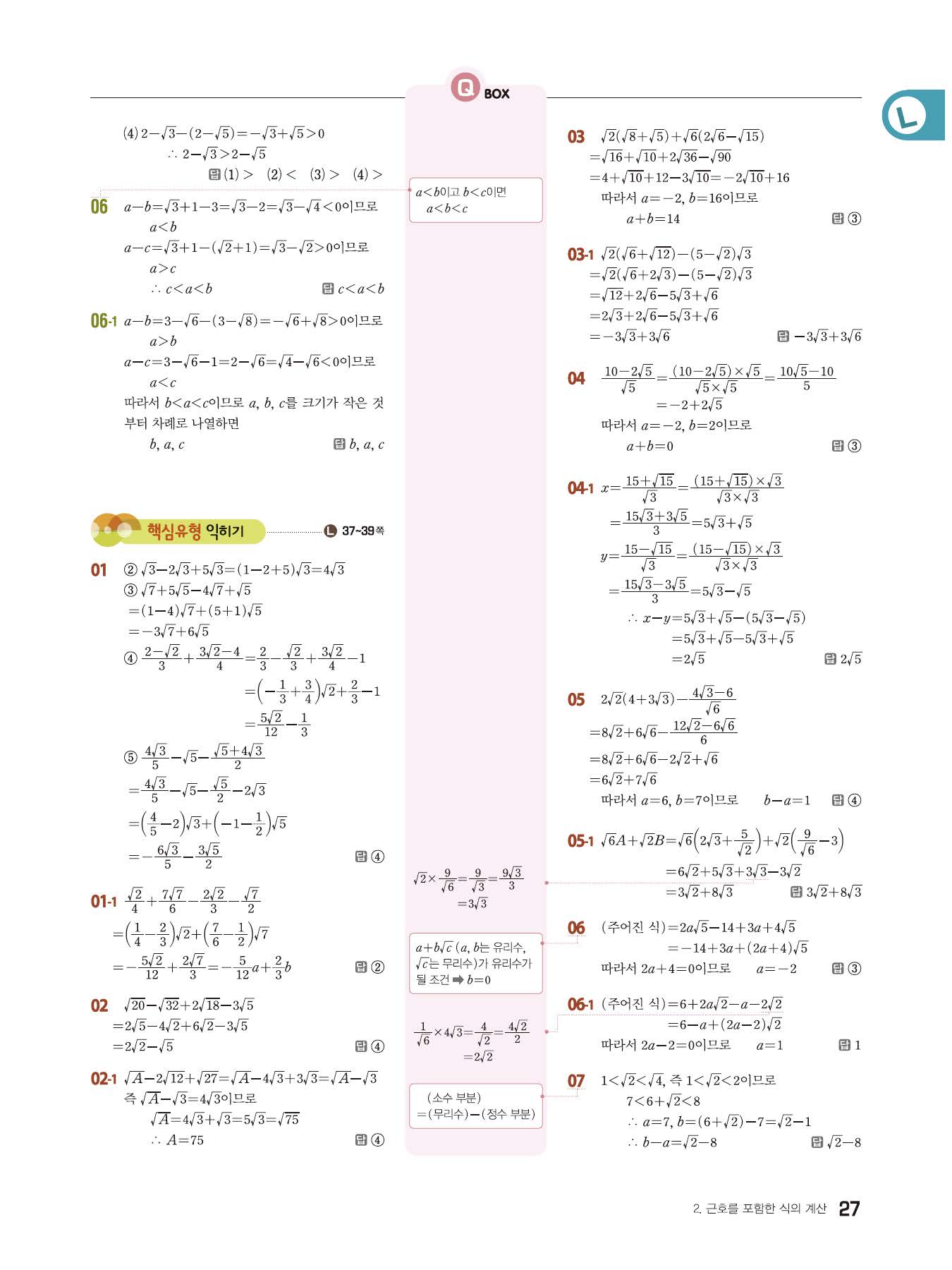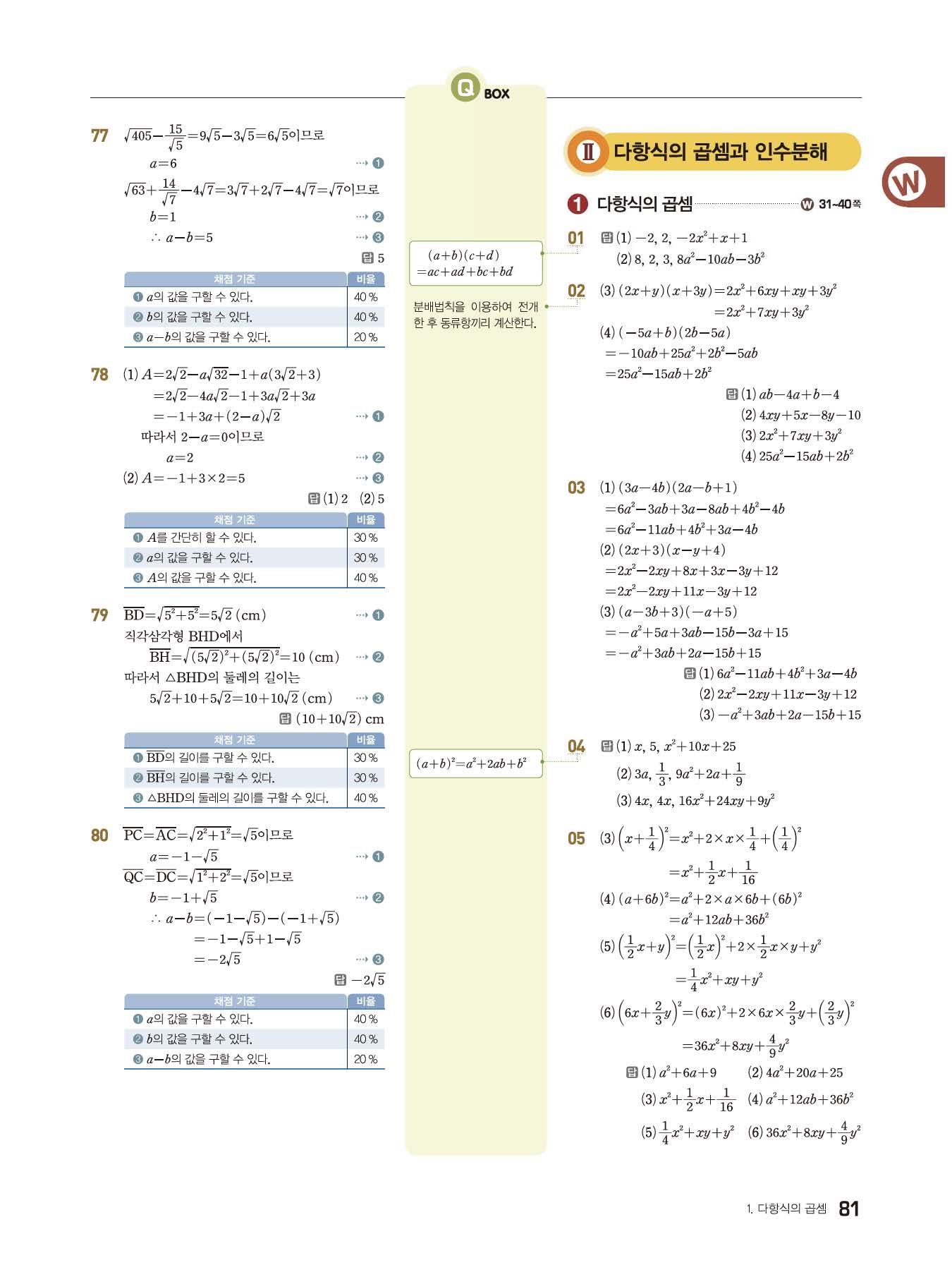 우공비큐 표준편 중3상 3-1 답지 해설지 사진답지 빠른답지 모바일최적화
