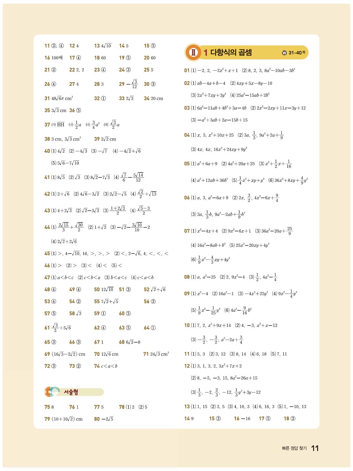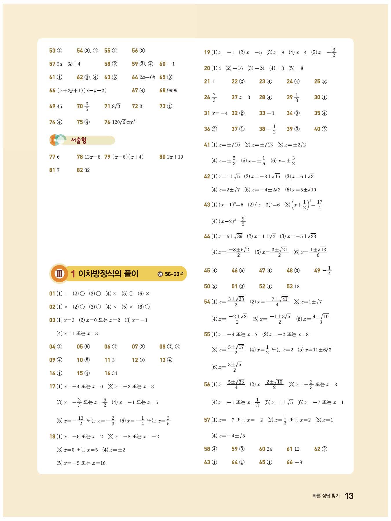 | 교학사 고호경 중3 수학교과서 답지 | |