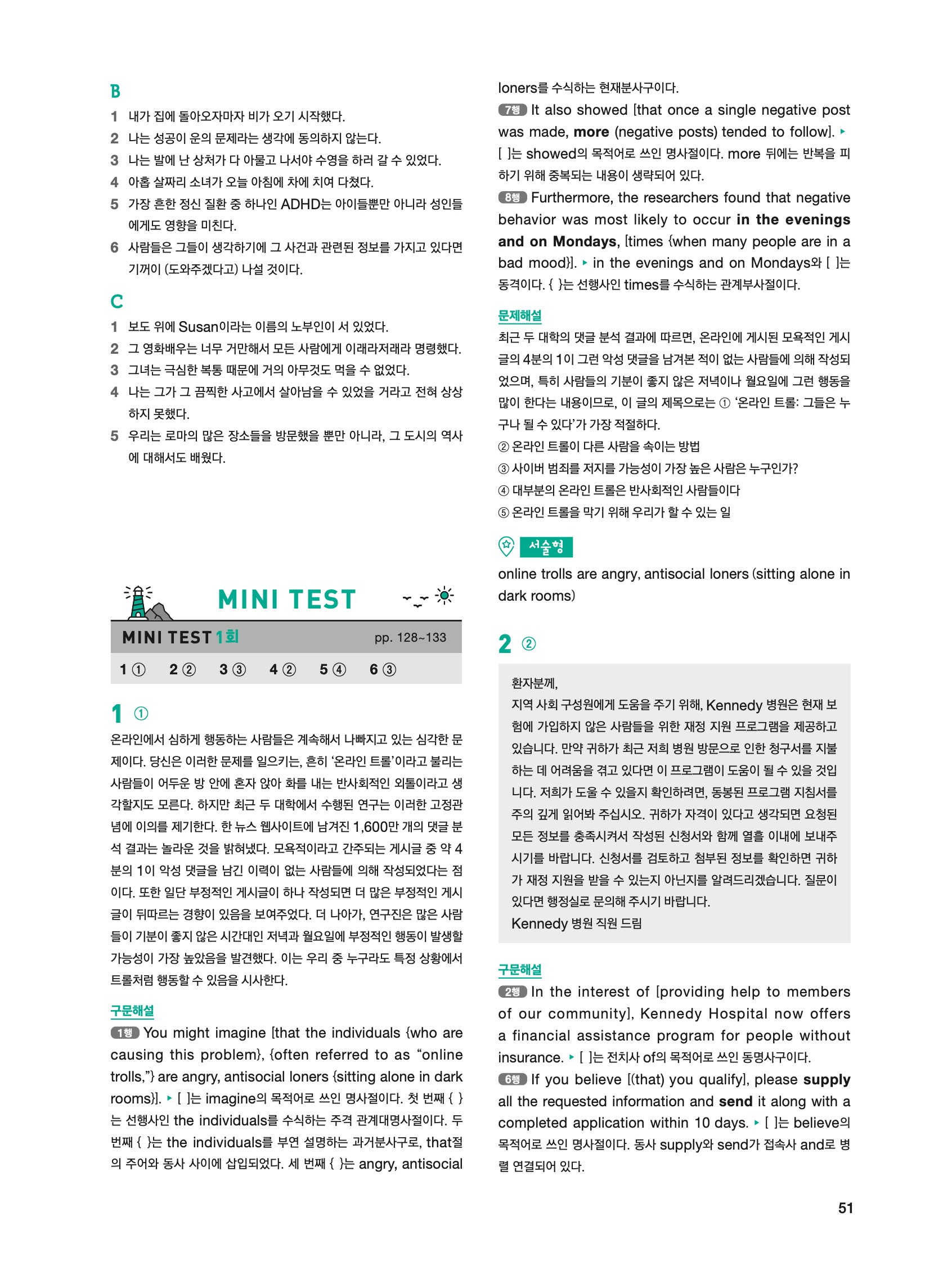 아래는 독해 실력 향상과 영어 학습에 도움이 되는 다른 교재의 답지와 해설을 제공하는 포스팅입니다.