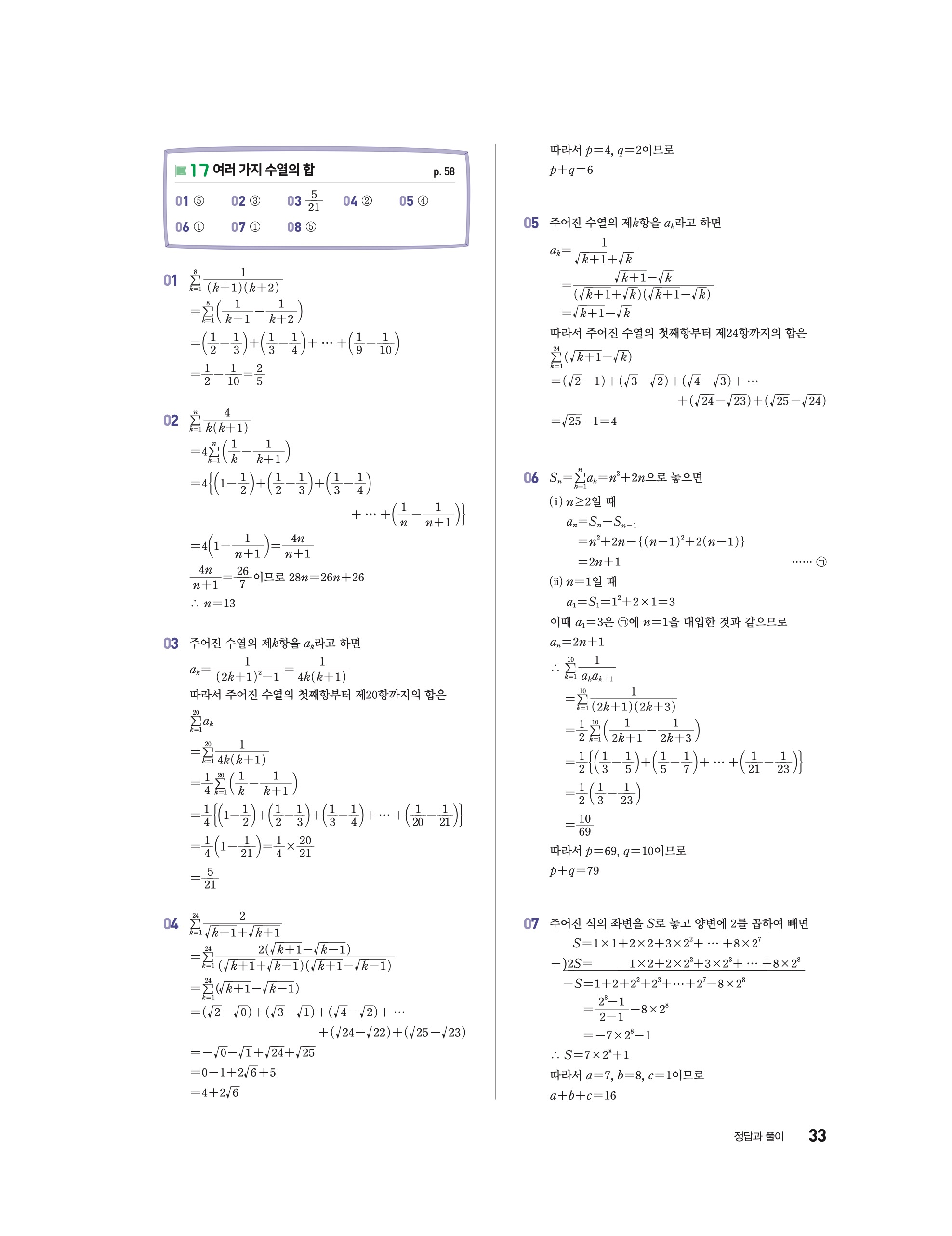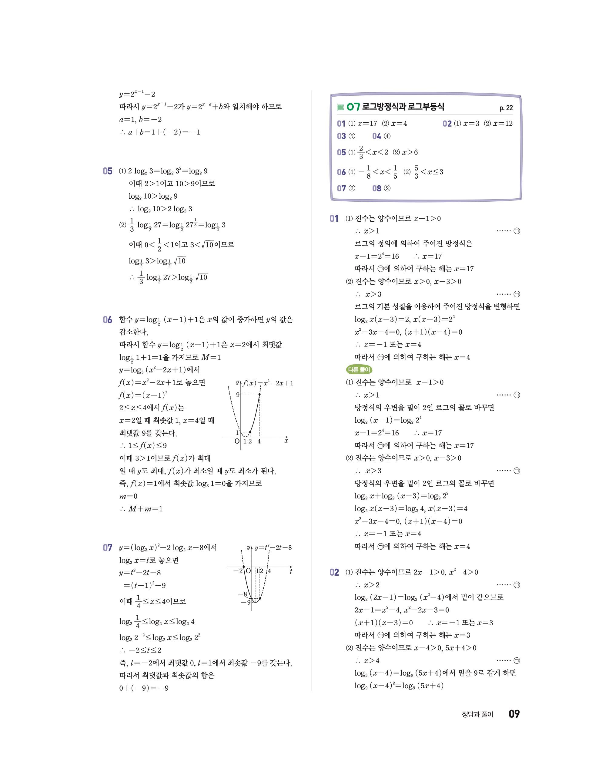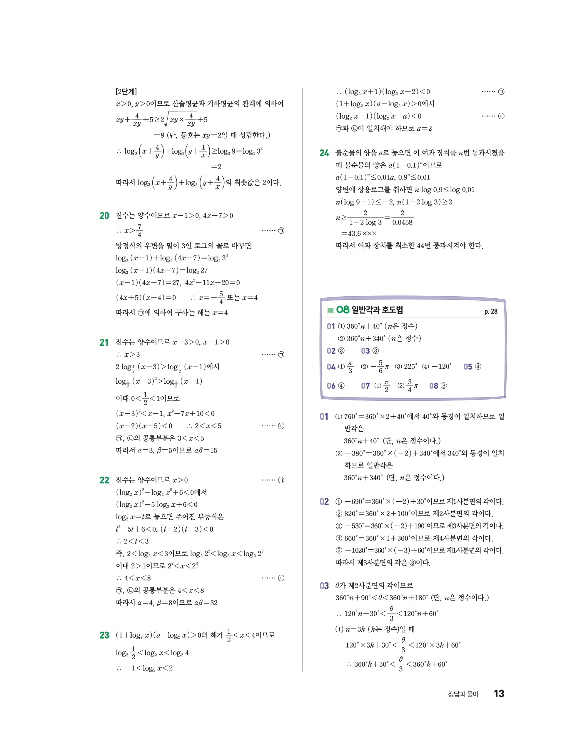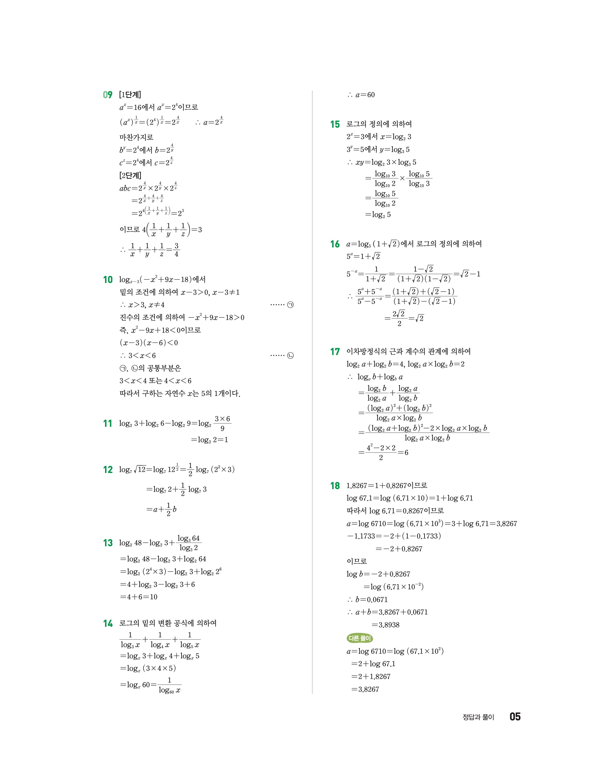 아래는 수학 실력 향상과 문제 풀이에 도움이 되는 다른 교재의 답지와 해설을 제공하는 포스팅입니다.