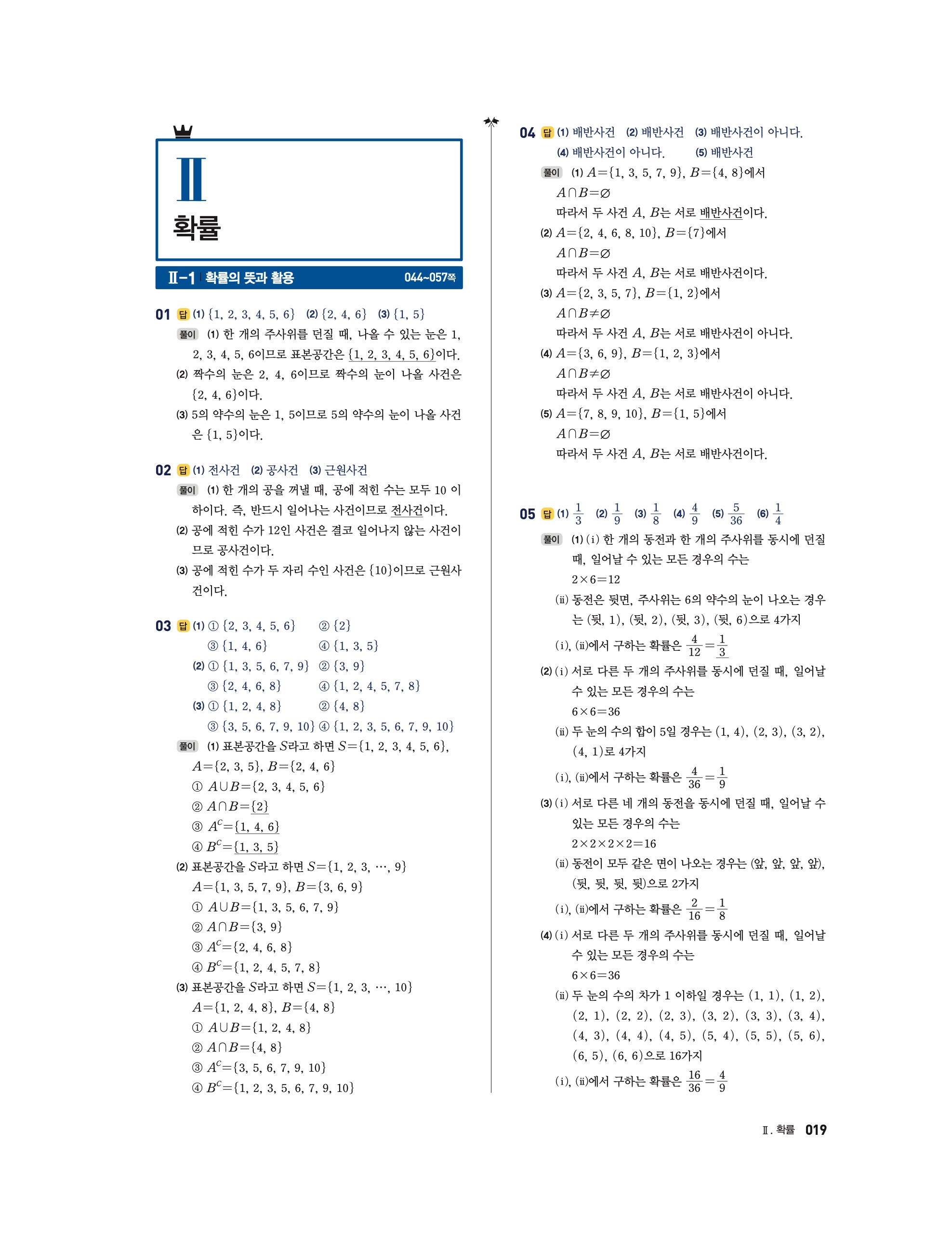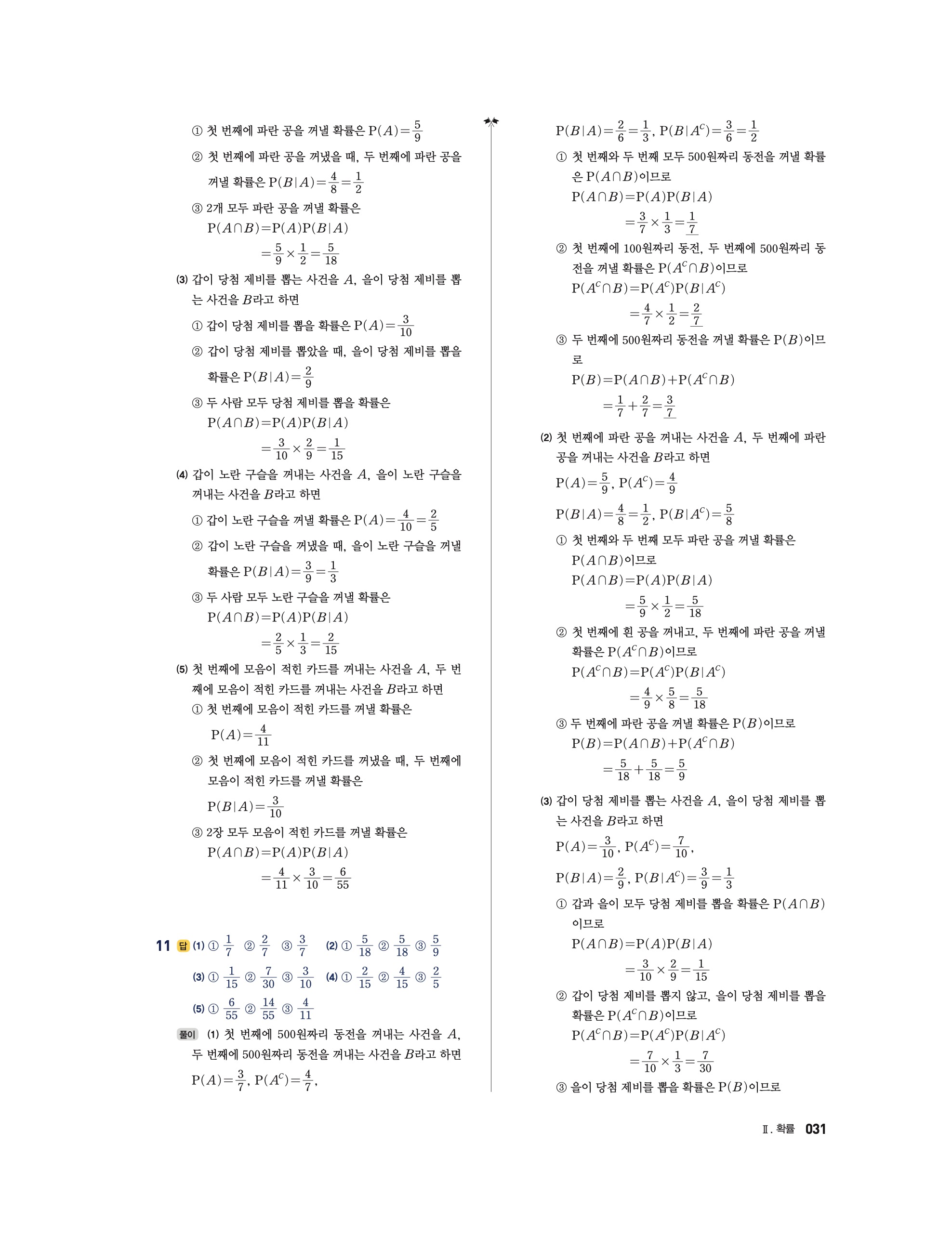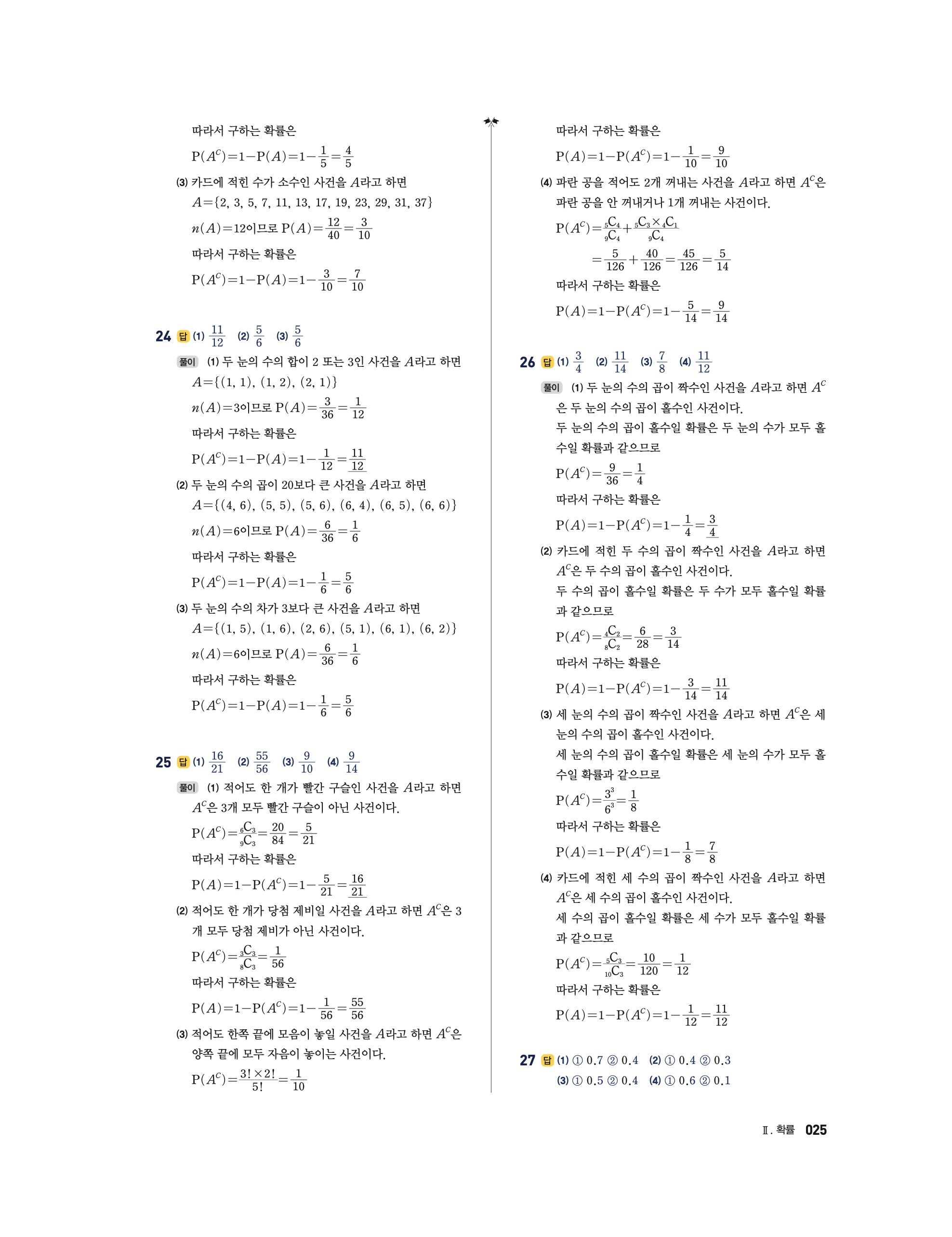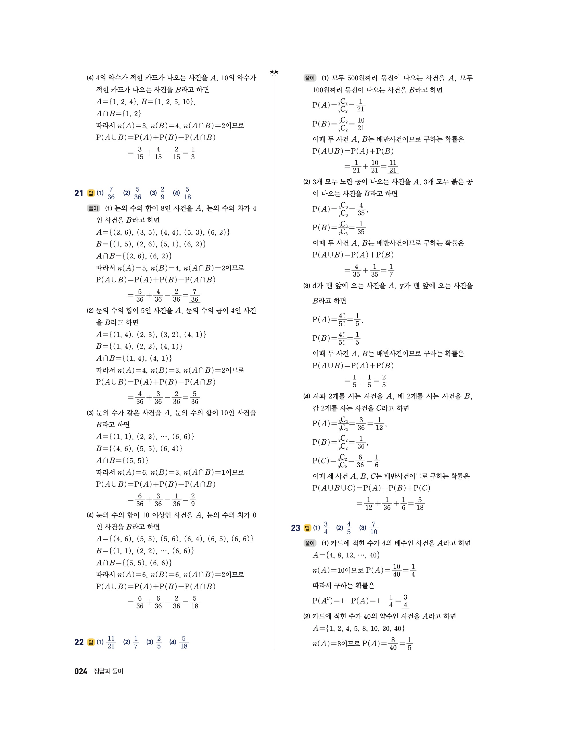 📘 2025 수학의 정석 확률과통계 답지 및 해설
