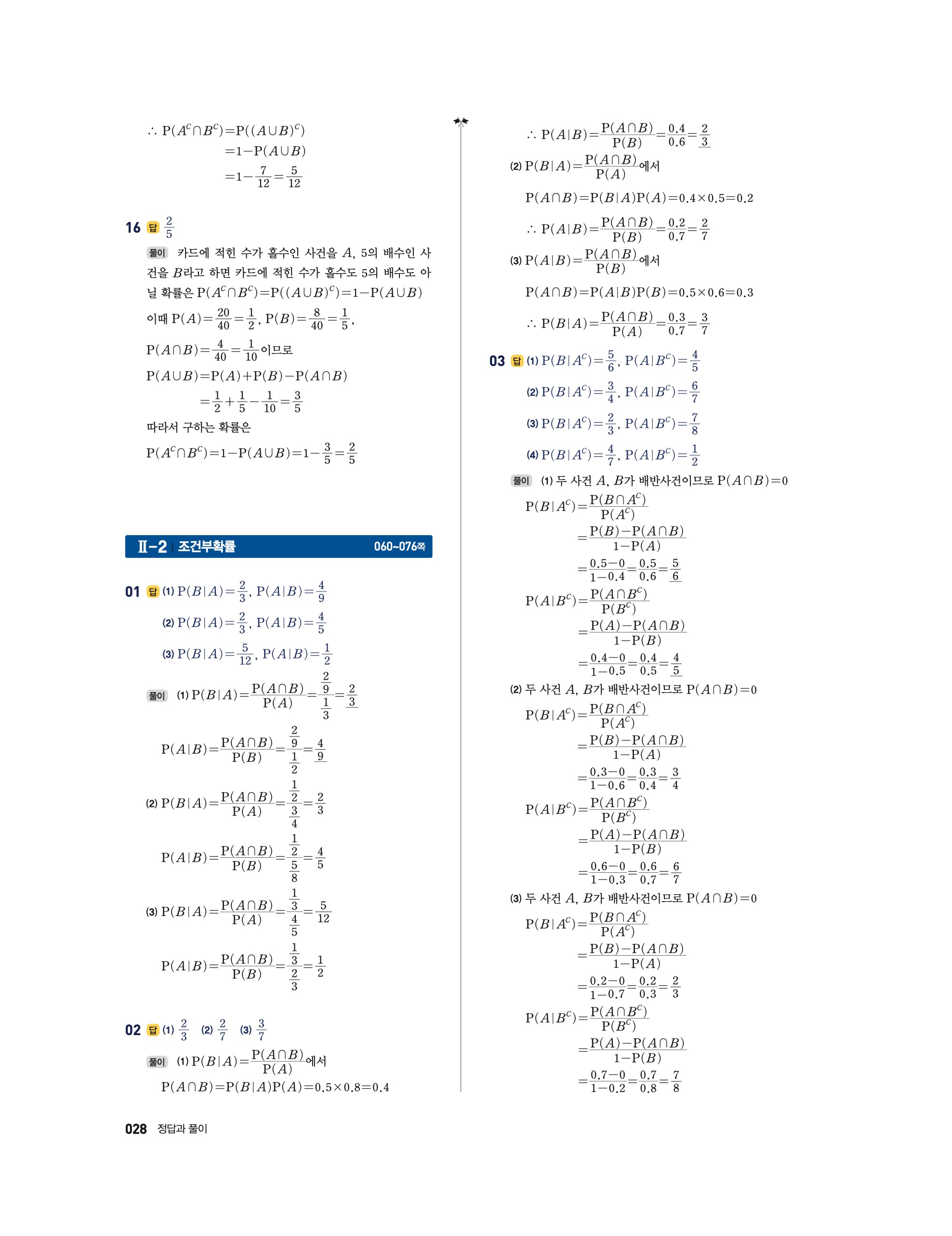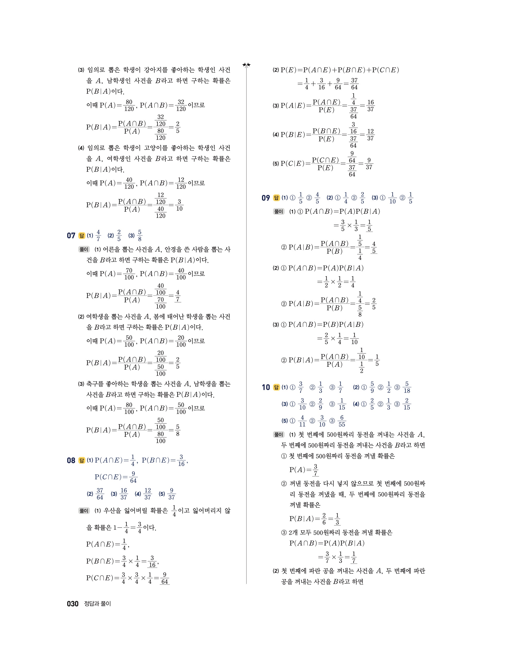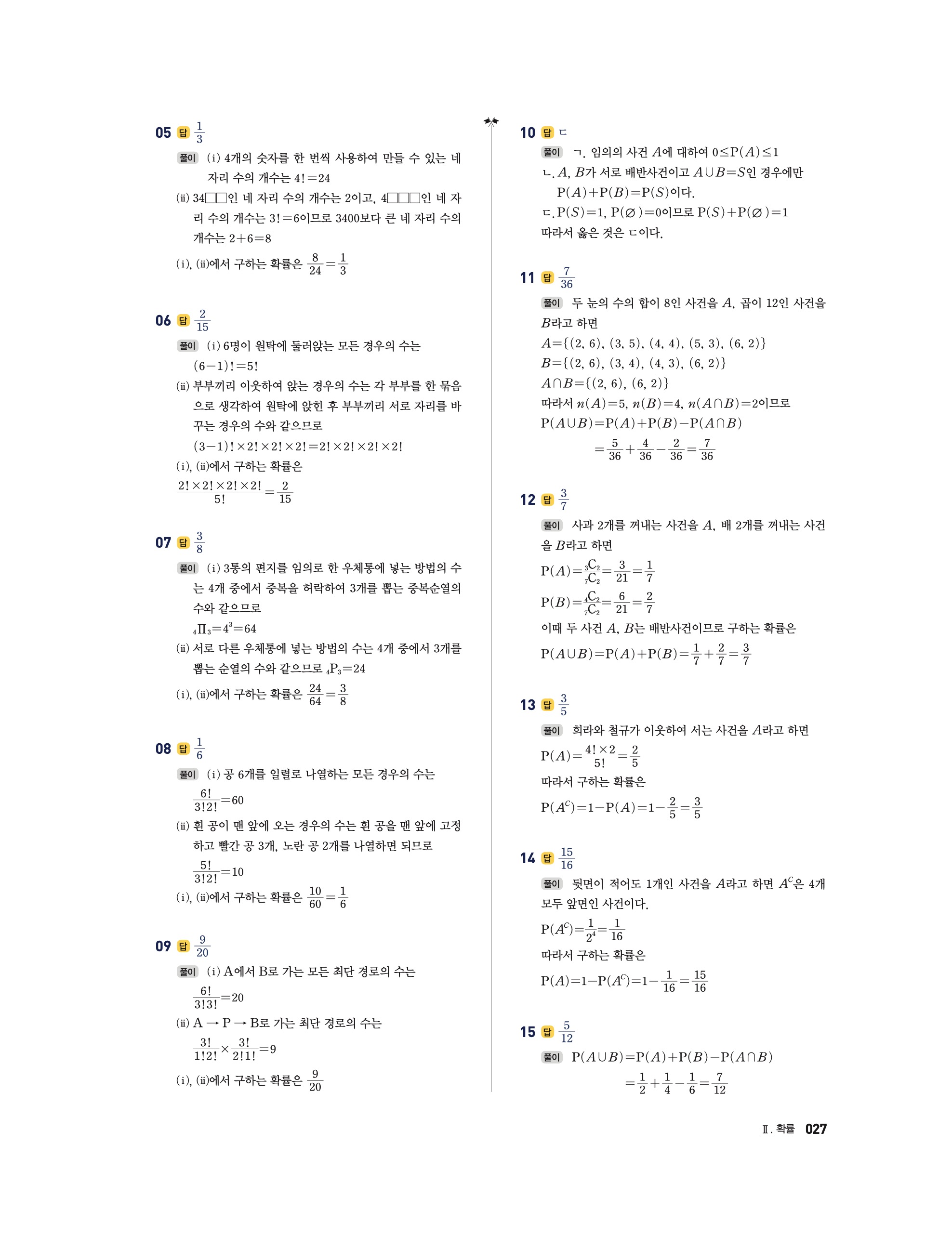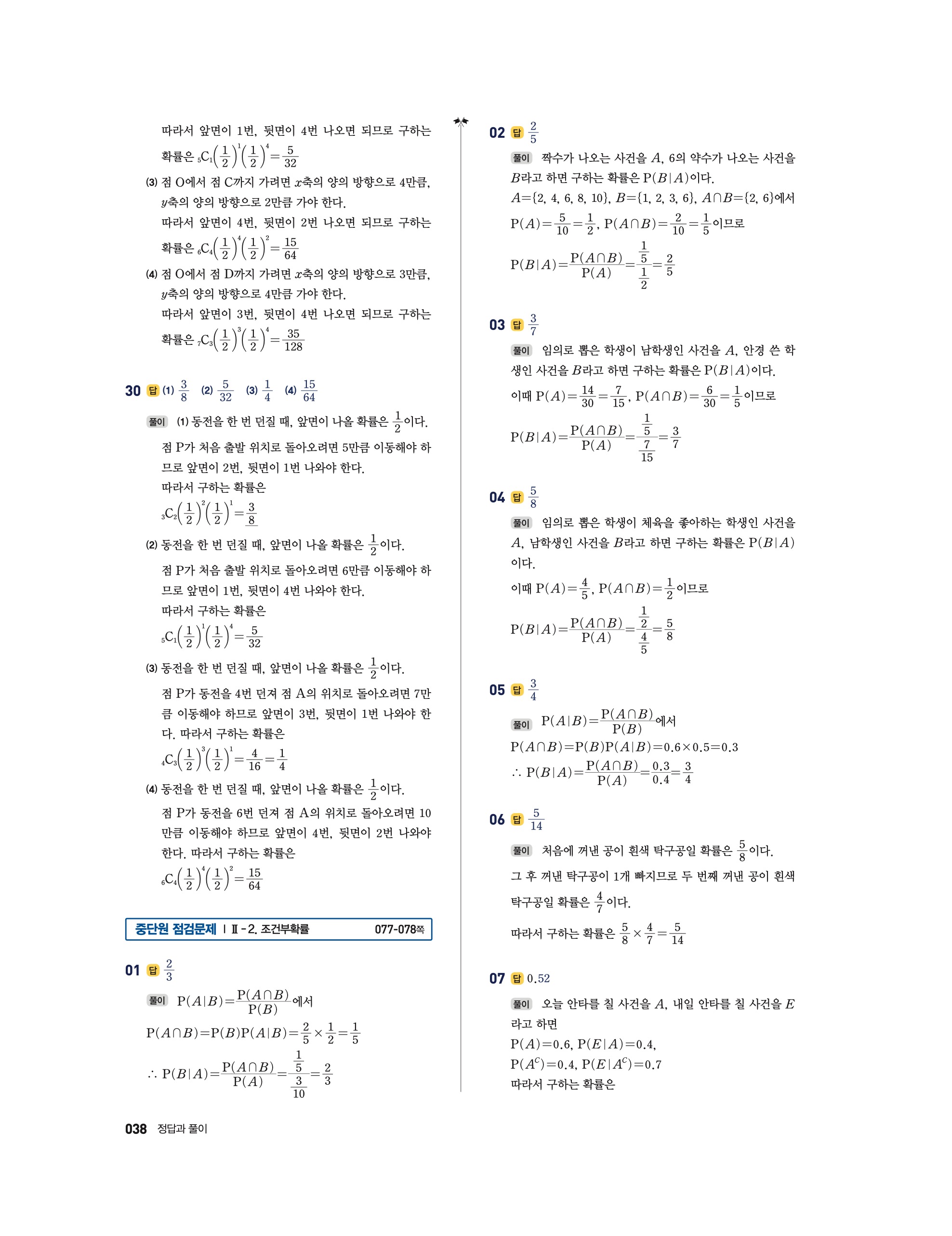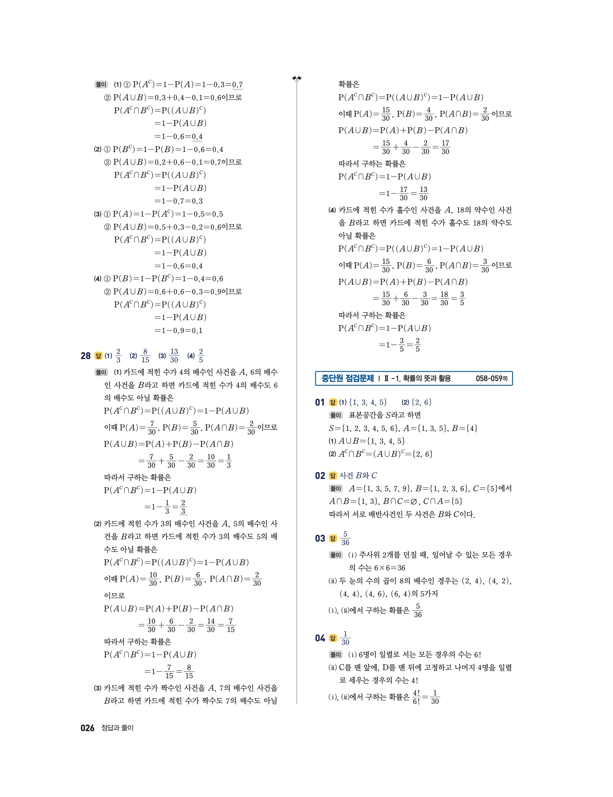 📘 2025 수학의 정석 확률과통계 답지 및 해설