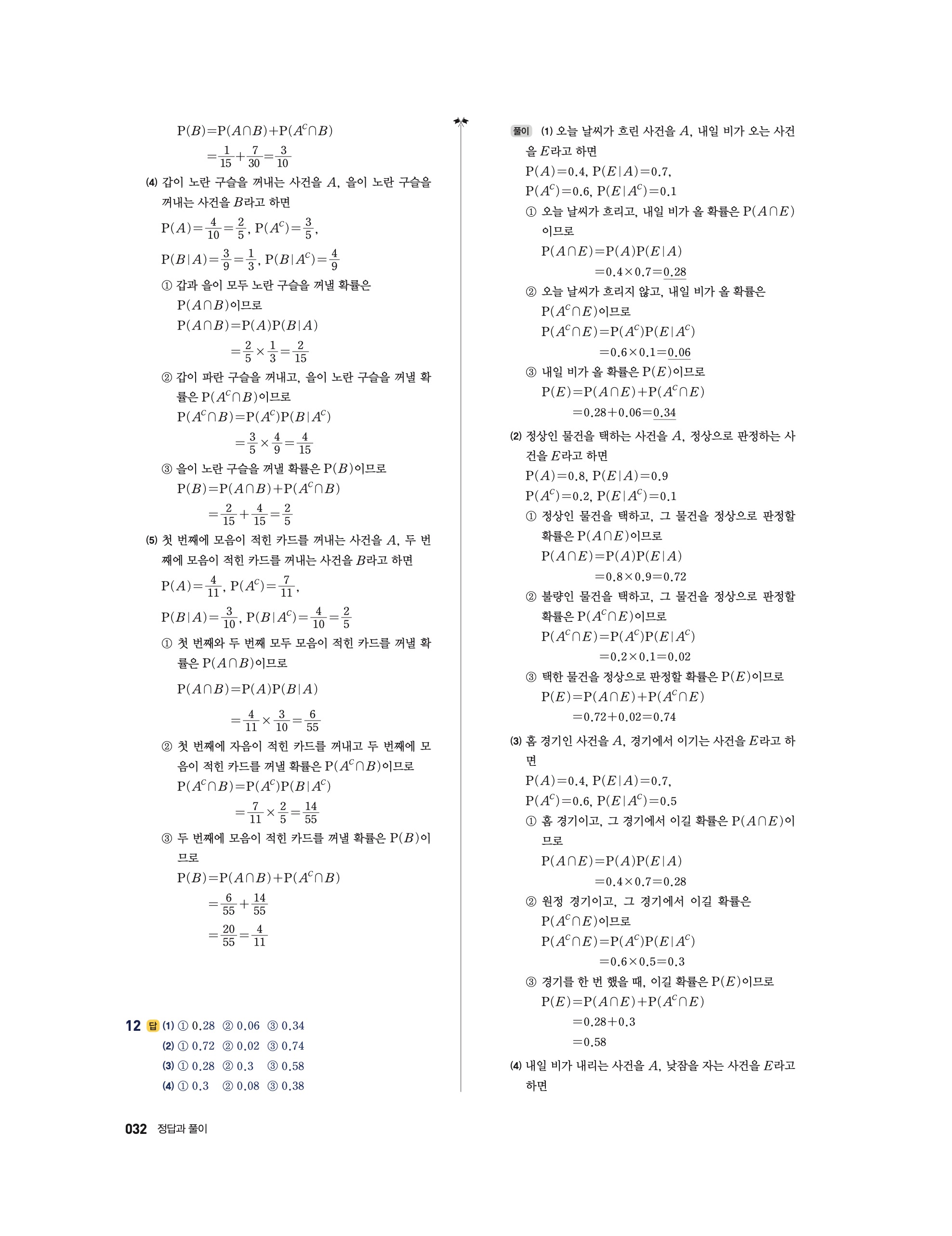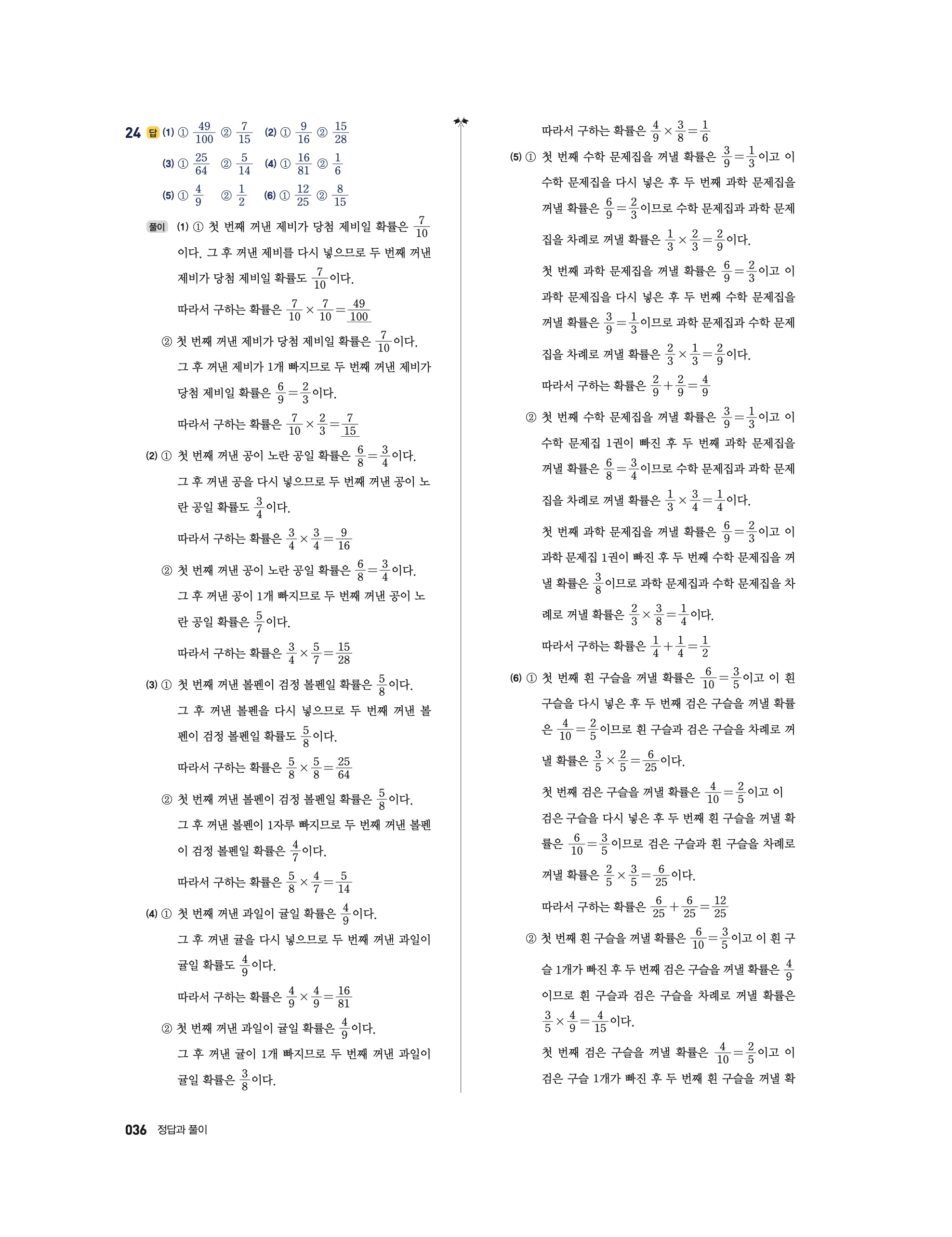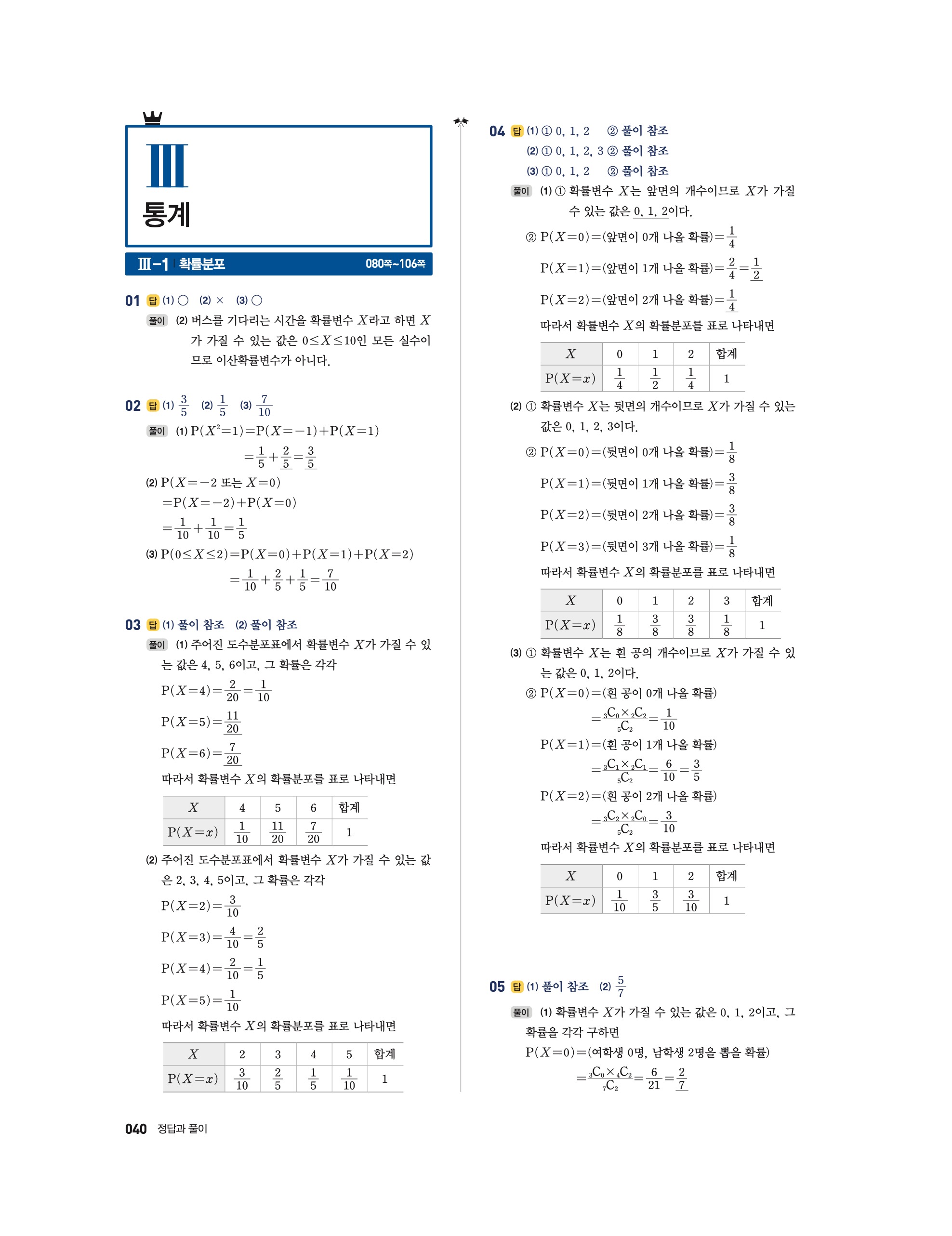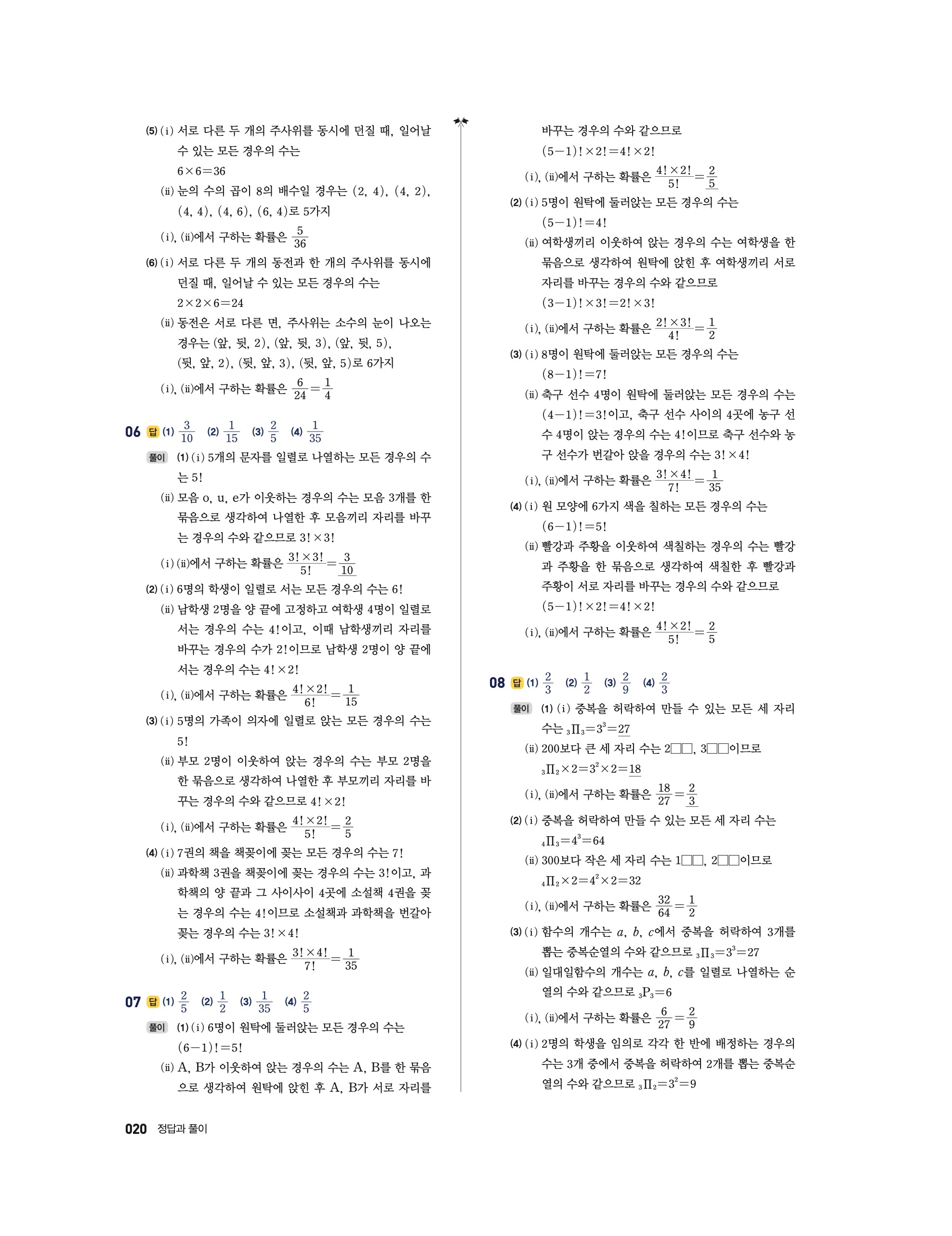 📖 풍산자 반복수학 확률과통계 확통 답지 해설 및 빠른답지 다운로드