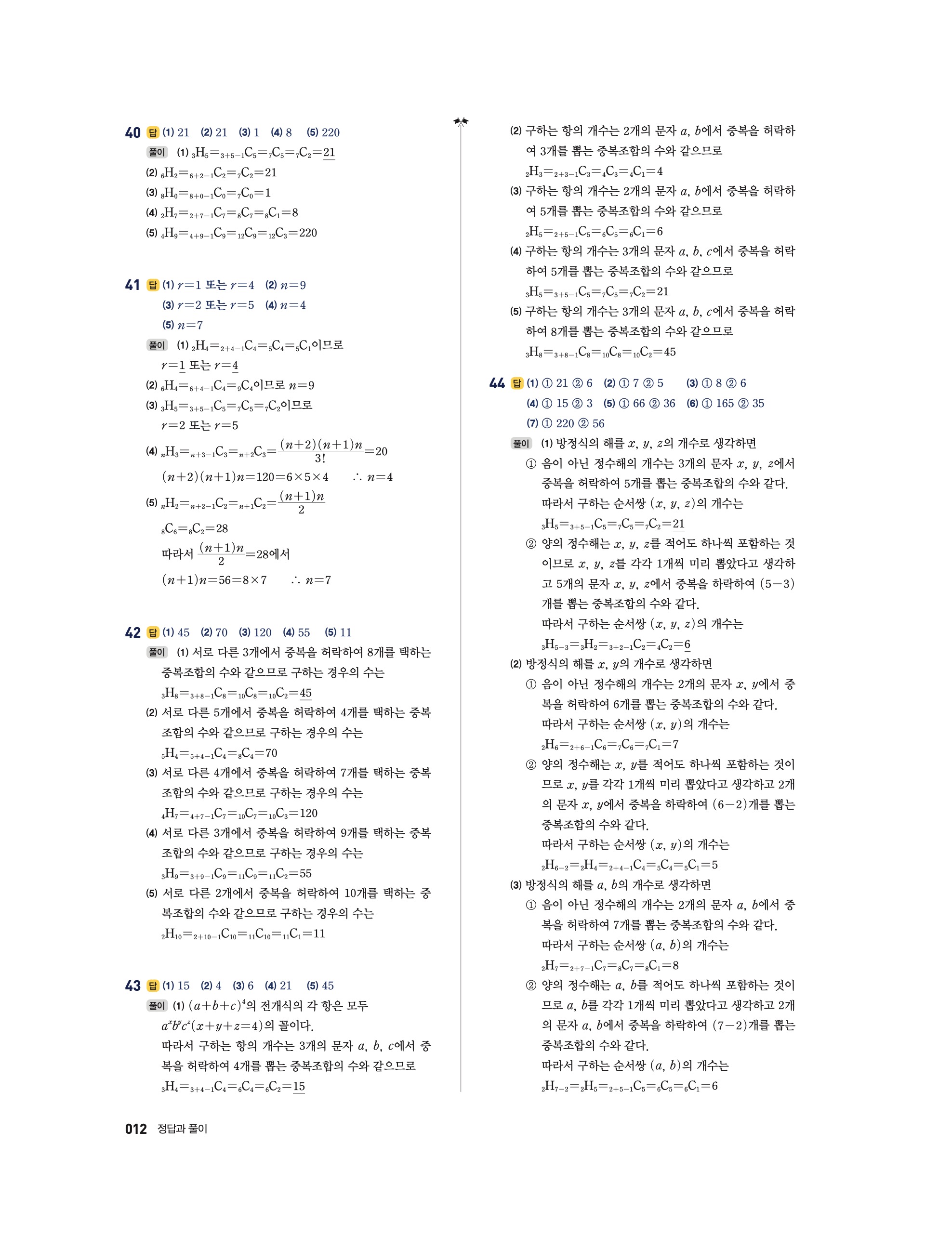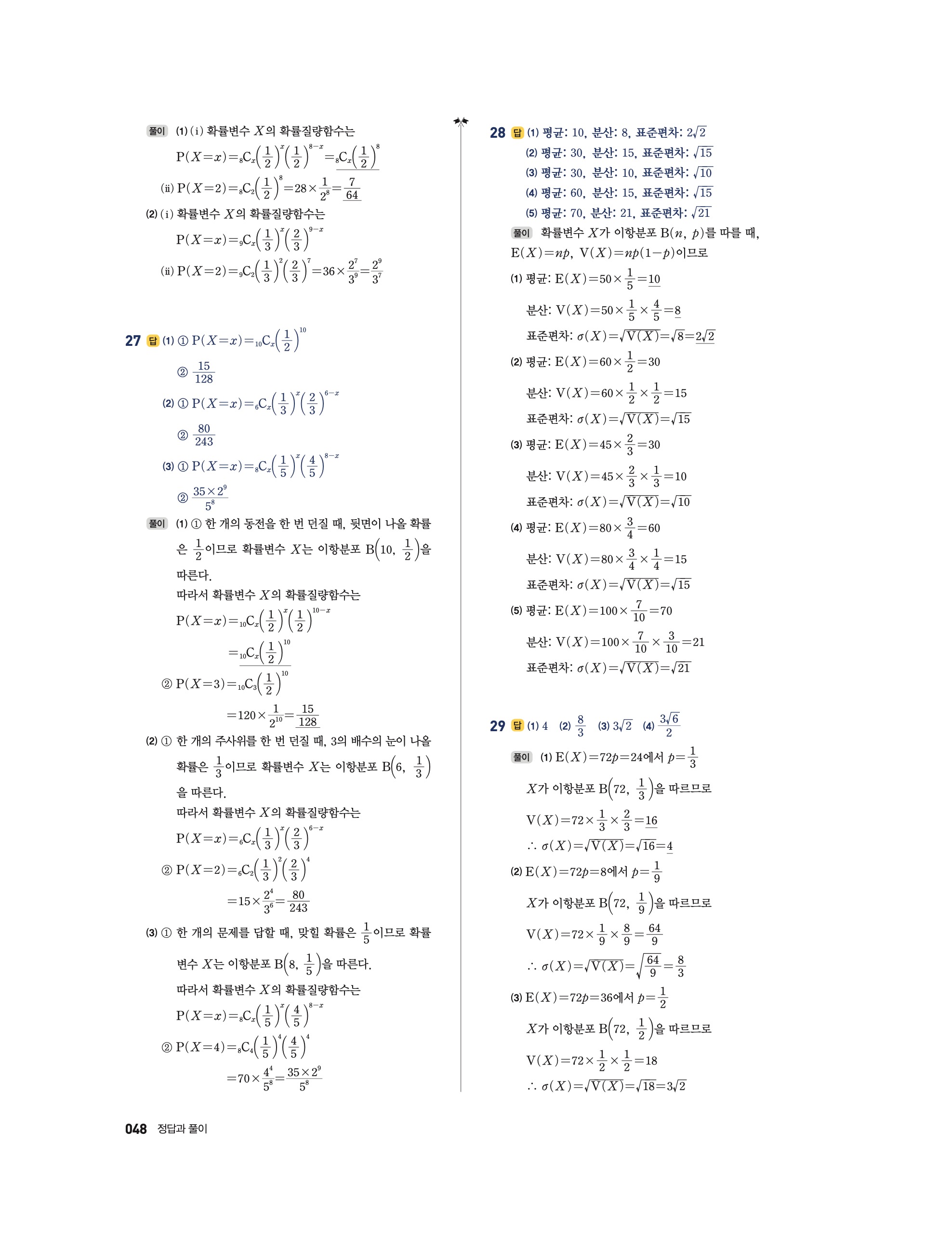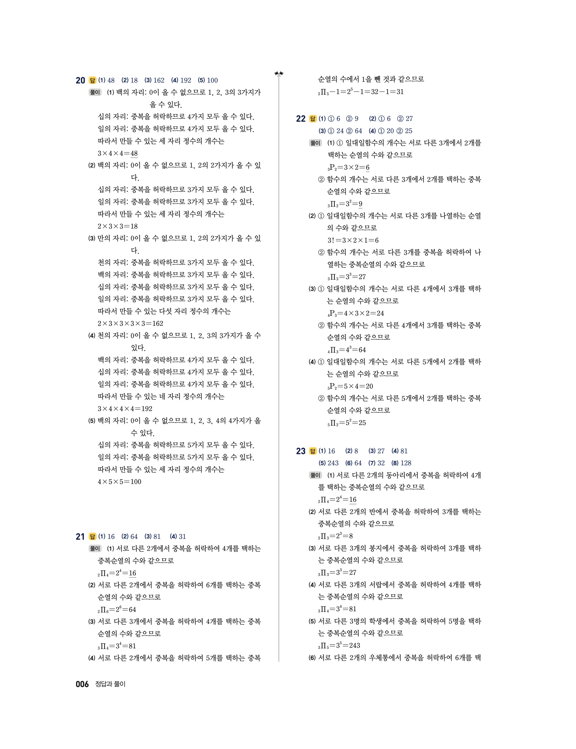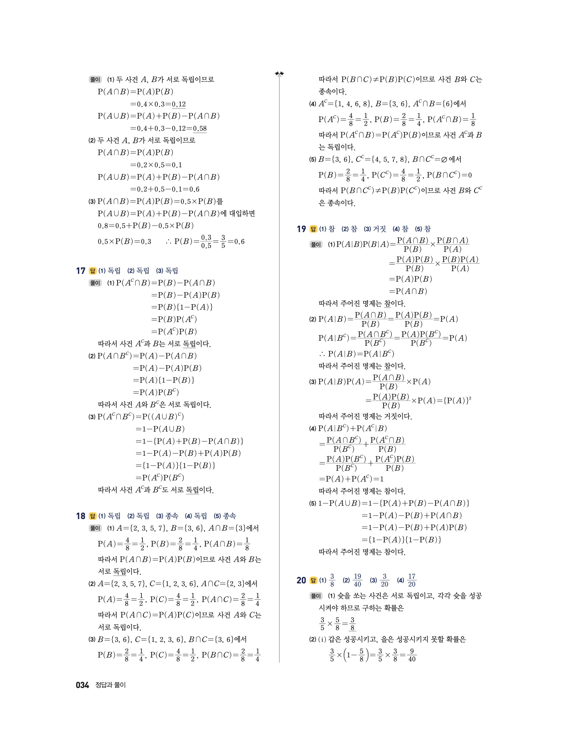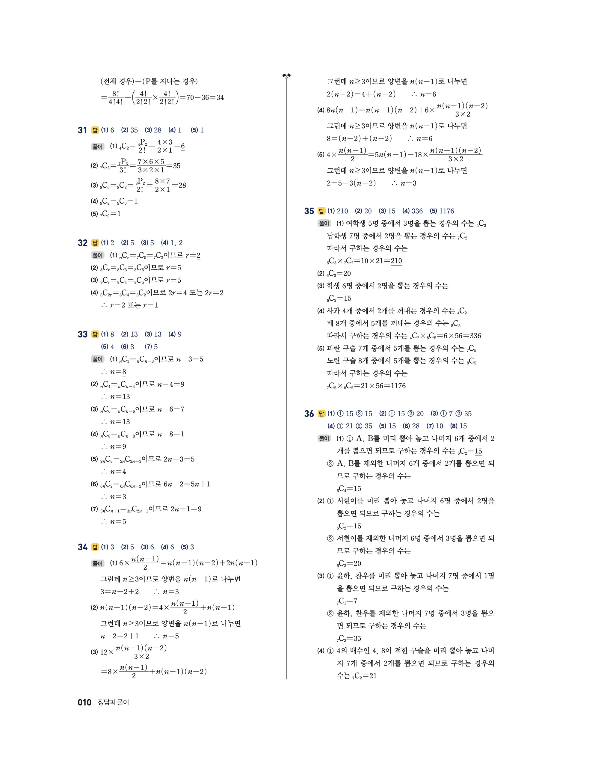 📖 풍산자 반복수학 확률과통계 확통 답지 해설 및 빠른답지 다운로드