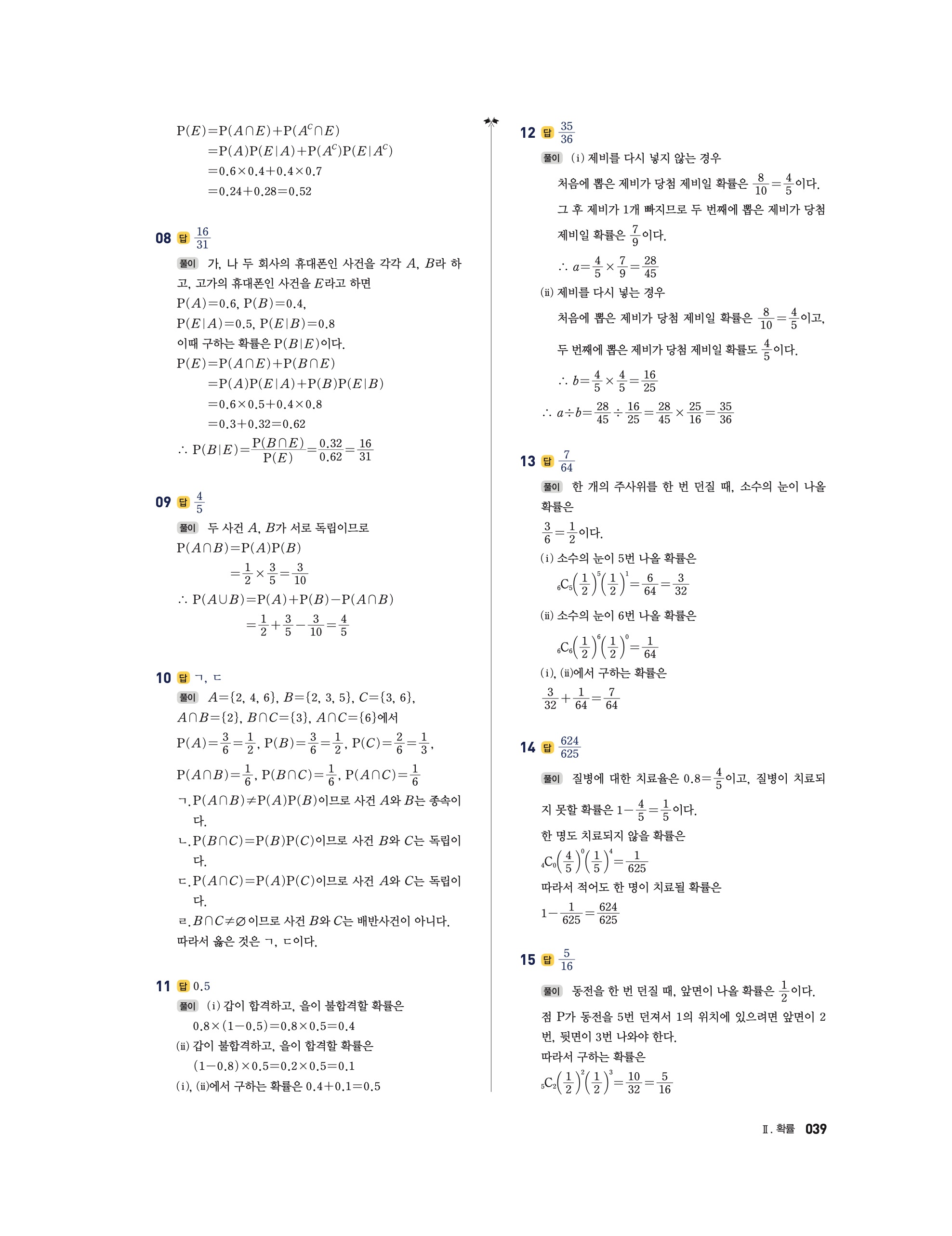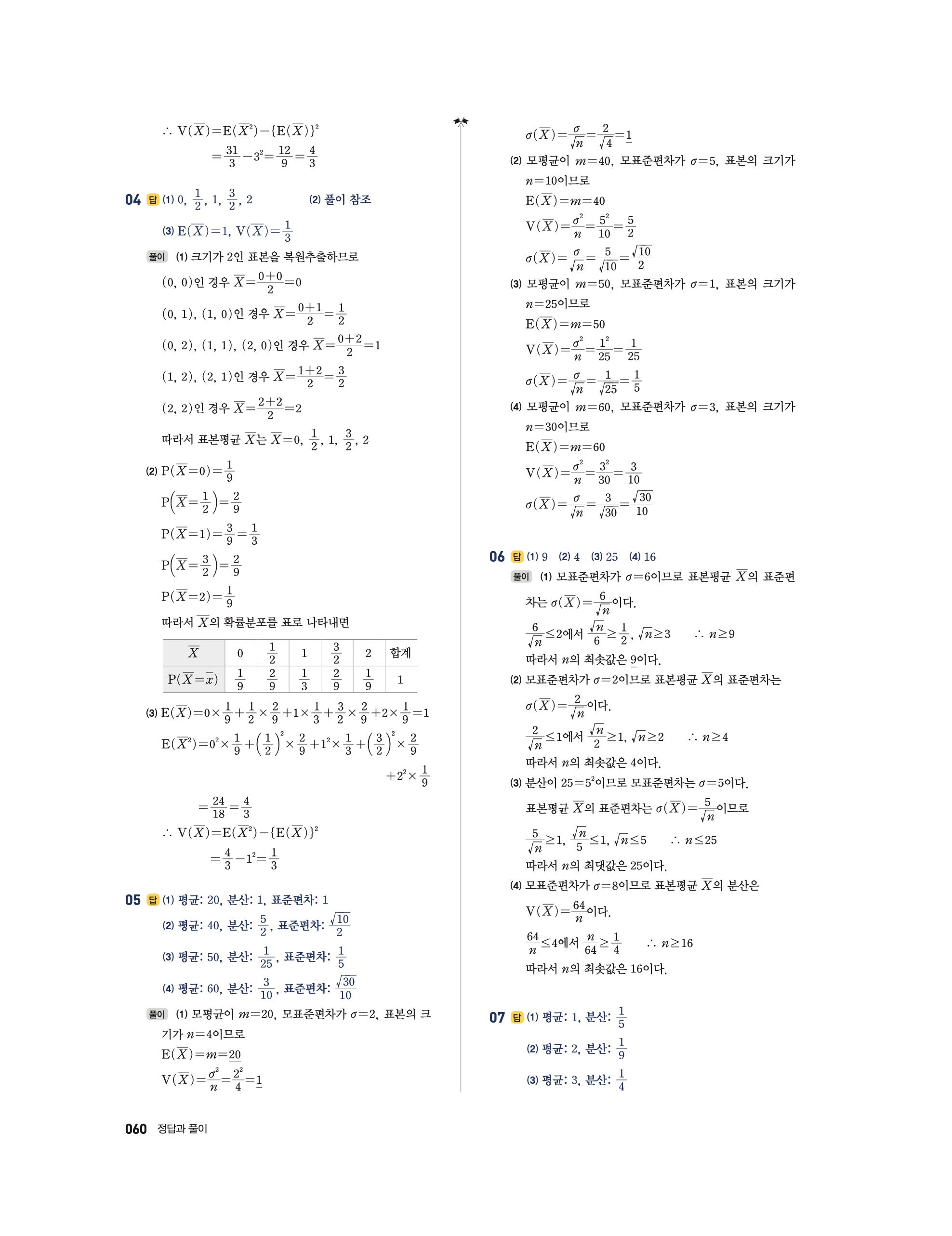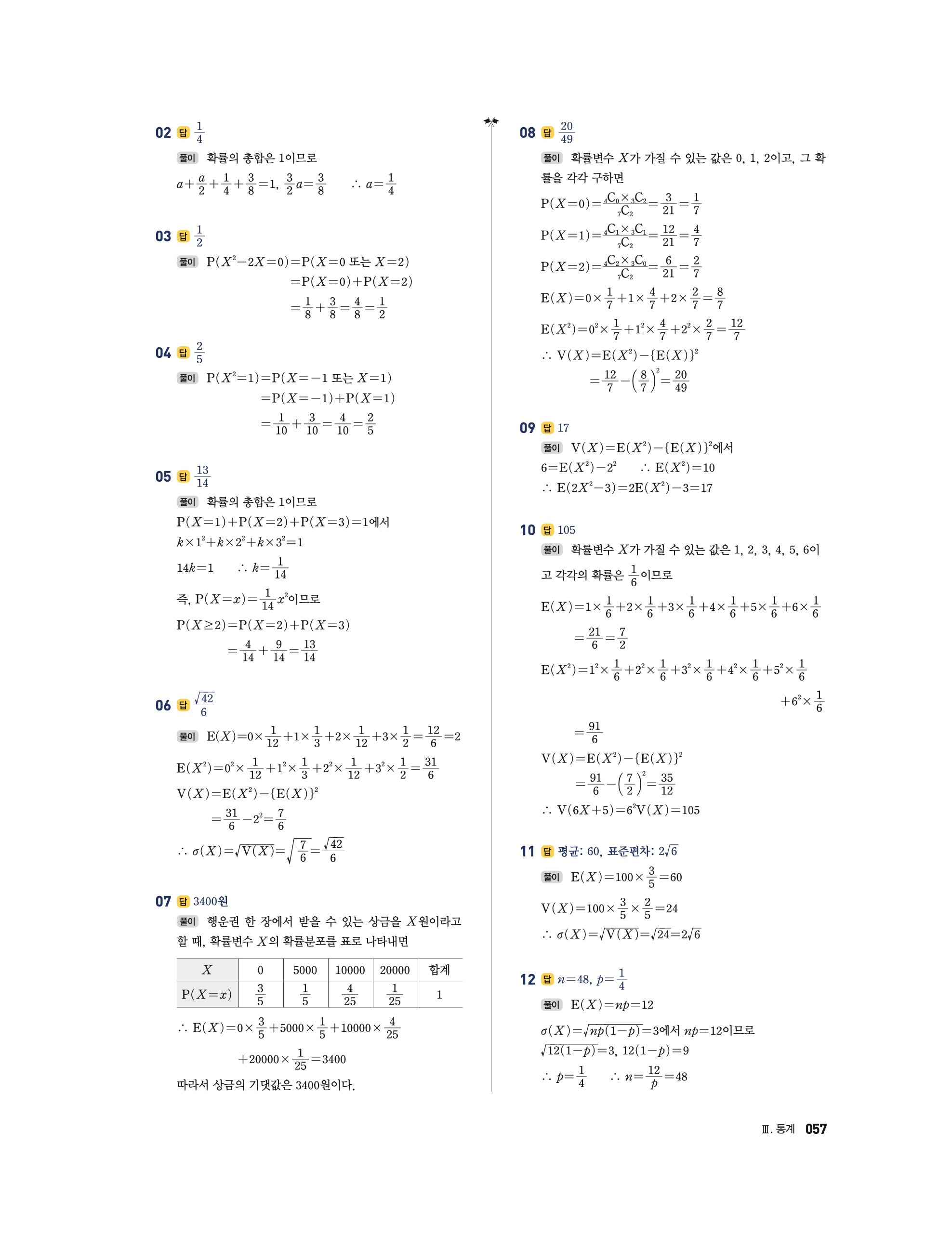 📘 2025 쎈 확률과통계 답지 및 해설