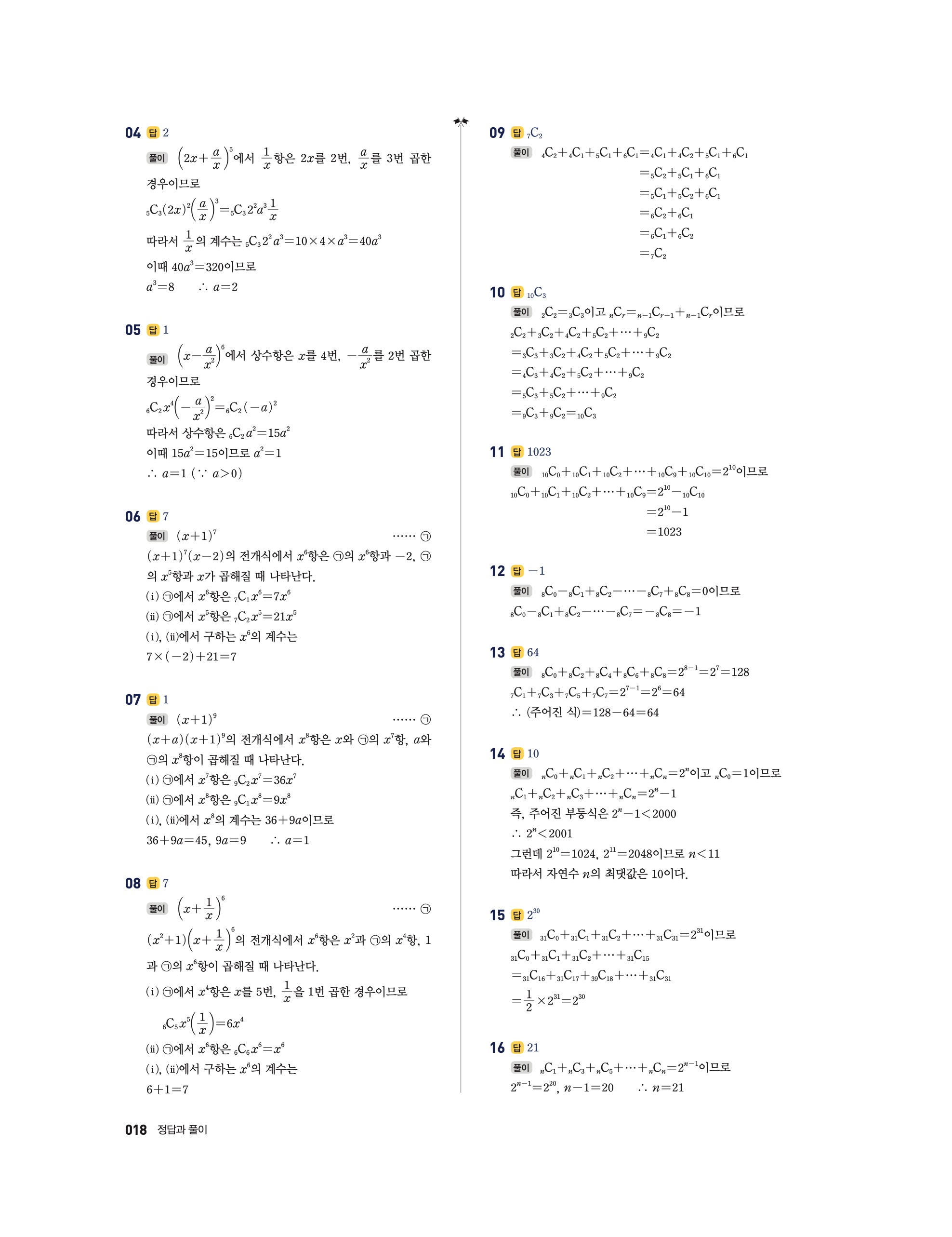 📘 풍산자 반복수학 미적분 답지 및 해설