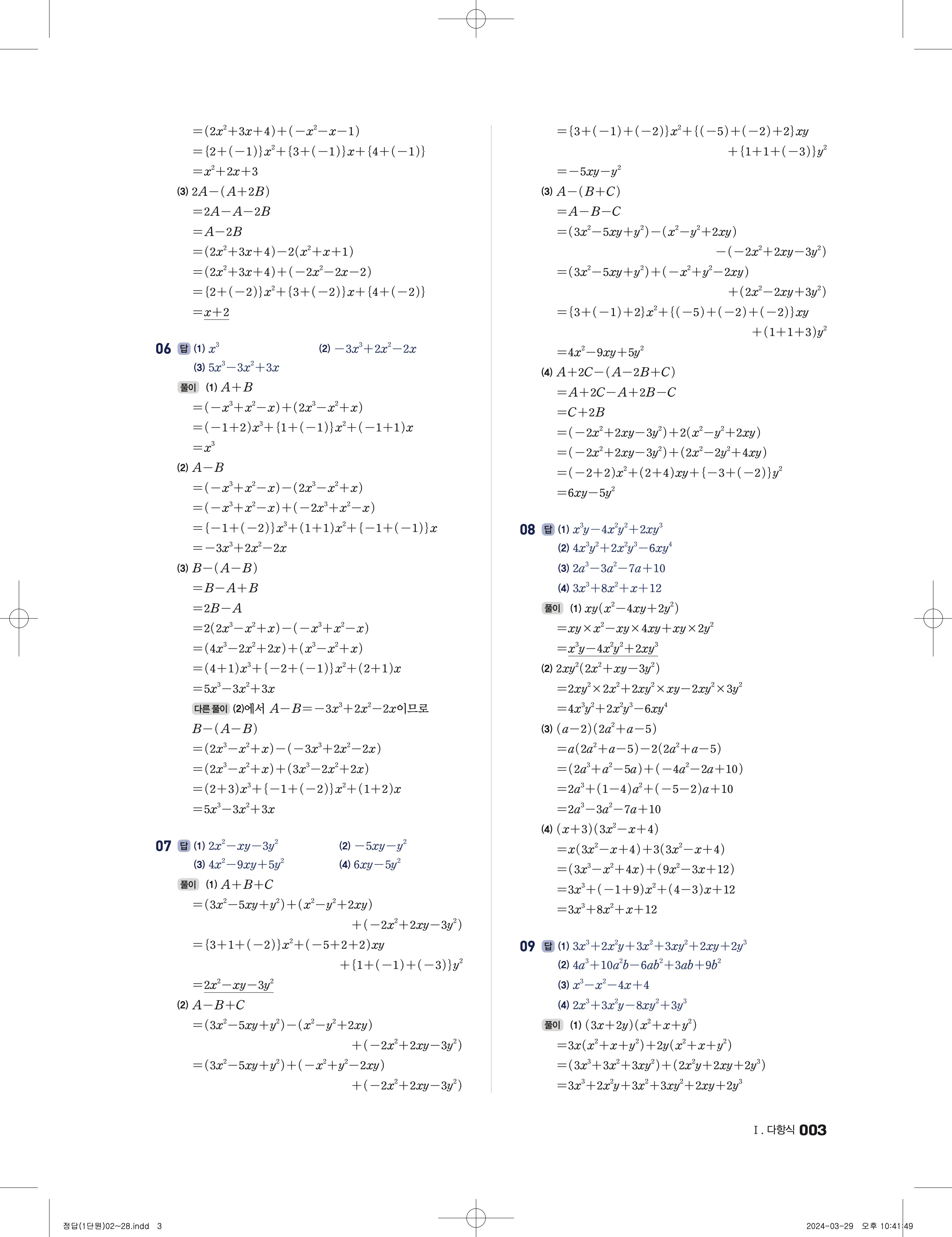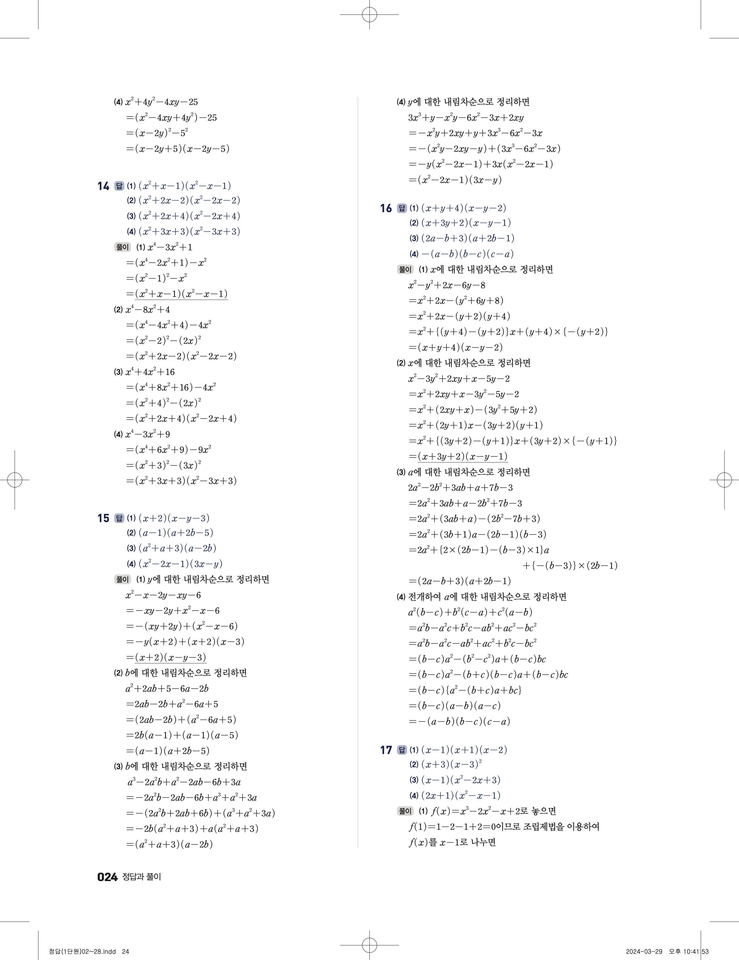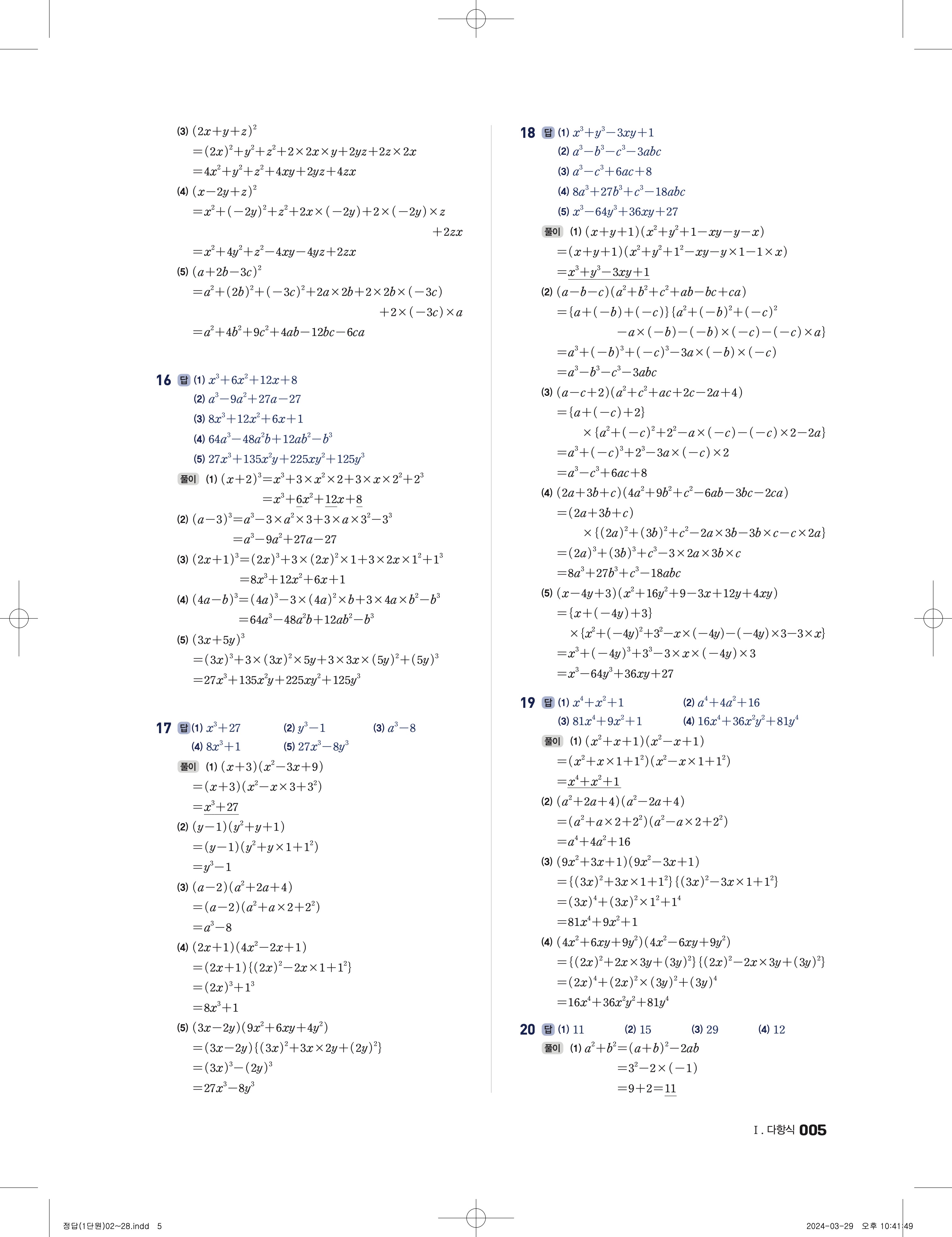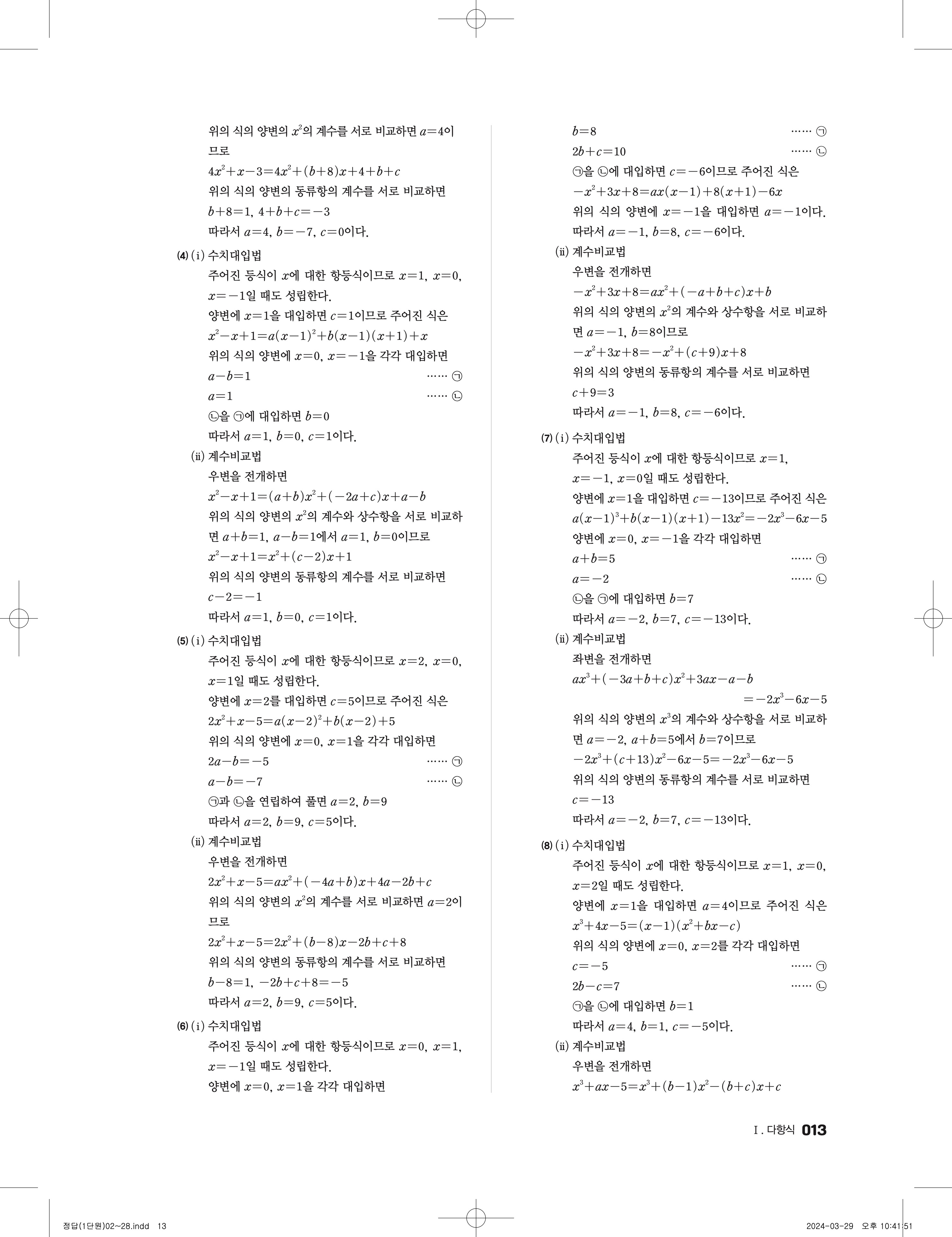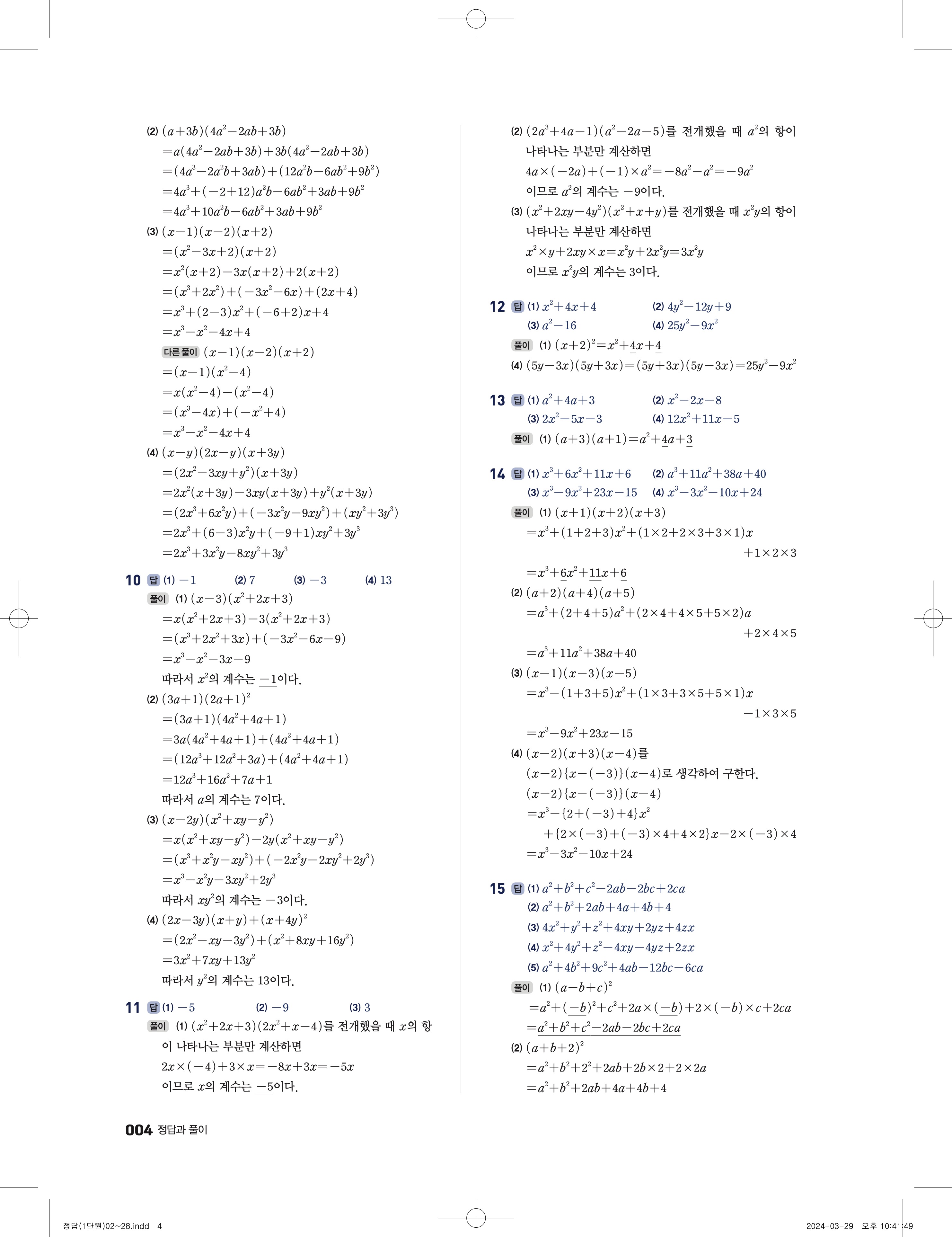 급하게 채점이 필요하신 분들을 위해, 가장 많이 찾는 앞부분(다항식 연산, 나머지 정리) 정답을 텍스트로 먼저 공개합니다. 스크롤을 내려 확인하세요.