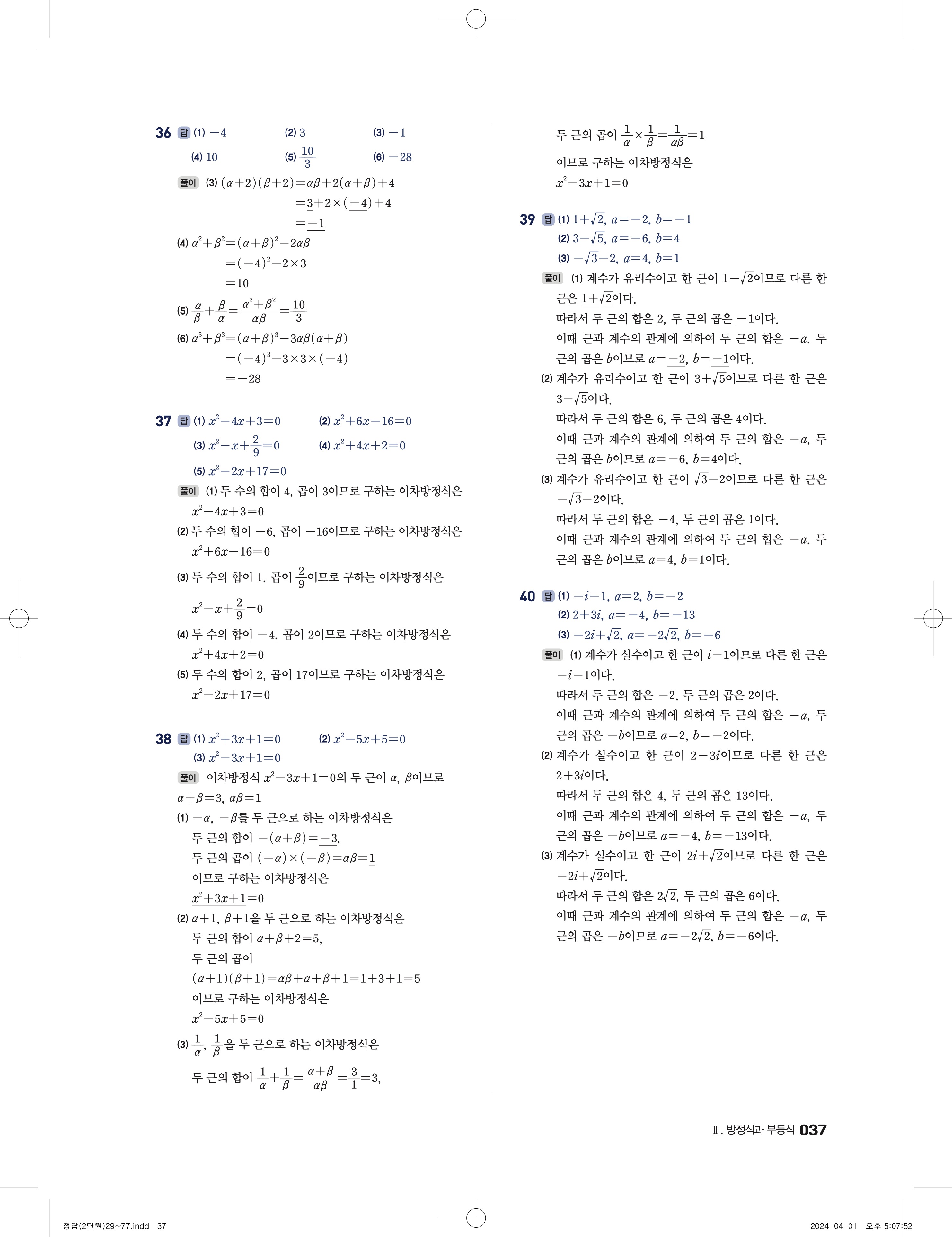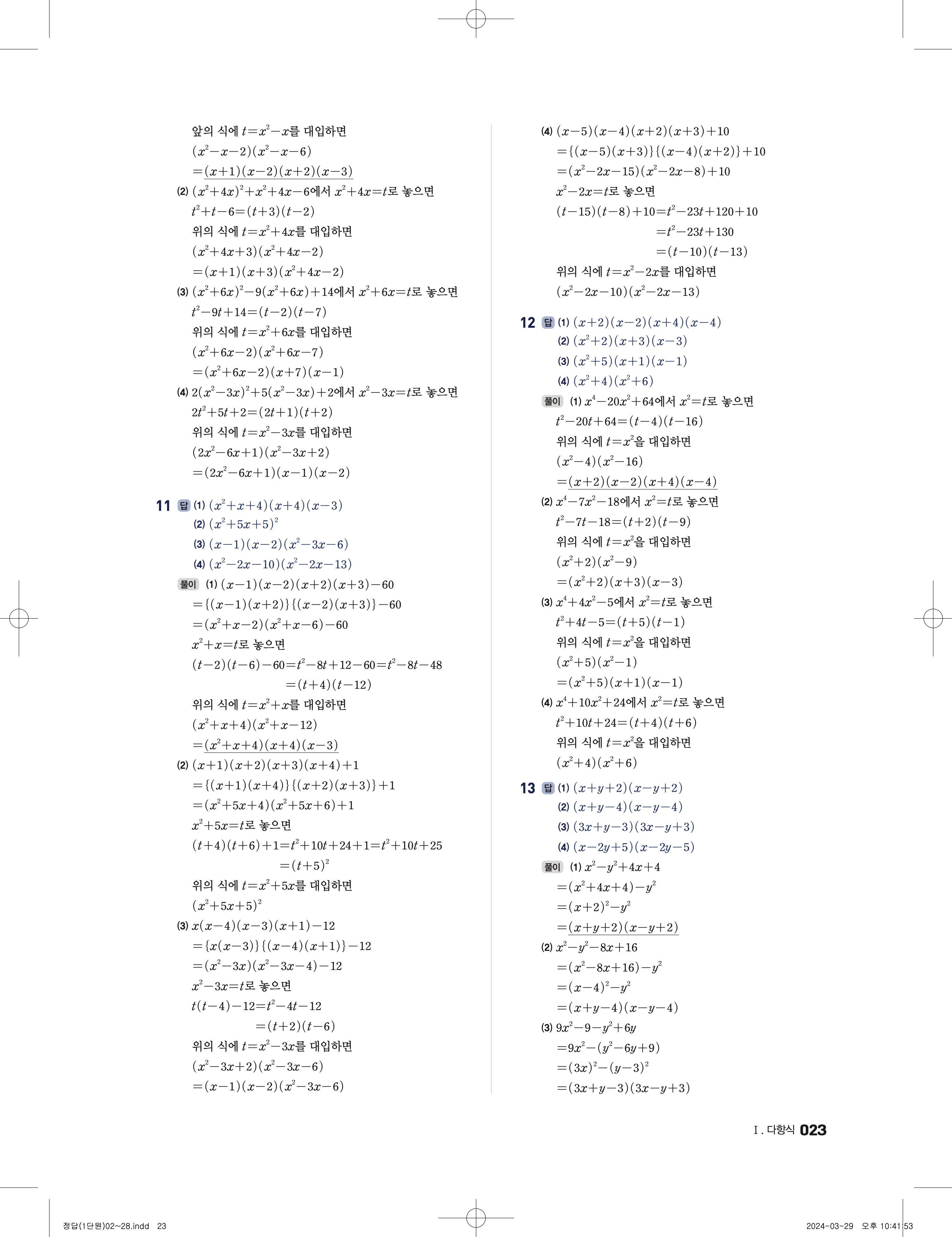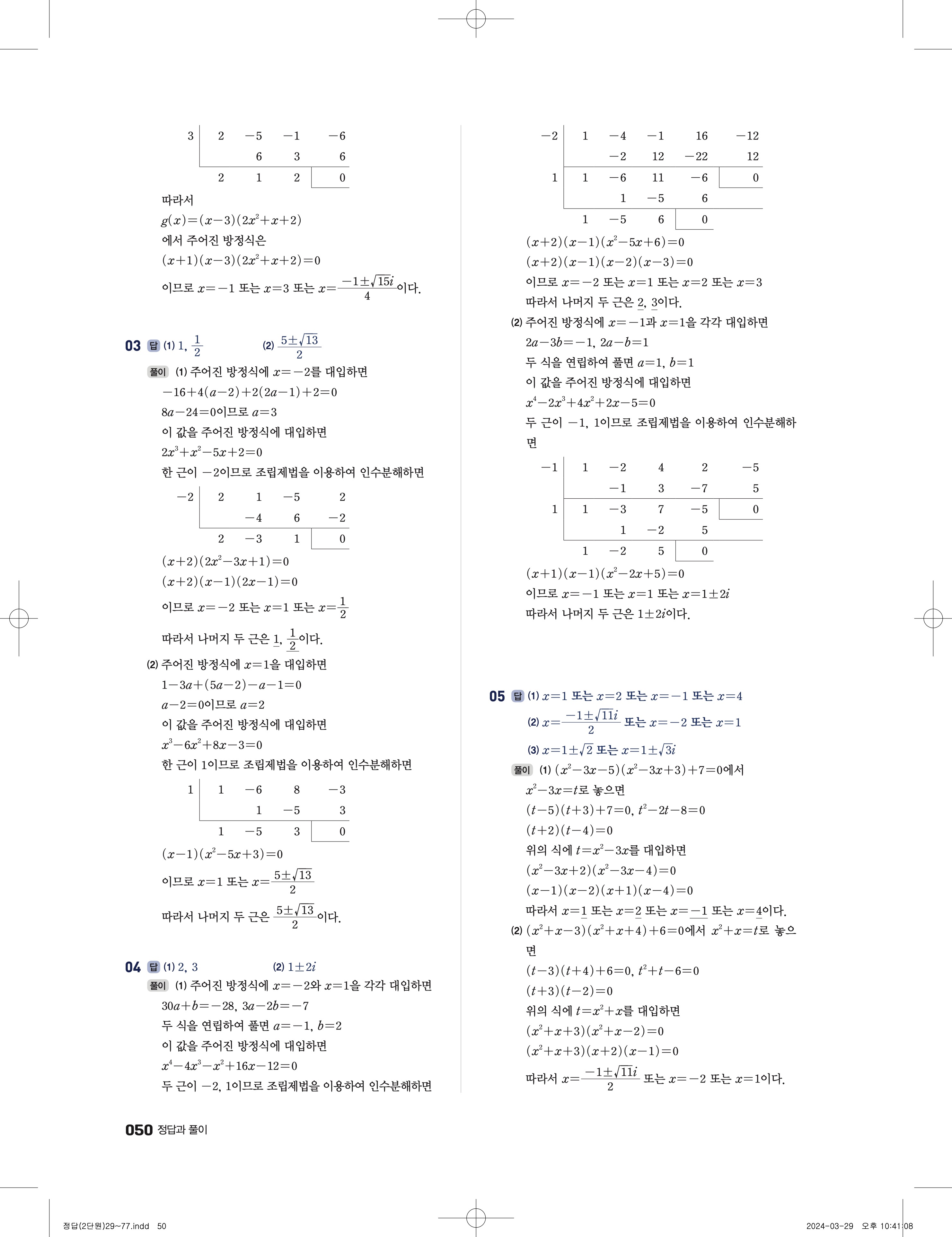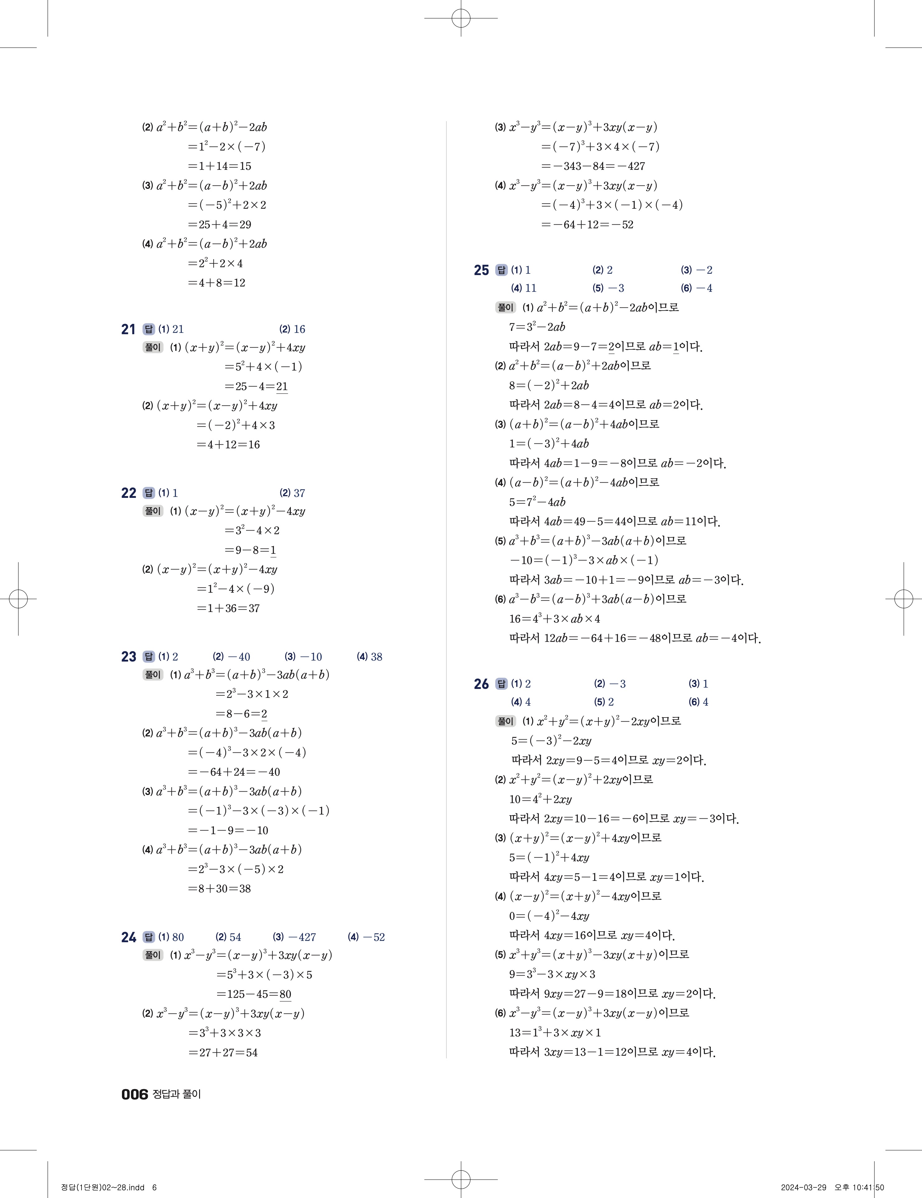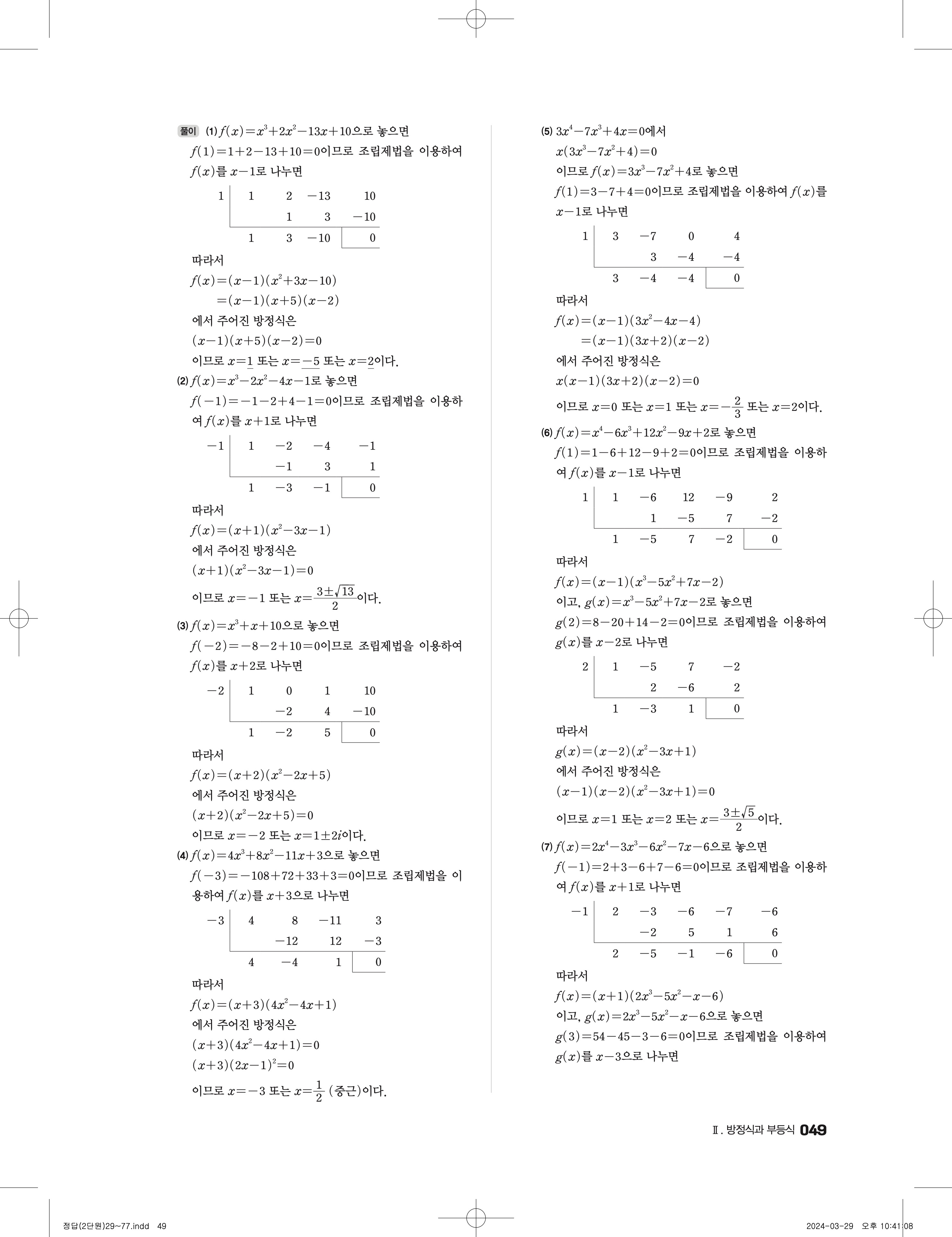 급하게 채점이 필요하신 분들을 위해, 가장 많이 찾는 앞부분(다항식 연산, 나머지 정리) 정답을 텍스트로 먼저 공개합니다. 스크롤을 내려 확인하세요.