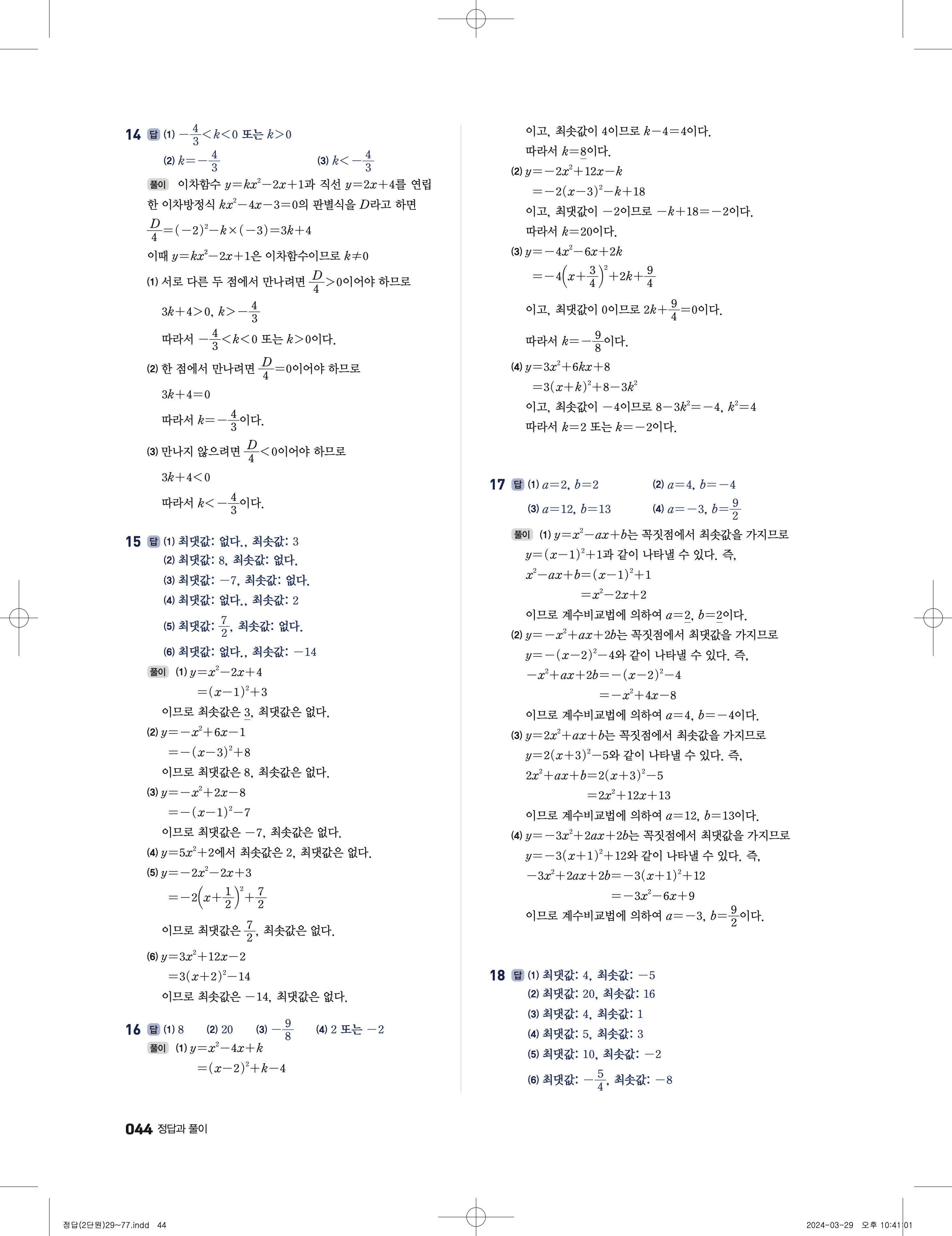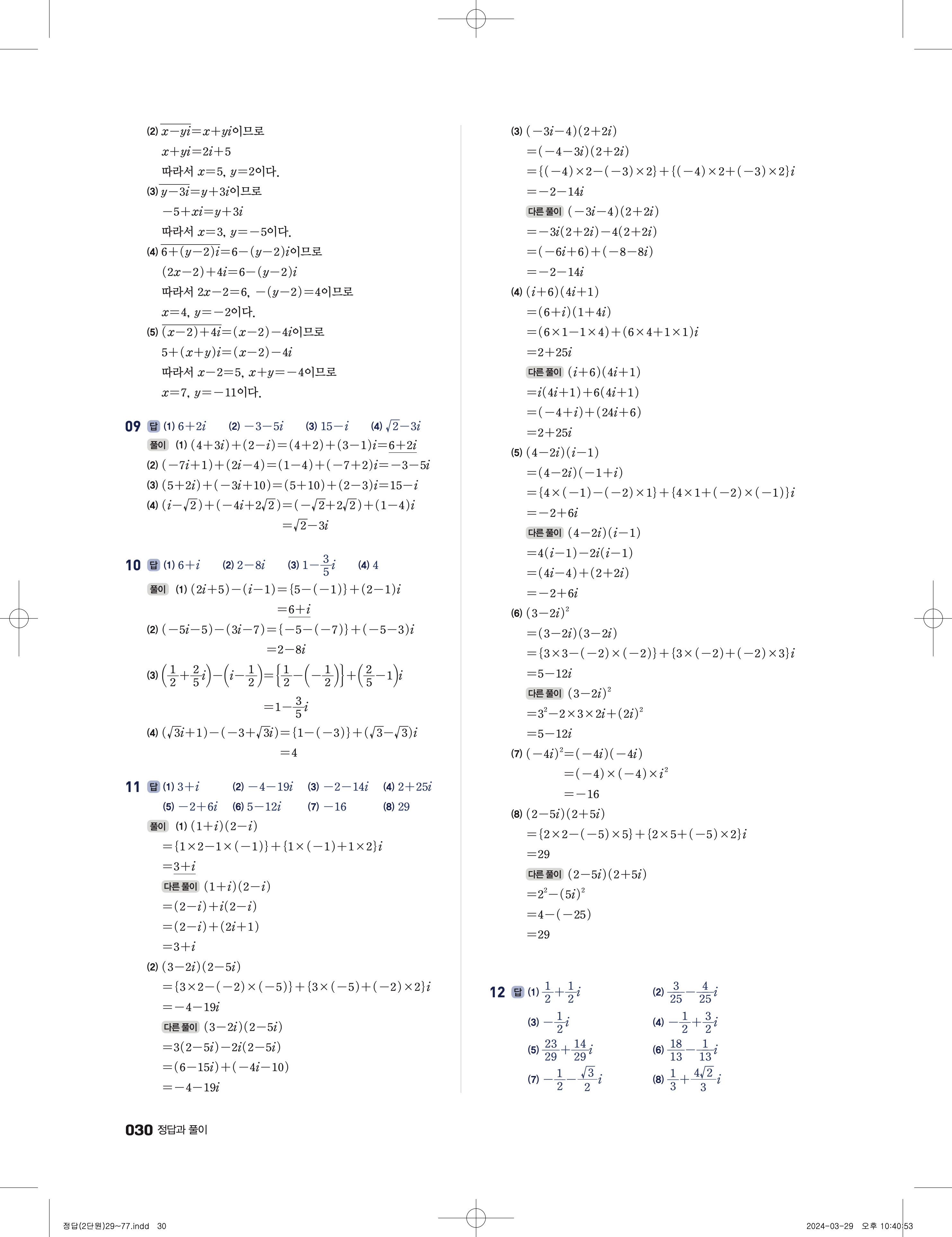 - (1) 12 (2) -8 07. ④ 08. ② 09. 15 10. ③ ...
