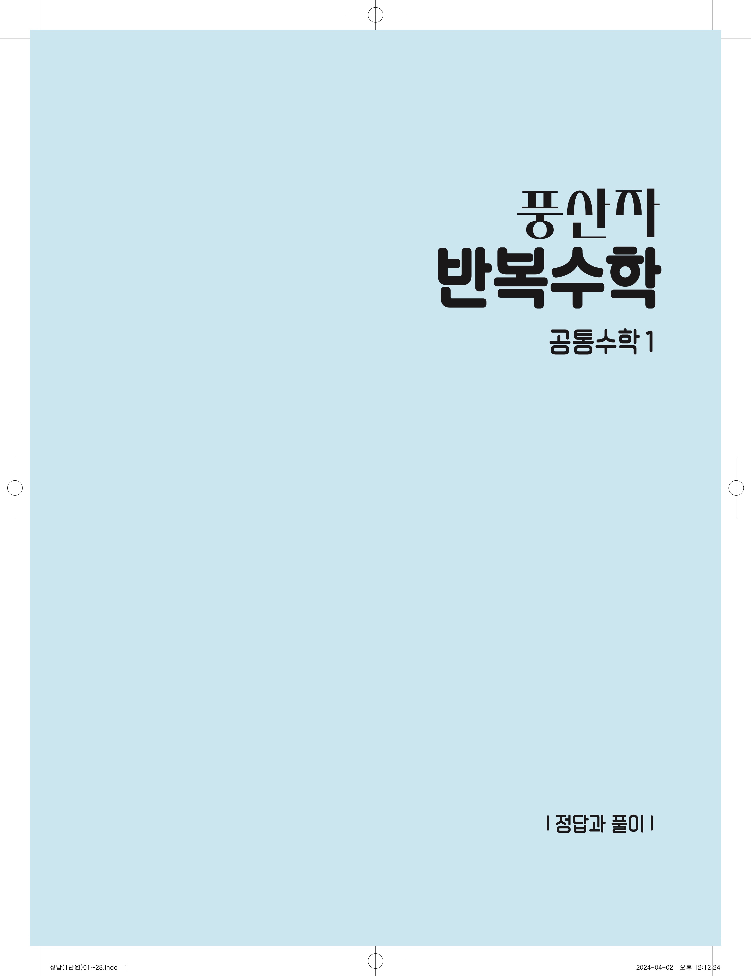 (작성자님: 이 곳에 답지 표지나 내지 이미지를 1~2장 직접 첨부해 주세요. 이미지 파일명은 풍산자_반복수학_공통수학1_답지.jpg로 저장해서 올리셔야 이미지 검색에 걸립니다.)
