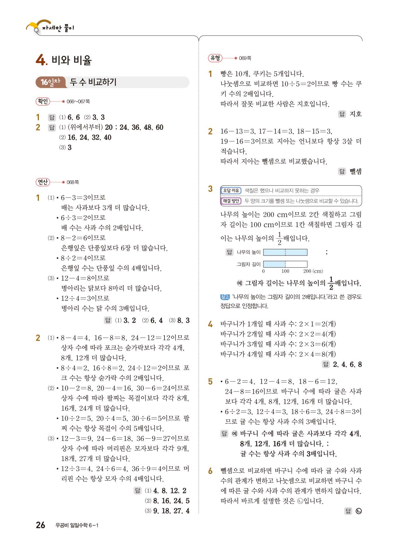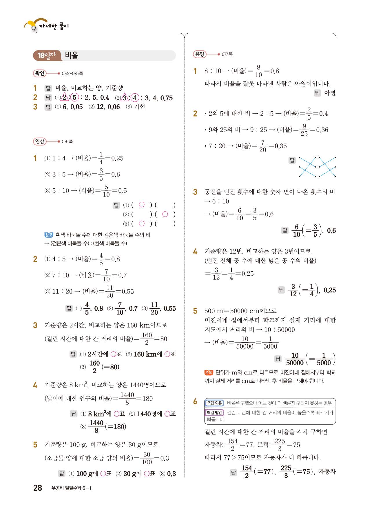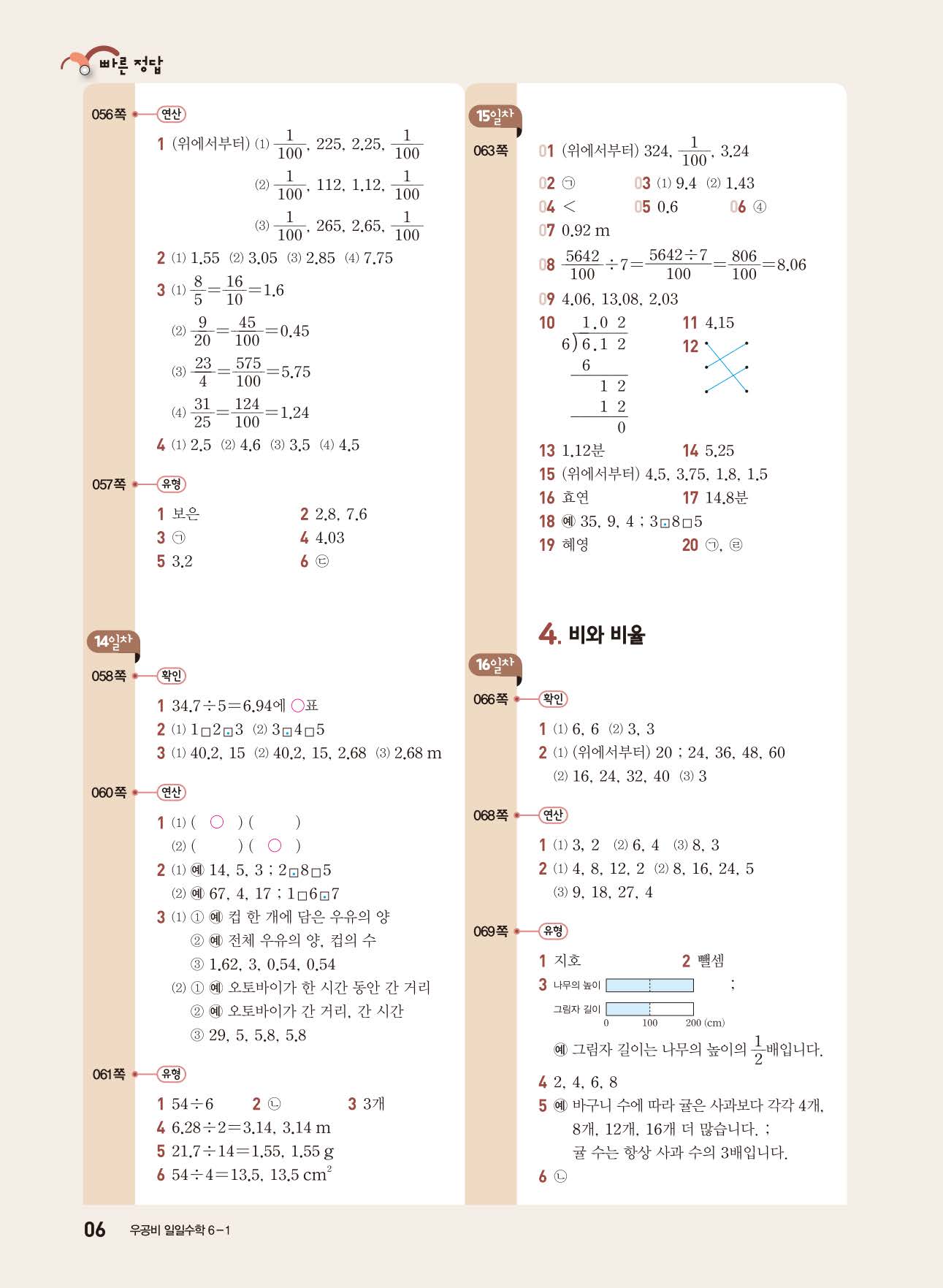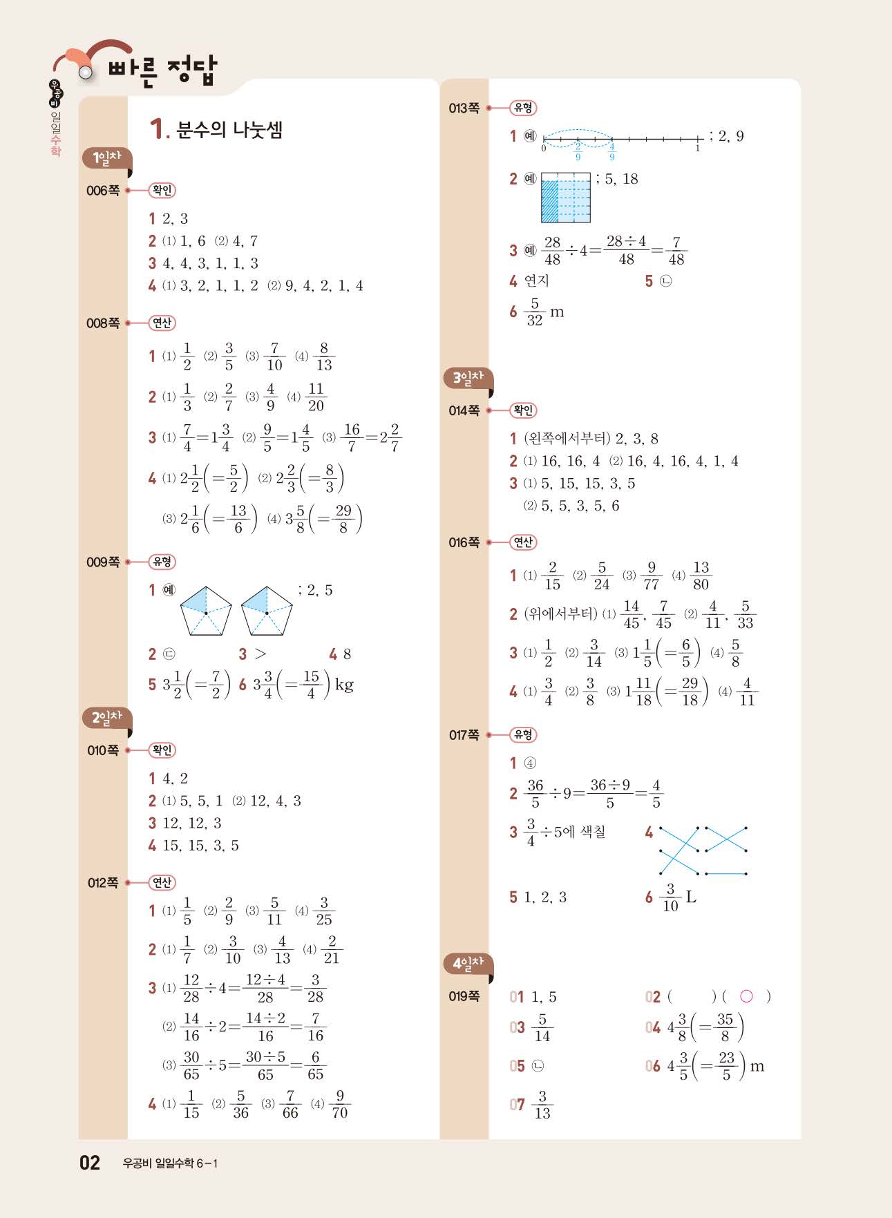 우공비 일일수학 6-1 답지 해설지 사진답지 빠른답지 모바일최적화