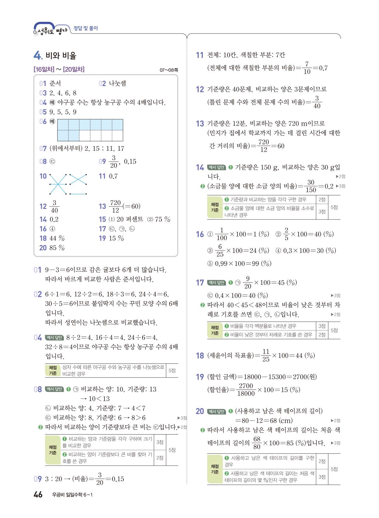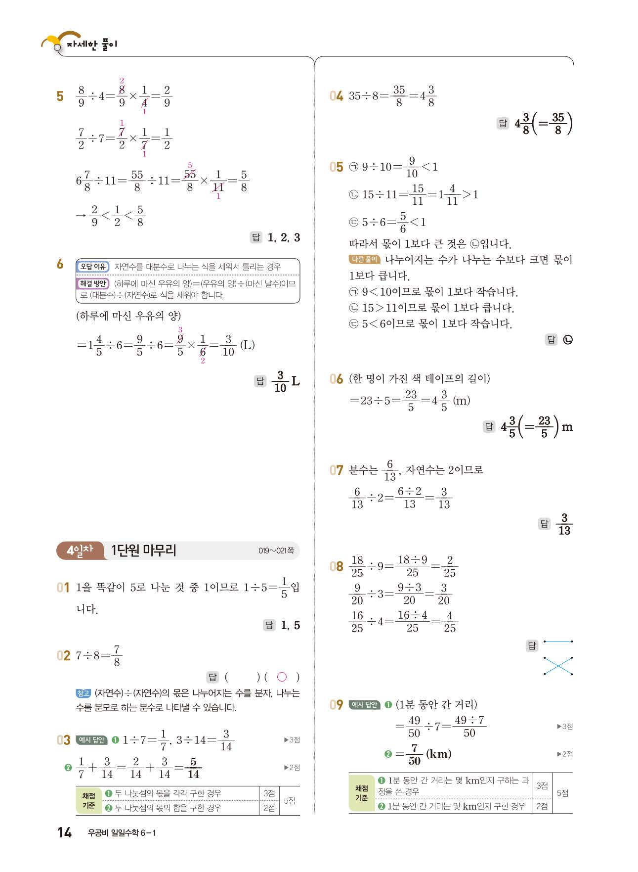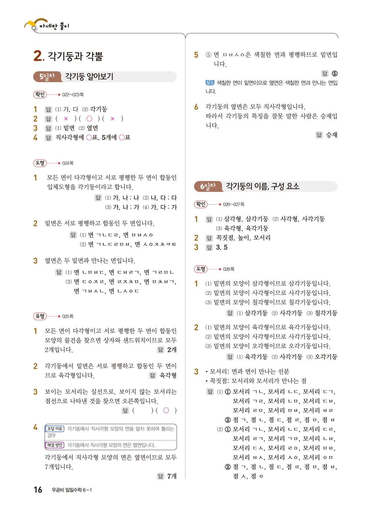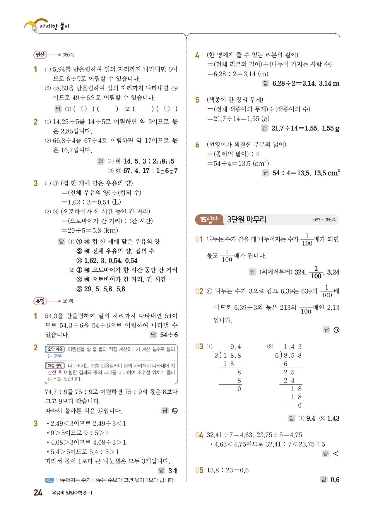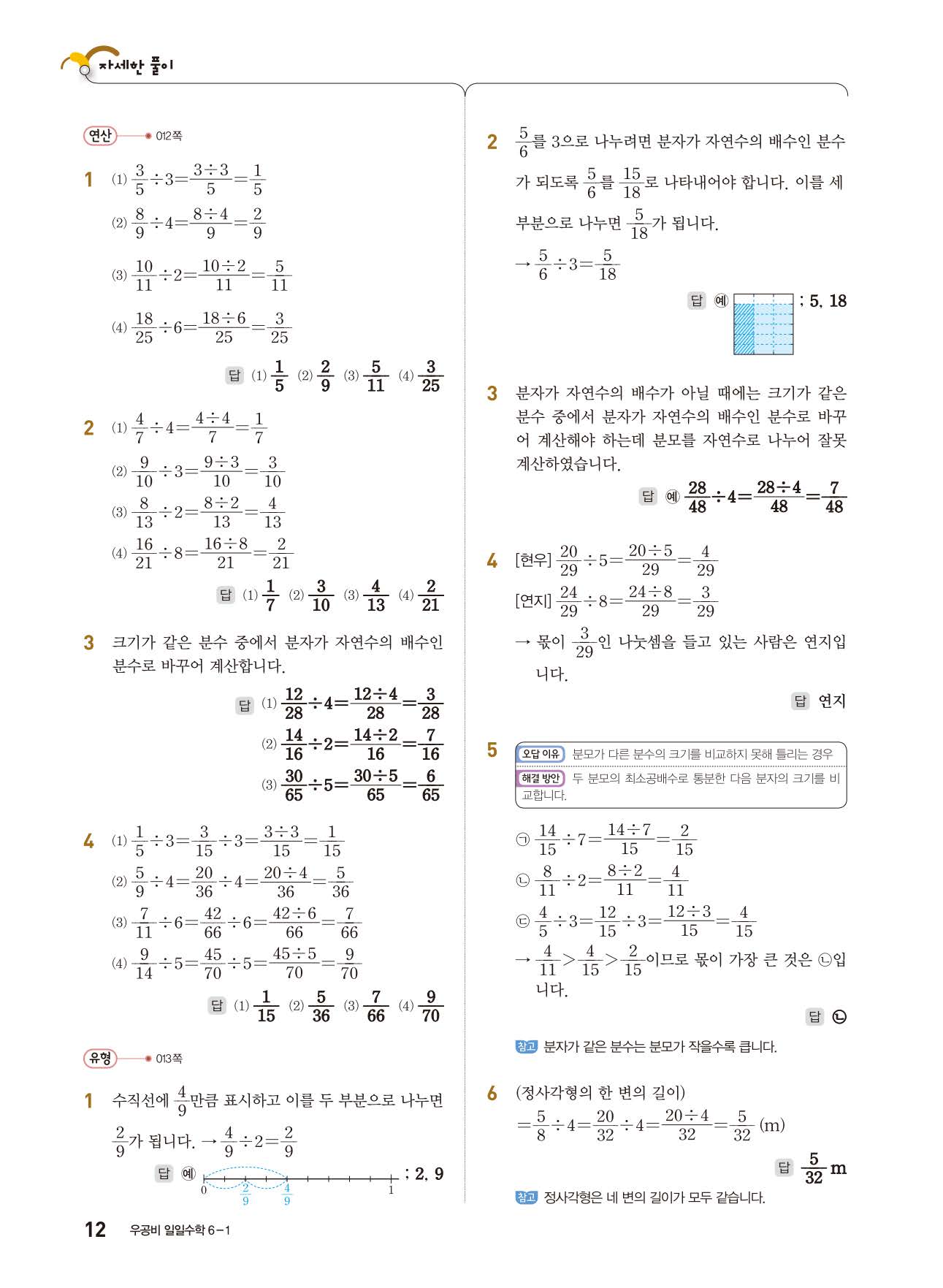 우공비 일일수학 6-1 답지 해설지 사진답지 빠른답지 모바일최적화