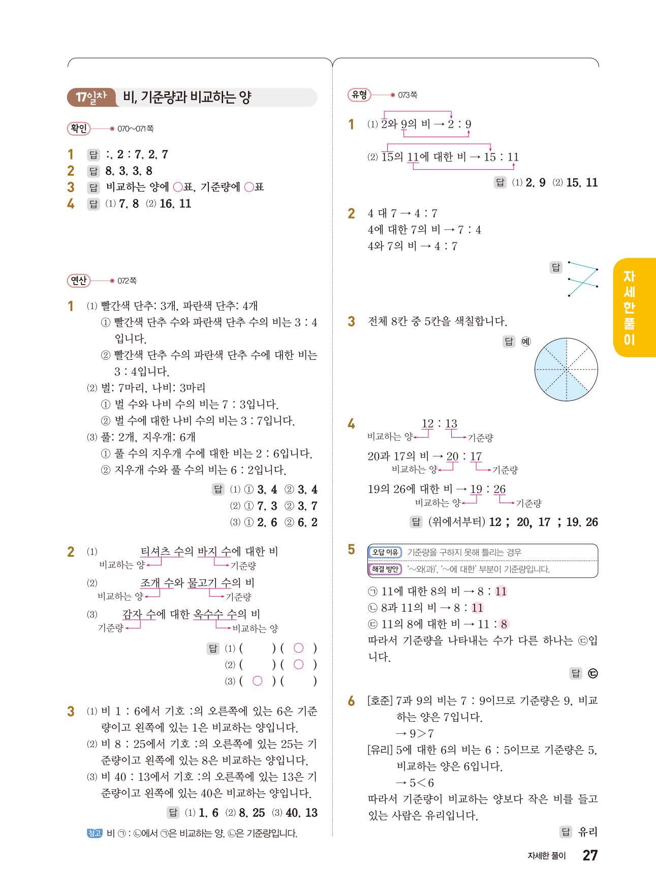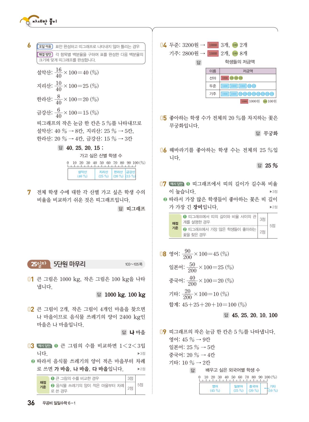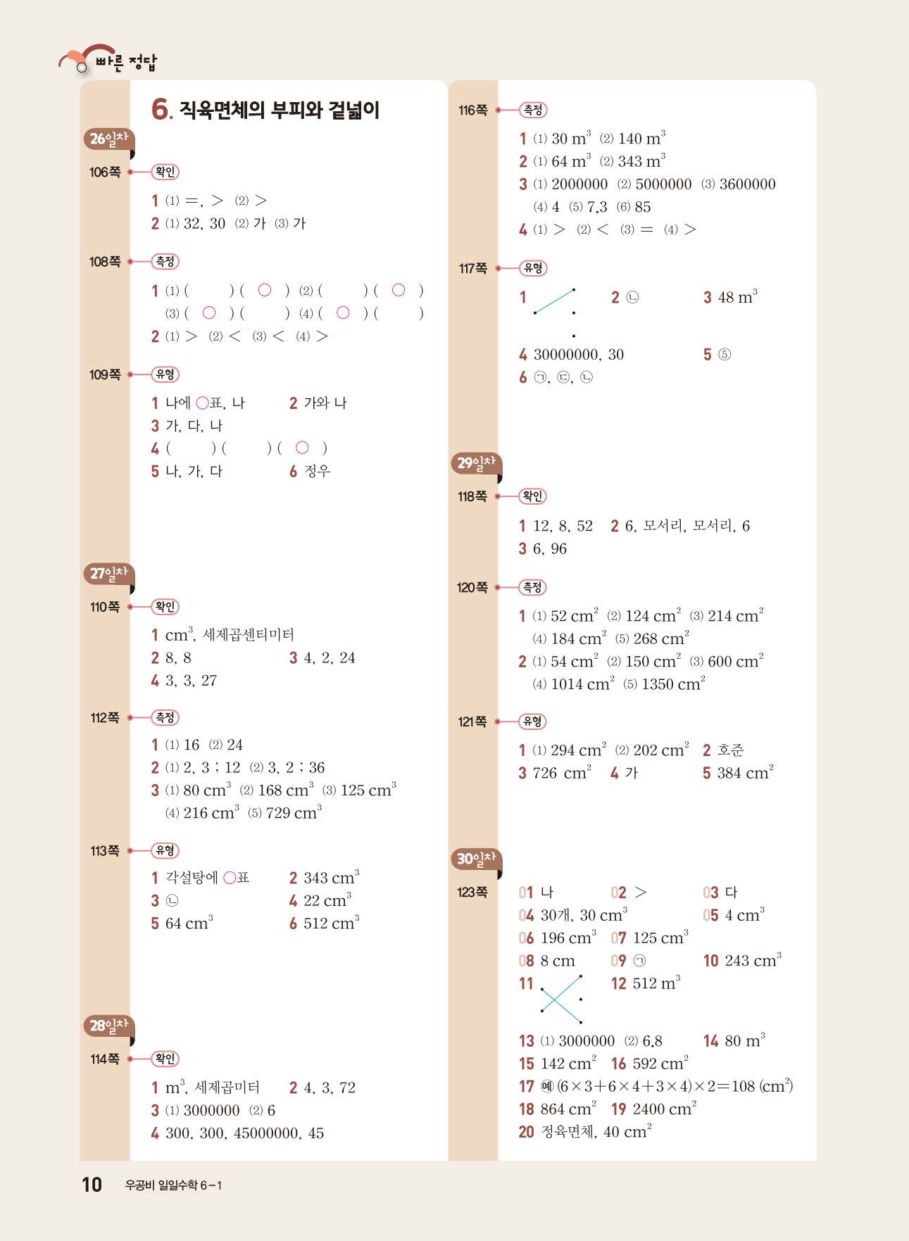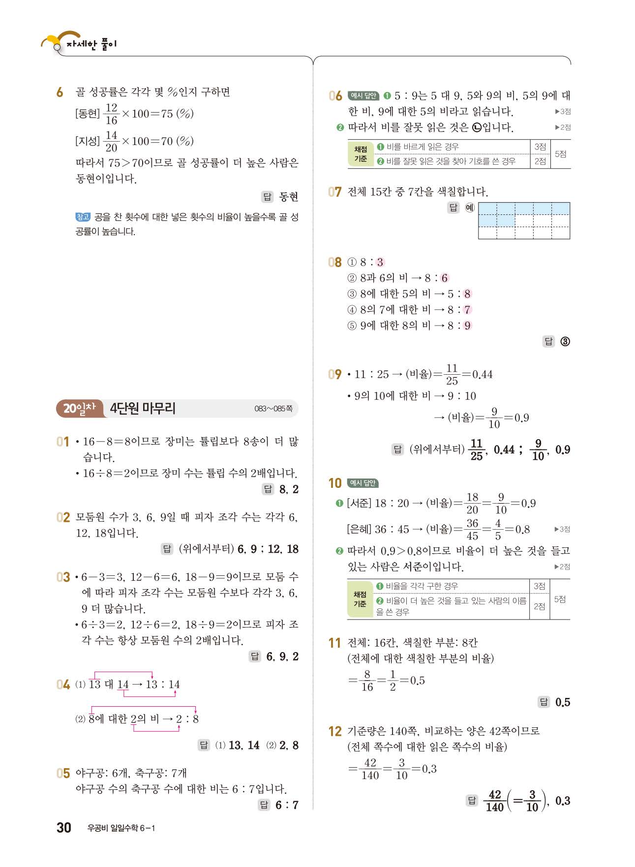 우공비 일일수학 6-1 답지 해설지 사진답지 빠른답지 모바일최적화