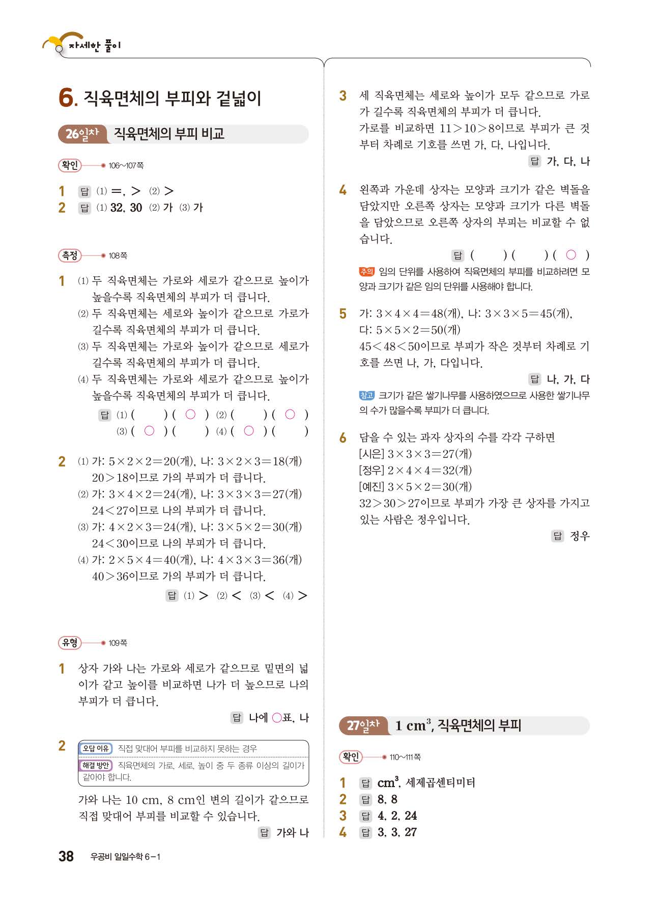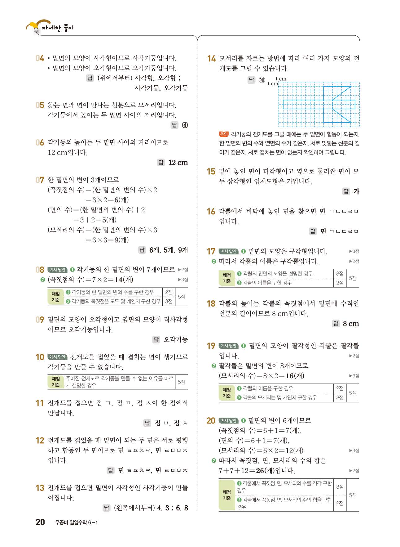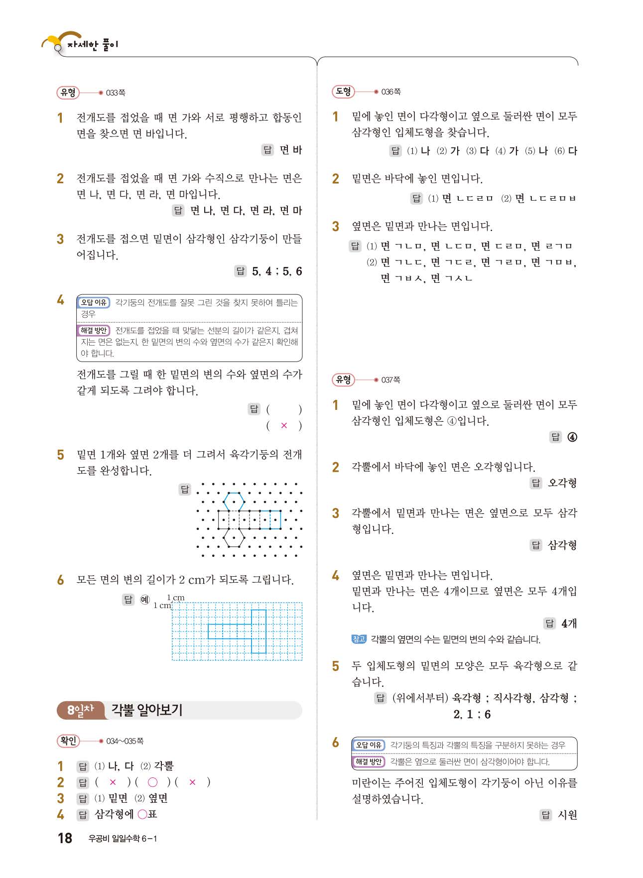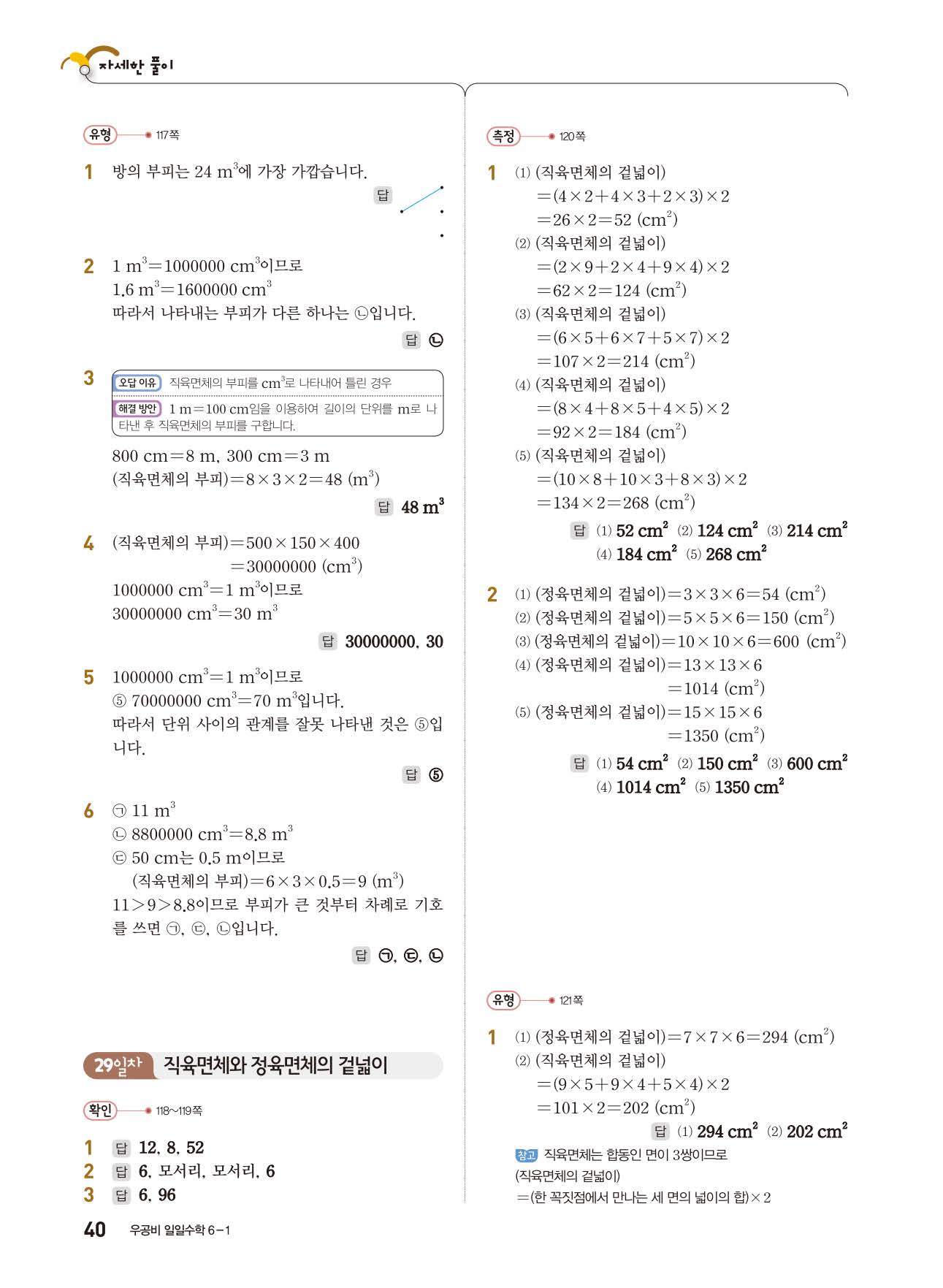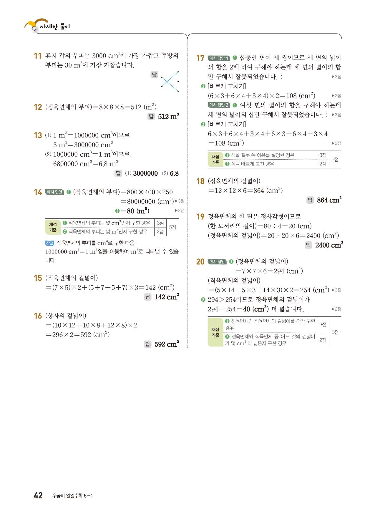 우공비 일일수학 6-1 답지 해설지 사진답지 빠른답지 모바일최적화