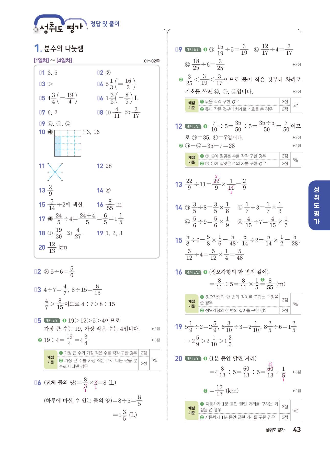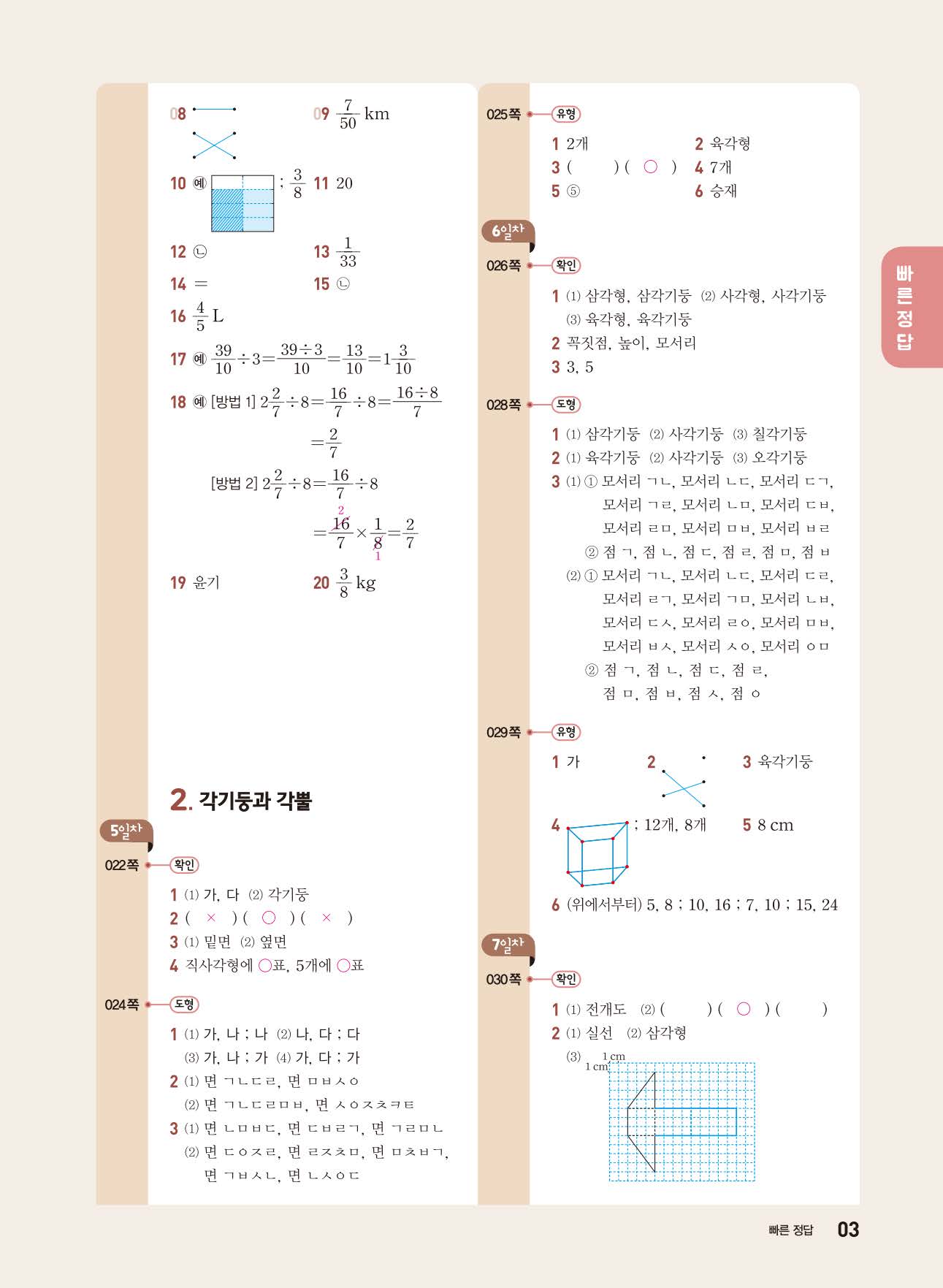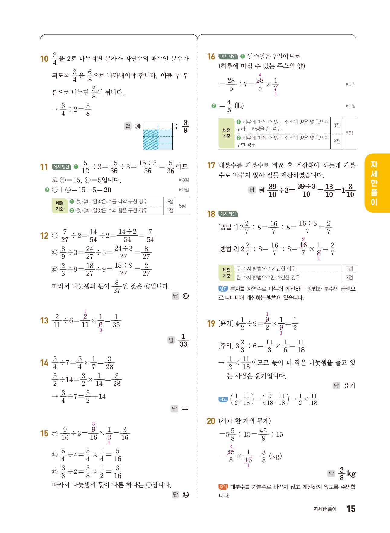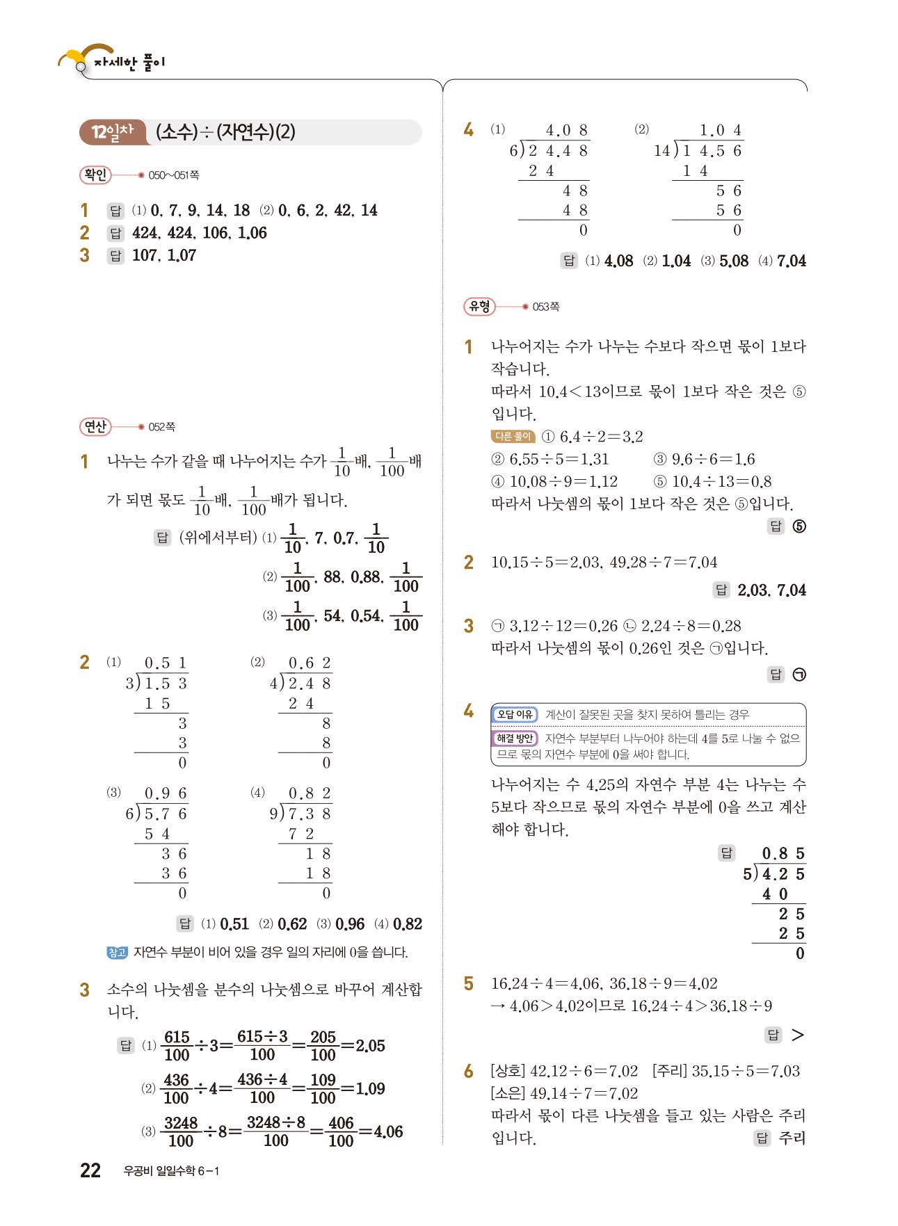 우공비 일일수학 6-1 답지 해설지 사진답지 빠른답지 모바일최적화