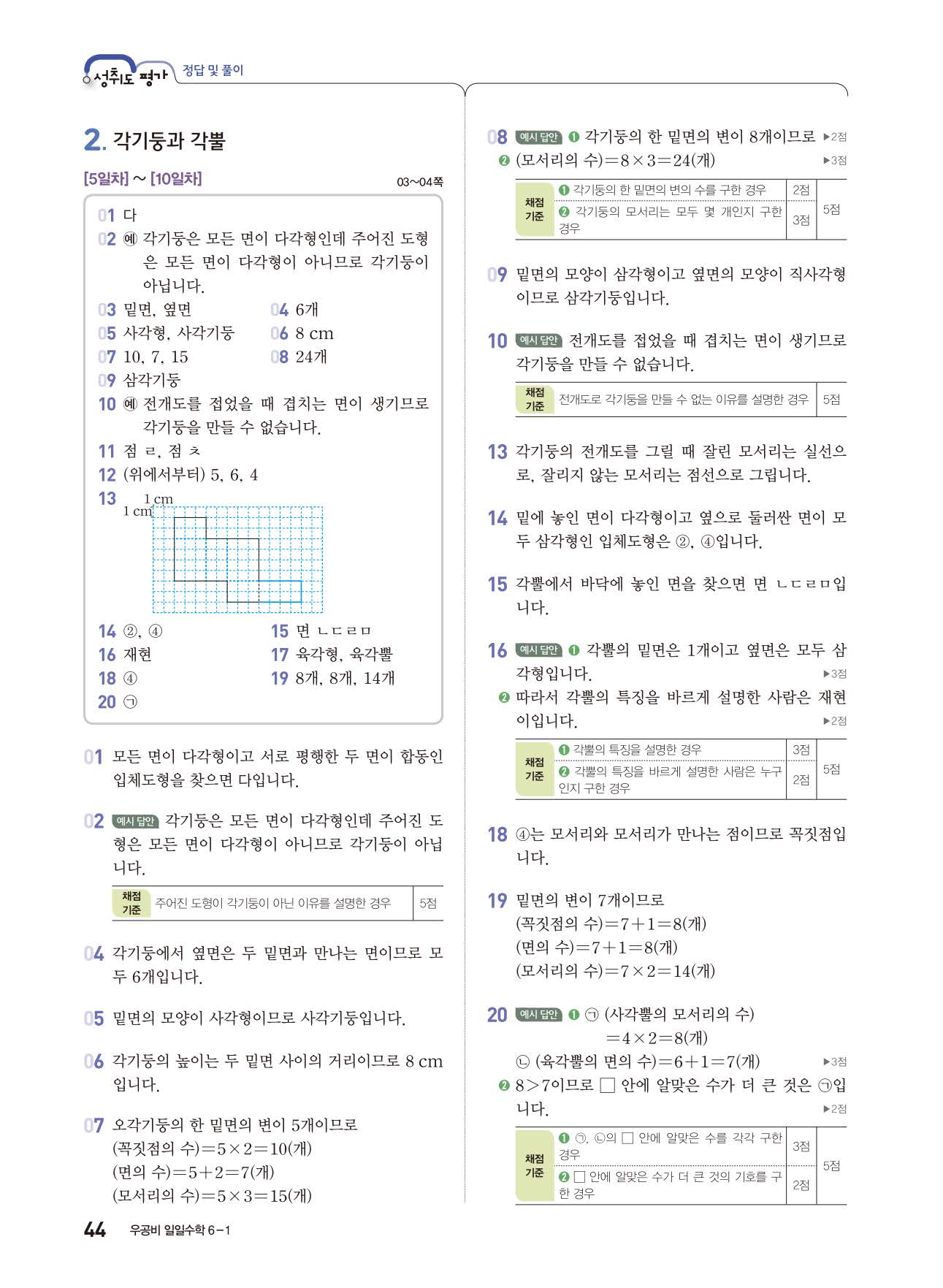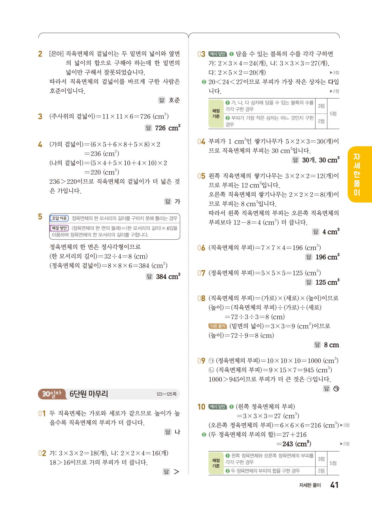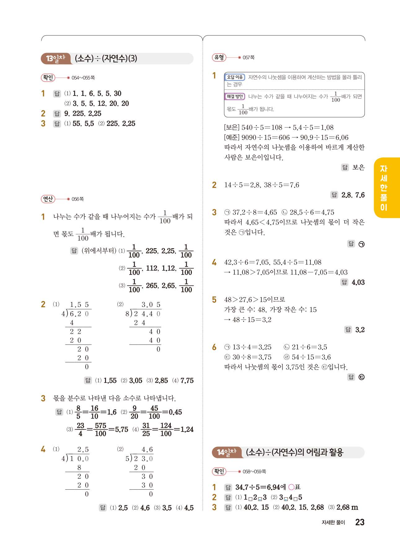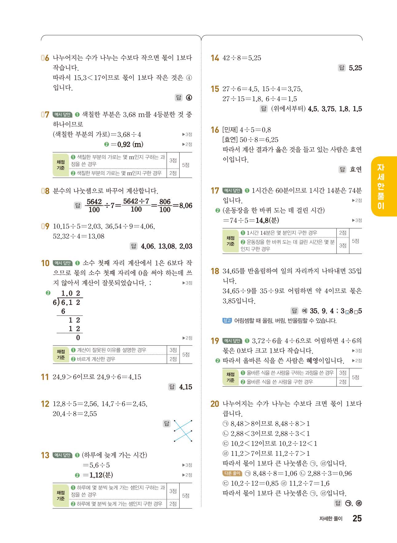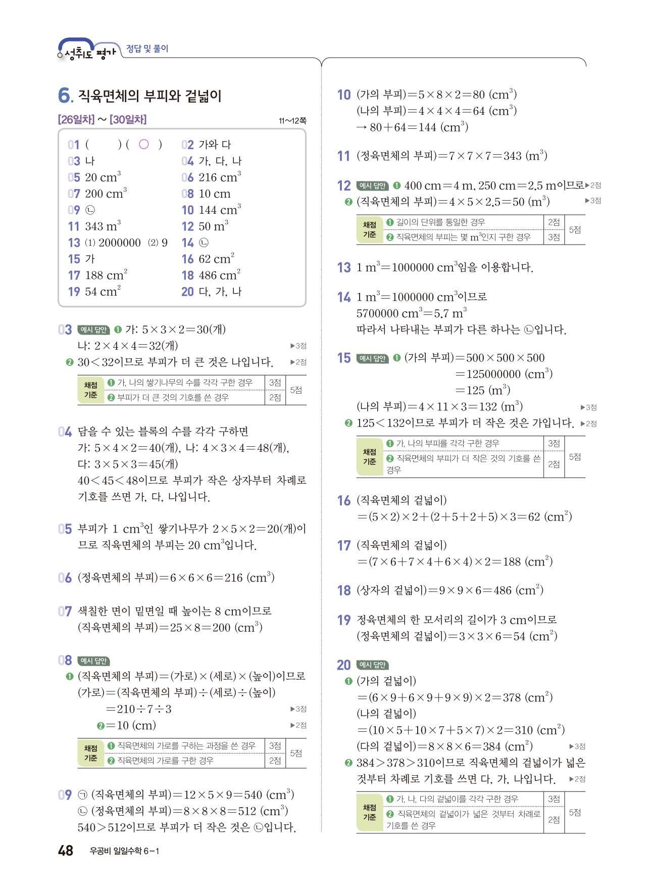우공비 일일수학 6-1 답지 해설지 사진답지 빠른답지 모바일최적화