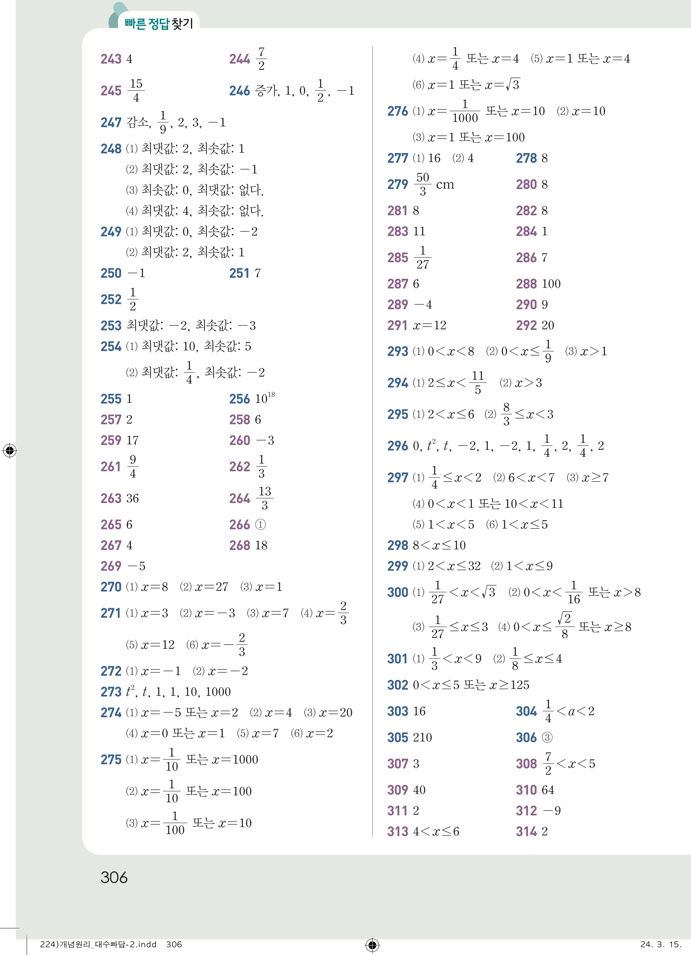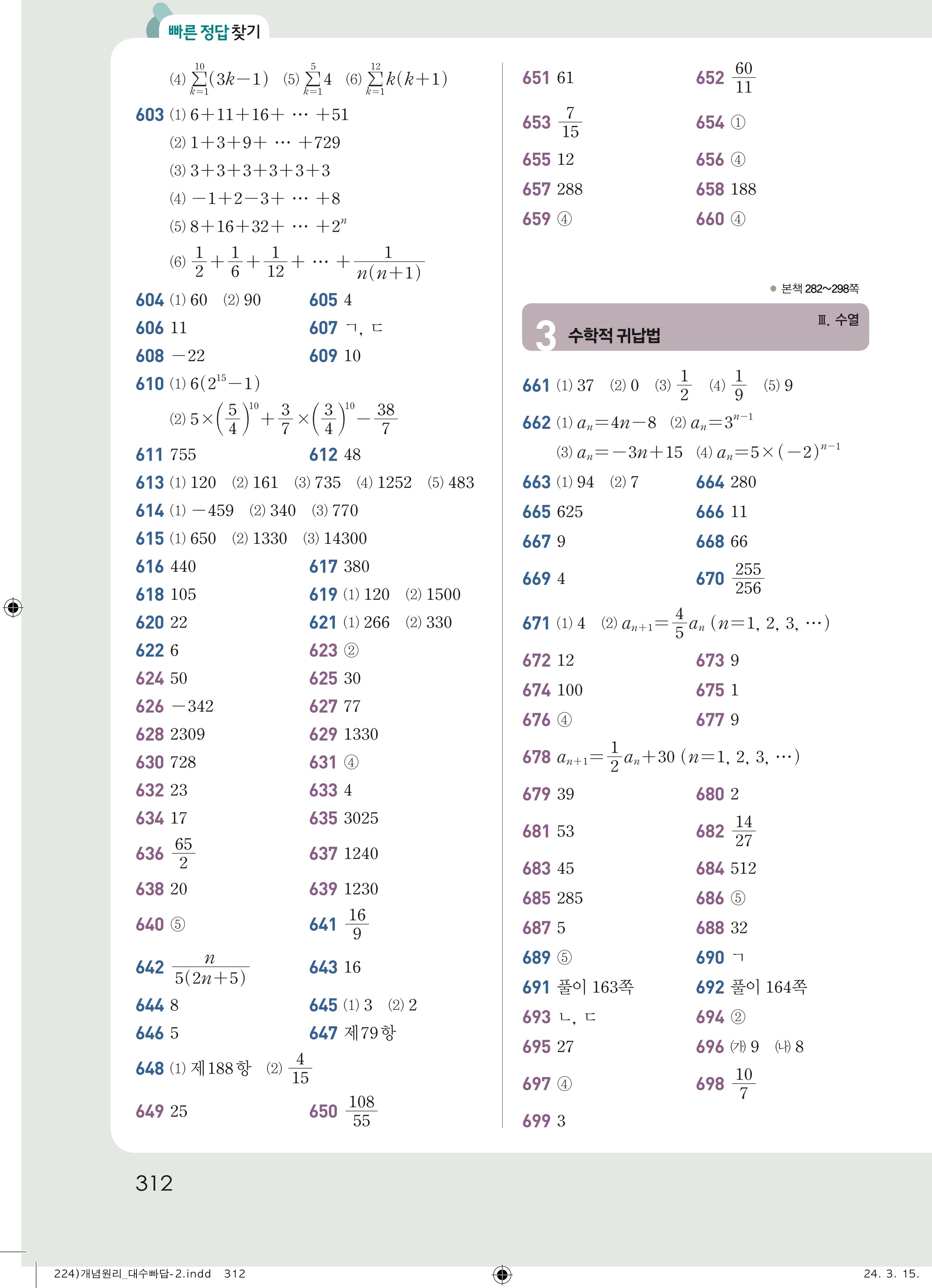 개념원리 대수는 크게 세 가지 핵심 단원으로 구성되어 있으며, 빠른 답지 역시 이 순서에 따라 제공됩니다.