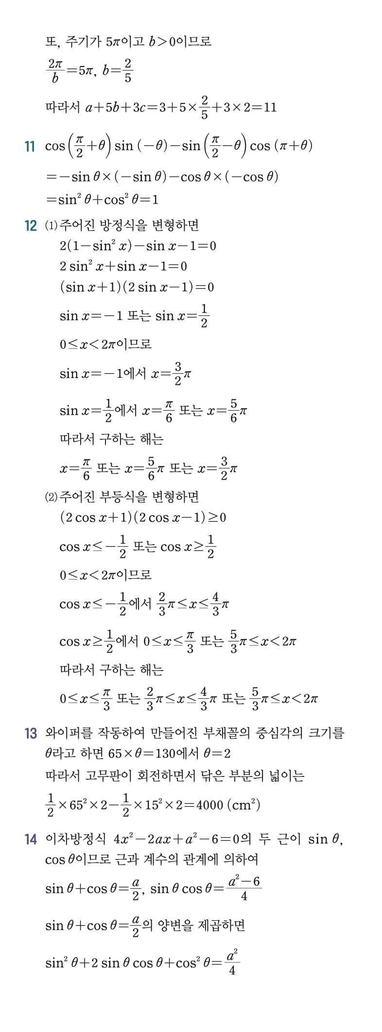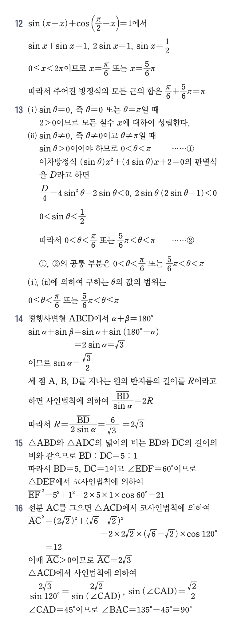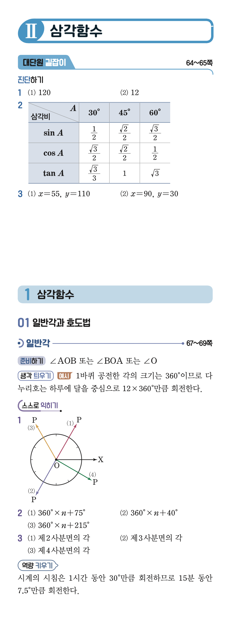 - II. 삼각함수: 일반각과 호도법, 삼각함수의 그래프와 주기성, 사인법칙과 코사인법칙