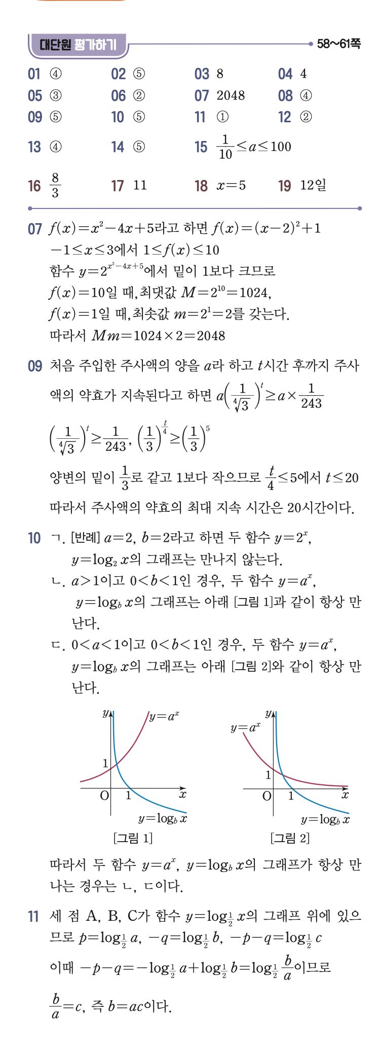 - 조건 대조: 로그 문제에서 '진수 조건'을 놓치지 않았는지, 수열에서 '항의 번호'를 실수하지 않았는지 해설지의 주의사항과 비교해 보세요.