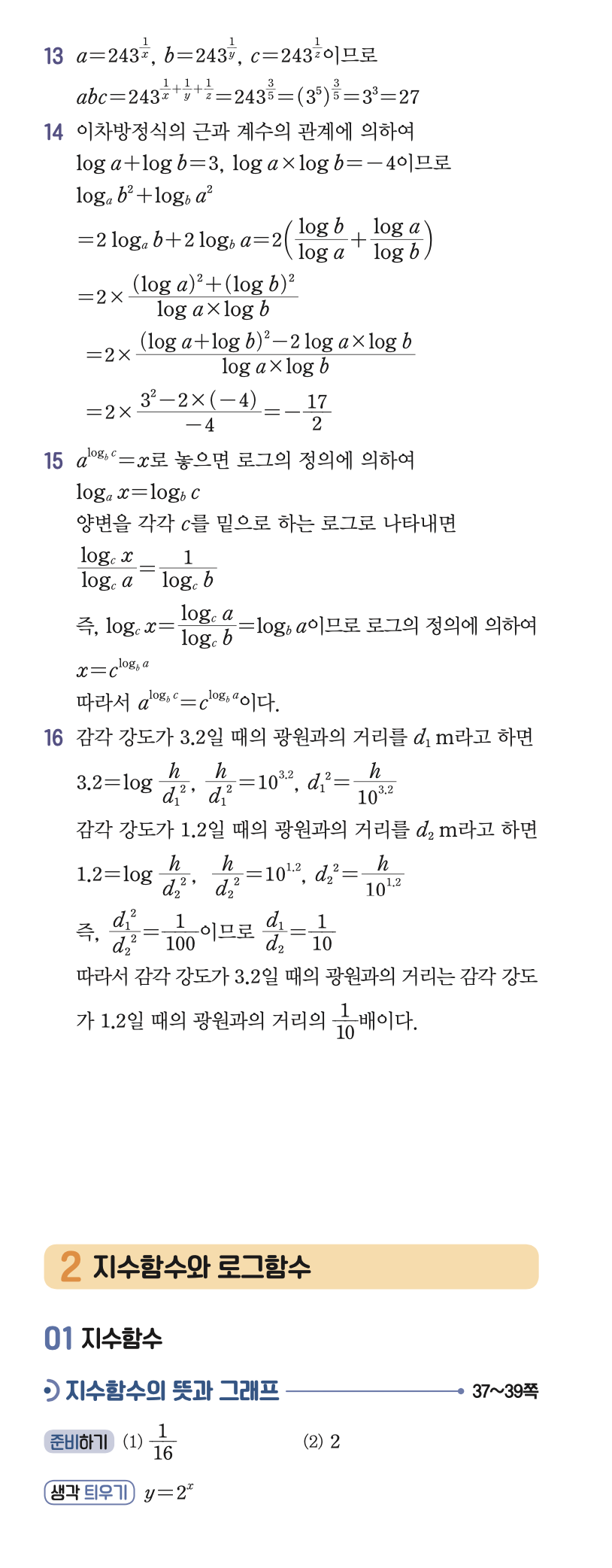 - I. 지수함수와 로그함수: 거듭제곱근의 성질, 지수와 로그의 확장, 함수의 그래프 해석