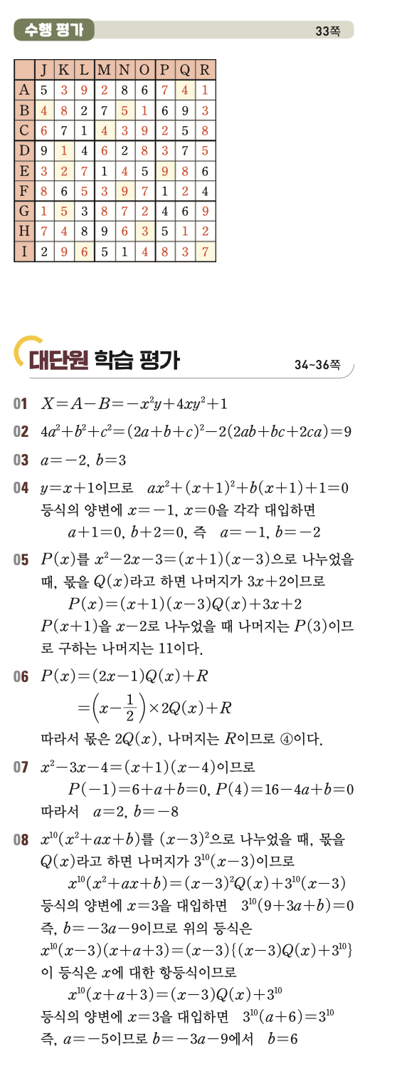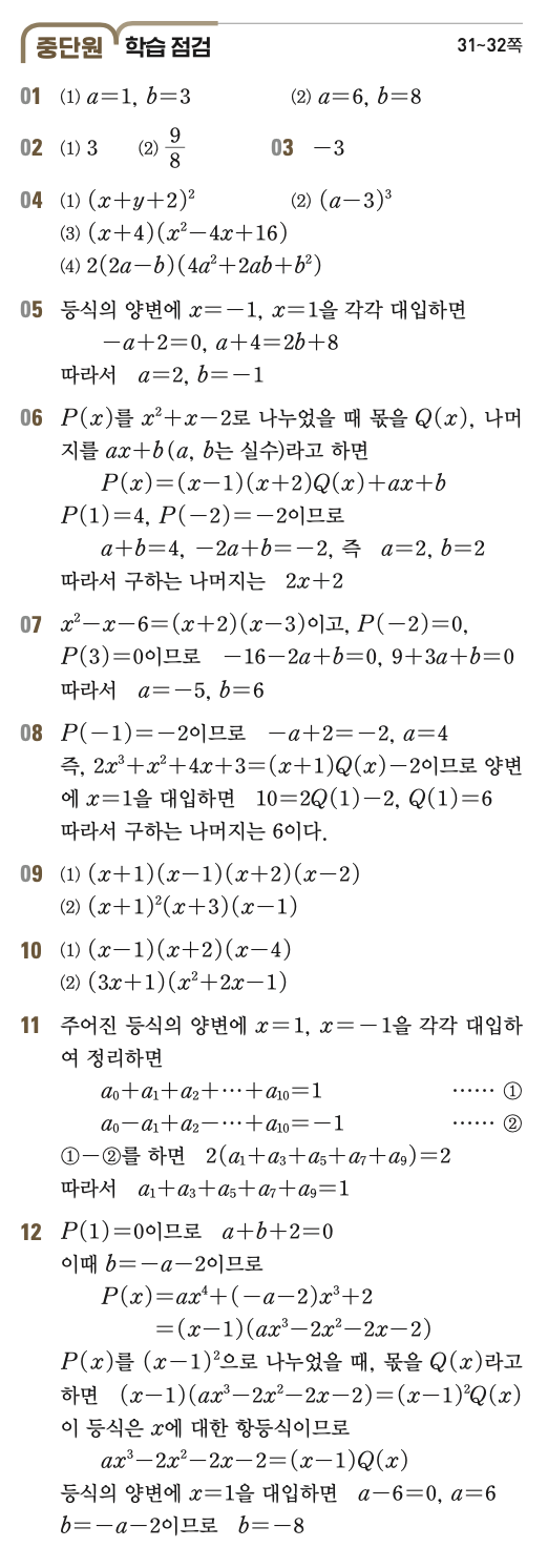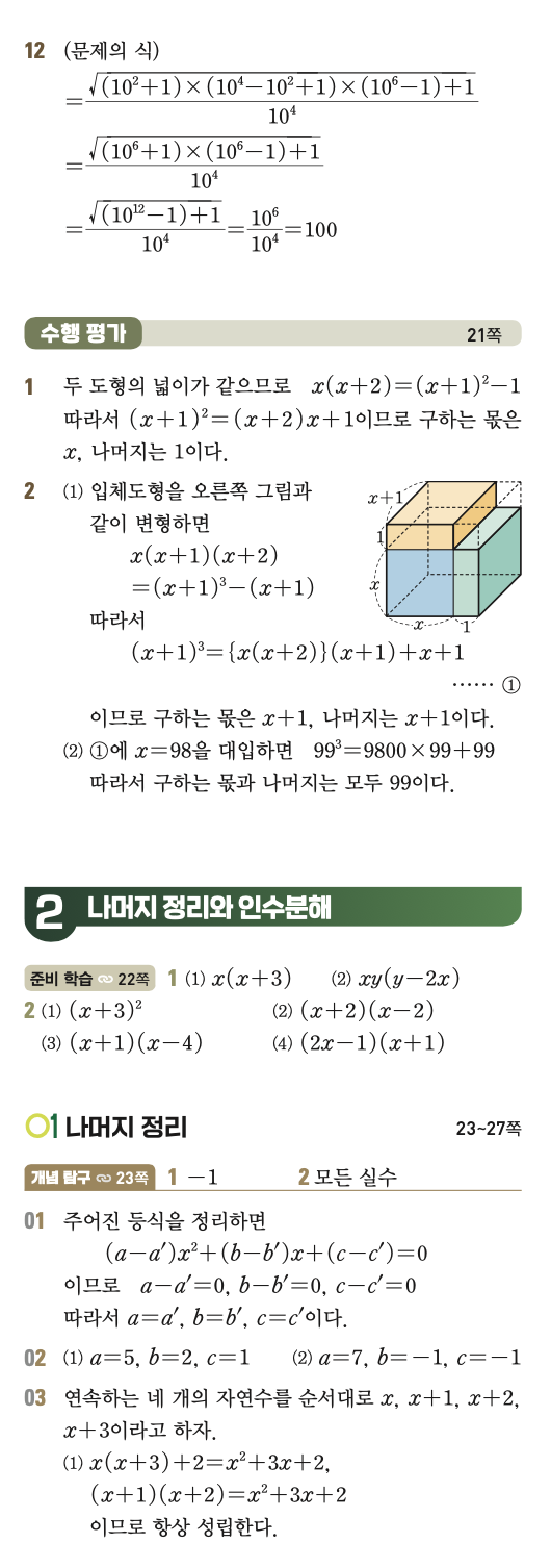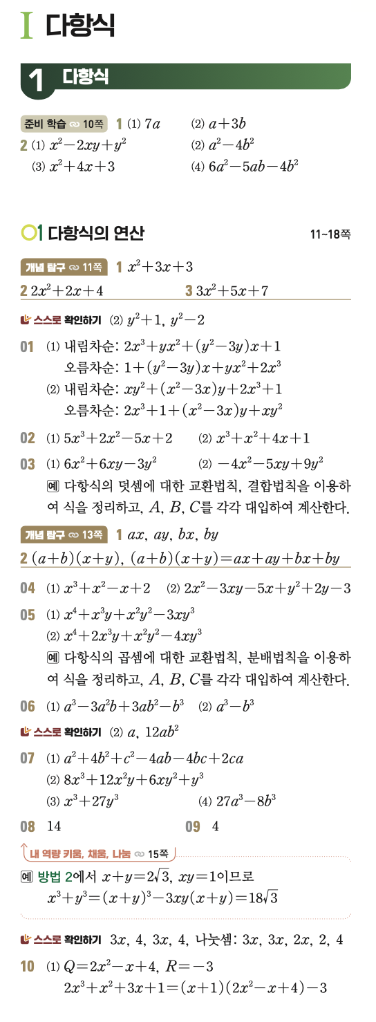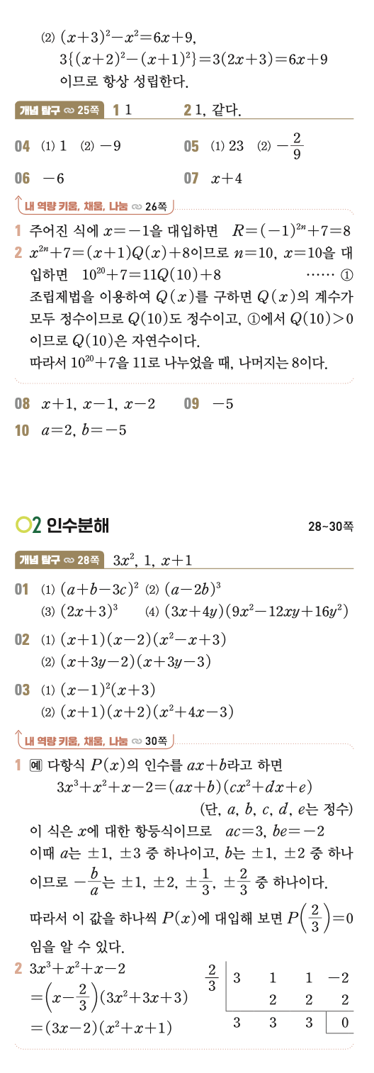 - 다항식: 다항식의 연산, 나머지 정리와 인수분해